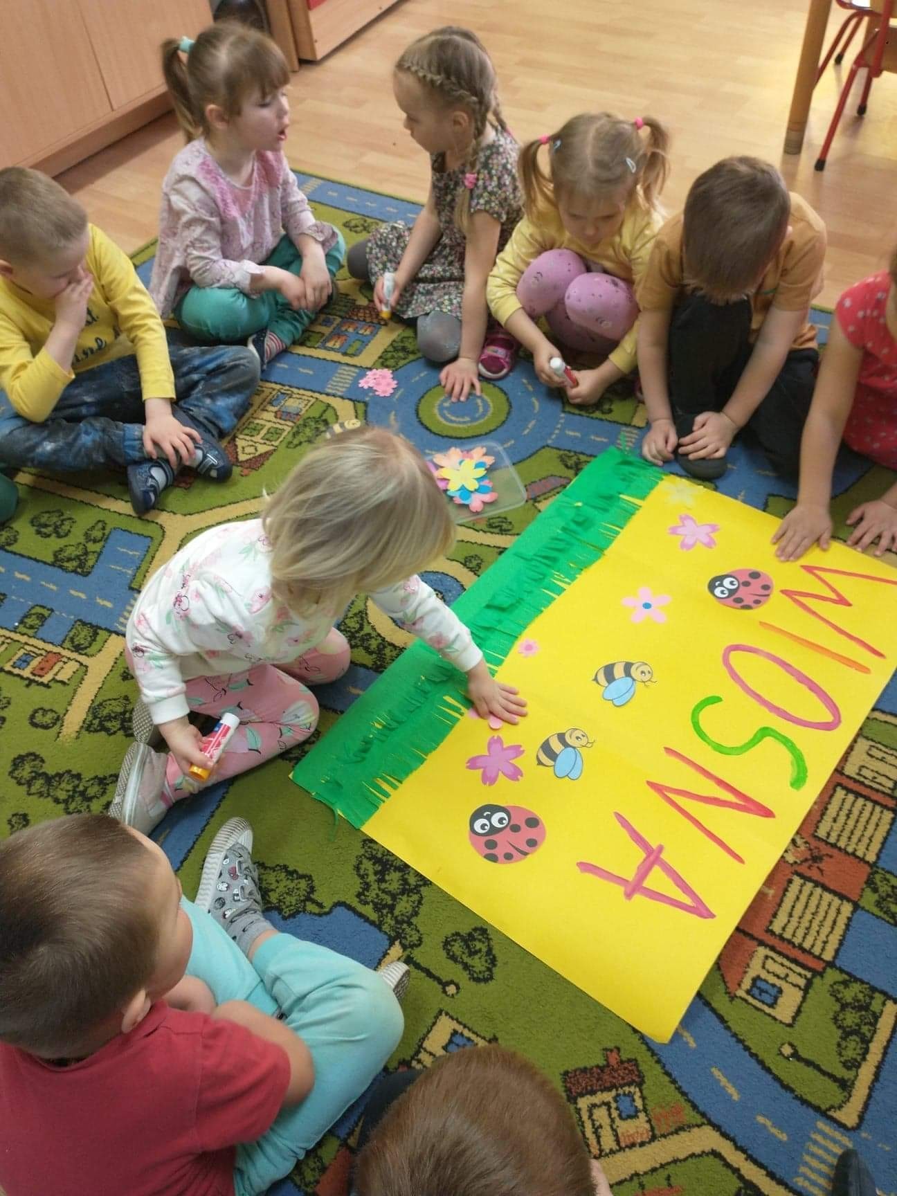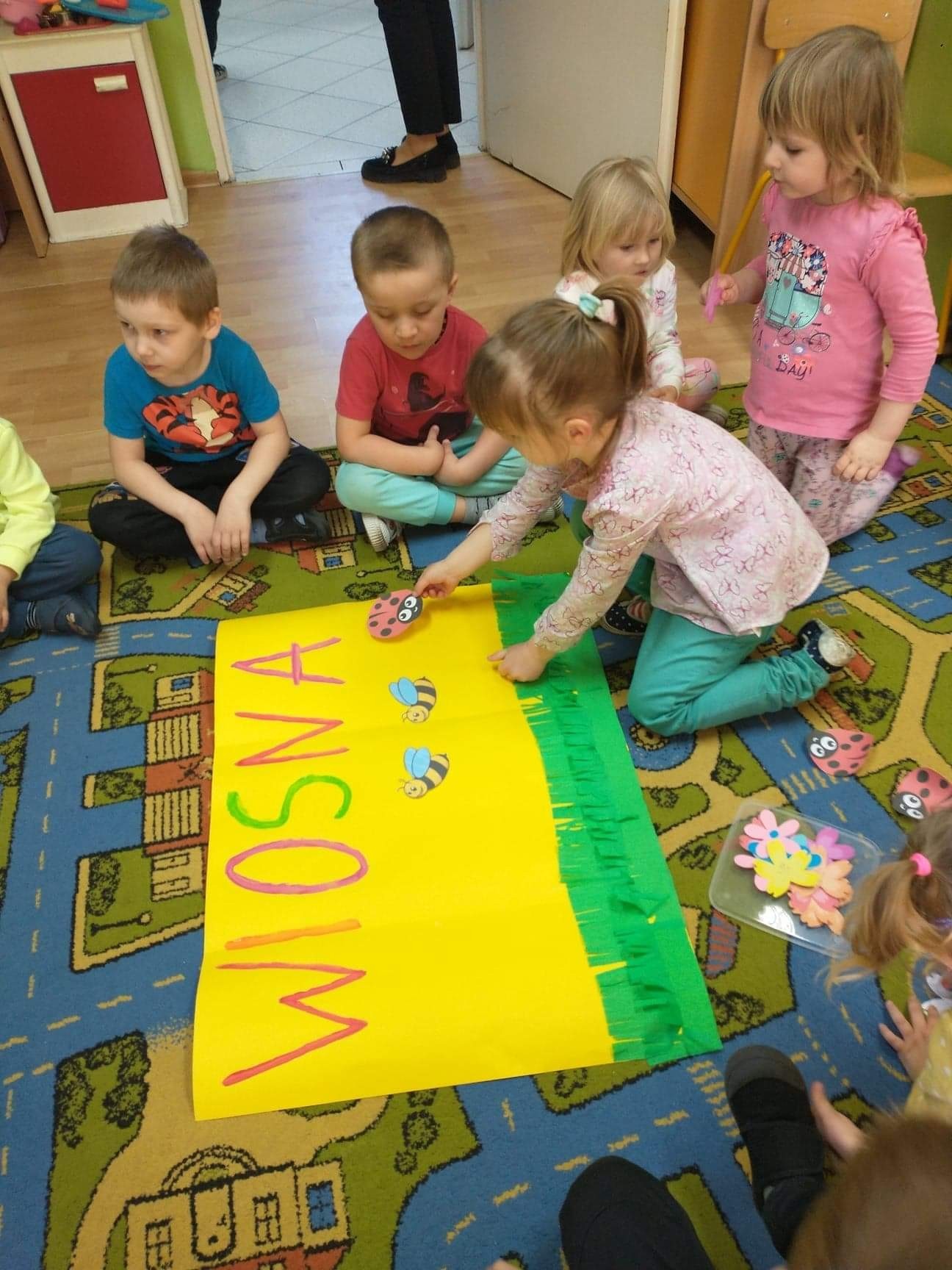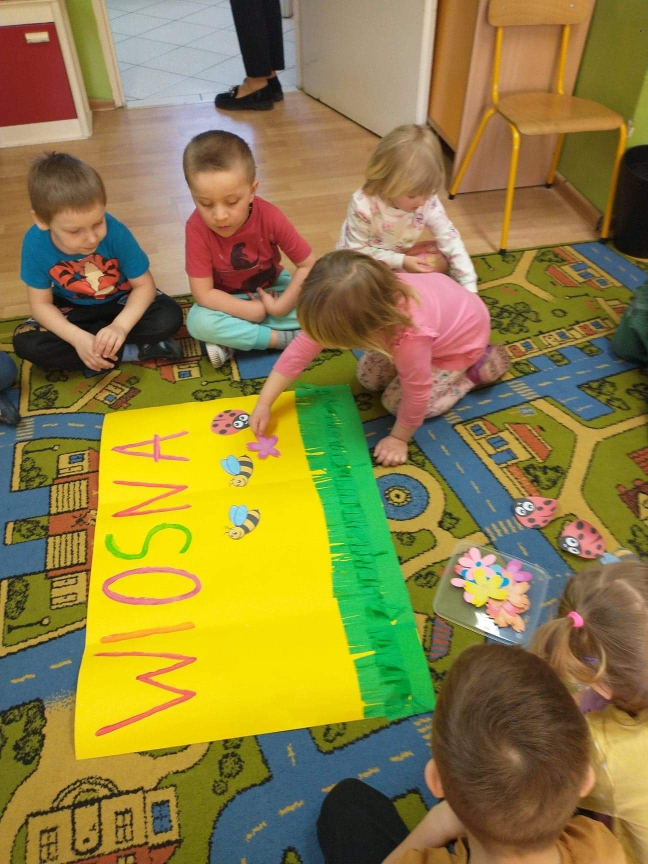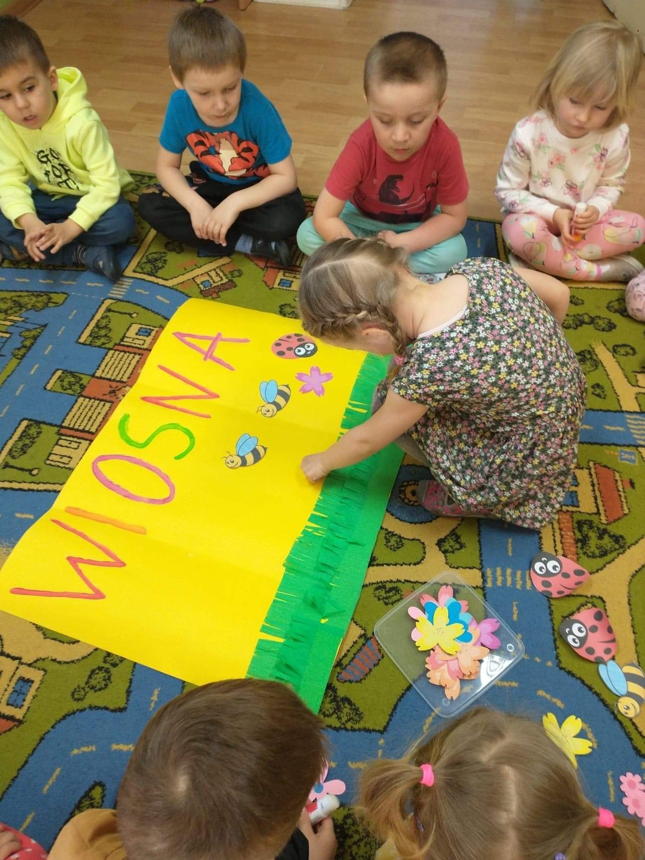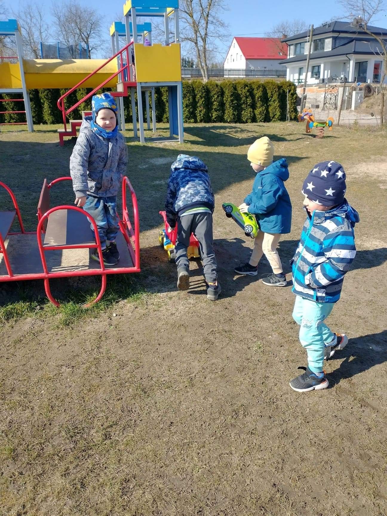 21 marca przedszkolaki świętowały Pierwszy Dzień Wiosny. Aby podkreślić charakter tego dnia, dzieci przyszły ubrane w kolorach wiosny. Na początek grupa młodsza przygotowała wiosenny plakat. Następnie wszystkie przedszkolaki z instrumentami muzycznymi, kwiatami przeszli ulicami wsi, na czele którego widniała Marzanna, symbol przemijającej zimy oraz gaik symbolizujący nadejście wiosny. Korowód zakończył swoją podróż w ogrodzie przedszkolnym, gdzie Marzanna została pożegnana według tradycji. W tak piękny i słoneczny dzień na naszym placu po długiej zimowej przerwie pojawiły się ogrodowe zabawki. To był wspaniały dzień i mamy nadzieję, że Wiosna zawita do nas na dobre.