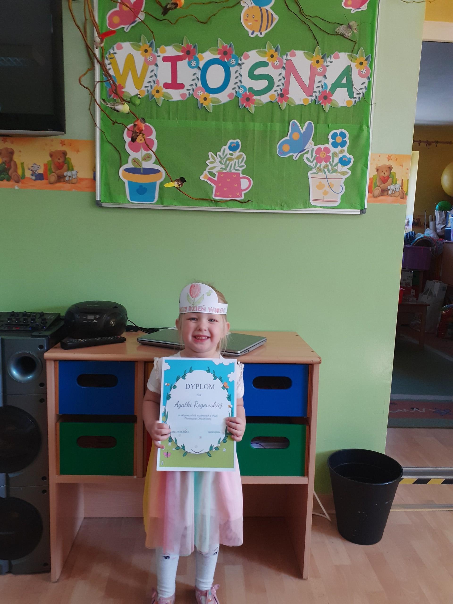 Dzisiaj - 21 marca - dzieci z młodszej grupy miały możliwość zdobycia dyplomu za udział w zabawach z okazji Pierwszego Dnia Wiosny.