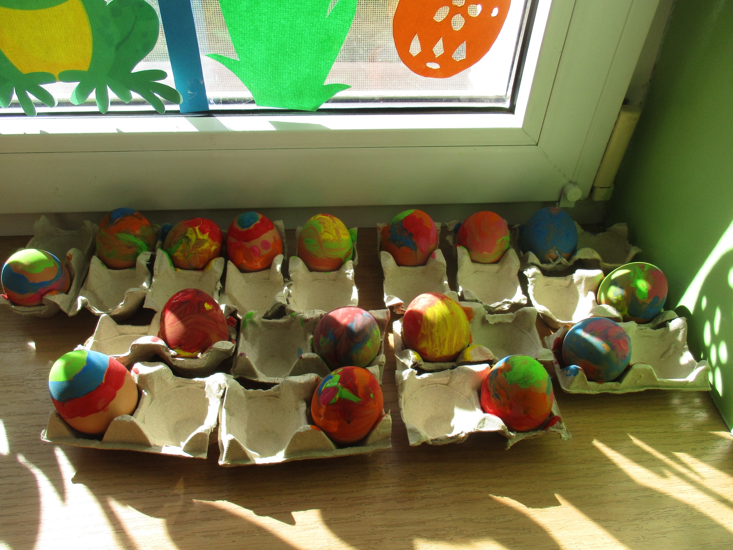 Czas Świąt Wielkanocnych jest związany przede wszystkim z tradycją malowania pisanek, przybliżeniem i kultywowaniem tradycji związanych ze świętami wielkanocnymi wśród dzieci. Na dzisiejszych zajęciach dzieci poznały tradycję oraz techniki ozdabiania jajek, a także znaczenie tego symbolu życia. Poznały wygląd i budowę jajka oraz chętne dzieci posmakowały cząstkę ugotowanego przysmaku.