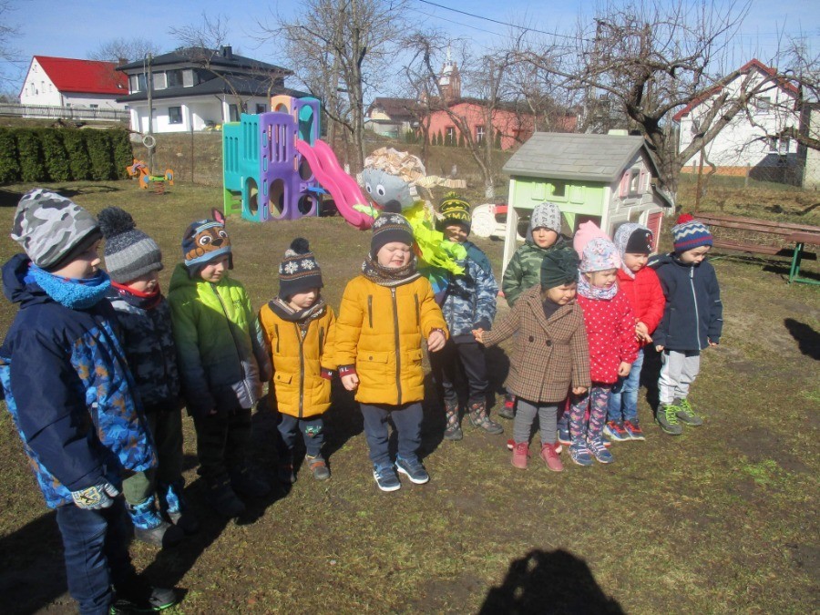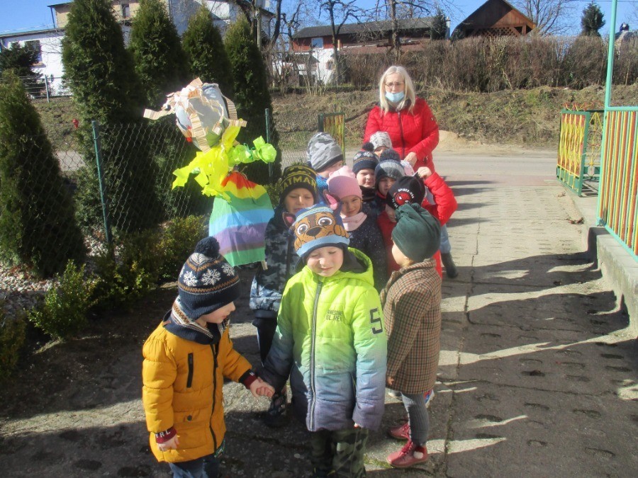 Zaczęliśmy od przygotowania Marzanny. Aby tradycji stało się zadość, Marzanna została uroczyście pożegnana, a potem spalona. Następnie wszystkie przedszkolaki udały się na wiosenny spacer, trzymając w rękach kolorowe kwiatki i gaik, aby oznajmić wszystkim, że przyszła do nas Wiosna oraz, aby poszukać jej w przyrodzie. Dzieci powróciły do przedszkola z nadzieją, że upragniona Wiosna na dobre pozostanie z nami i zazieleni łąki, drzewa, trawy.