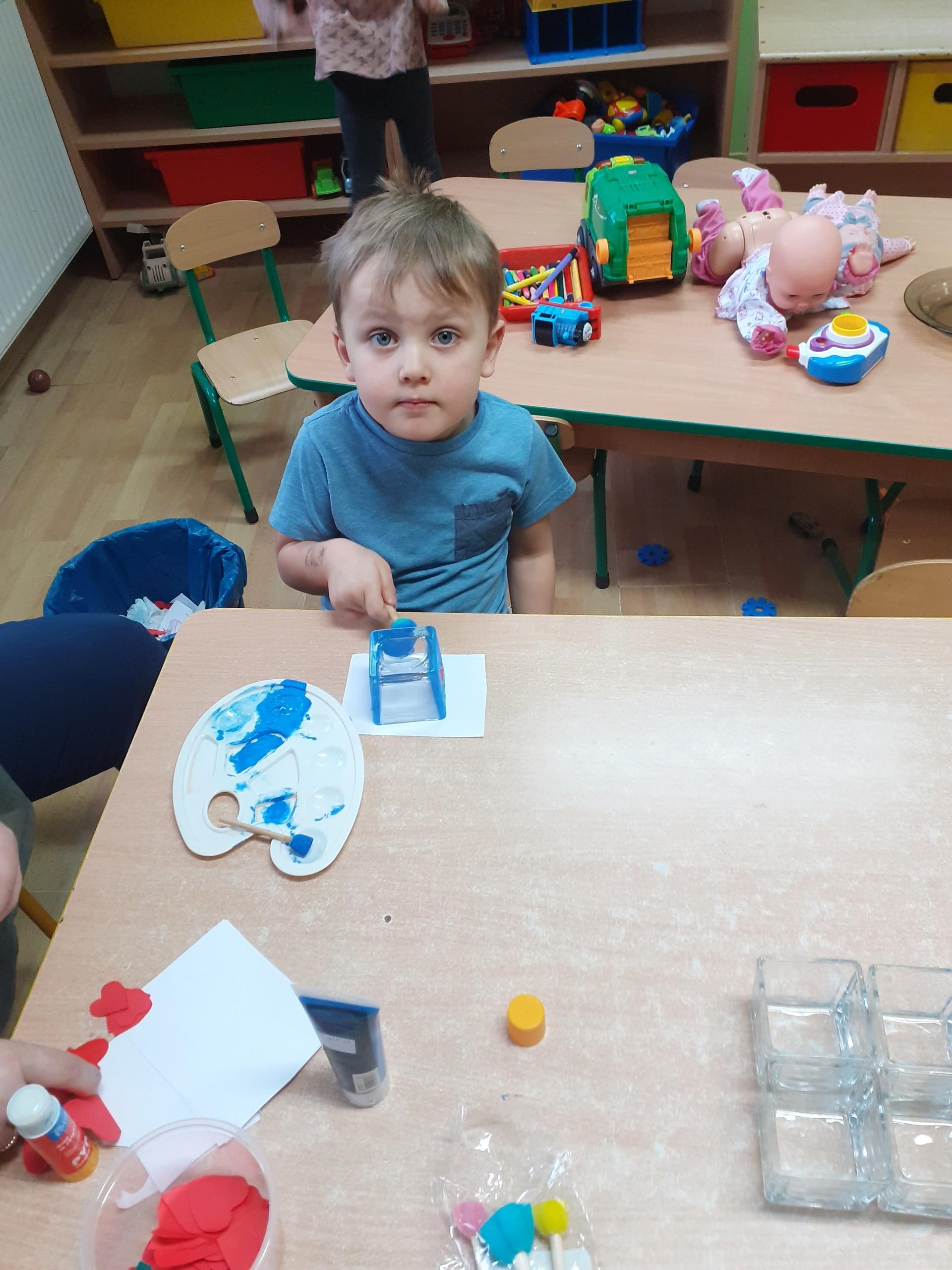 Wszystkie przedszkolaki z młodszej grupy z wielkim zaangażowaniem wykonywały upominki i laurki dla swoich babć i dziadków.
