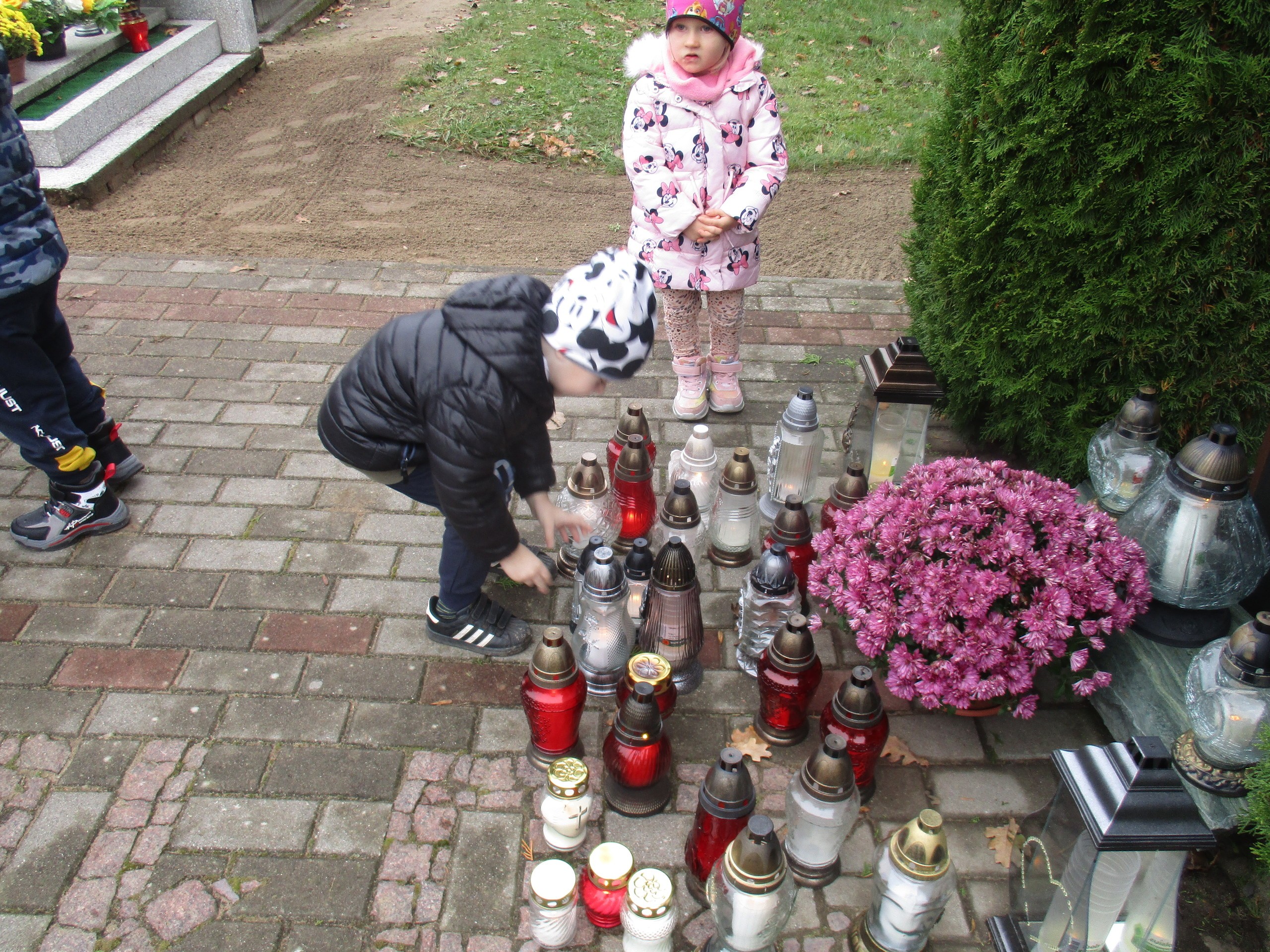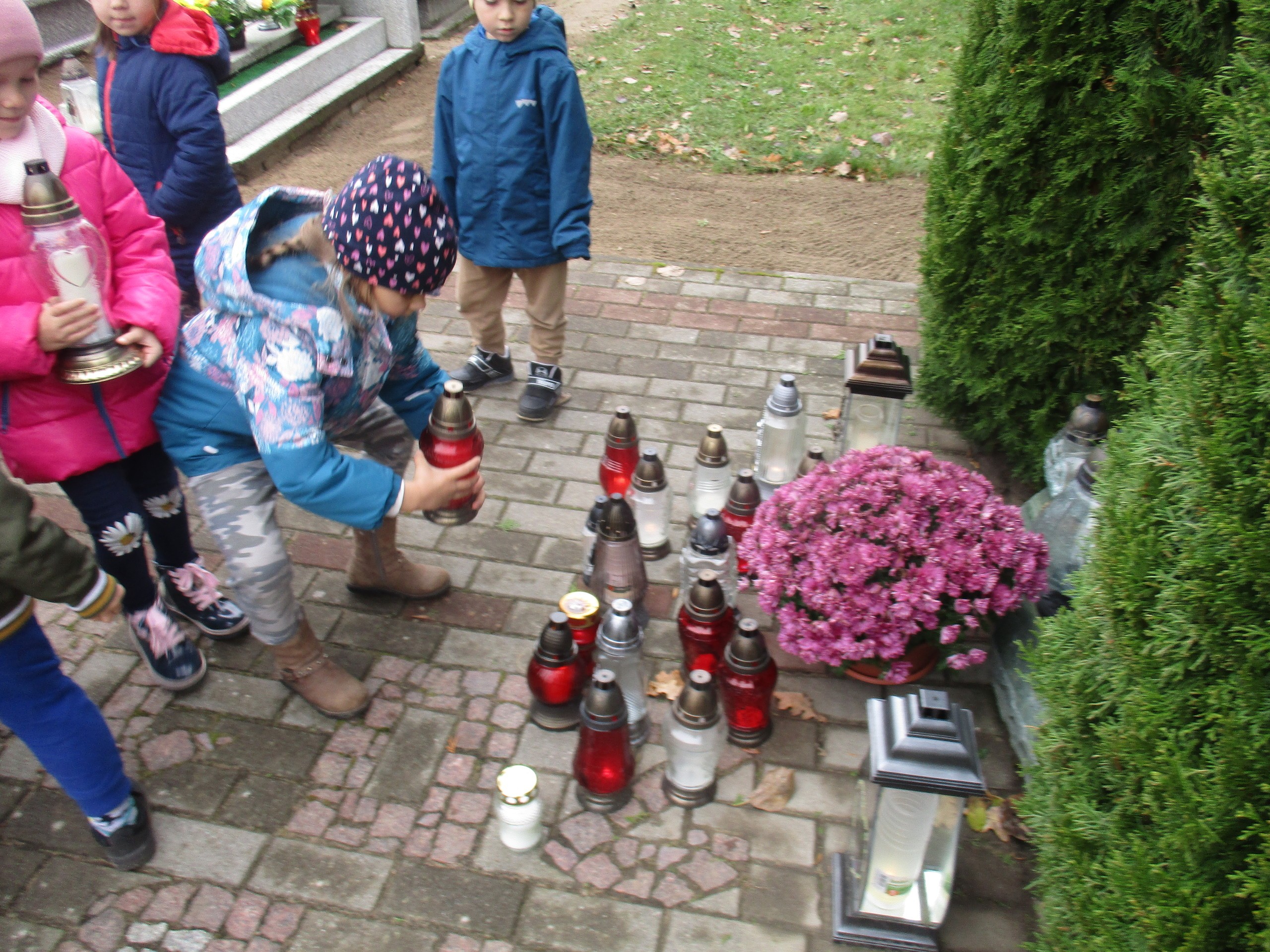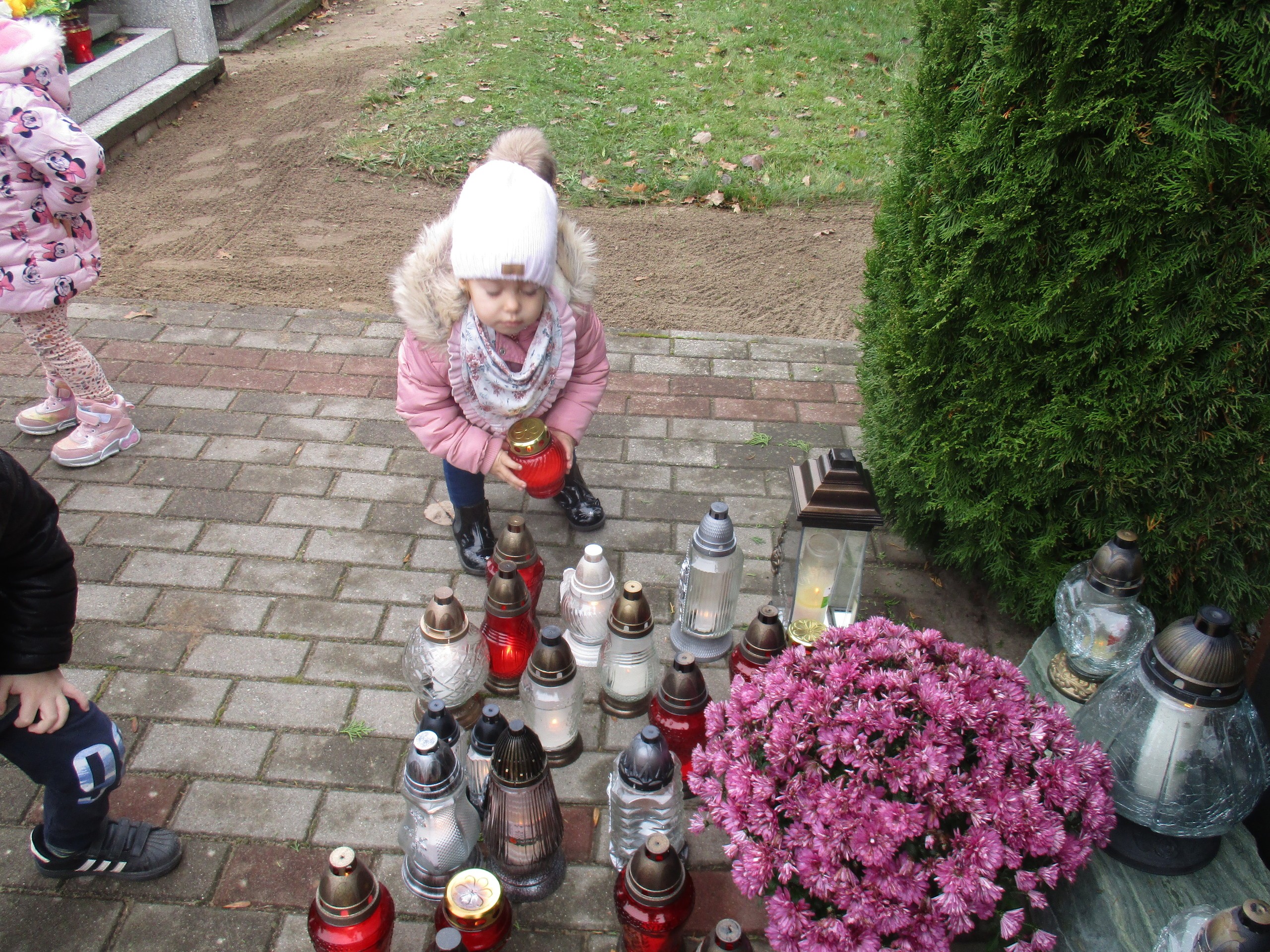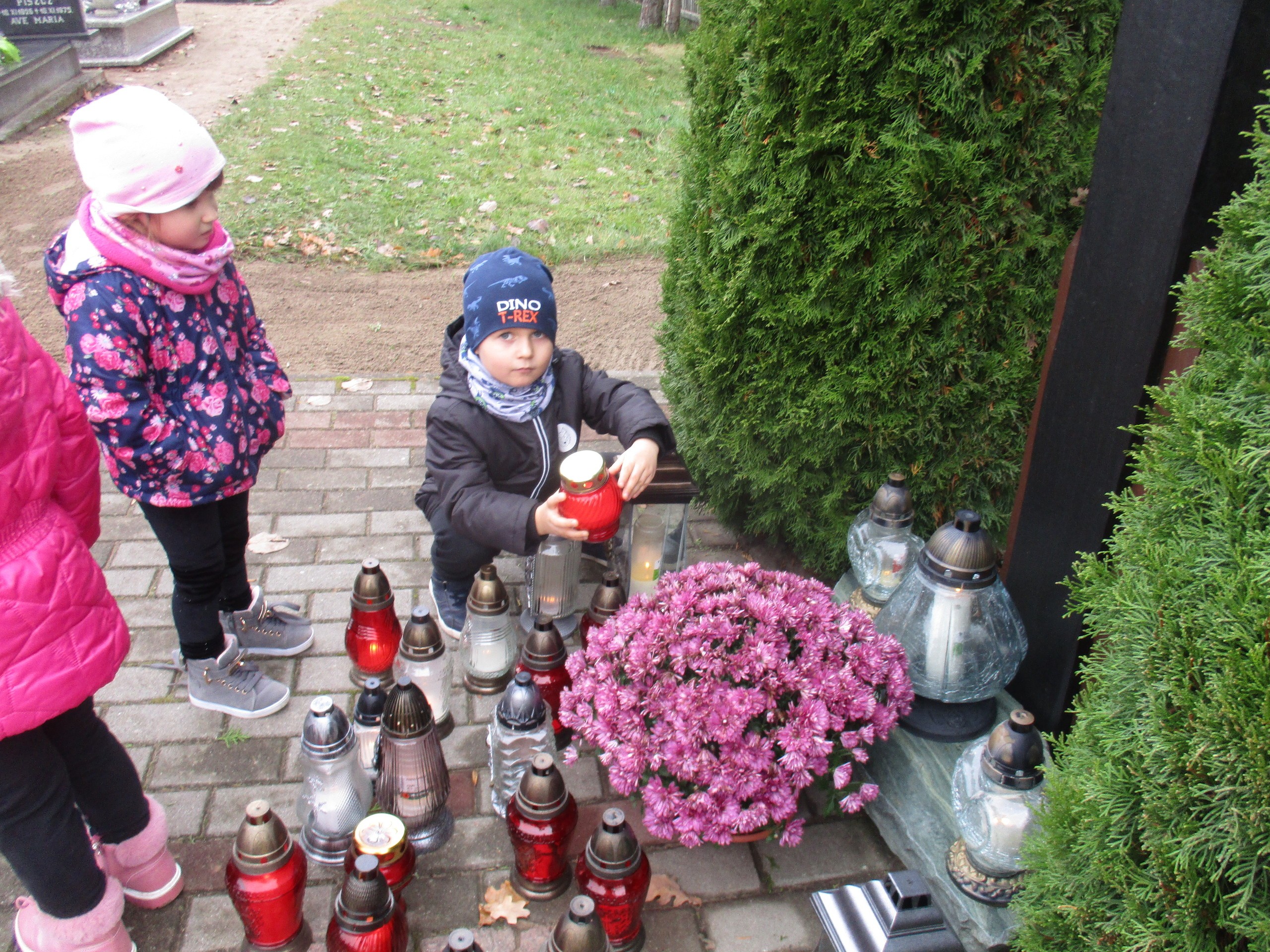 Początek listopada to czas dla nas bardzo szczególny. Wspominamy tych, których już z nami nie ma. Tradycją Przedszkola w Garczegorzu jest wizyta na pobliskim cmentarzu. I w tym roku pamiętaliśmy o tych, którzy odeszli. Przedszkolaki udając się z wychowawczyniami na cmentarz zapaliły przy krzyżu znicze . Poprzez odwiedziny na cmentarzu uczymy dzieci szacunku dla zmarłych i właściwego zachowania się w tym szczególnym miejscu.
