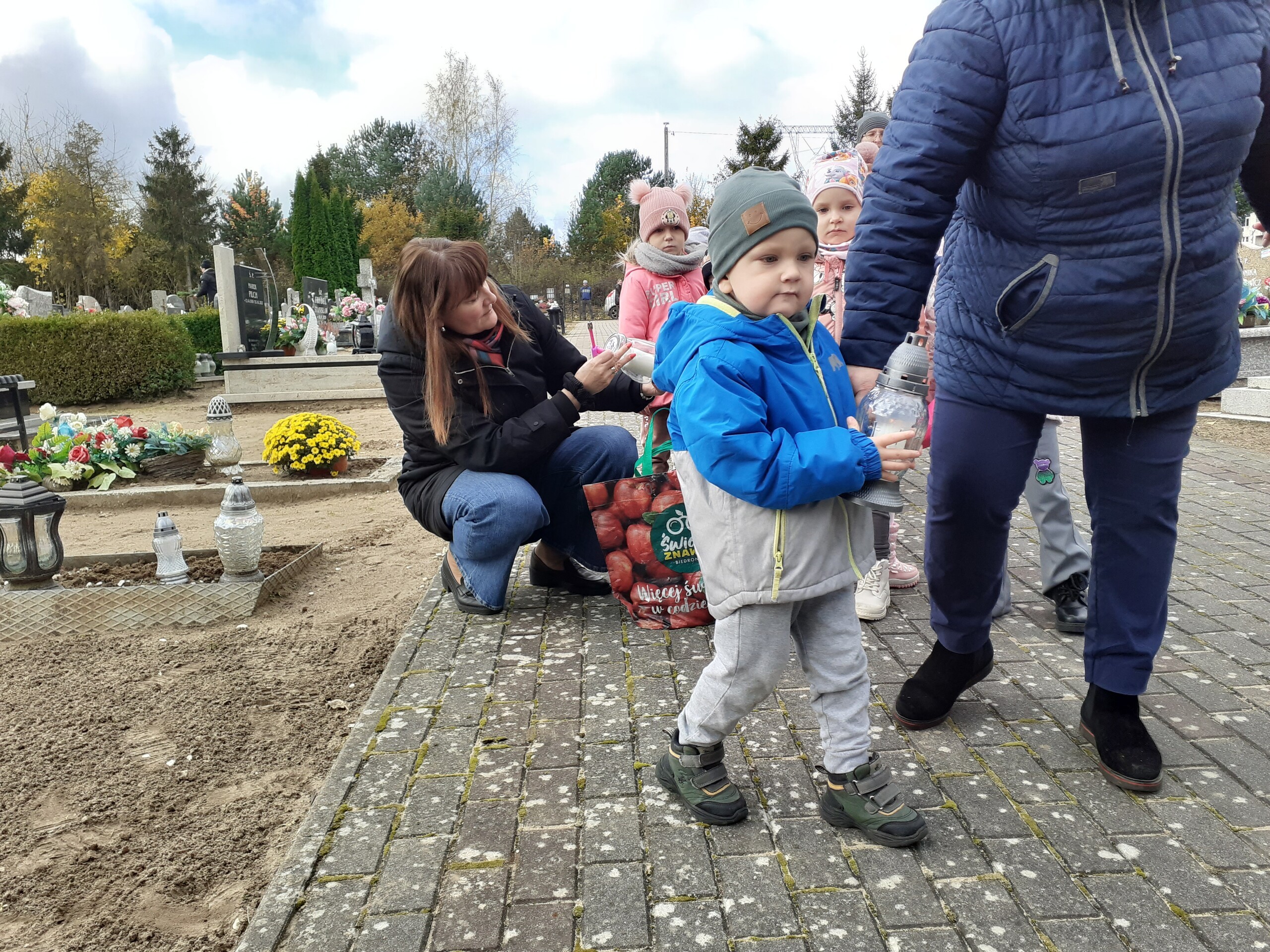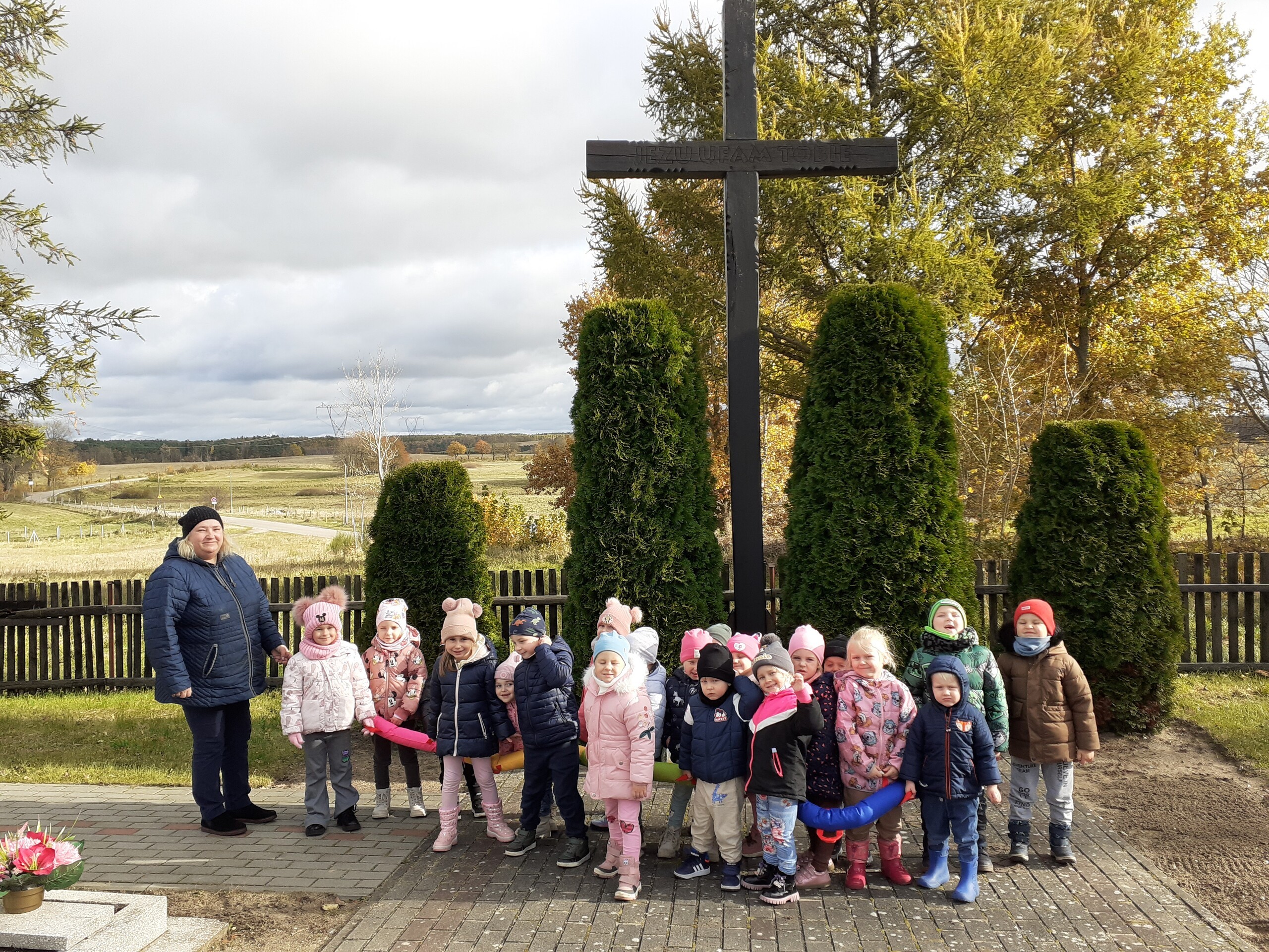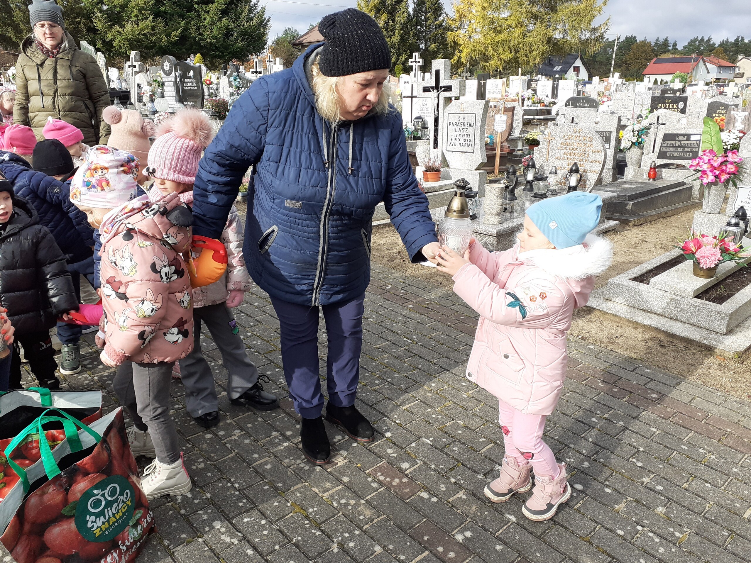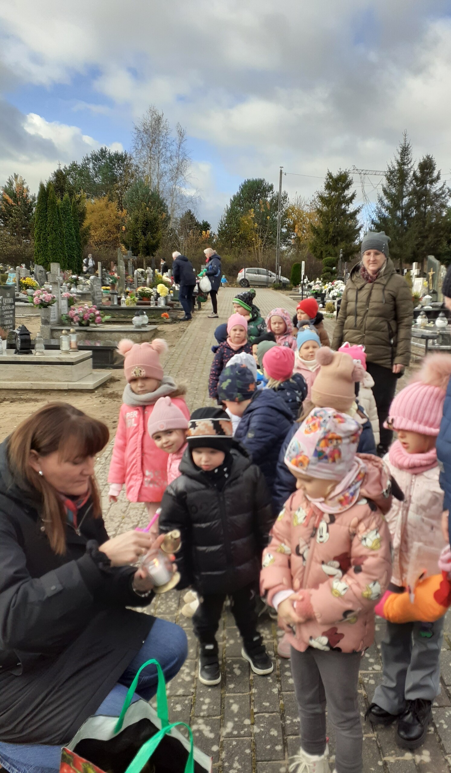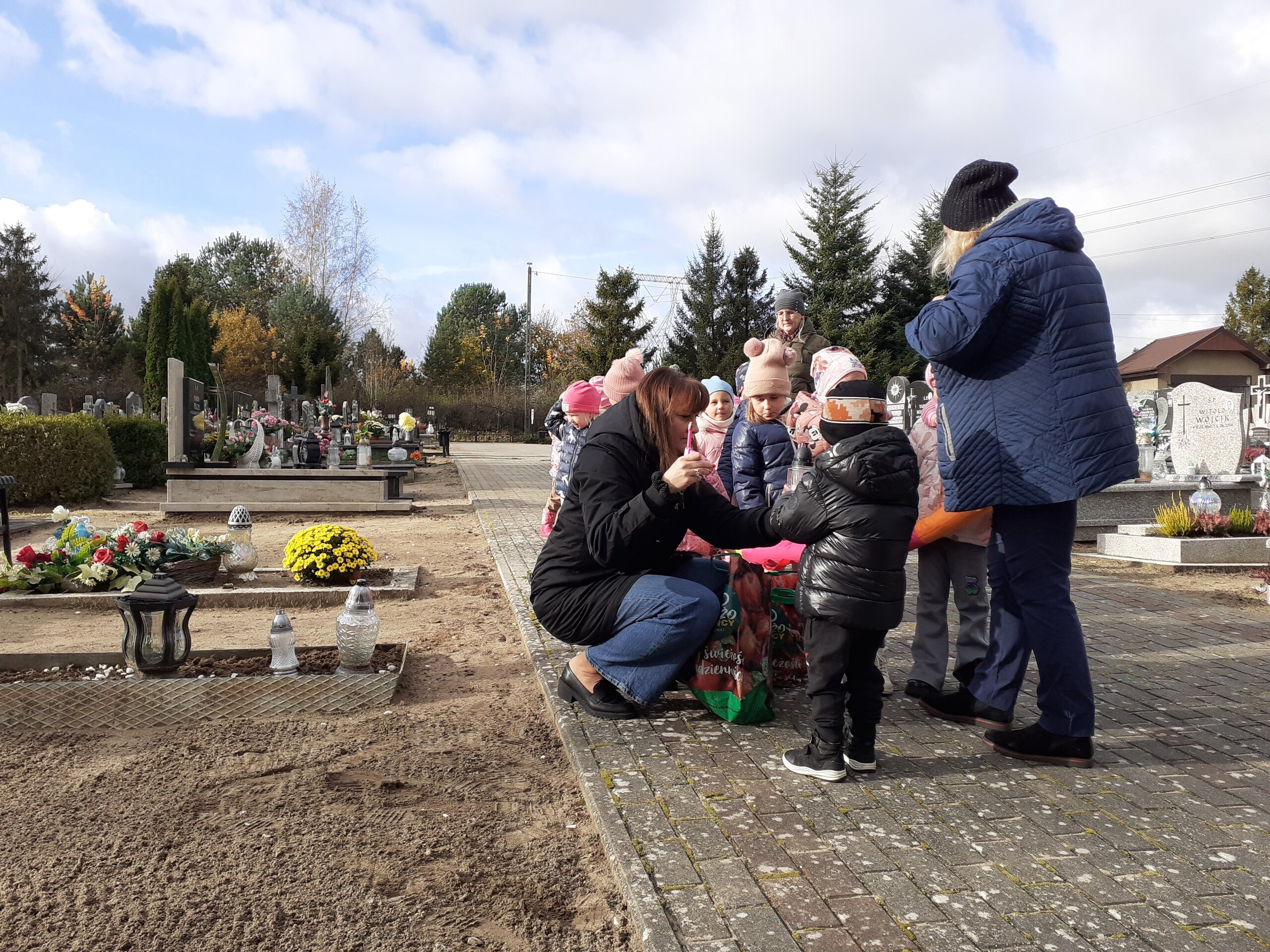 W piątek odwiedziliśmy pobliski cmentarz. Przy krzyżu zapaliliśmy znicze. W ten sposób uczciliśmy zmarłych. To była chwila zadumy i wspomnienia bliskich, którzy odeszli. Pamięć o zmarłych w przedszkolu to sposób na uczenie dzieci szacunku do tradycji, wspomnień i uczuć związanych ze Świętem Zmarłych.