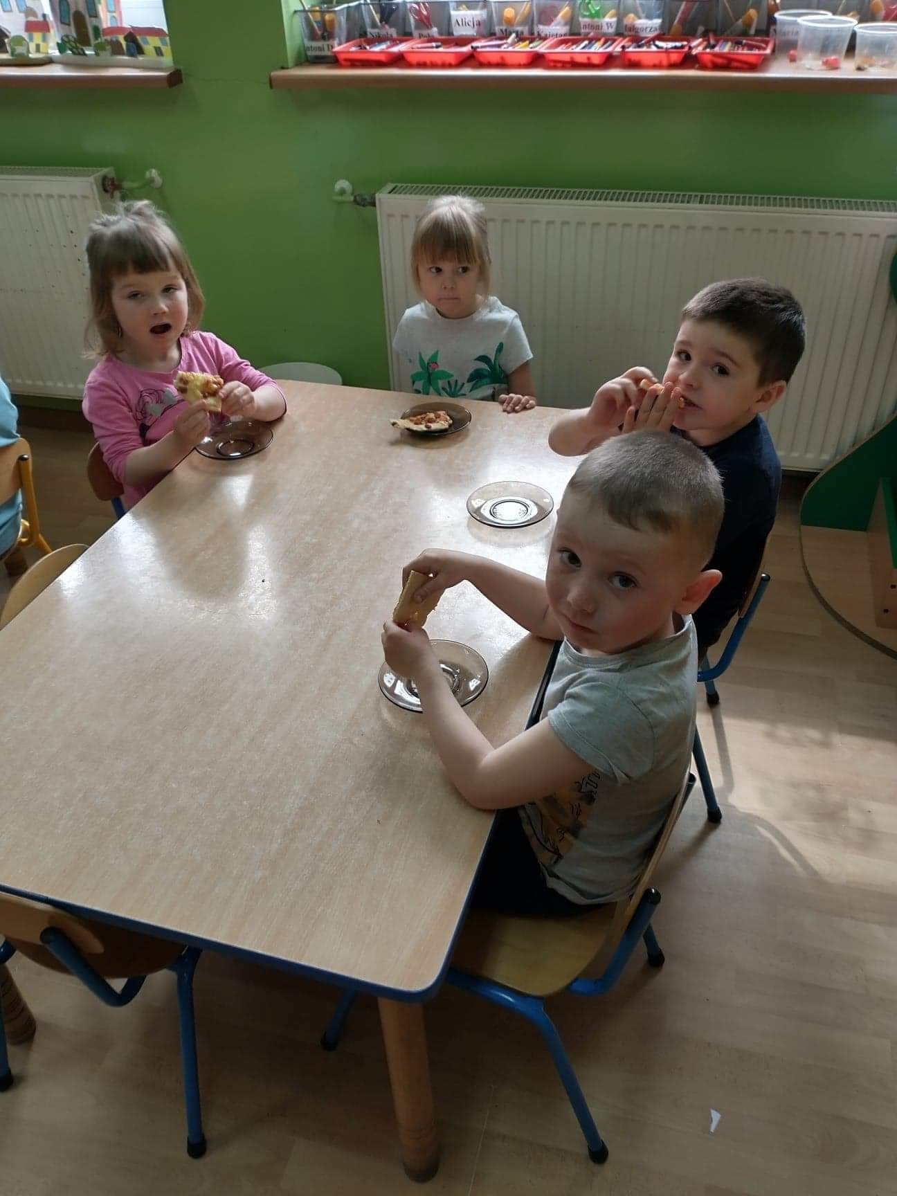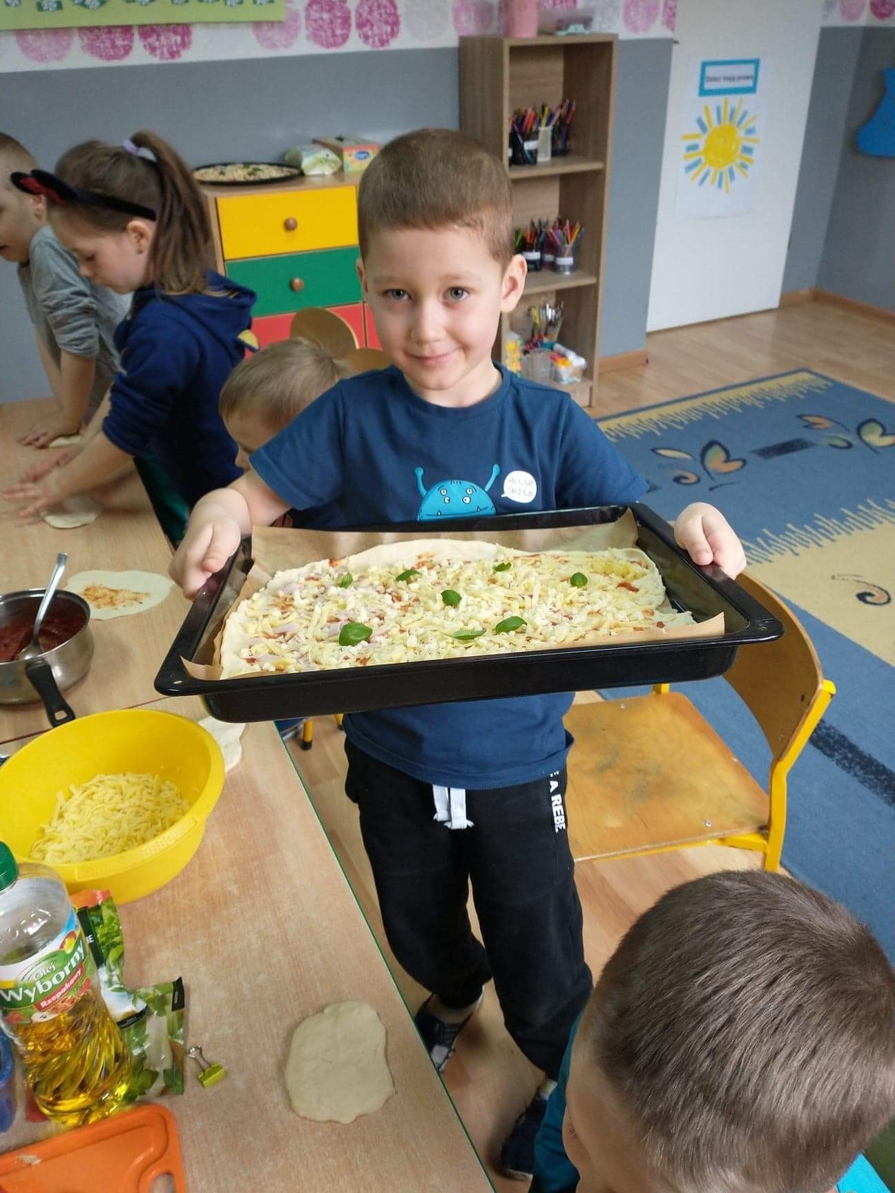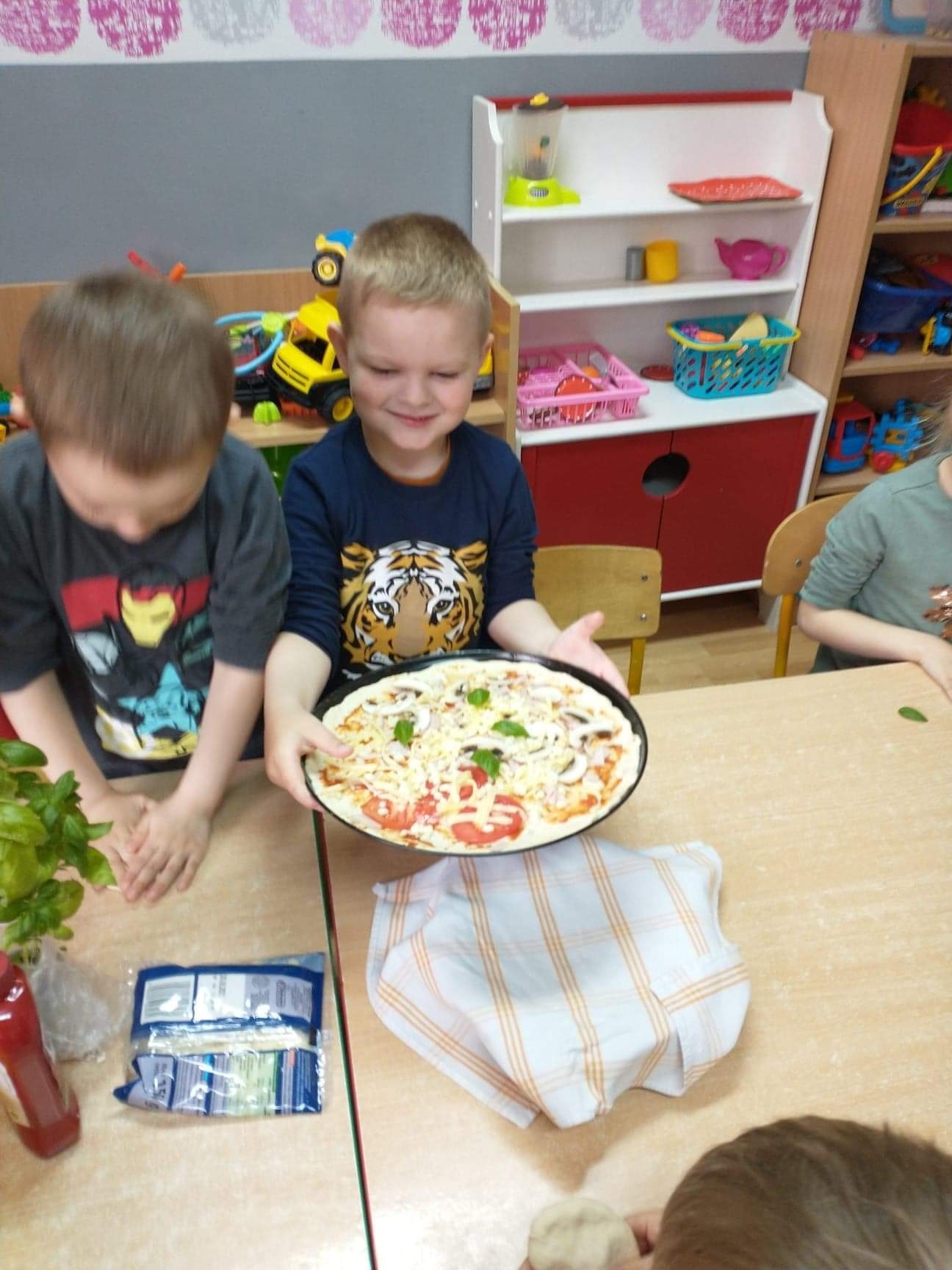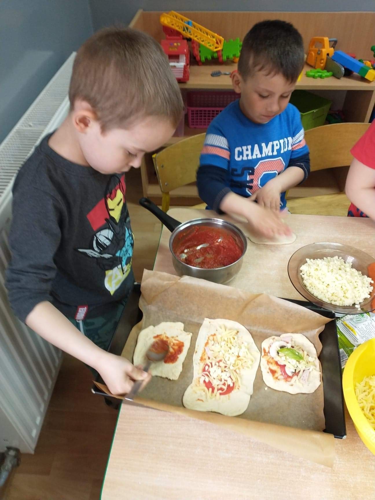 Dzisiaj przedszkolaki z Garczegorza zamieniły sale w pizzerię. Udowodniły, że potrafią sami przygotować prawdziwą pizzę. Formowanie kulek drożdżowych, smarowanie sosem i nakładanie ulubionymi składnikami sprawiło dzieciom wielką frajdę. Pizza po upieczeniu była przepyszna smakowała wszystkim dzieciom w naszym przedszkolu. Brawo dla naszych przedszkolaków.