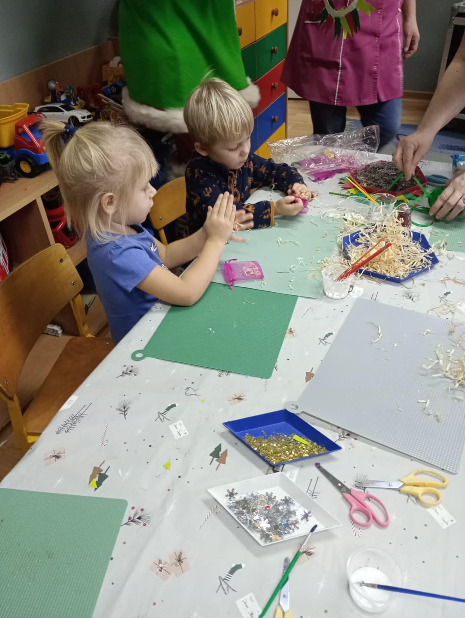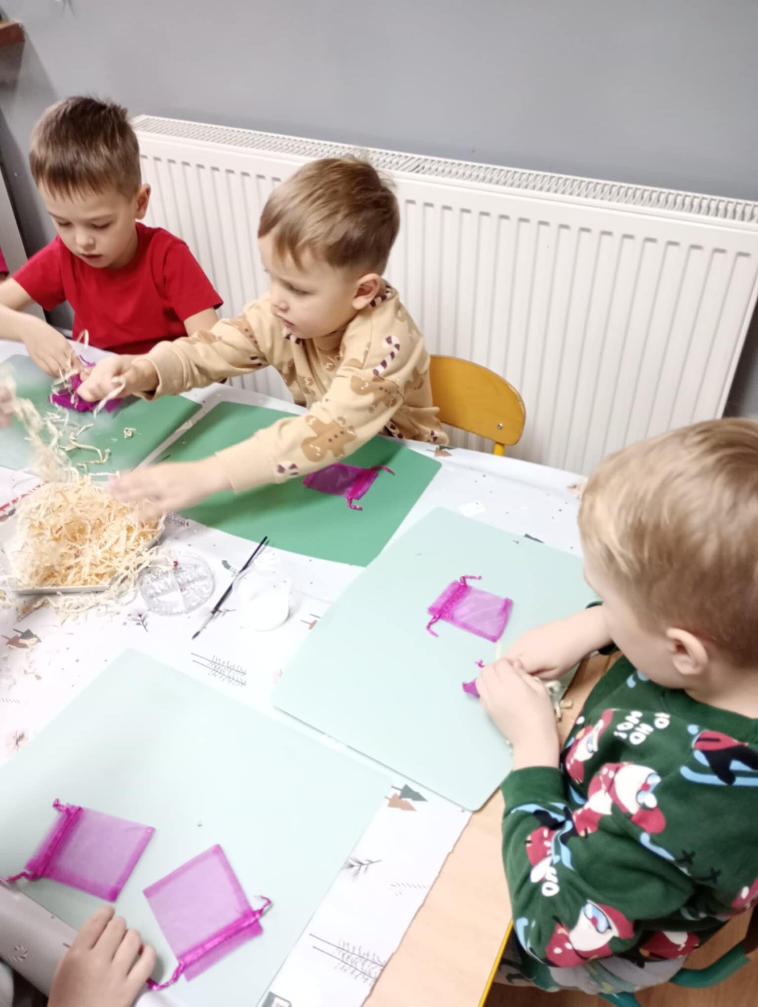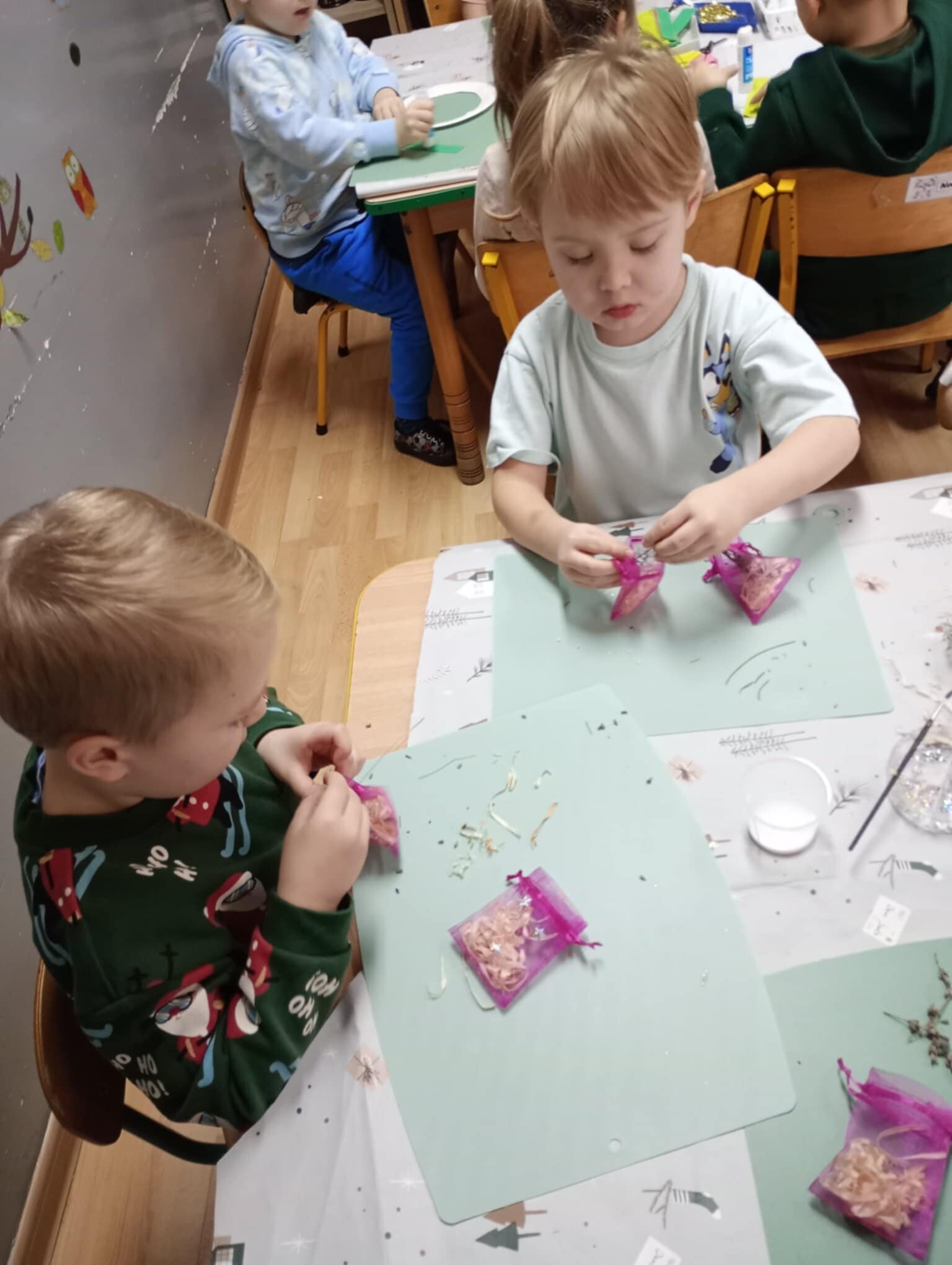 Dzisiaj odwiedziły nas Elfy, które przeprowadziły z dziećmi ciekawe warsztaty o tematyce świątecznej. Przedszkolaki z zaangażowaniem wykonywały polecenia. W ten sposób powstały przepiękne wianuszki orz zapachowe woreczki.