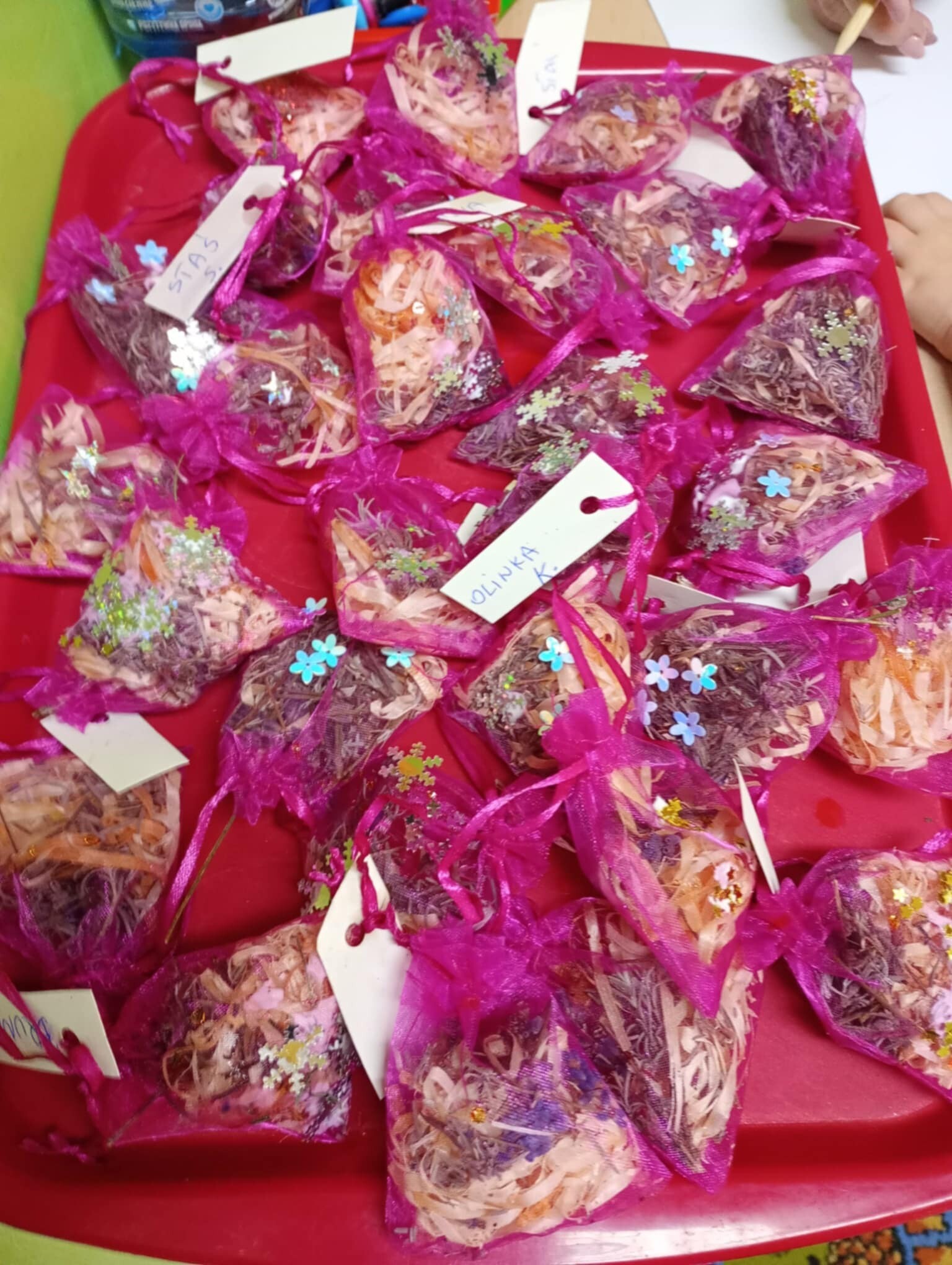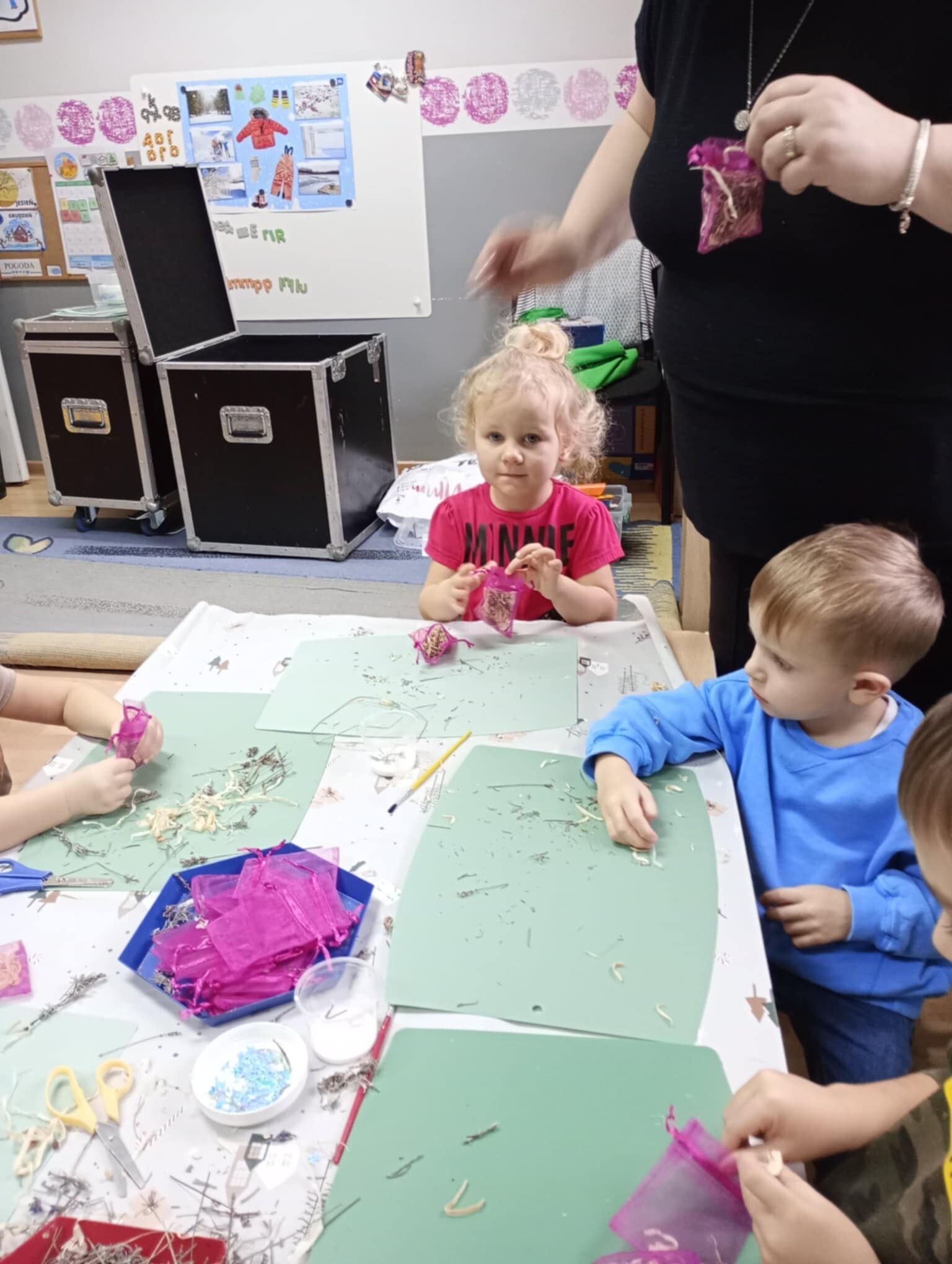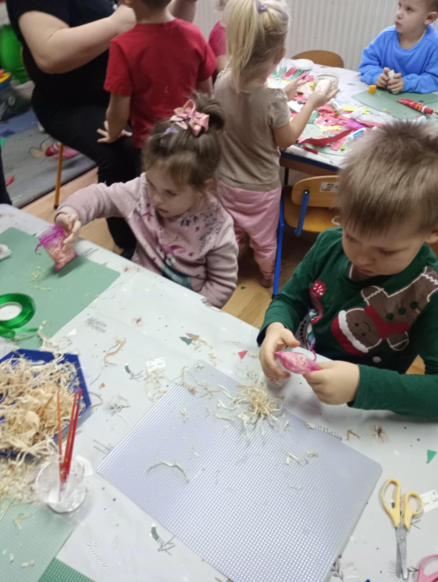 Dzisiaj odwiedziły nas Elfy, które przeprowadziły z dziećmi ciekawe warsztaty o tematyce świątecznej. Przedszkolaki z zaangażowaniem wykonywały polecenia. W ten sposób powstały przepiękne wianuszki orz zapachowe woreczki.