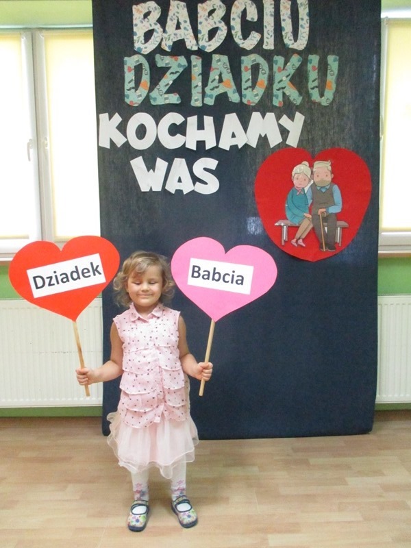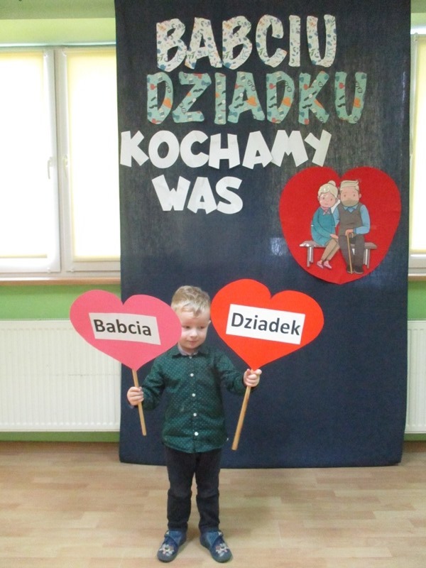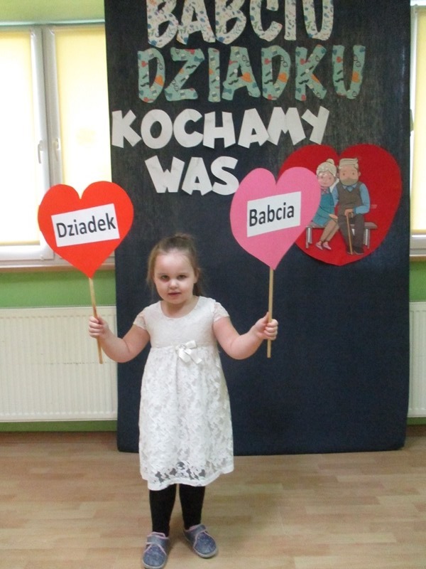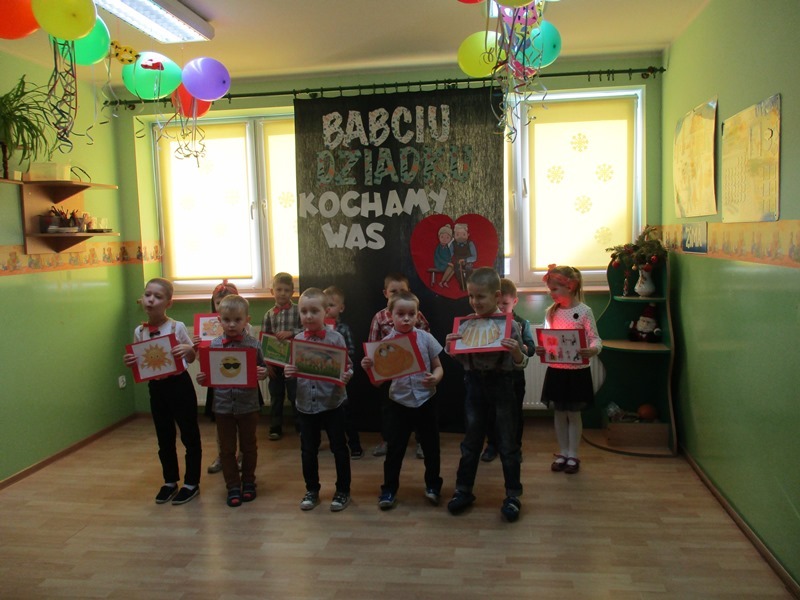 Dzisiaj, dla kochanych babć i dziadków, dzieci z młodszej i starszej grupy zaprezentowały swoje wierszyki i piosenki. Przedszkolaki podarowały babciom i dziadkom laurki oraz upominki w dniu Ich święta.