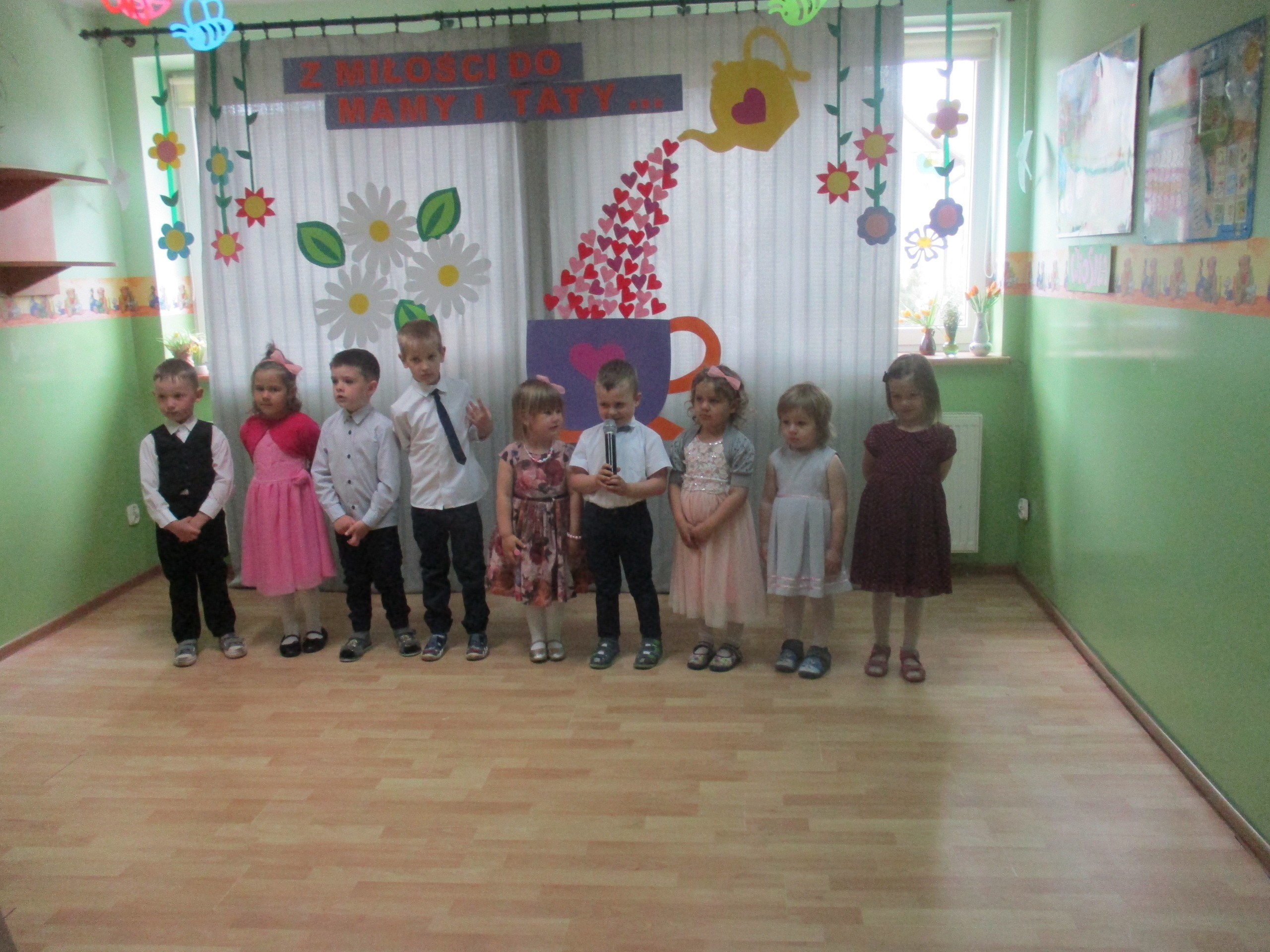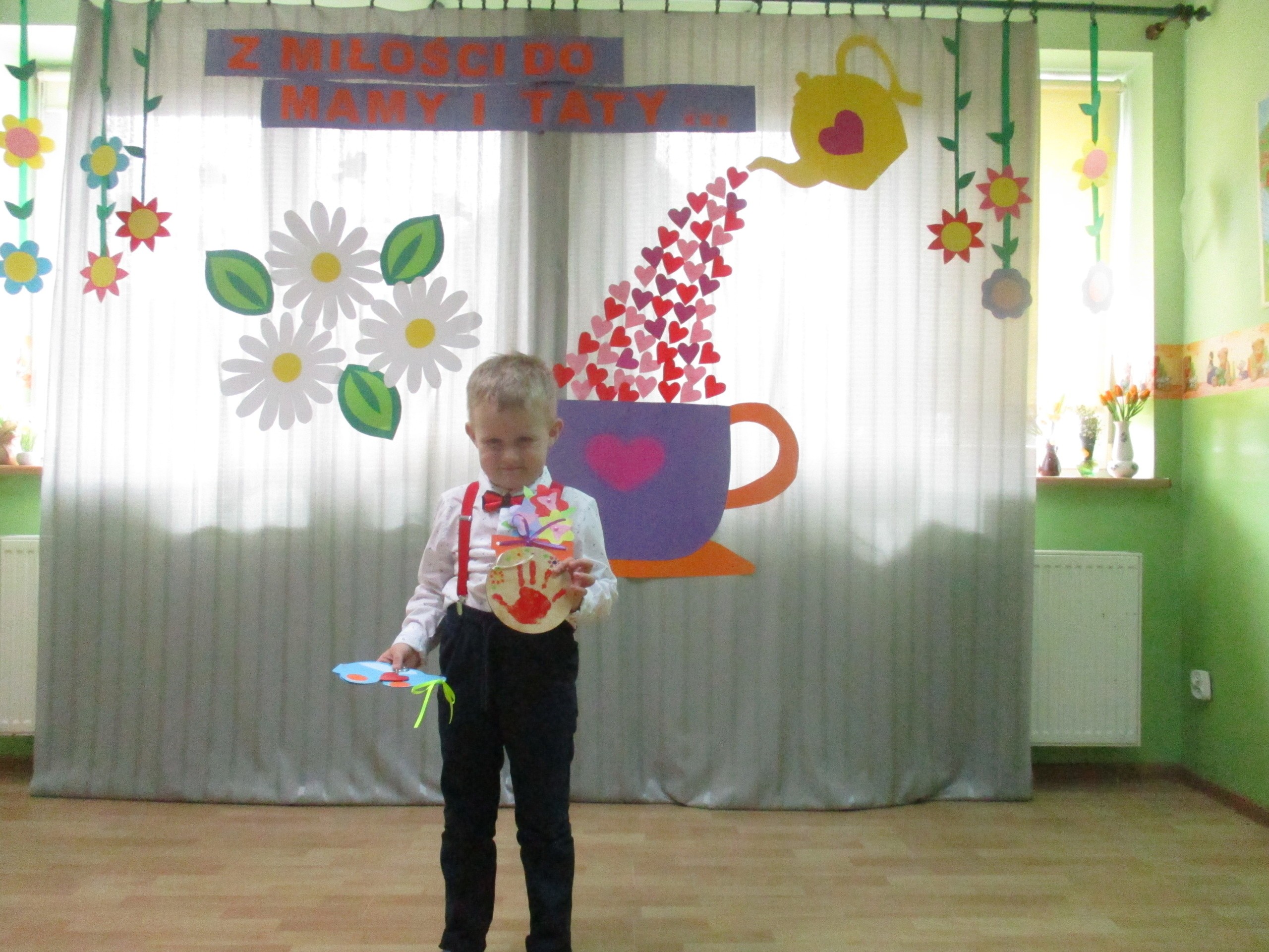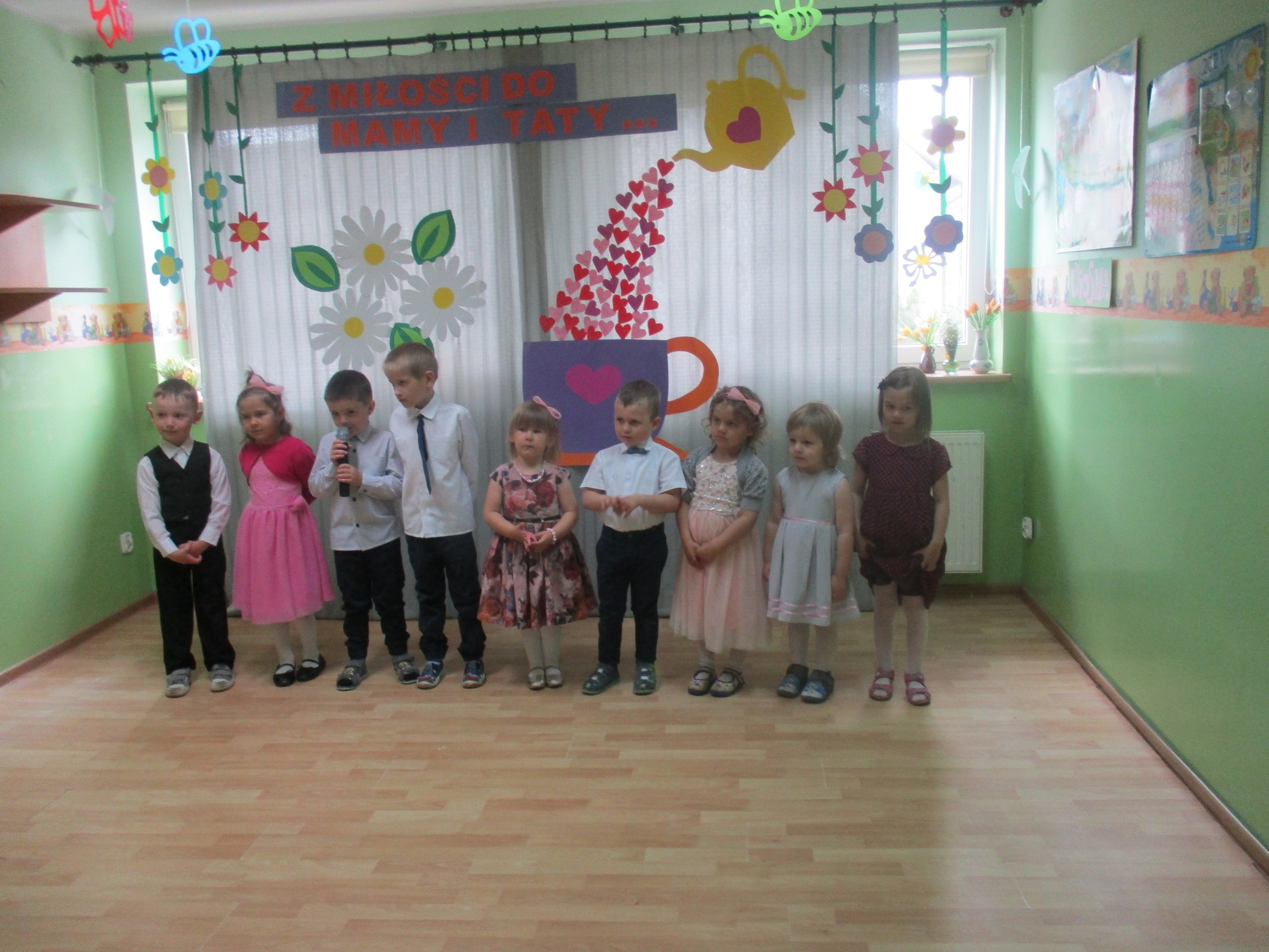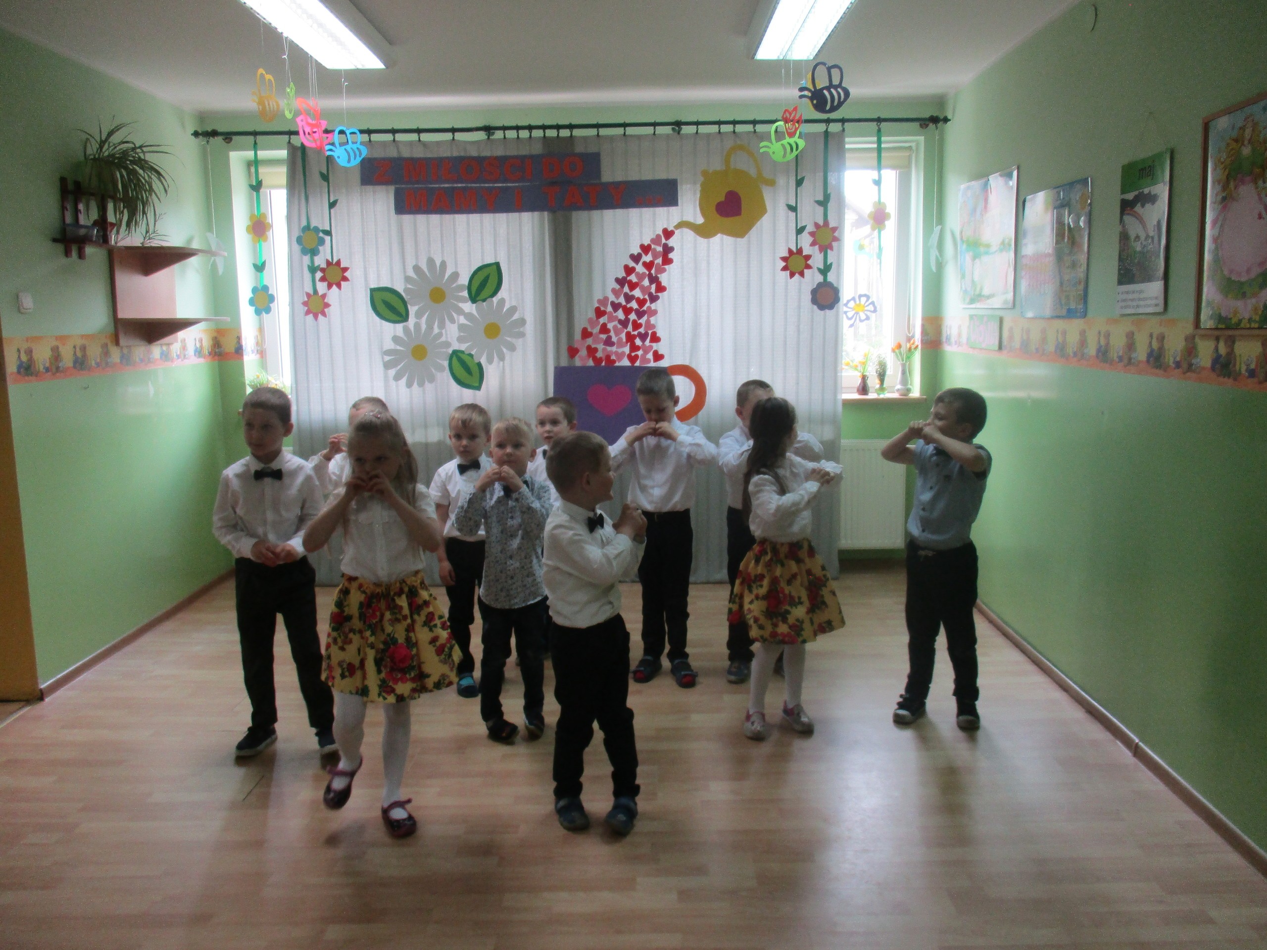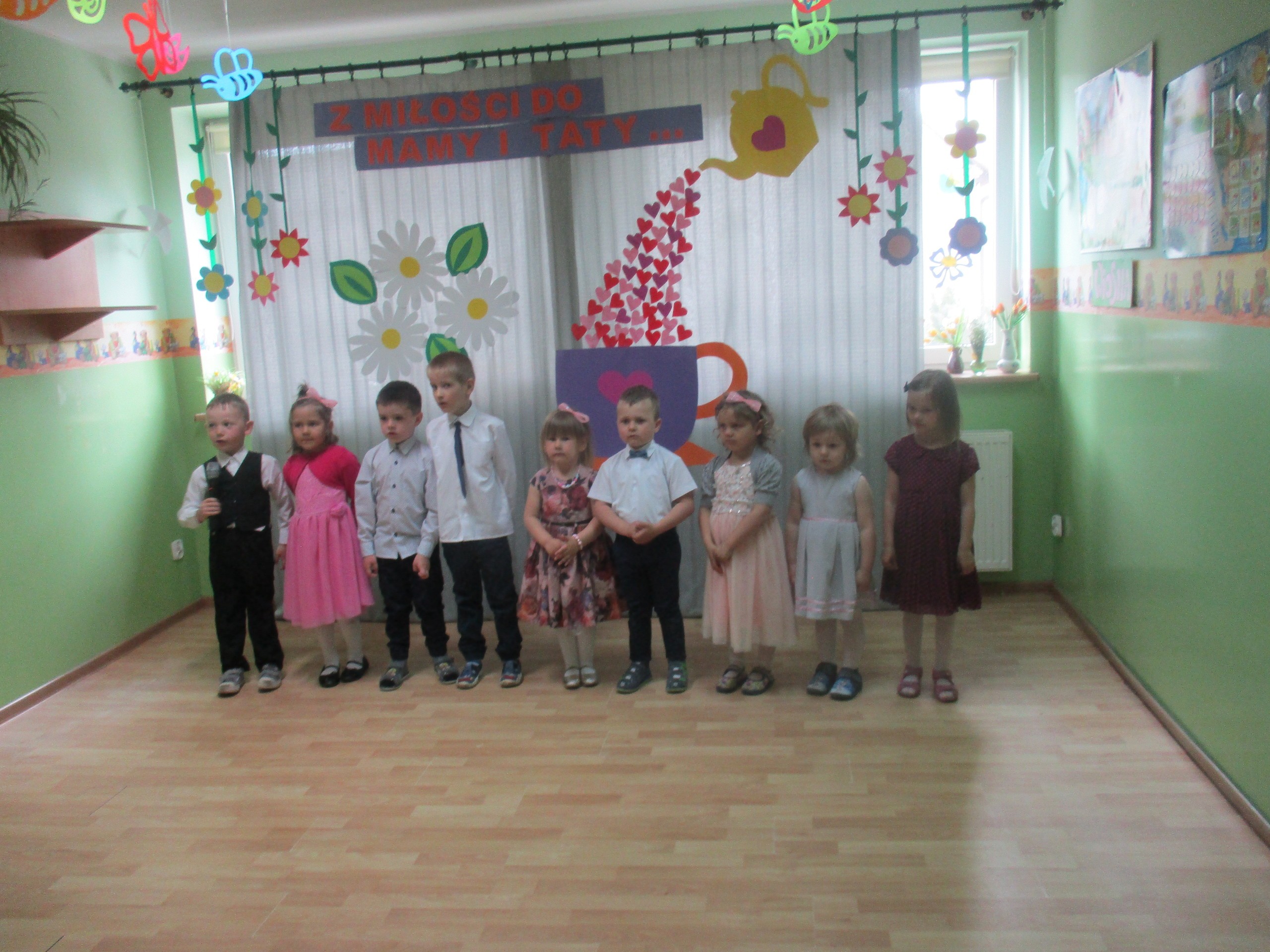 Dzisiaj w naszym przedszkolu odbyła się uroczystość z okazji Święta Mamy i Taty. Przedszkolaki przyszły tego dnia odświętnie ubrane. Młodsze i starsze dzieci zaprezentowały wiersze dla rodziców, zaśpiewały piosenki tematycznie związane z Dniem Mamy i Taty oraz zademonstrowały swoje umiejętności taneczne. Przedszkolaki zabrały ze sobą do domu laurki i upominki dla swoich ukochanych rodziców, które zostały przygotowane przez Nich w przedszkolu.