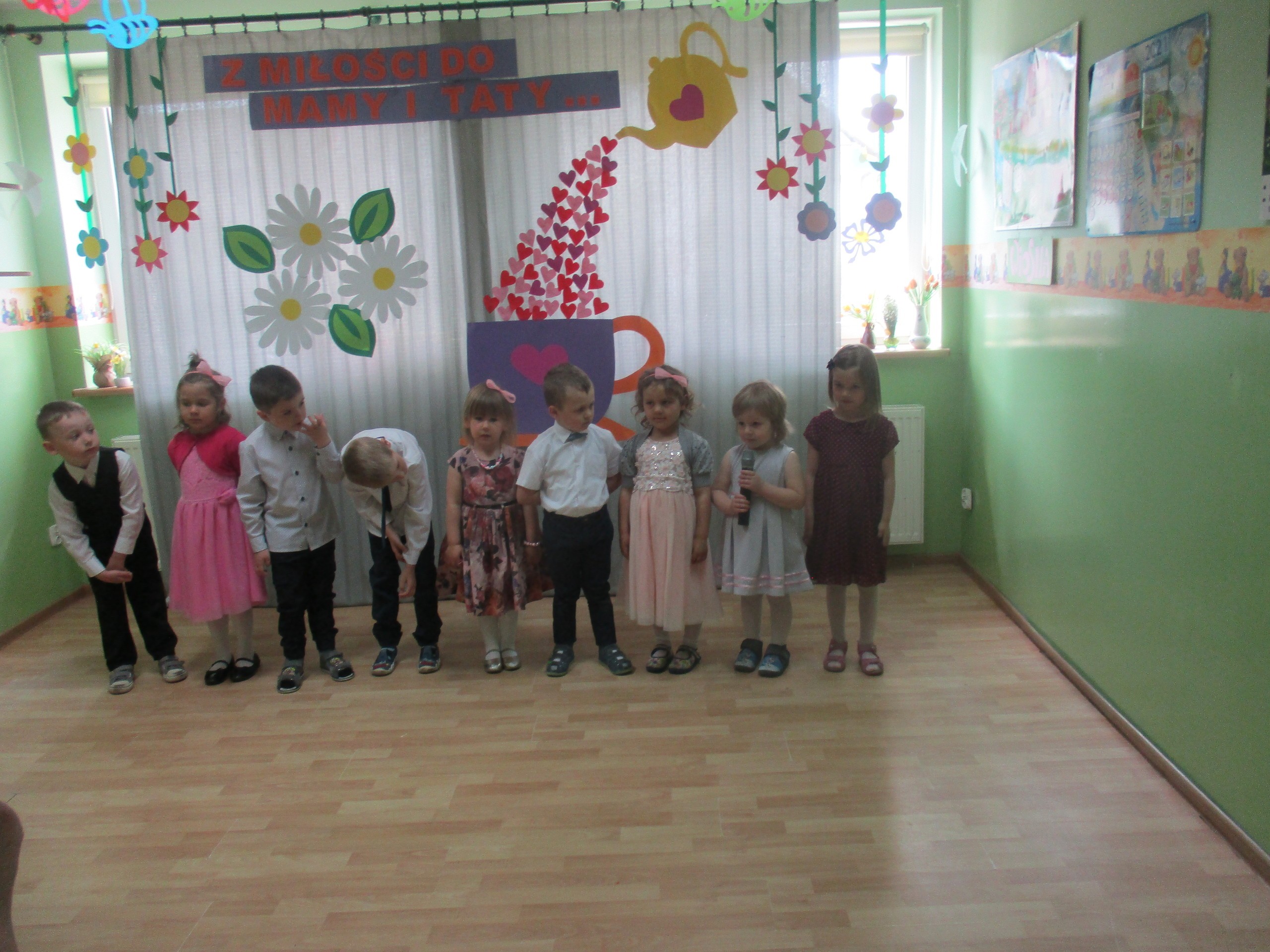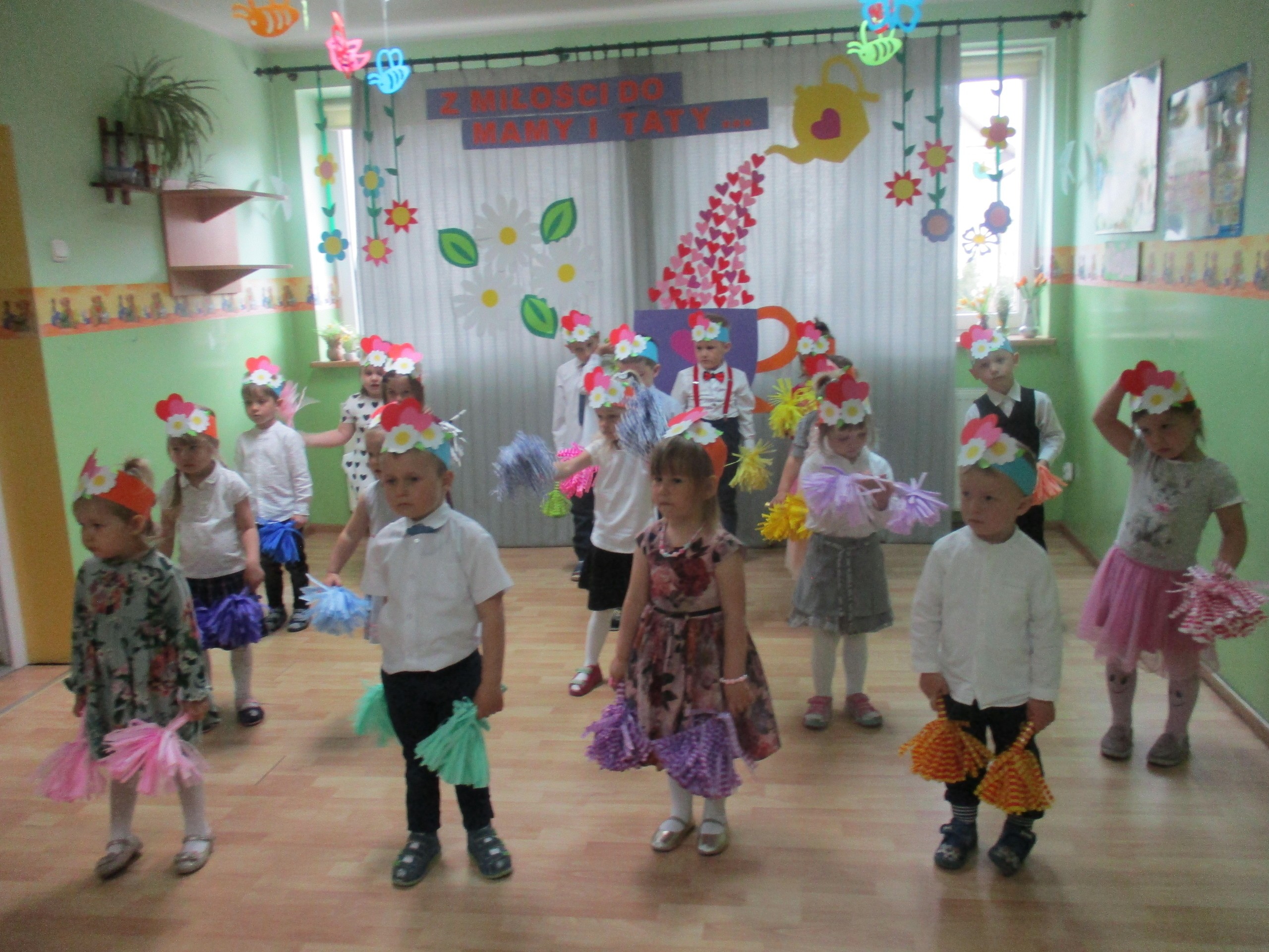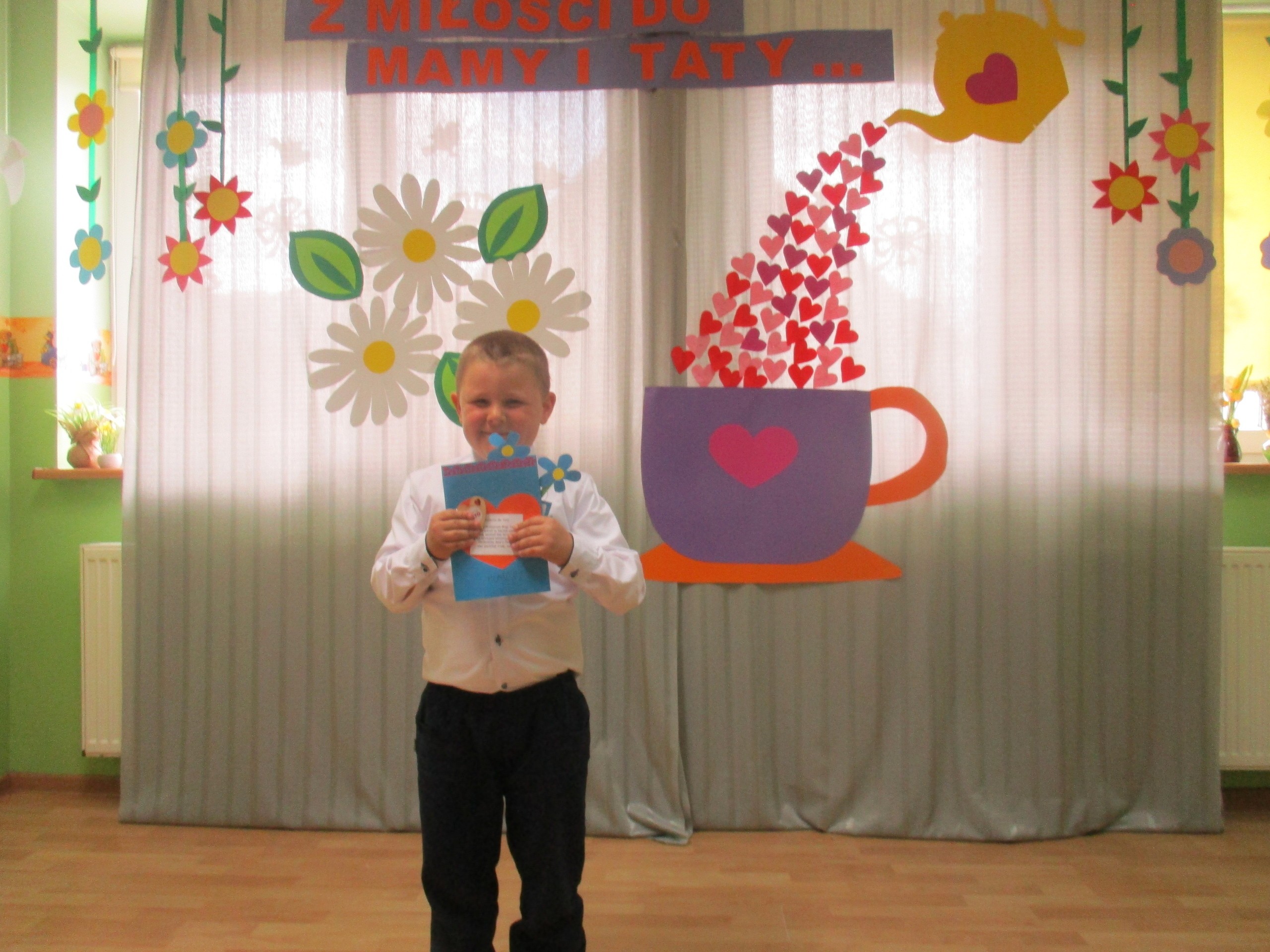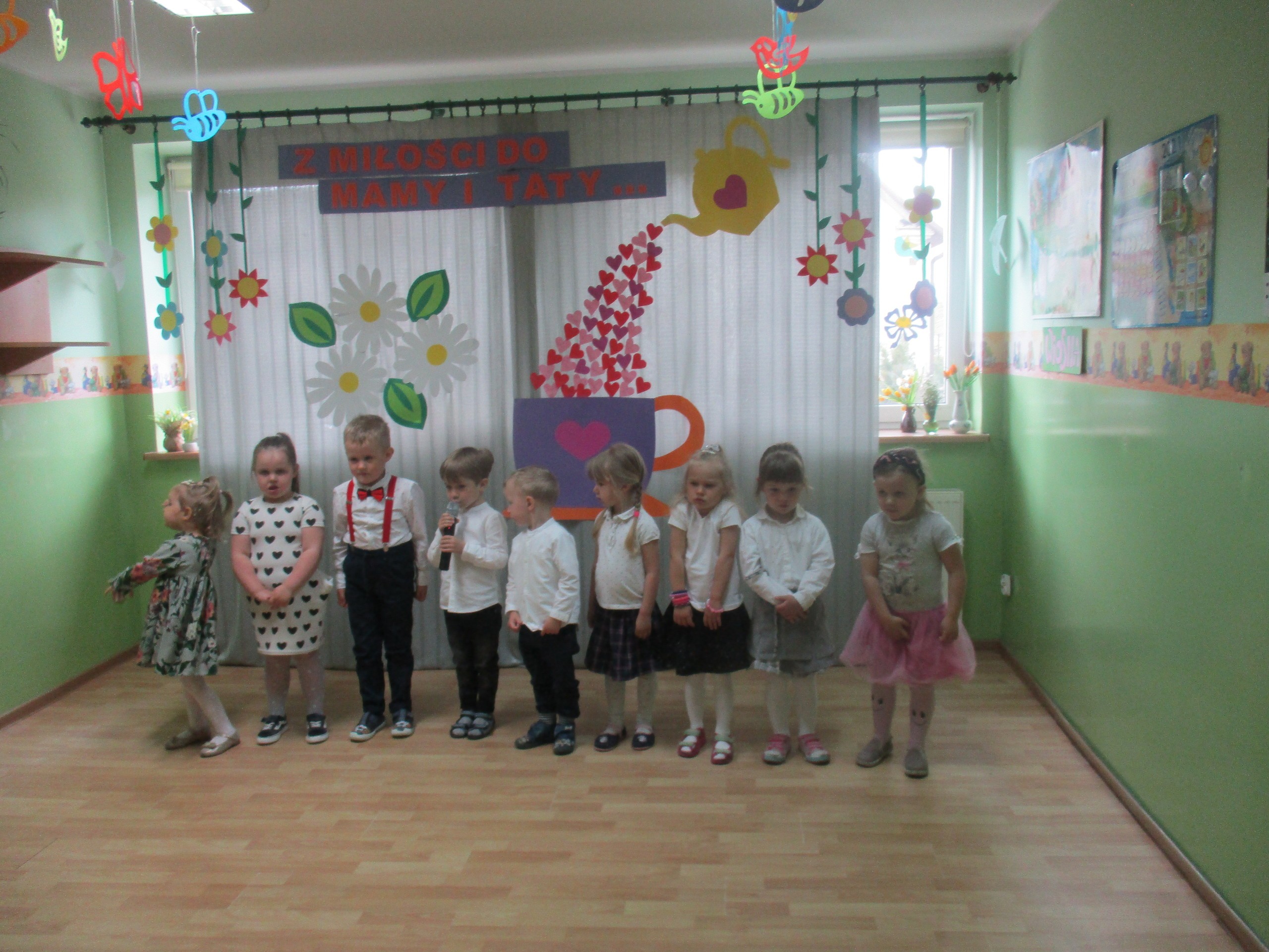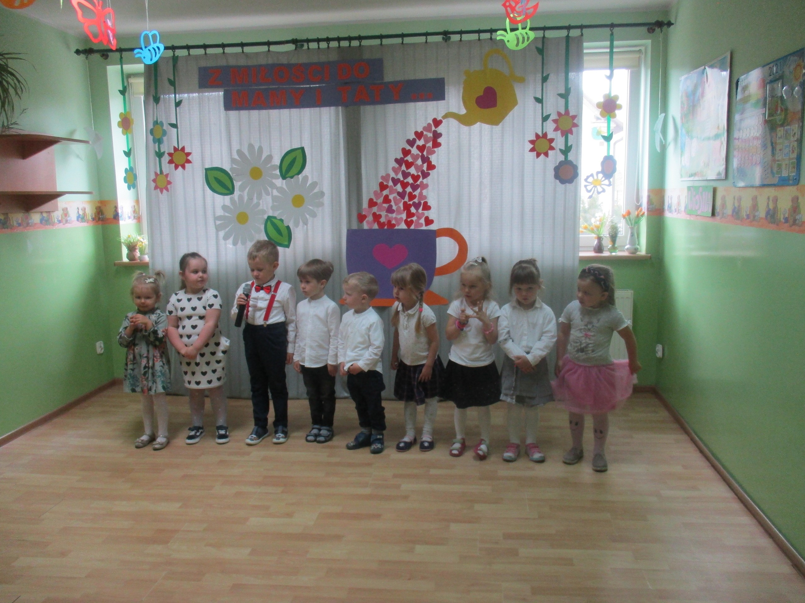 Dzisiaj w naszym przedszkolu odbyła się uroczystość z okazji Święta Mamy i Taty. Przedszkolaki przyszły tego dnia odświętnie ubrane. Młodsze i starsze dzieci zaprezentowały wiersze dla rodziców, zaśpiewały piosenki tematycznie związane z Dniem Mamy i Taty oraz zademonstrowały swoje umiejętności taneczne. Przedszkolaki zabrały ze sobą do domu laurki i upominki dla swoich ukochanych rodziców, które zostały przygotowane przez Nich w przedszkolu.