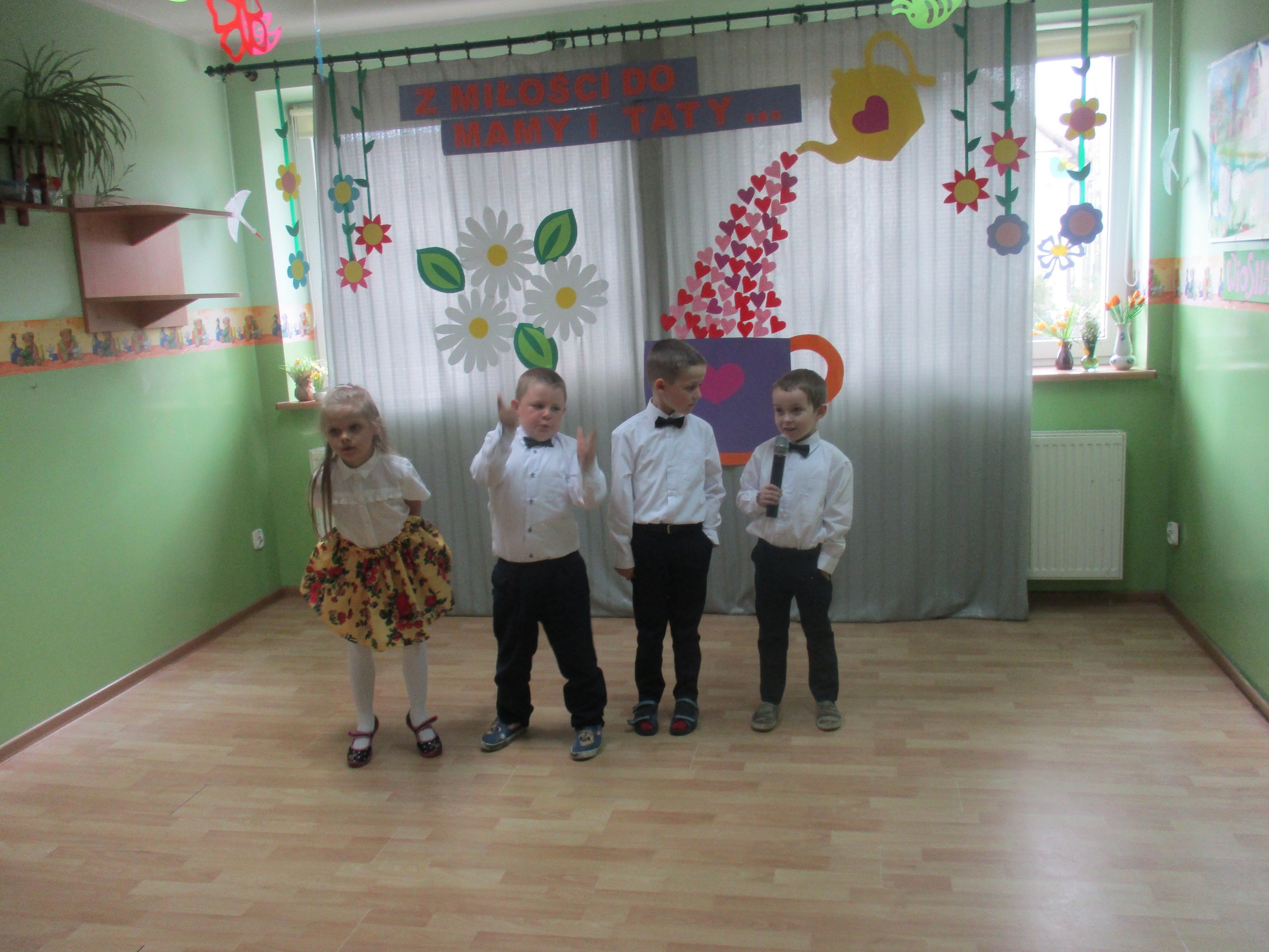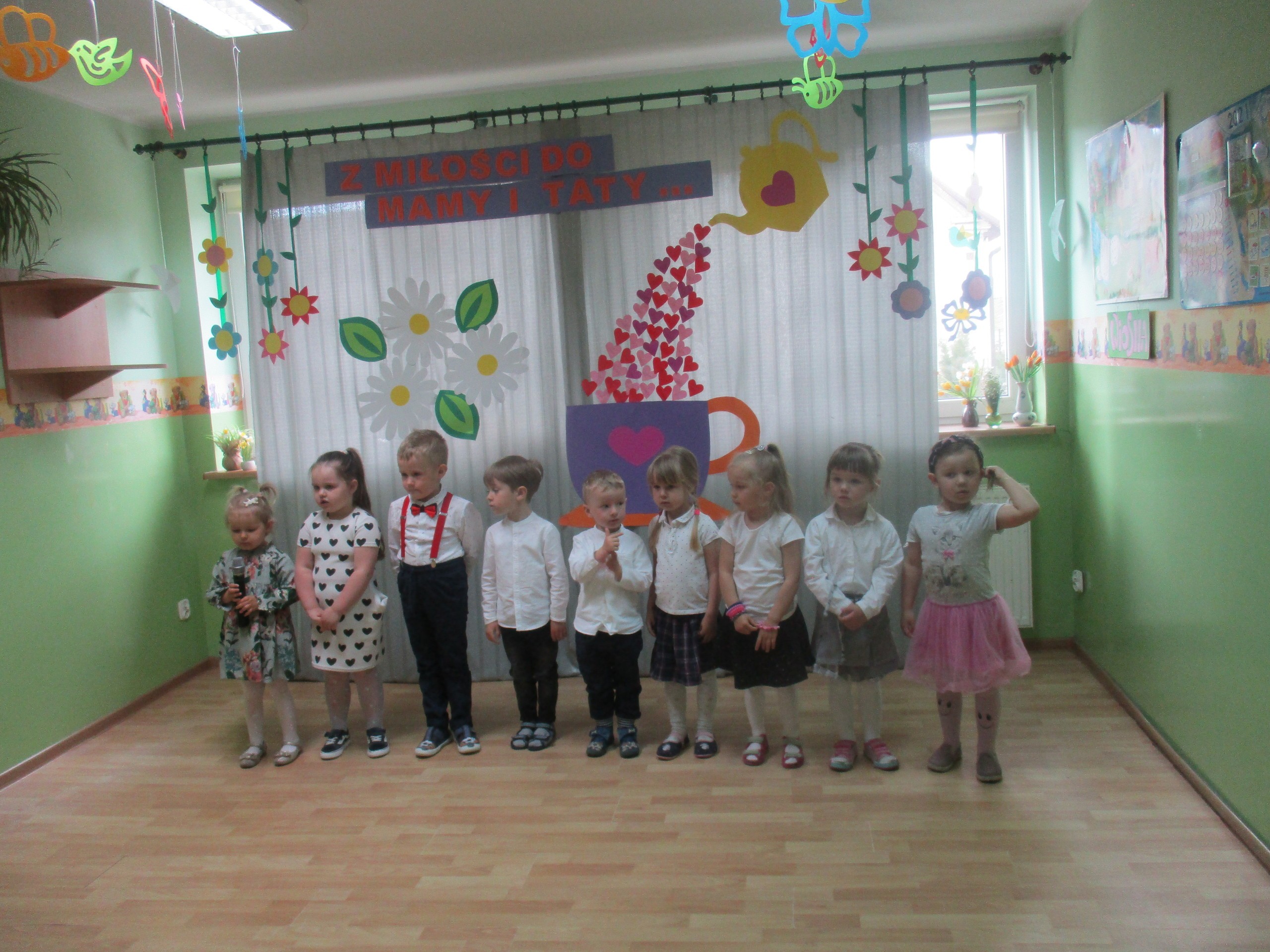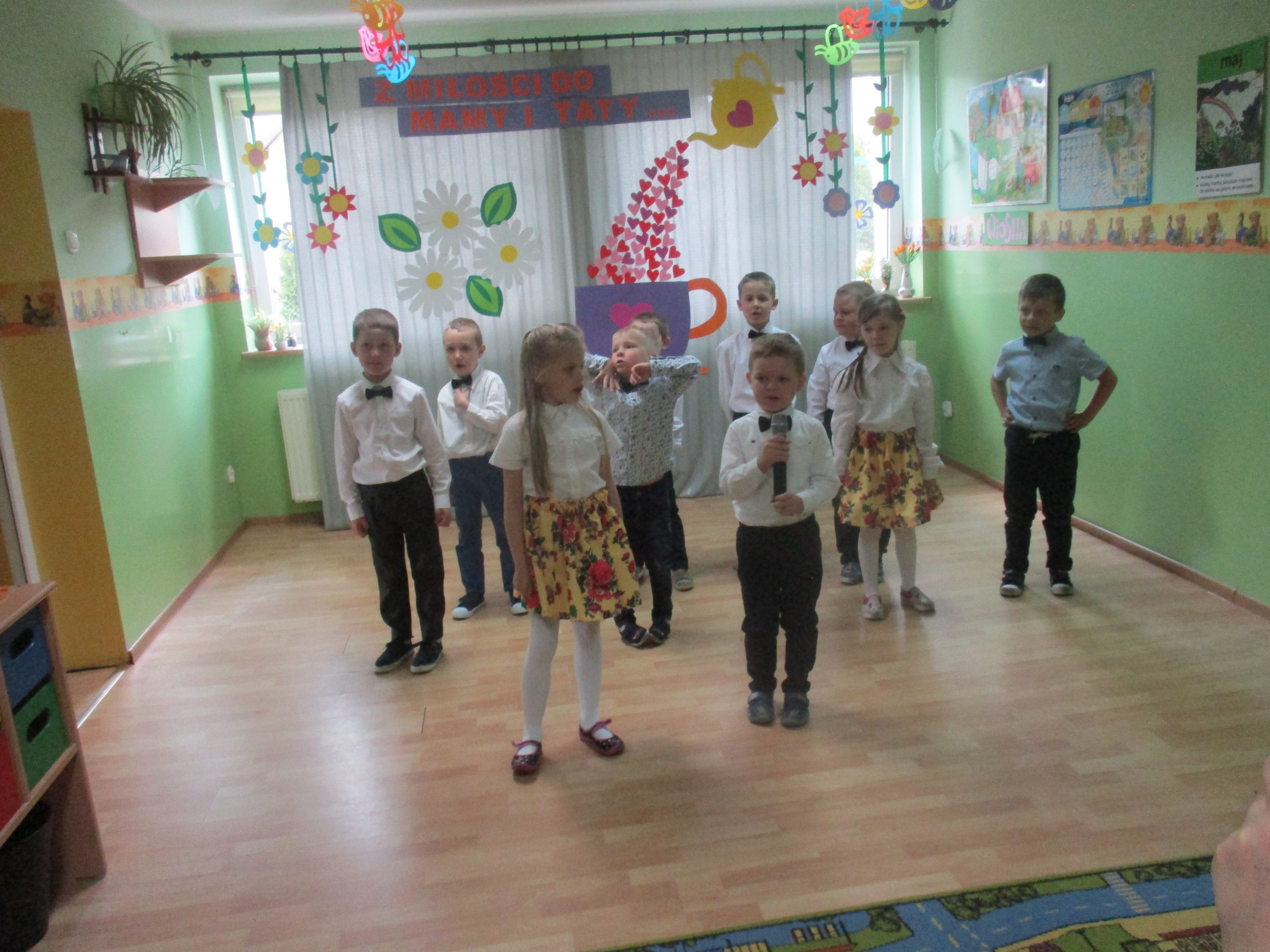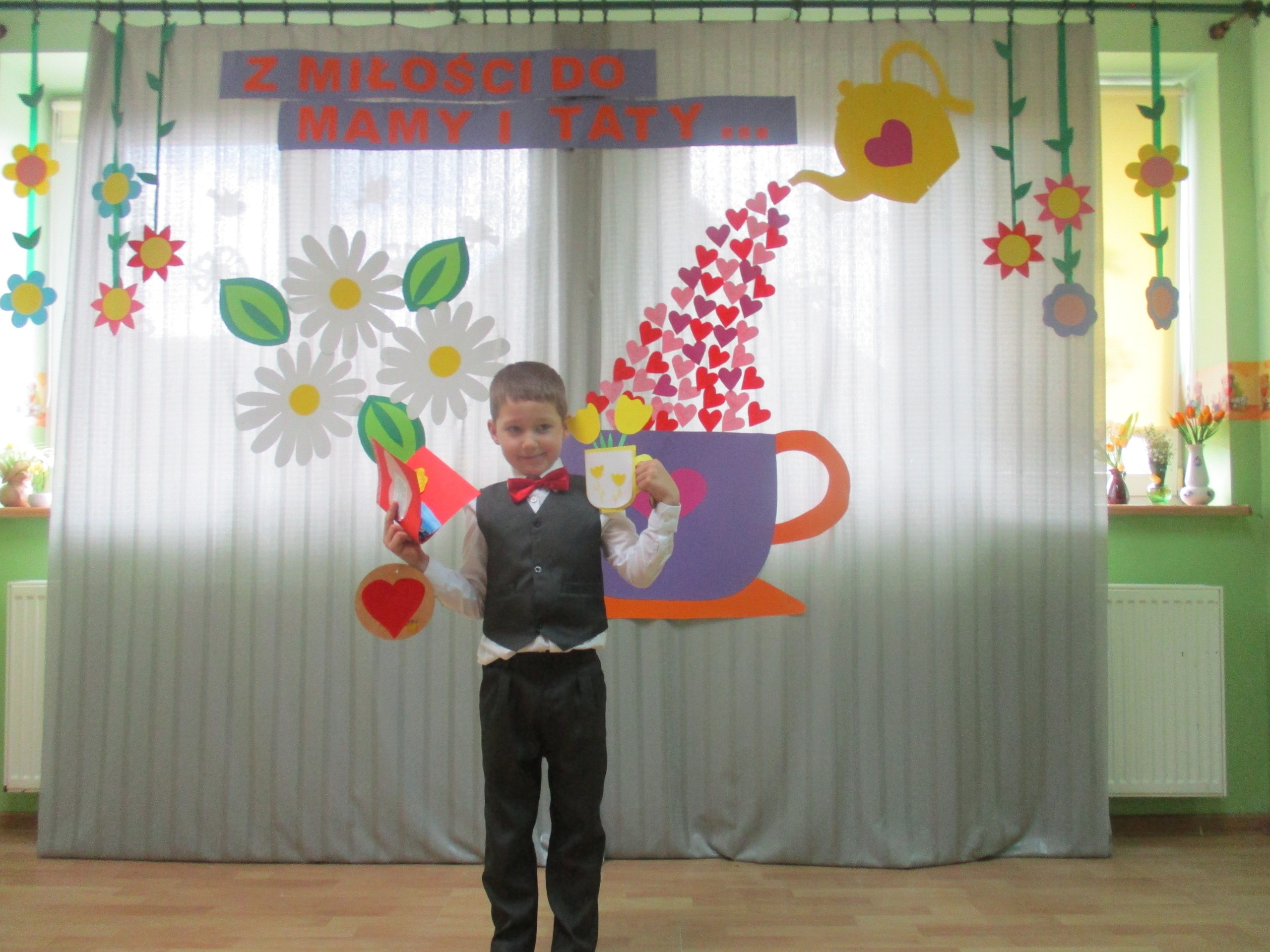 Dzisiaj w naszym przedszkolu odbyła się uroczystość z okazji Święta Mamy i Taty. Przedszkolaki przyszły tego dnia odświętnie ubrane. Młodsze i starsze dzieci zaprezentowały wiersze dla rodziców, zaśpiewały piosenki tematycznie związane z Dniem Mamy i Taty oraz zademonstrowały swoje umiejętności taneczne. Przedszkolaki zabrały ze sobą do domu laurki i upominki dla swoich ukochanych rodziców, które zostały przygotowane przez Nich w przedszkolu.