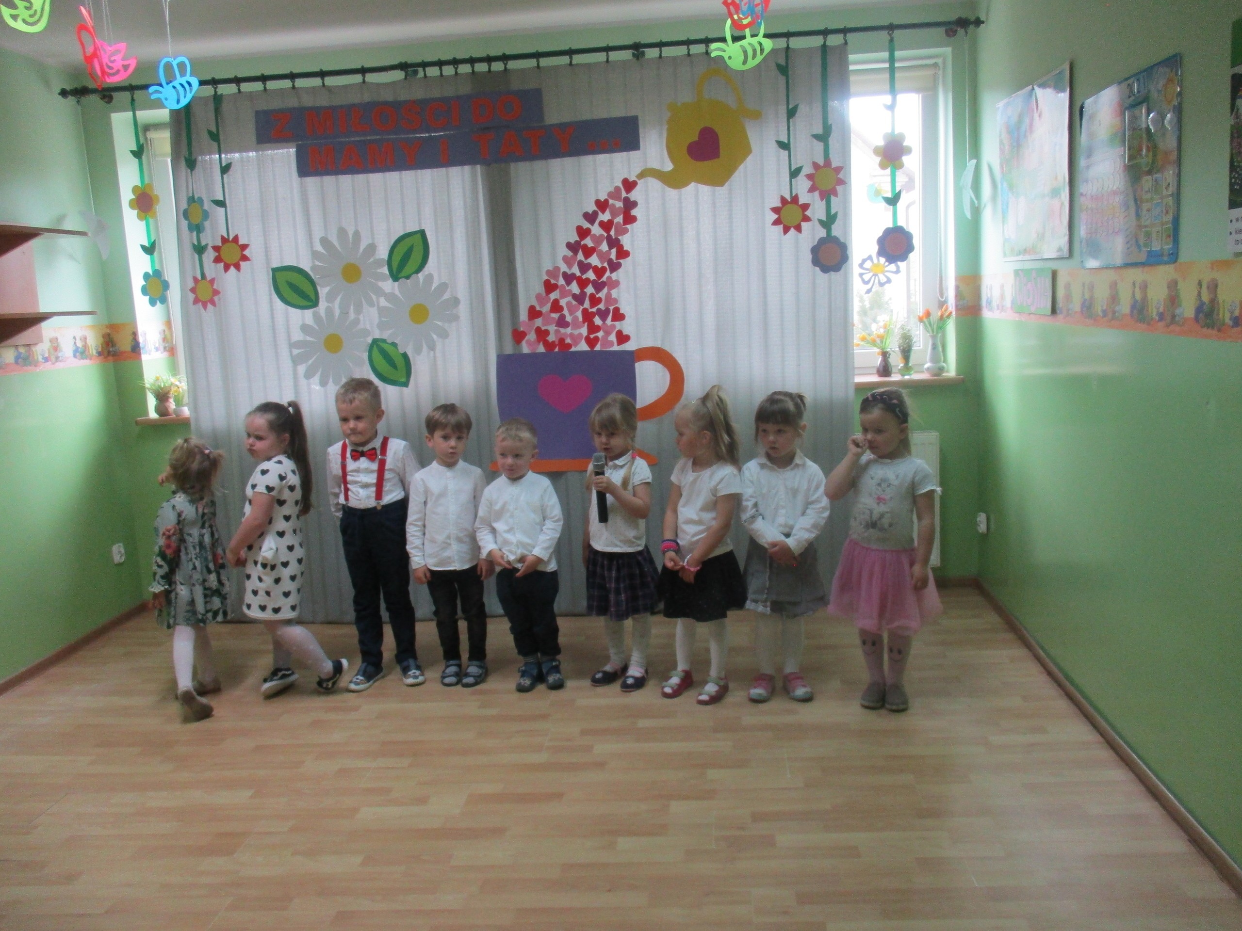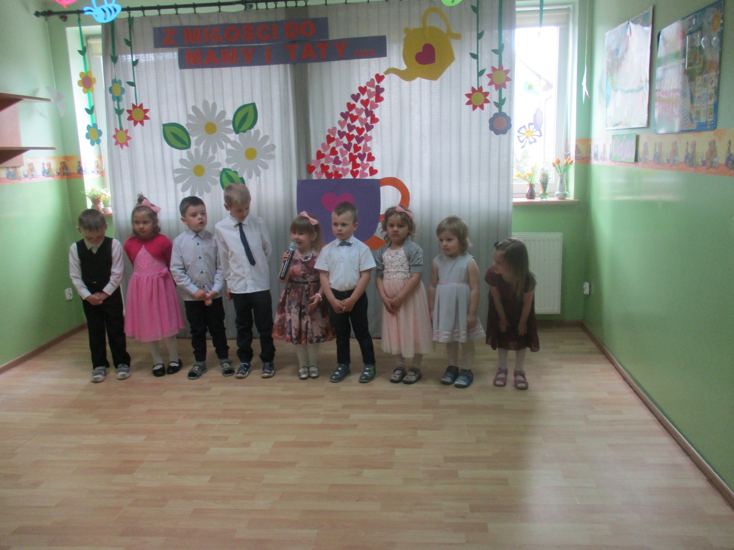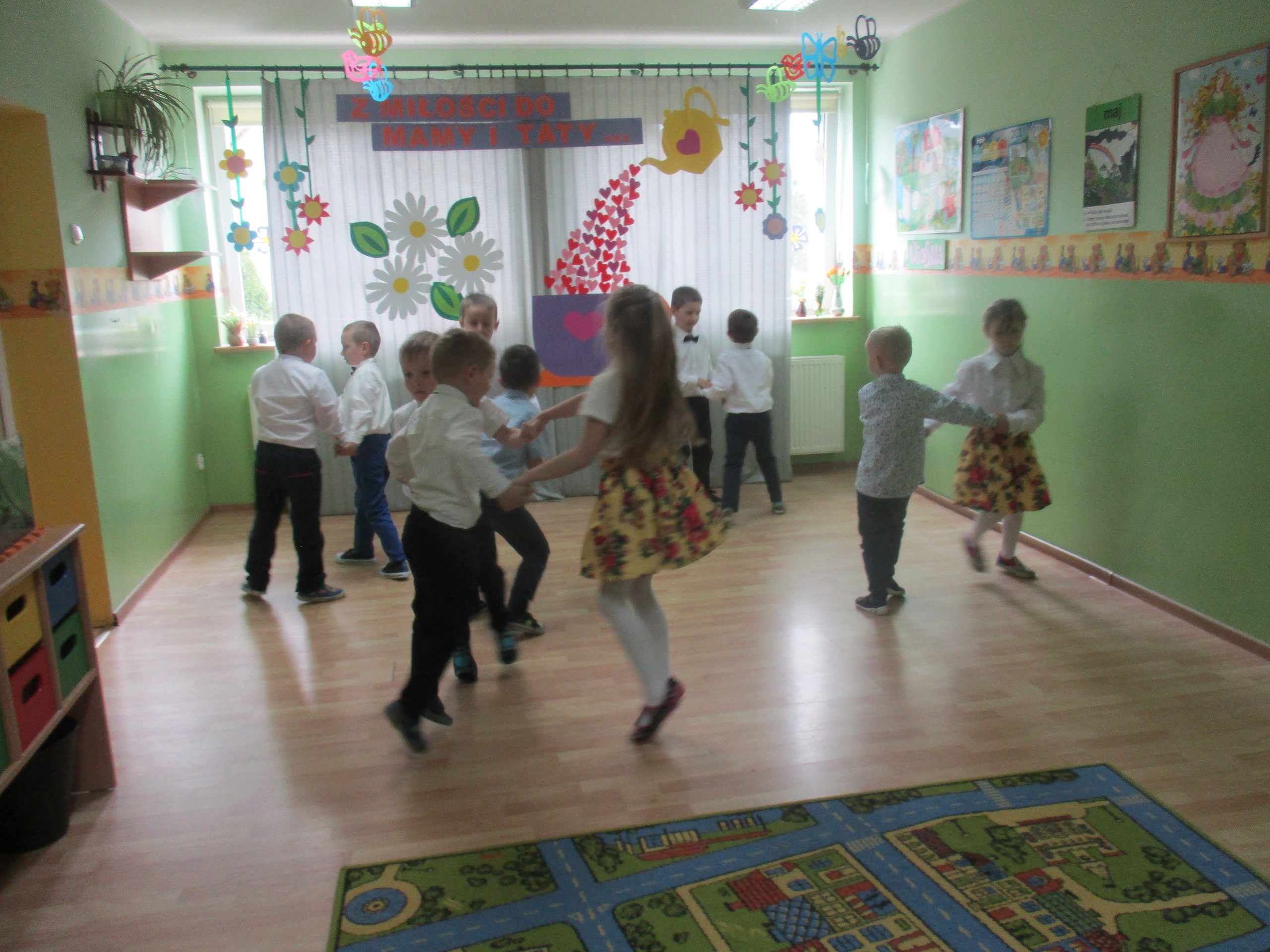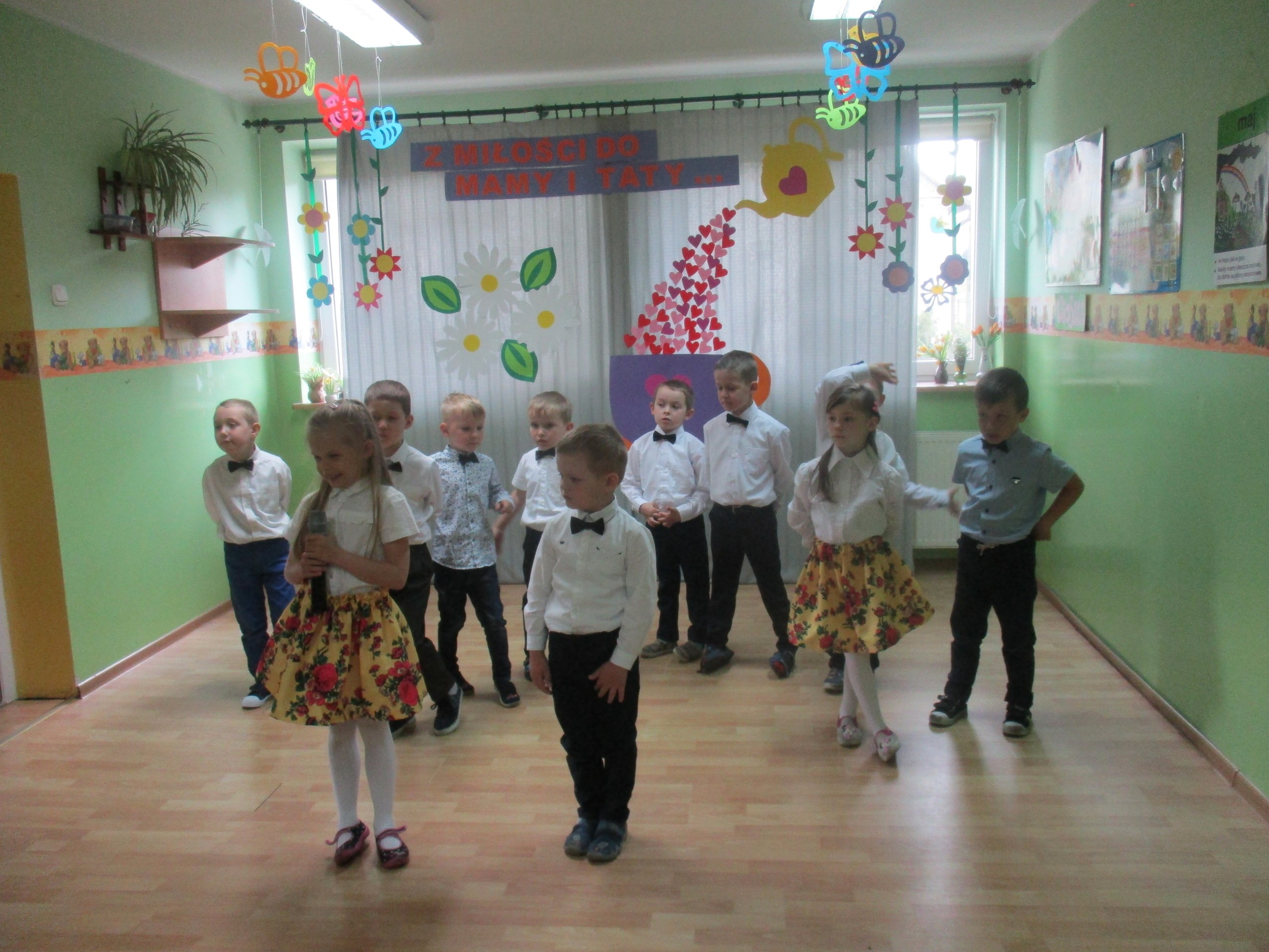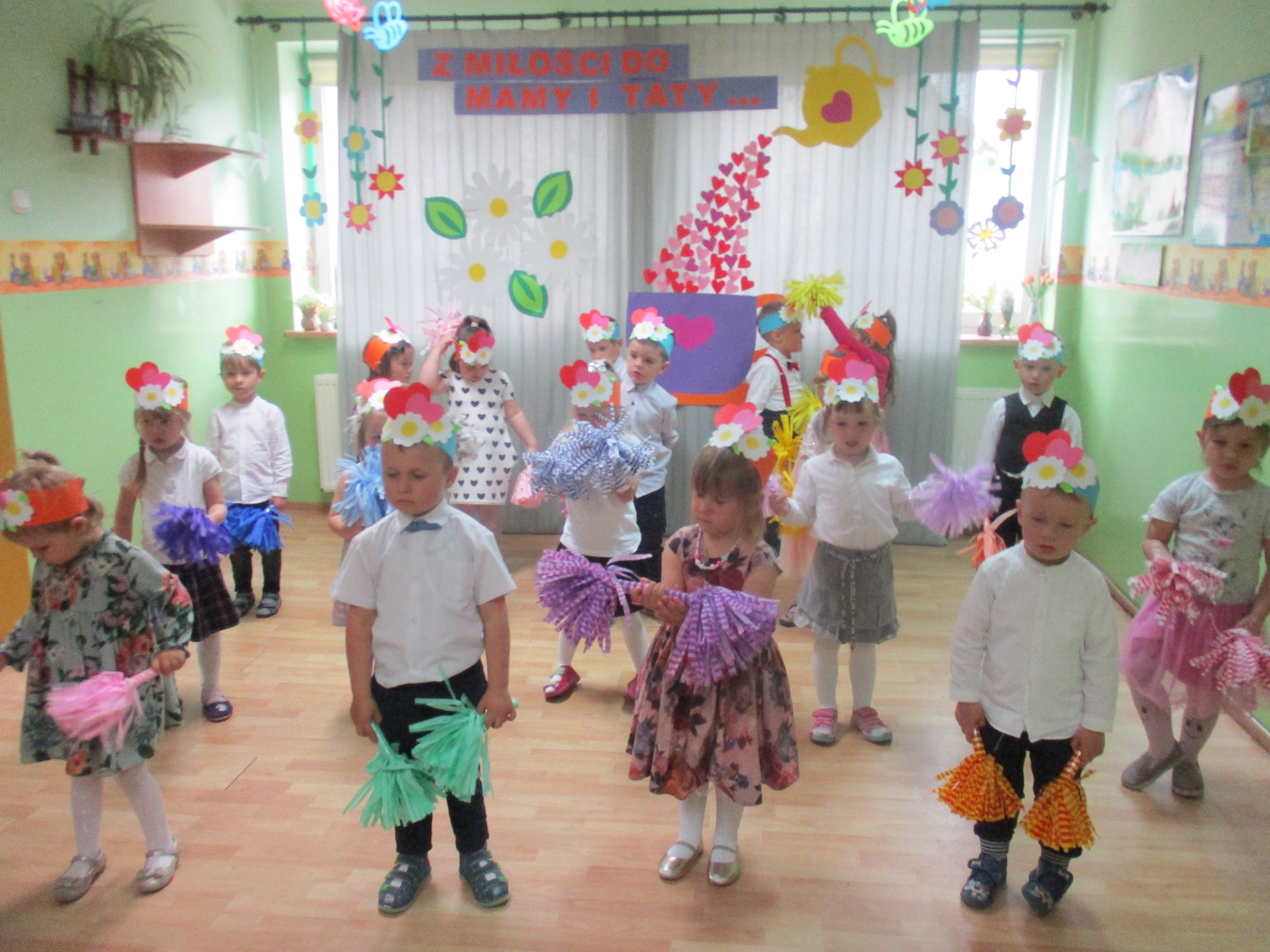Dzisiaj w naszym przedszkolu odbyła się uroczystość z okazji Święta Mamy i Taty. Przedszkolaki przyszły tego dnia odświętnie ubrane. Młodsze i starsze dzieci zaprezentowały wiersze dla rodziców, zaśpiewały piosenki tematycznie związane z Dniem Mamy i Taty oraz zademonstrowały swoje umiejętności taneczne. Przedszkolaki zabrały ze sobą do domu laurki i upominki dla swoich ukochanych rodziców, które zostały przygotowane przez Nich w przedszkolu.