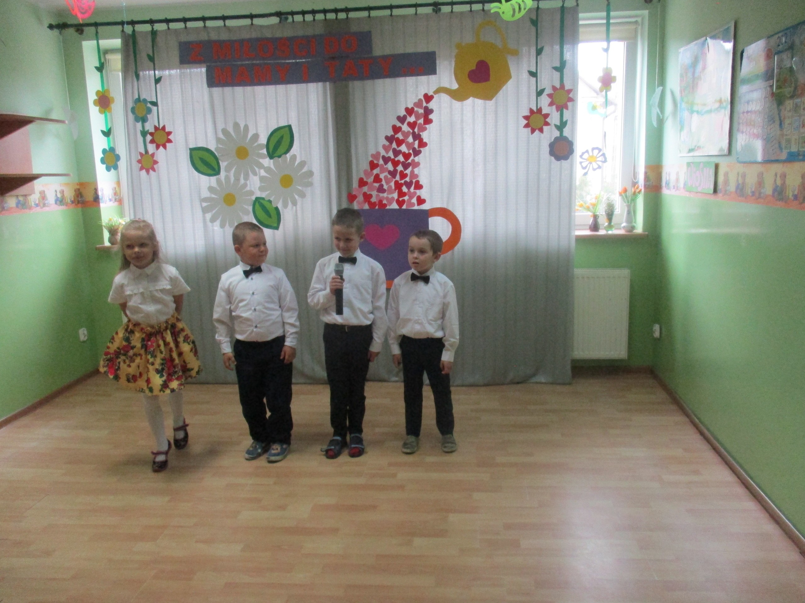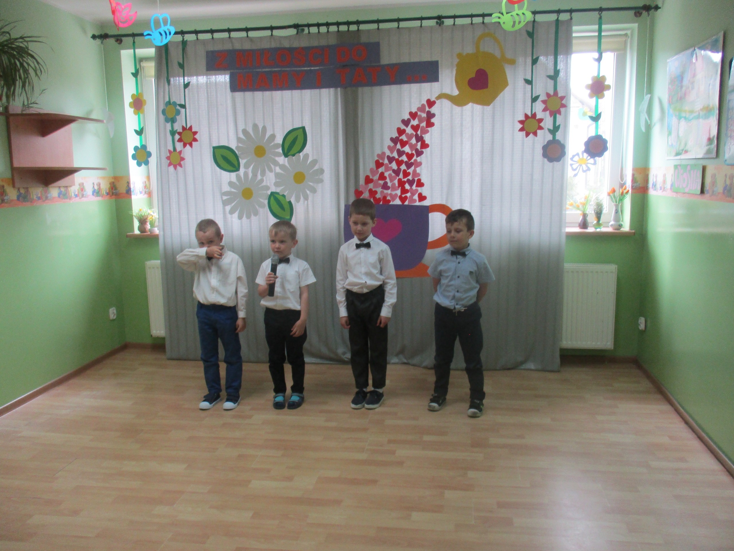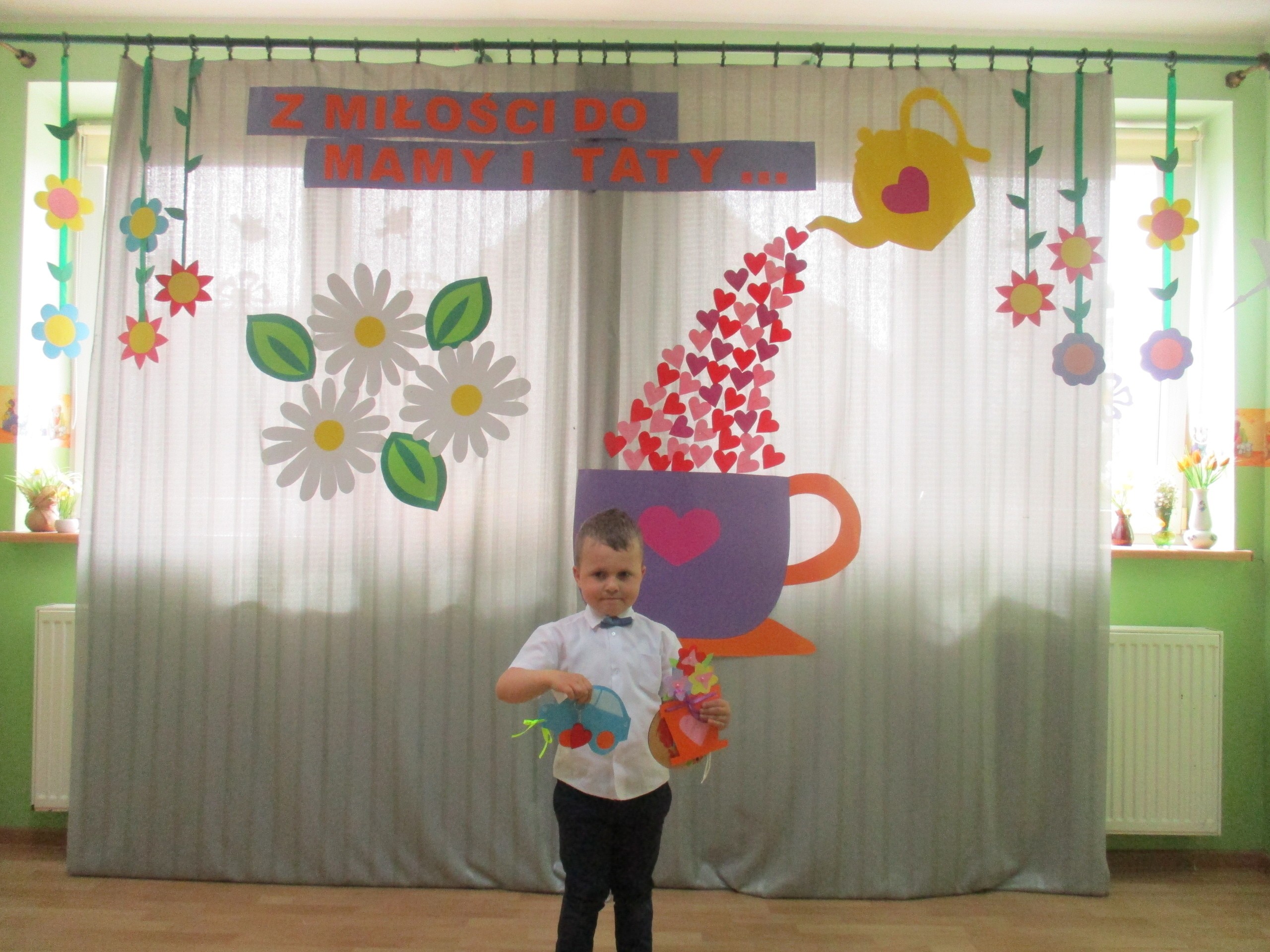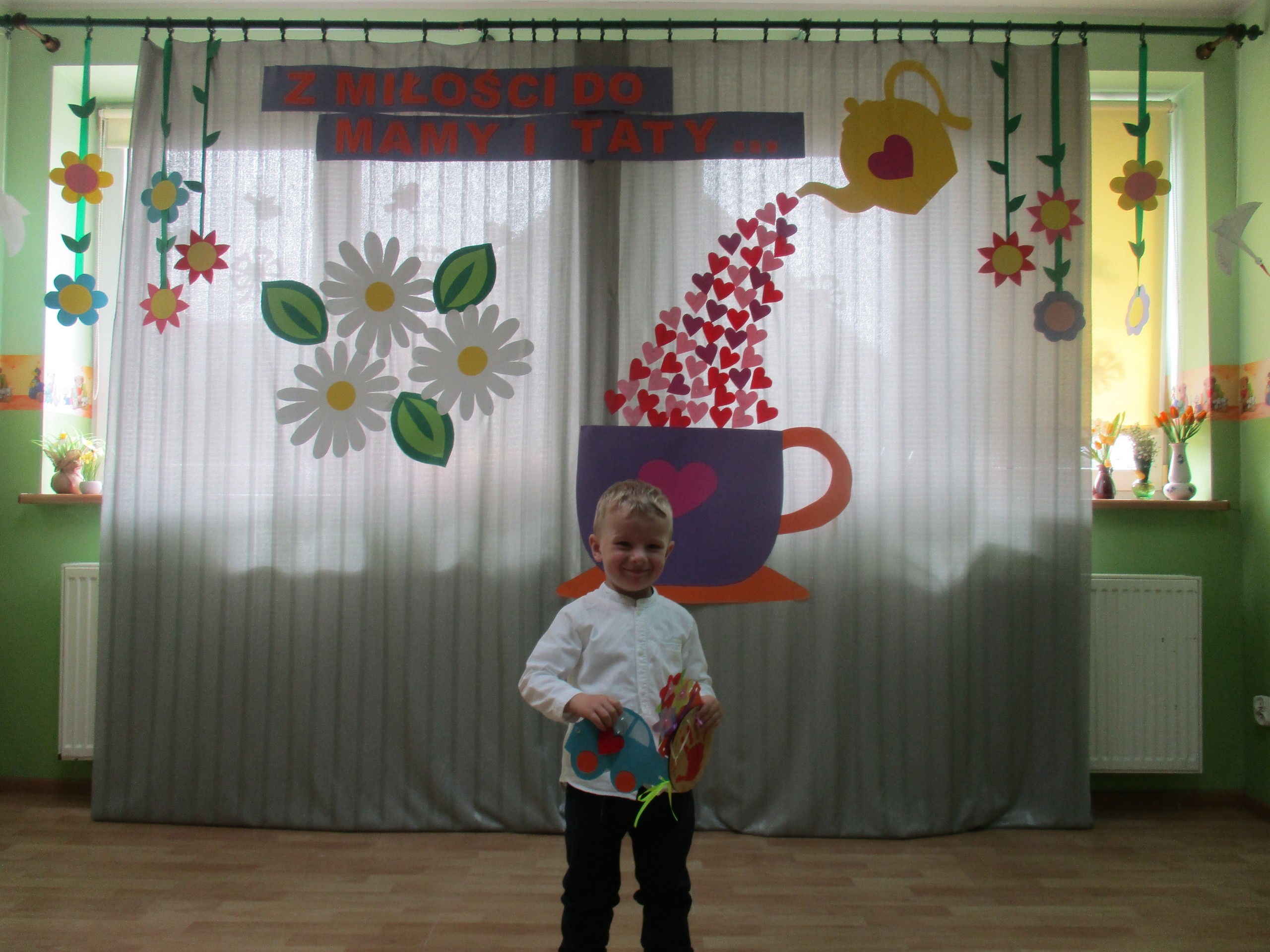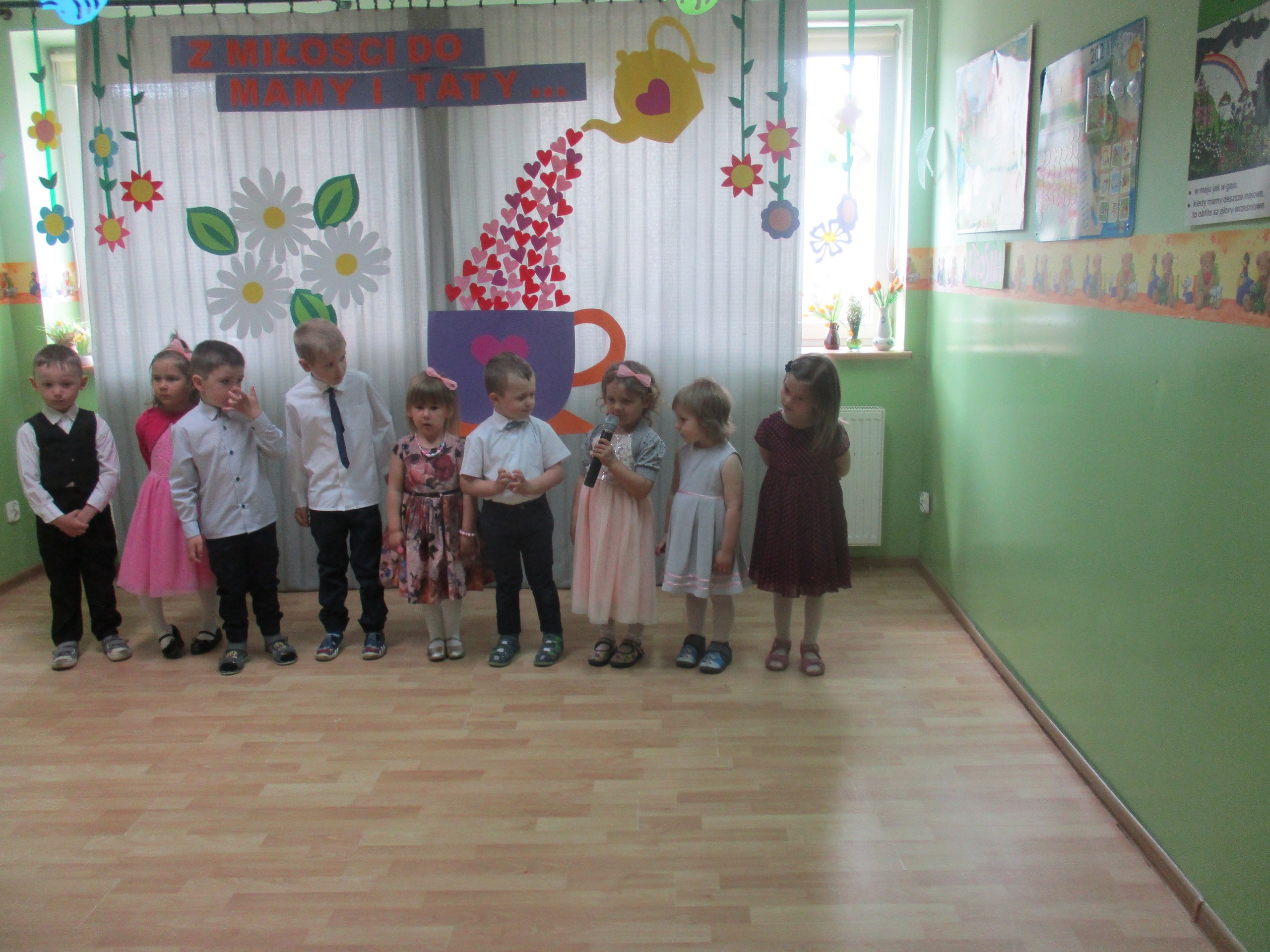 Dzisiaj w naszym przedszkolu odbyła się uroczystość z okazji Święta Mamy i Taty. Przedszkolaki przyszły tego dnia odświętnie ubrane. Młodsze i starsze dzieci zaprezentowały wiersze dla rodziców, zaśpiewały piosenki tematycznie związane z Dniem Mamy i Taty oraz zademonstrowały swoje umiejętności taneczne. Przedszkolaki zabrały ze sobą do domu laurki i upominki dla swoich ukochanych rodziców, które zostały przygotowane przez Nich w przedszkolu.