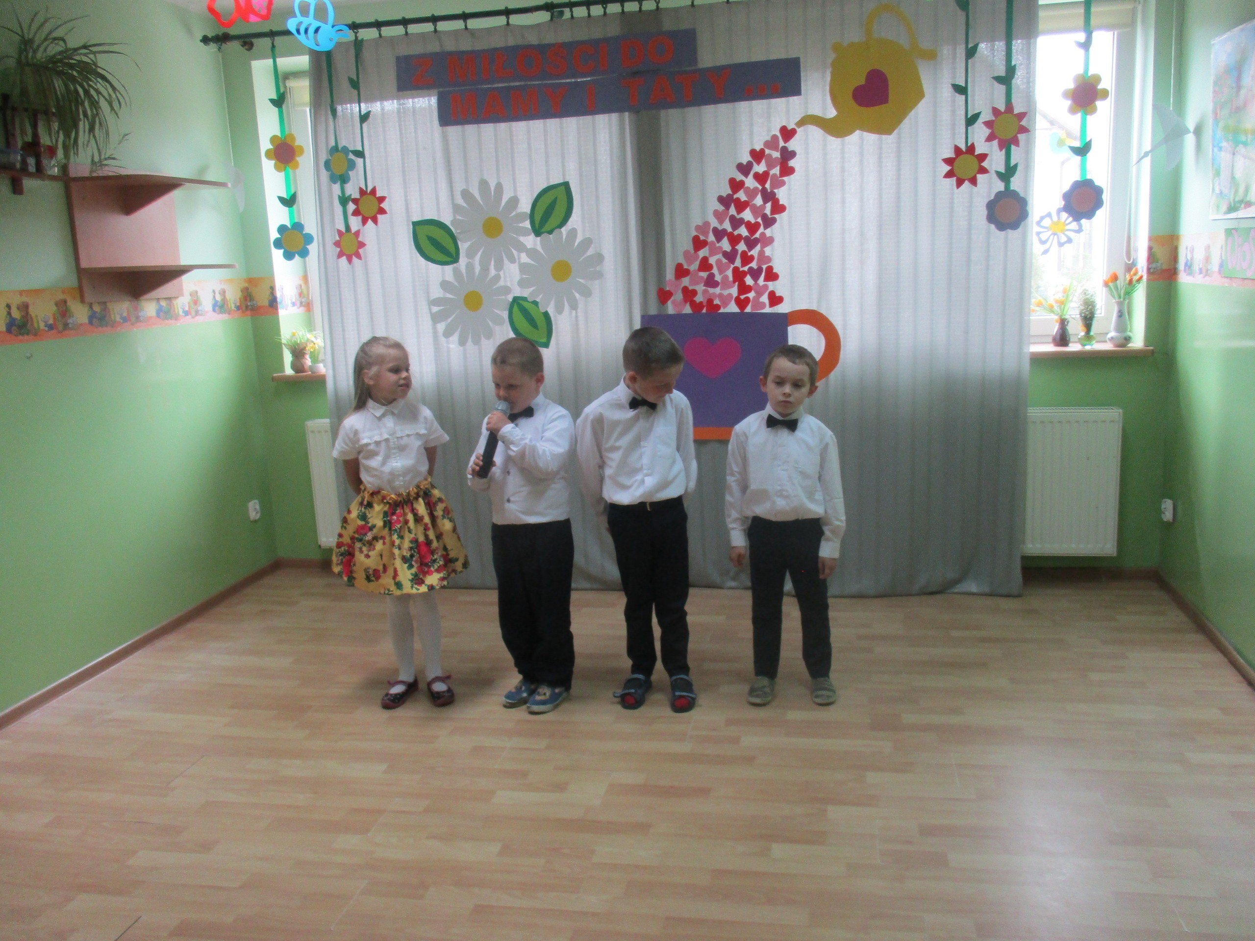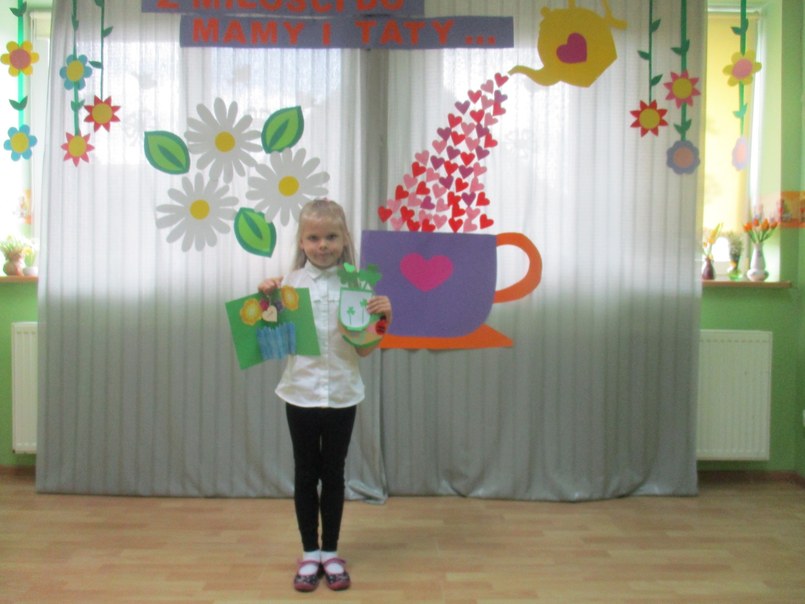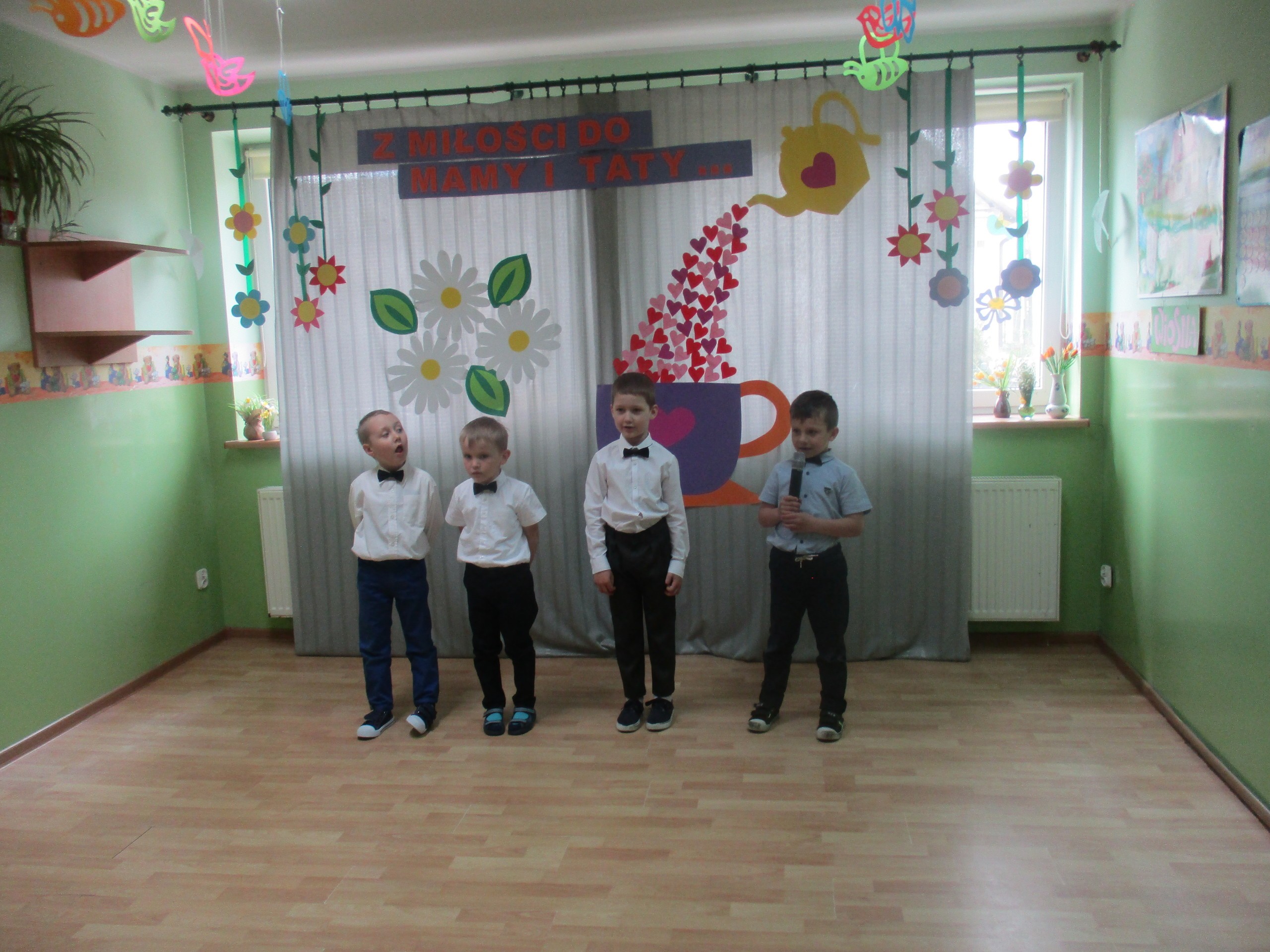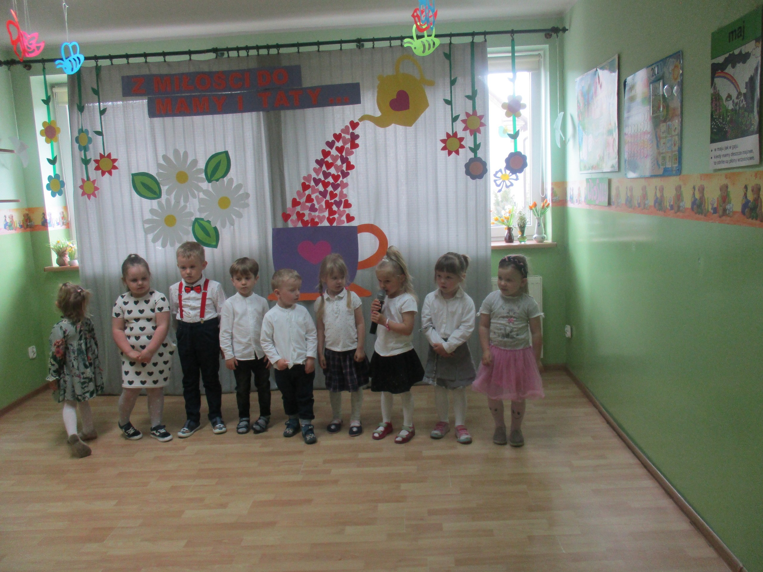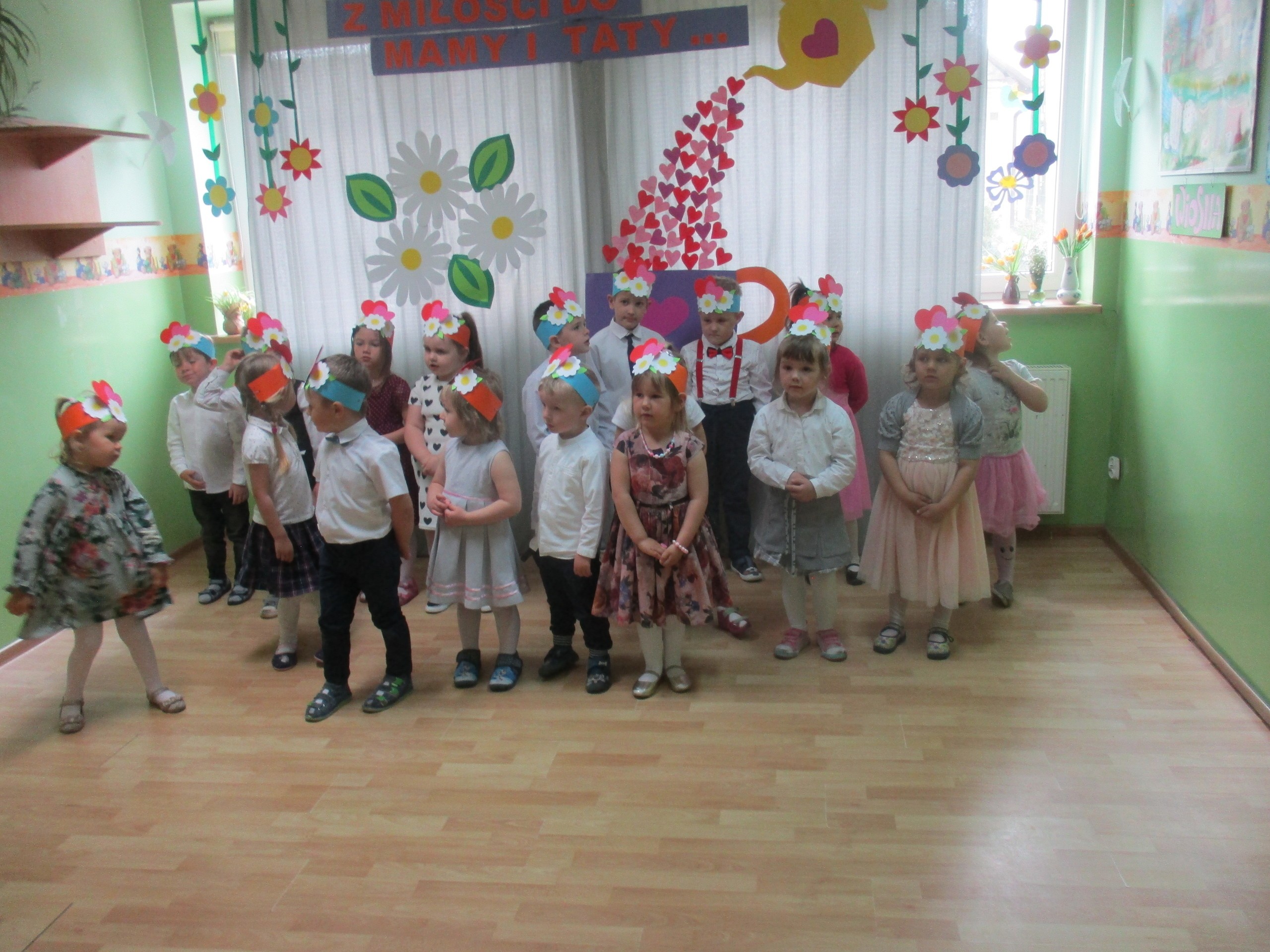 Dzisiaj w naszym przedszkolu odbyła się uroczystość z okazji Święta Mamy i Taty. Przedszkolaki przyszły tego dnia odświętnie ubrane. Młodsze i starsze dzieci zaprezentowały wiersze dla rodziców, zaśpiewały piosenki tematycznie związane z Dniem Mamy i Taty oraz zademonstrowały swoje umiejętności taneczne. Przedszkolaki zabrały ze sobą do domu laurki i upominki dla swoich ukochanych rodziców, które zostały przygotowane przez Nich w przedszkolu.