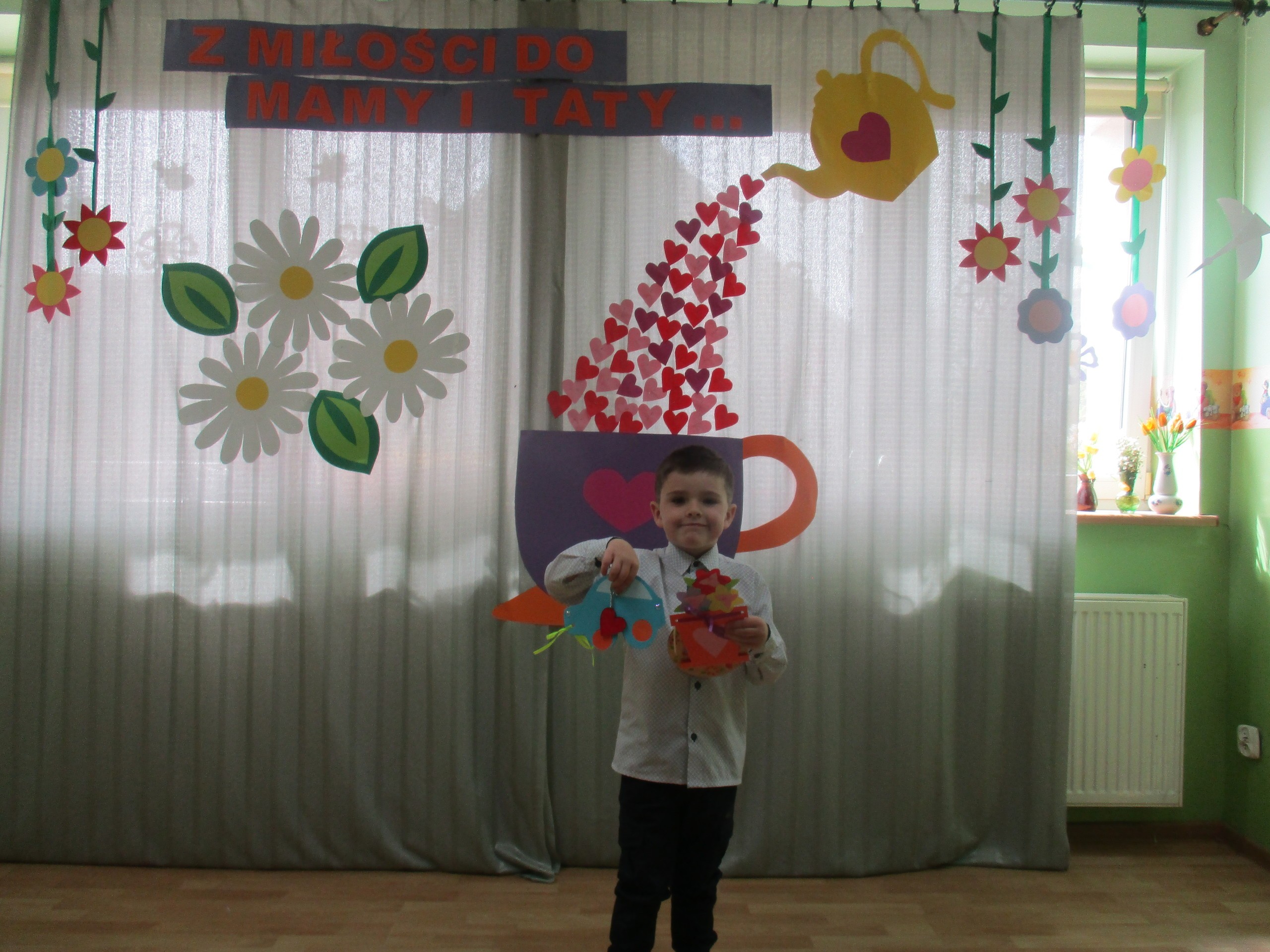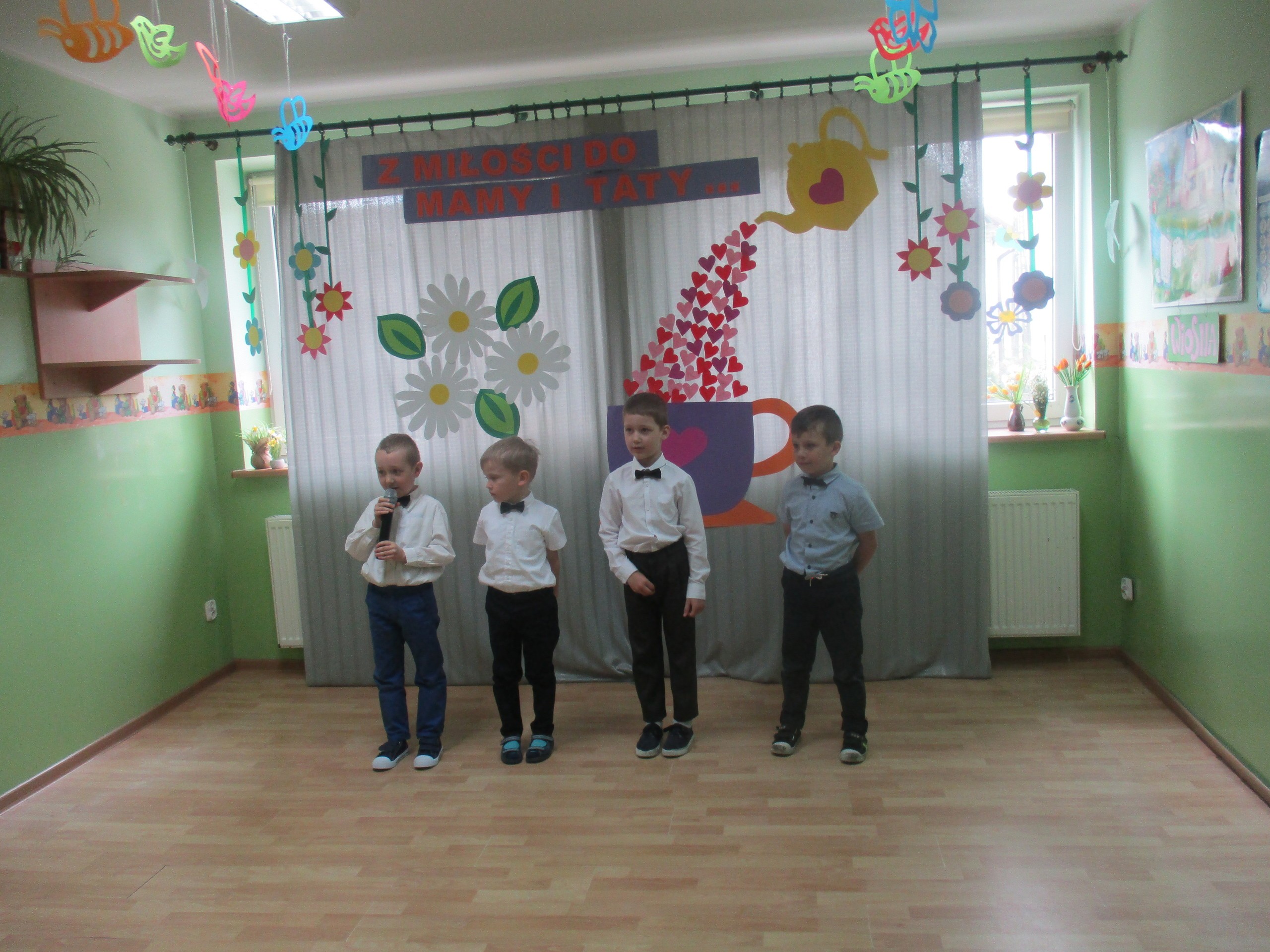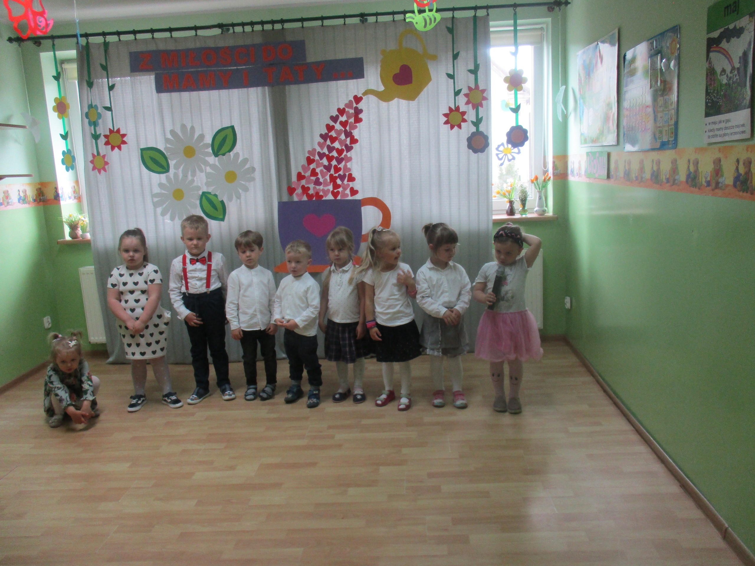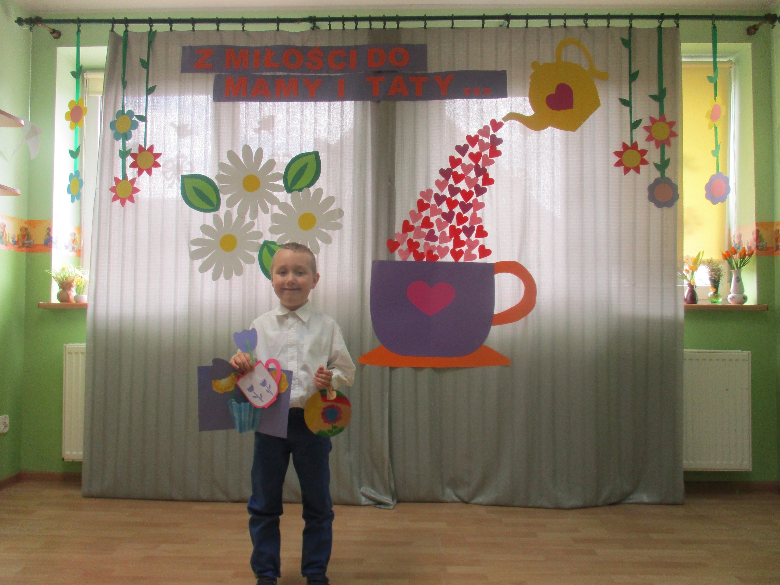 Dzisiaj w naszym przedszkolu odbyła się uroczystość z okazji Święta Mamy i Taty. Przedszkolaki przyszły tego dnia odświętnie ubrane. Młodsze i starsze dzieci zaprezentowały wiersze dla rodziców, zaśpiewały piosenki tematycznie związane z Dniem Mamy i Taty oraz zademonstrowały swoje umiejętności taneczne. Przedszkolaki zabrały ze sobą do domu laurki i upominki dla swoich ukochanych rodziców, które zostały przygotowane przez Nich w przedszkolu.