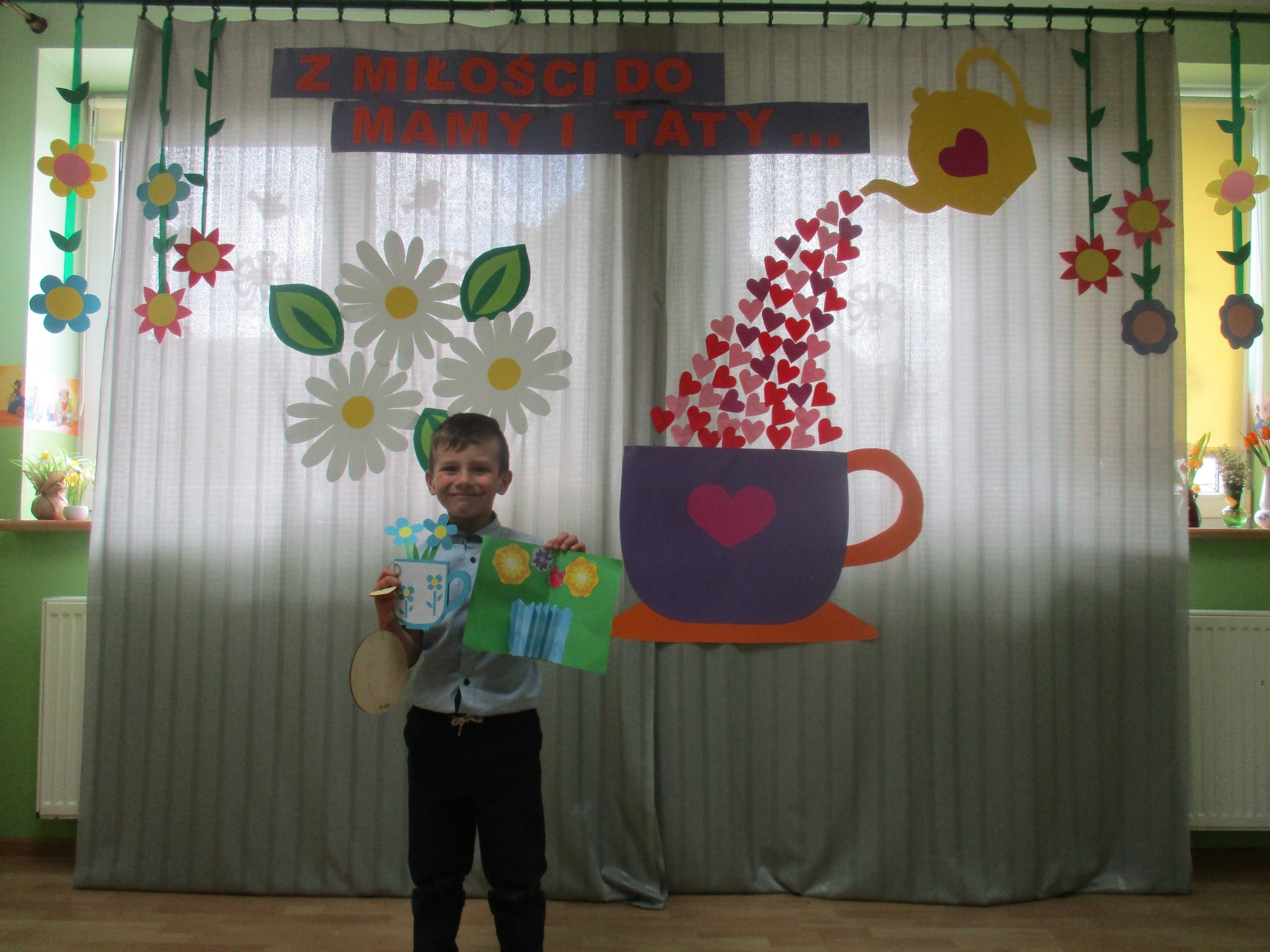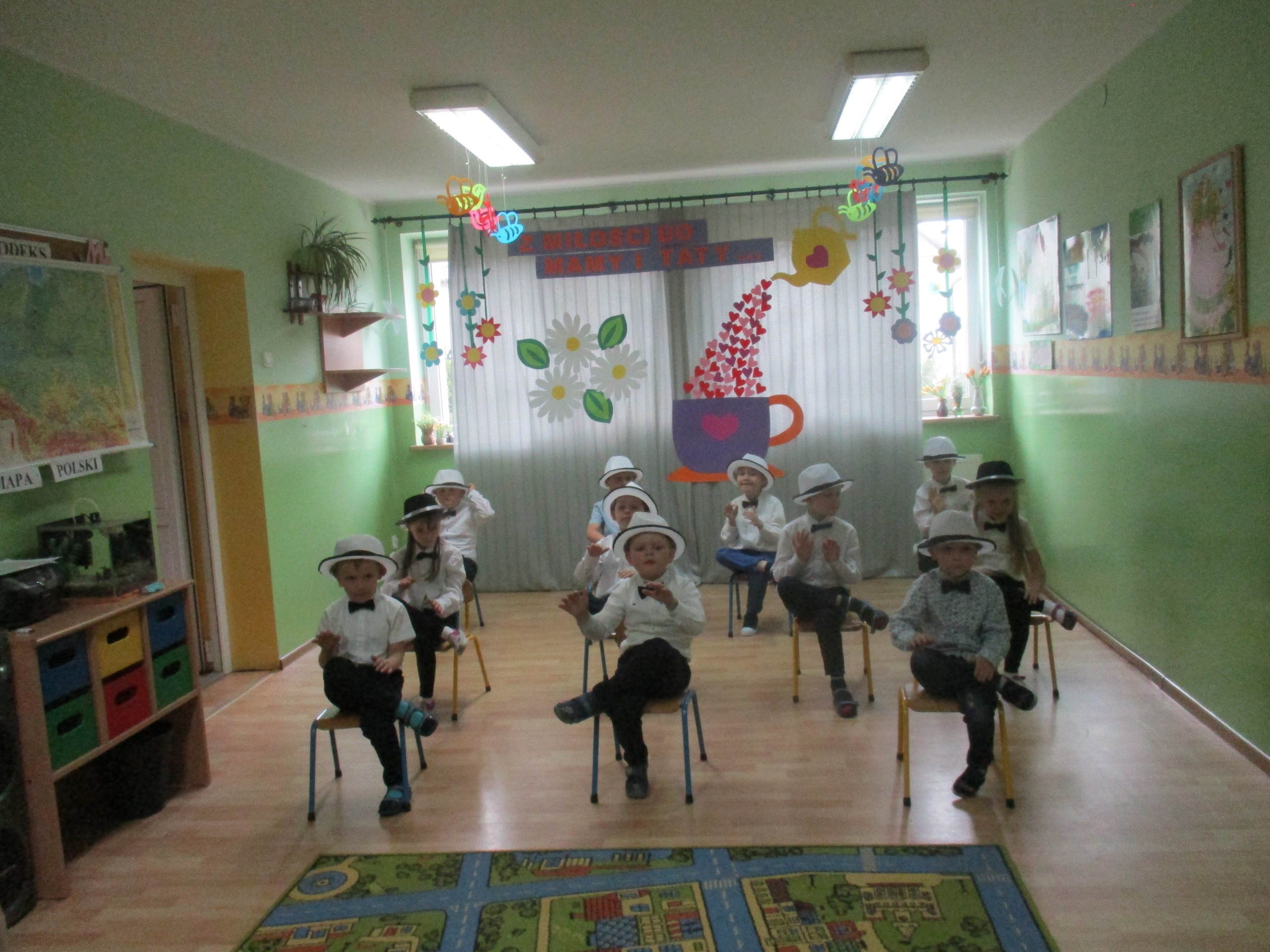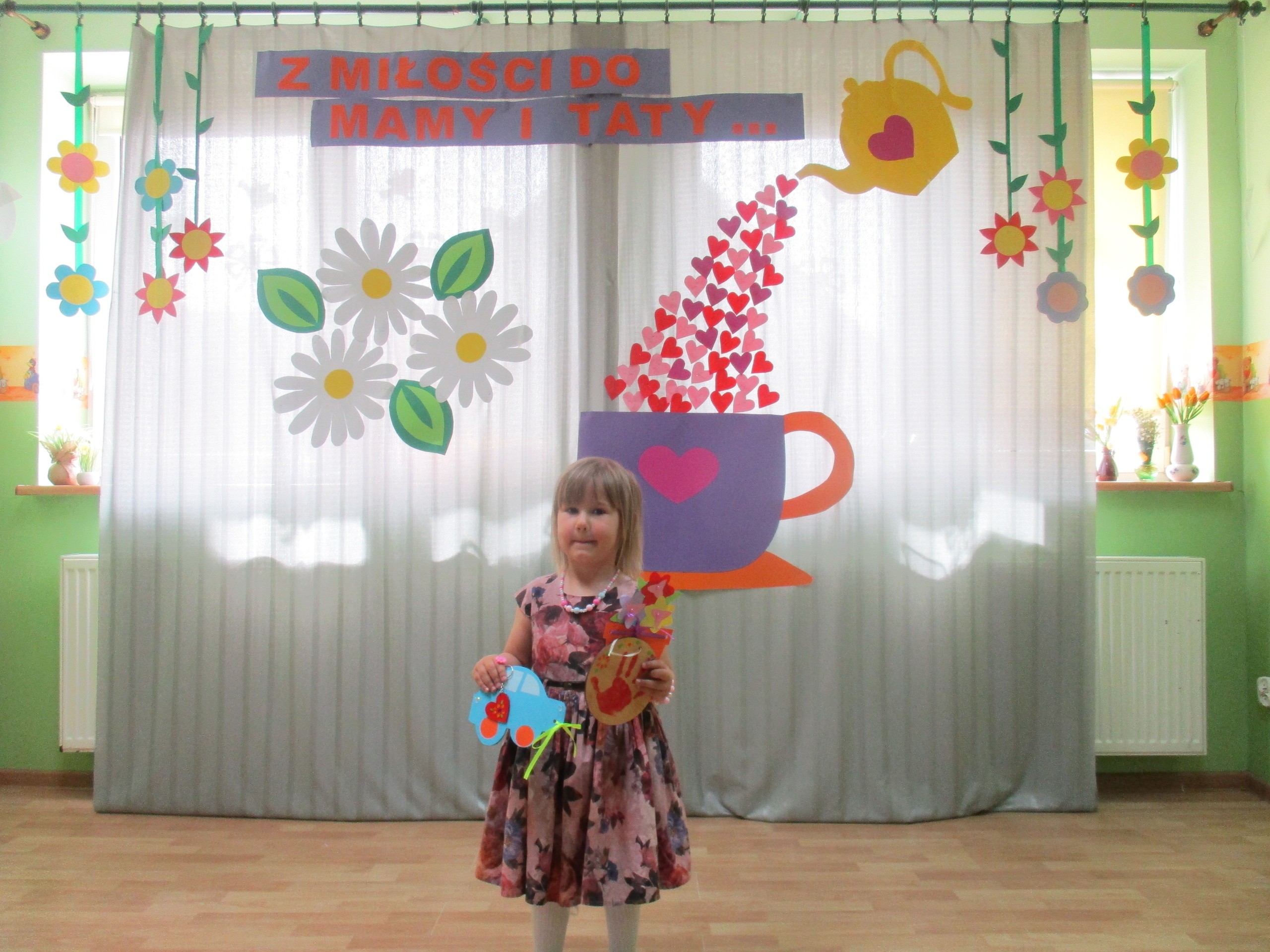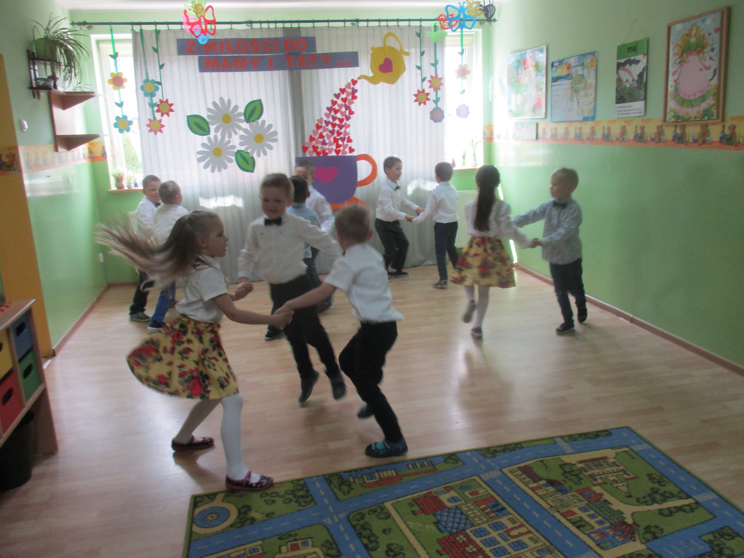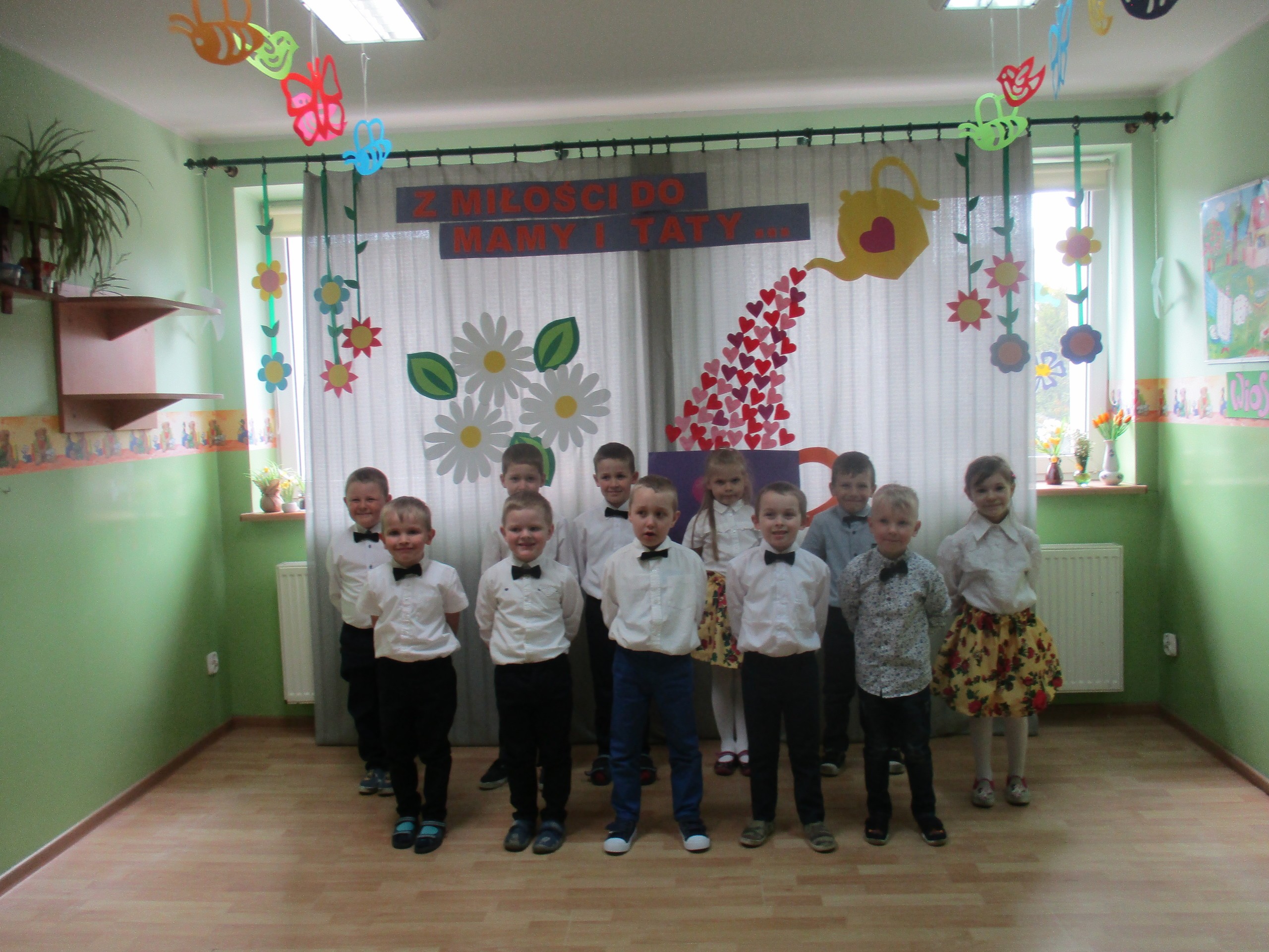 Dzisiaj w naszym przedszkolu odbyła się uroczystość z okazji Święta Mamy i Taty. Przedszkolaki przyszły tego dnia odświętnie ubrane. Młodsze i starsze dzieci zaprezentowały wiersze dla rodziców, zaśpiewały piosenki tematycznie związane z Dniem Mamy i Taty oraz zademonstrowały swoje umiejętności taneczne. Przedszkolaki zabrały ze sobą do domu laurki i upominki dla swoich ukochanych rodziców, które zostały przygotowane przez Nich w przedszkolu.