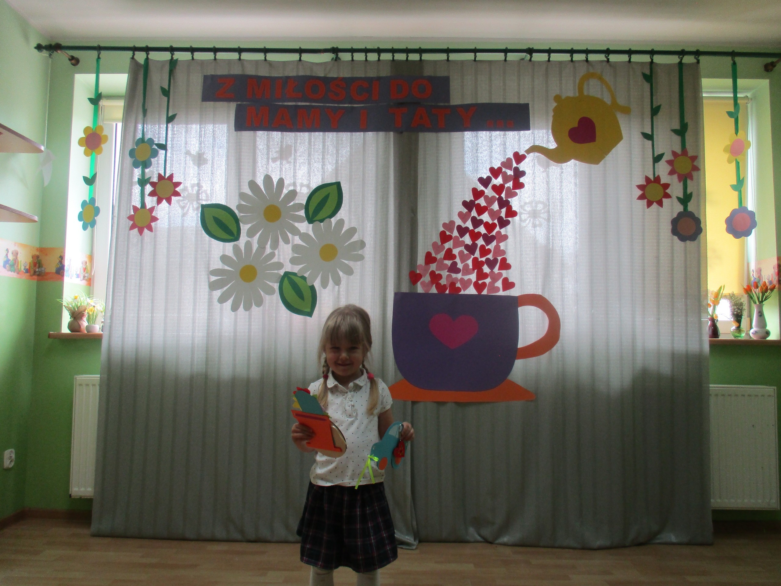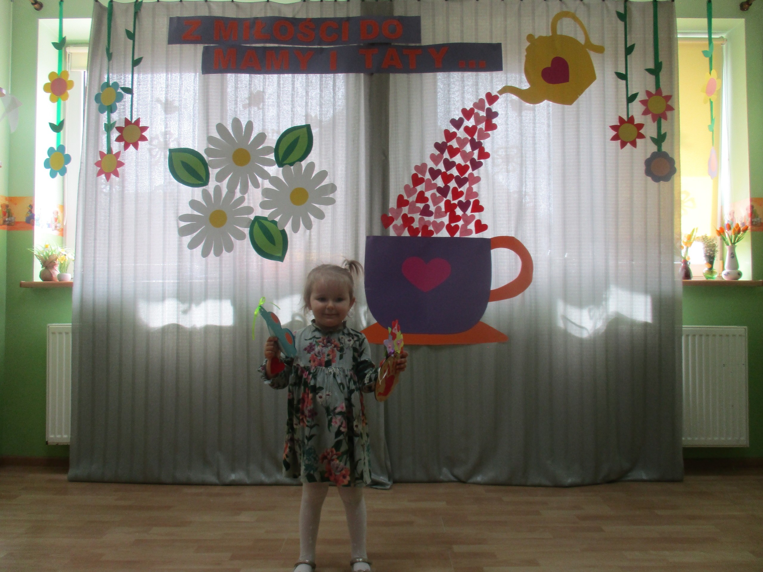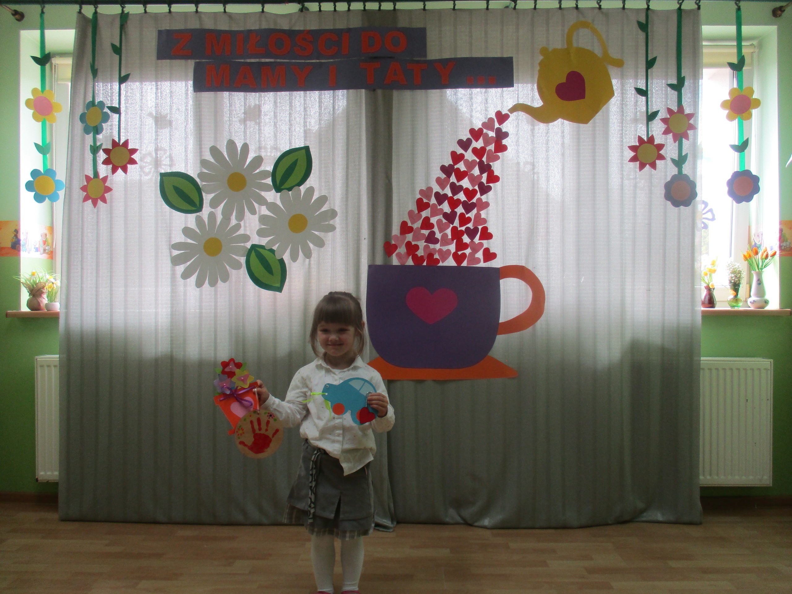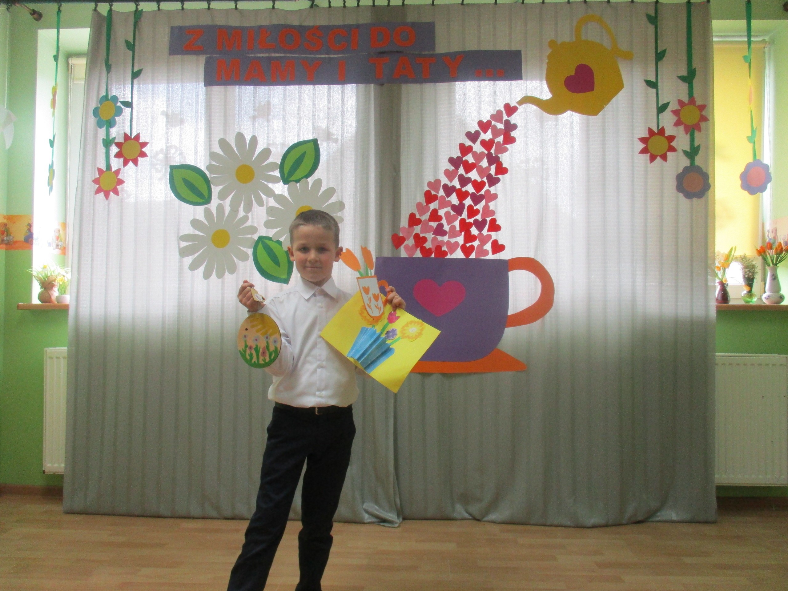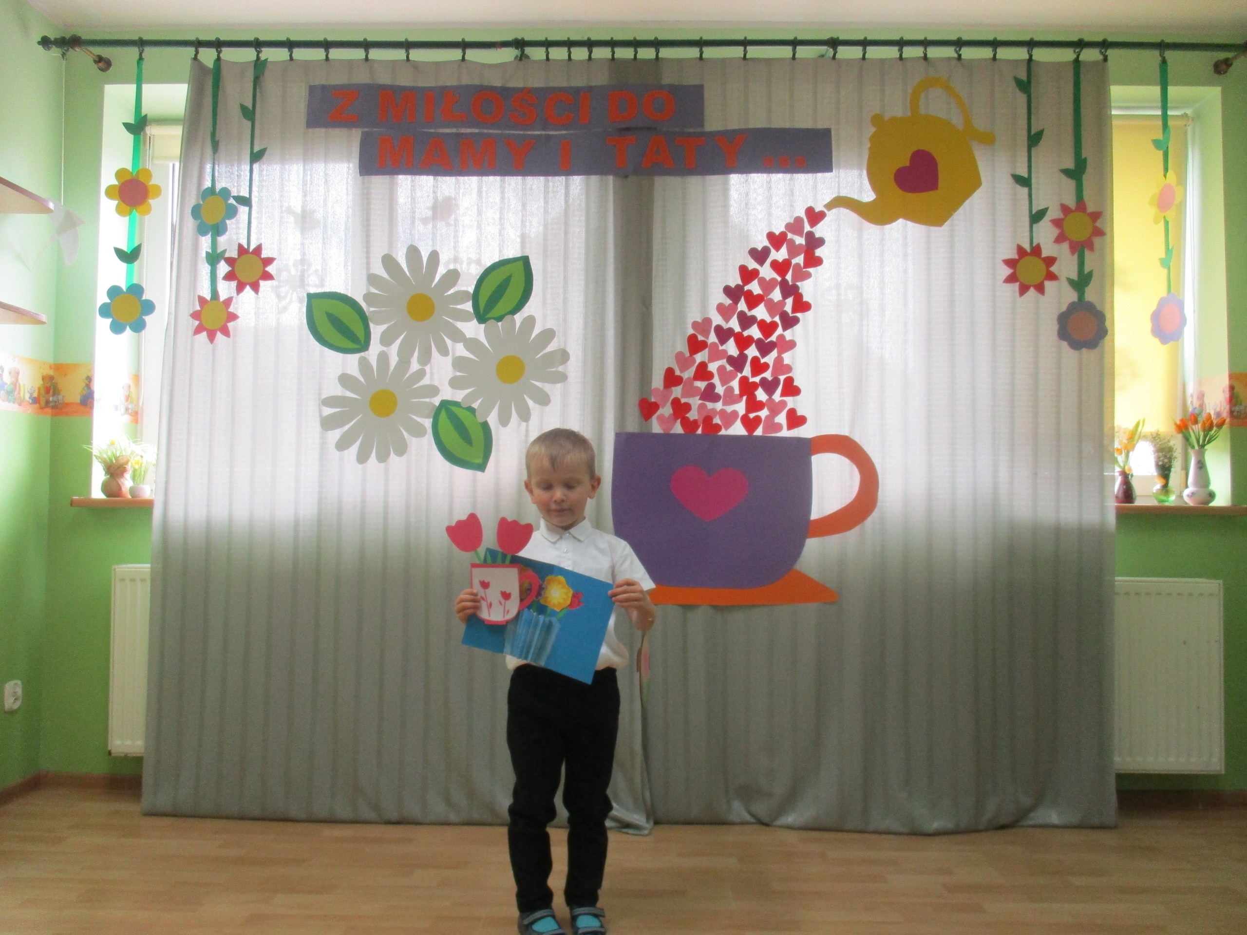 Dzisiaj w naszym przedszkolu odbyła się uroczystość z okazji Święta Mamy i Taty. Przedszkolaki przyszły tego dnia odświętnie ubrane. Młodsze i starsze dzieci zaprezentowały wiersze dla rodziców, zaśpiewały piosenki tematycznie związane z Dniem Mamy i Taty oraz zademonstrowały swoje umiejętności taneczne. Przedszkolaki zabrały ze sobą do domu laurki i upominki dla swoich ukochanych rodziców, które zostały przygotowane przez Nich w przedszkolu.