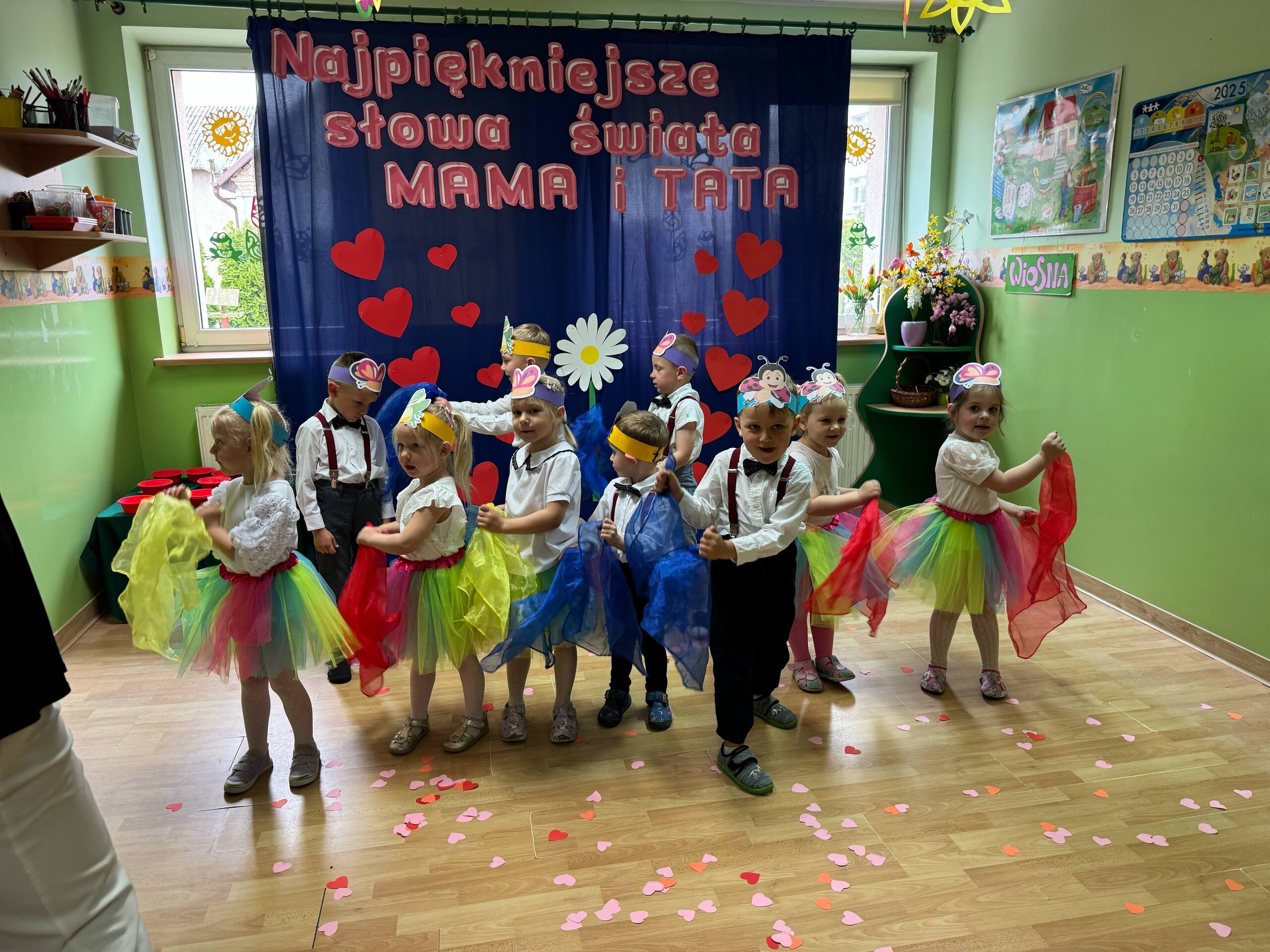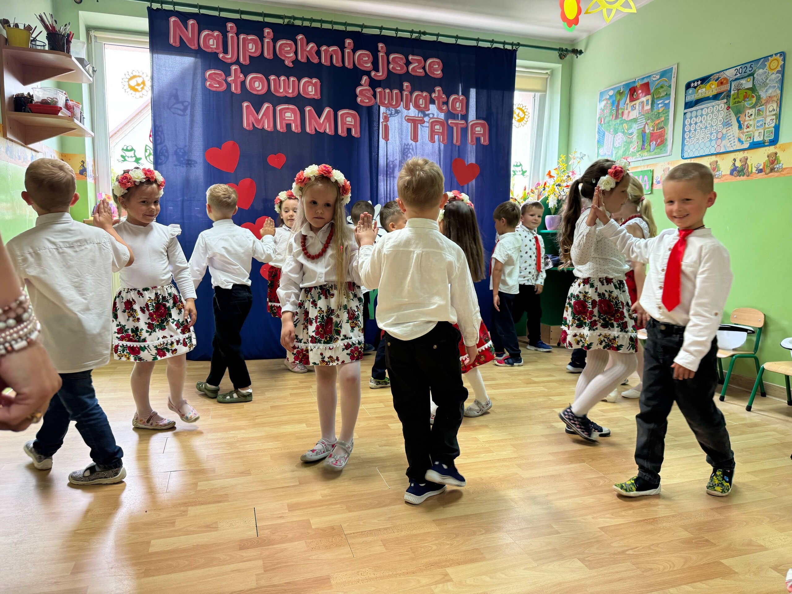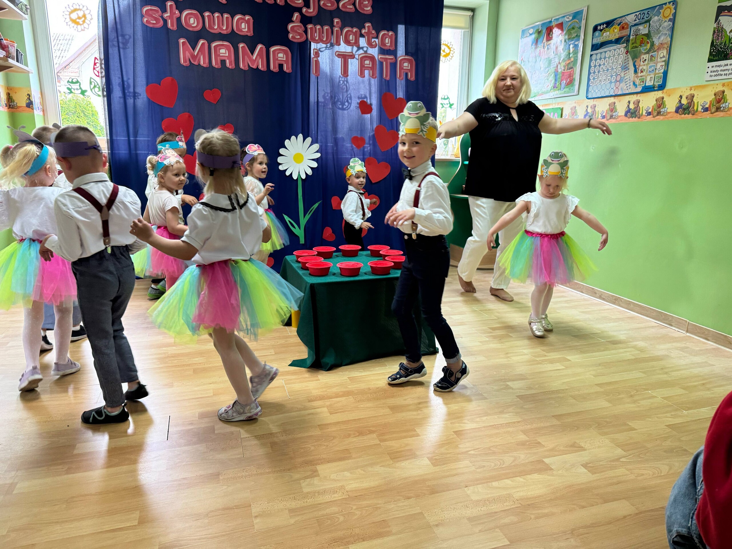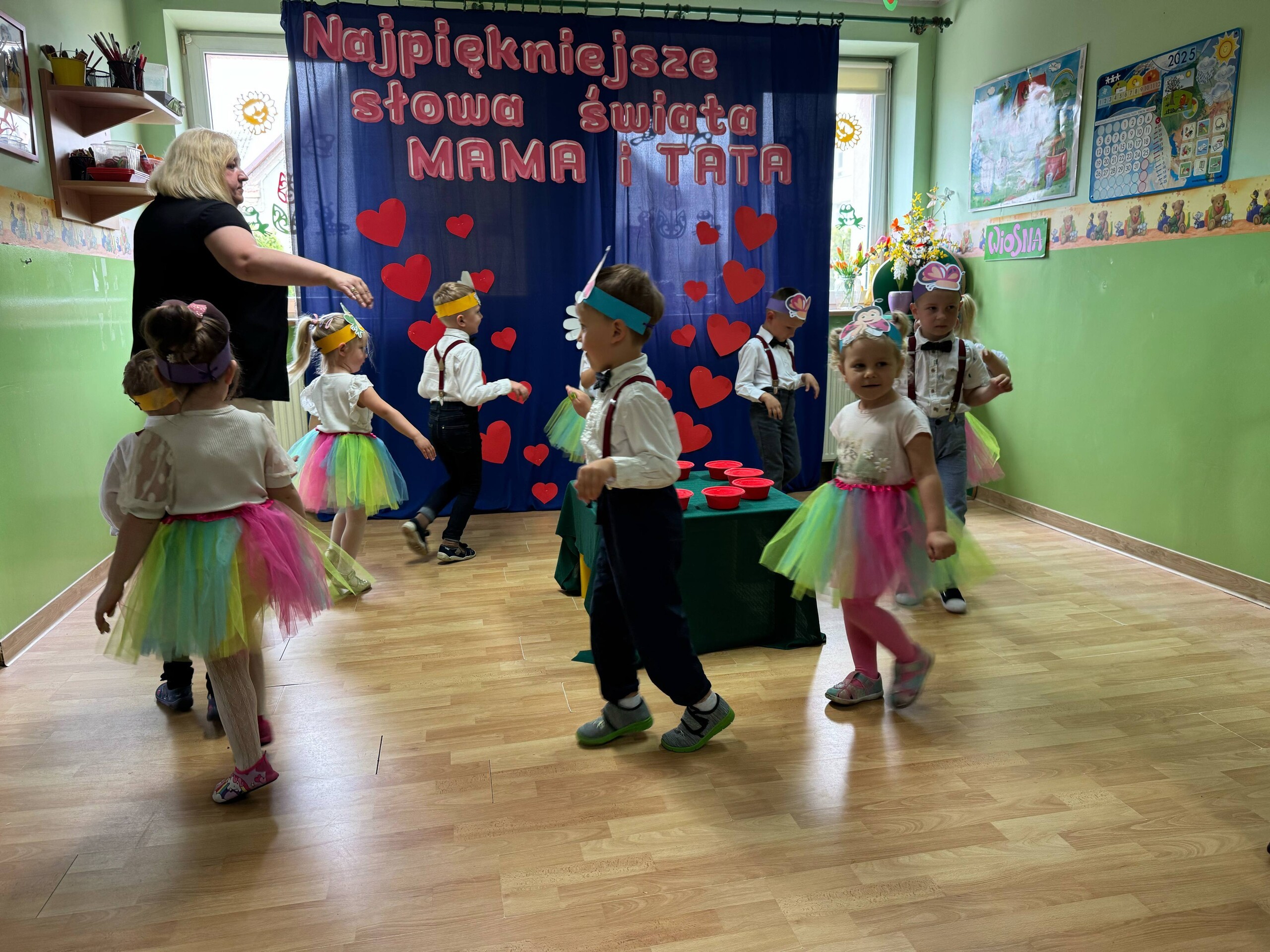 Wszystkie dzieciaki z naszego przedszkola uroczyście obchodziły święto „Mamy i Taty”. Dzieci tego wyjątkowego dnia przygotowały specjalny pokaz artystyczny, pełen niesamowitych wrażeń i wspomnień. Przedszkolaki zabrały Rodziców w niesamowitą podróż, okraszoną pięknymi wierszami, kolorowymi strojami, muzyką i tańcem, wyrażając w ten sposób swoje przywiązanie, miłość, szacunek i wdzięczność za trud wychowania.