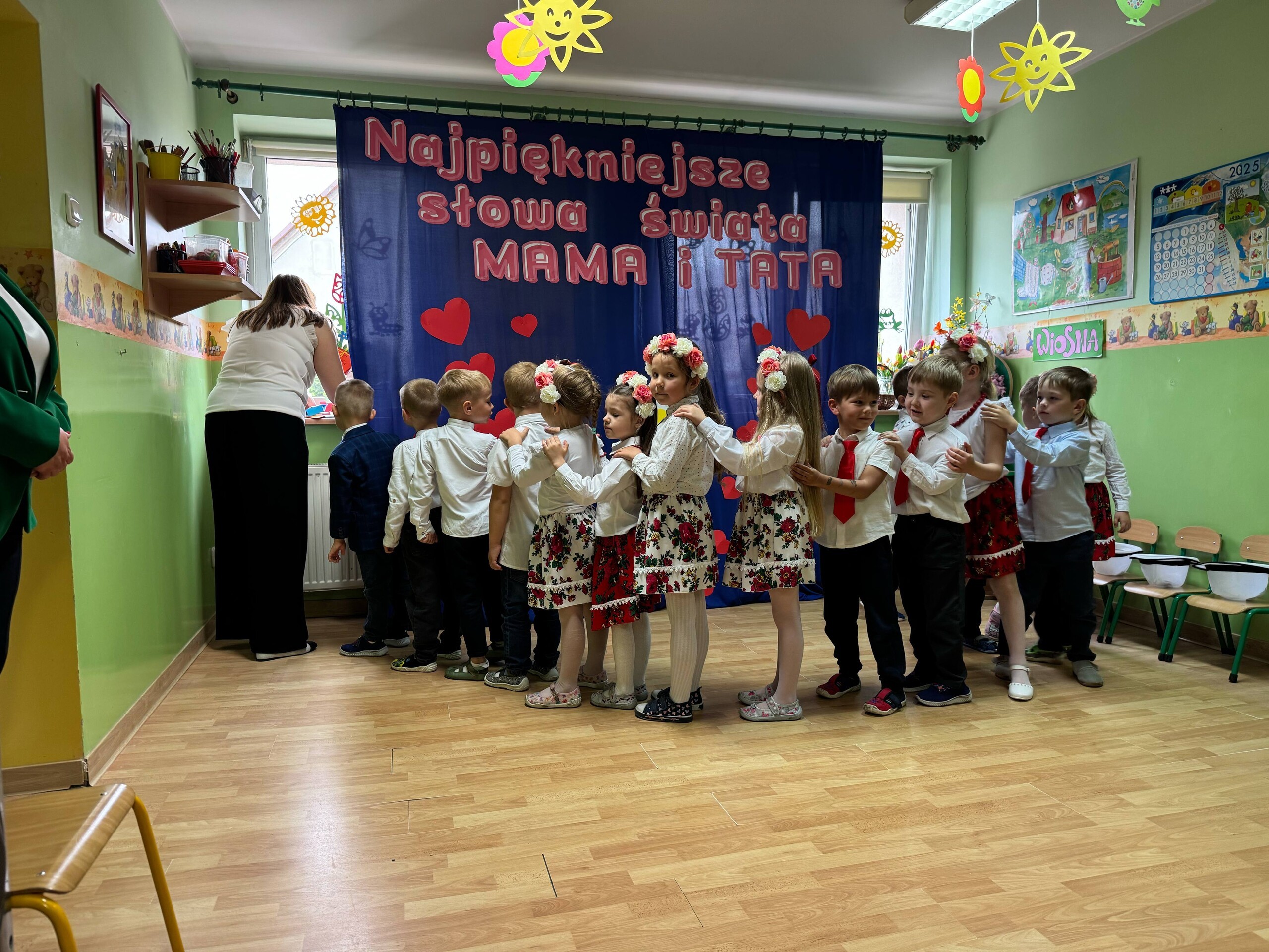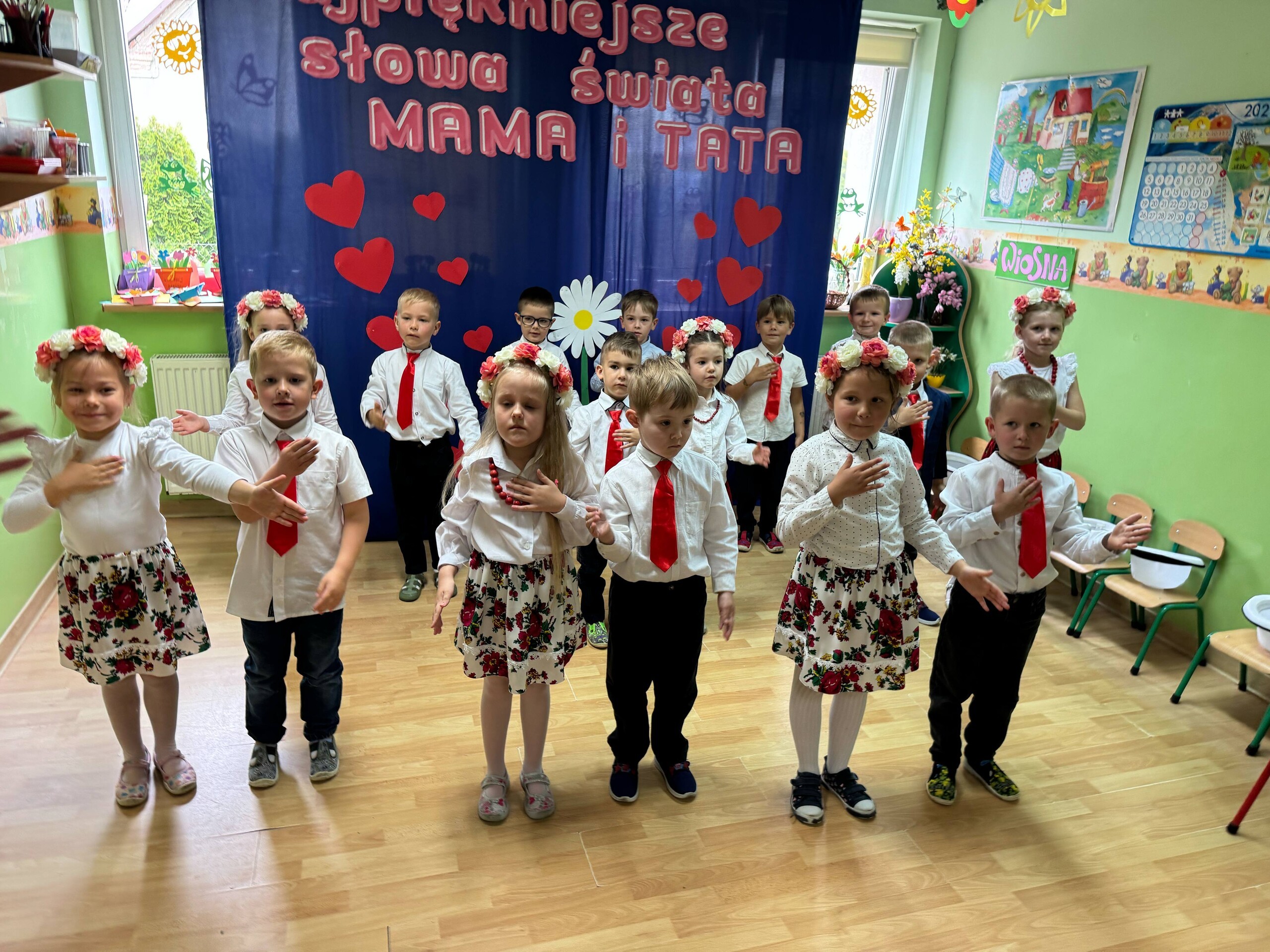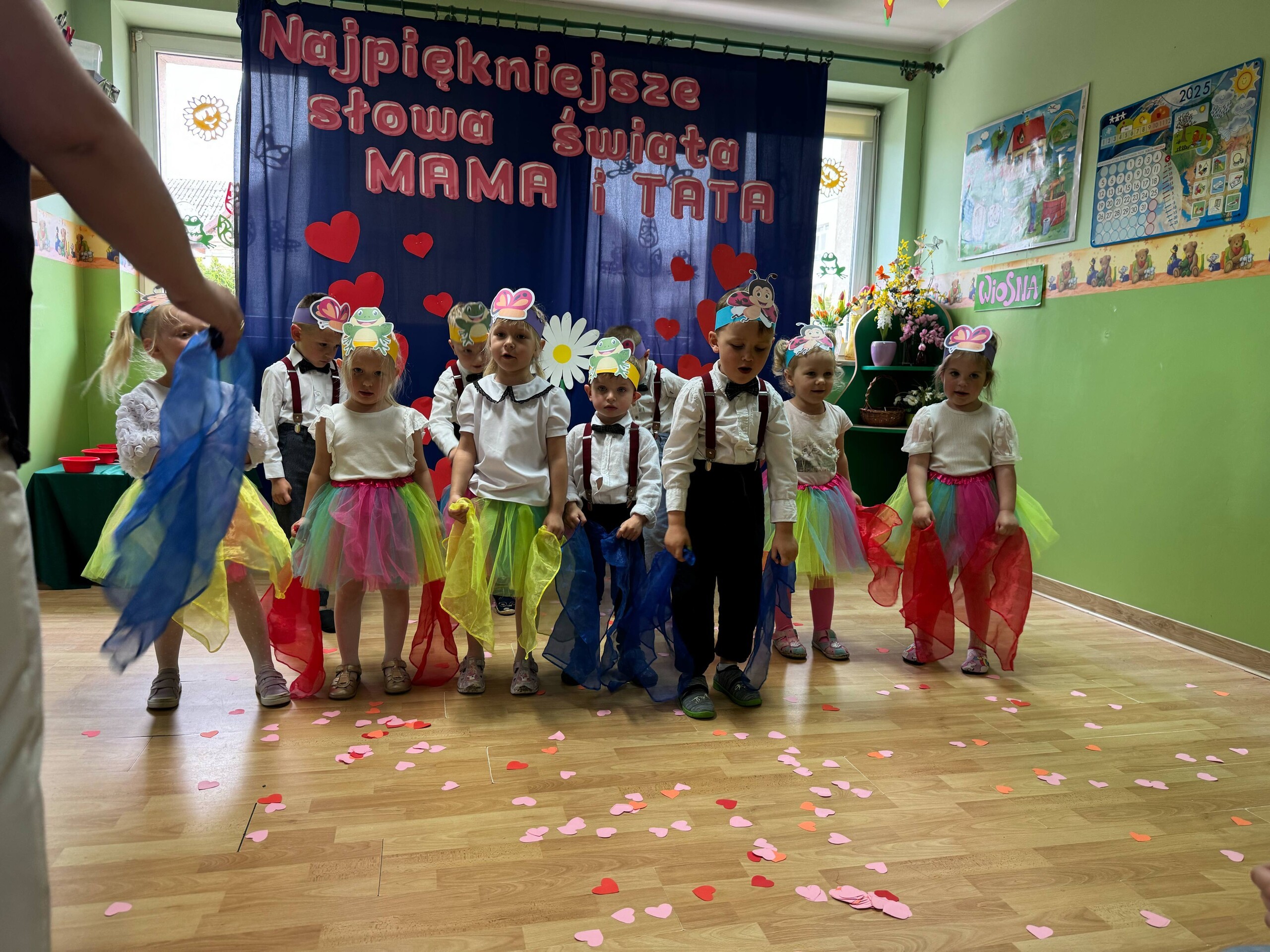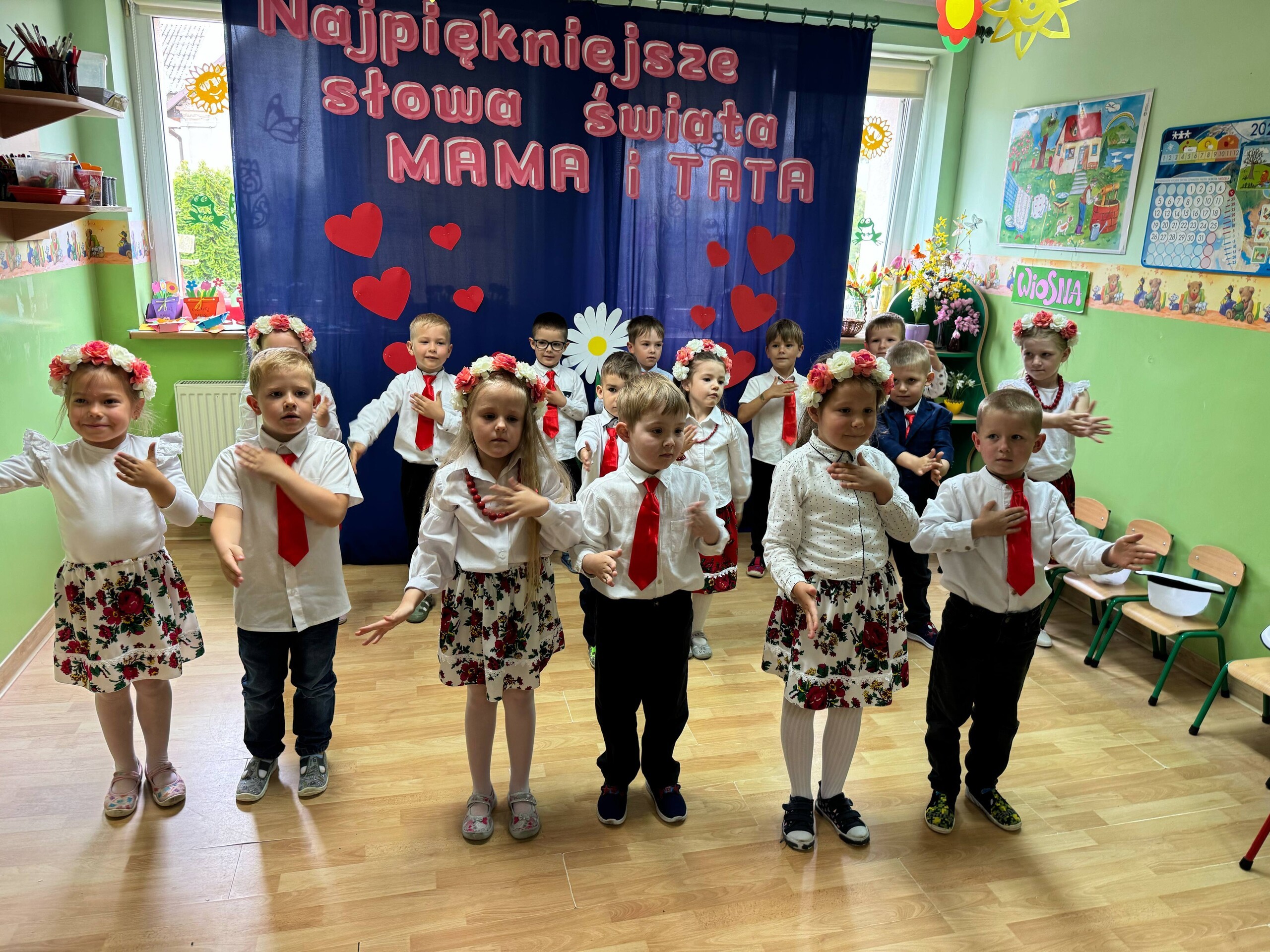 Wszystkie dzieciaki z naszego przedszkola uroczyście obchodziły święto „Mamy i Taty”. Dzieci tego wyjątkowego dnia przygotowały specjalny pokaz artystyczny, pełen niesamowitych wrażeń i wspomnień. Przedszkolaki zabrały Rodziców w niesamowitą podróż, okraszoną pięknymi wierszami, kolorowymi strojami, muzyką i tańcem, wyrażając w ten sposób swoje przywiązanie, miłość, szacunek i wdzięczność za trud wychowania.