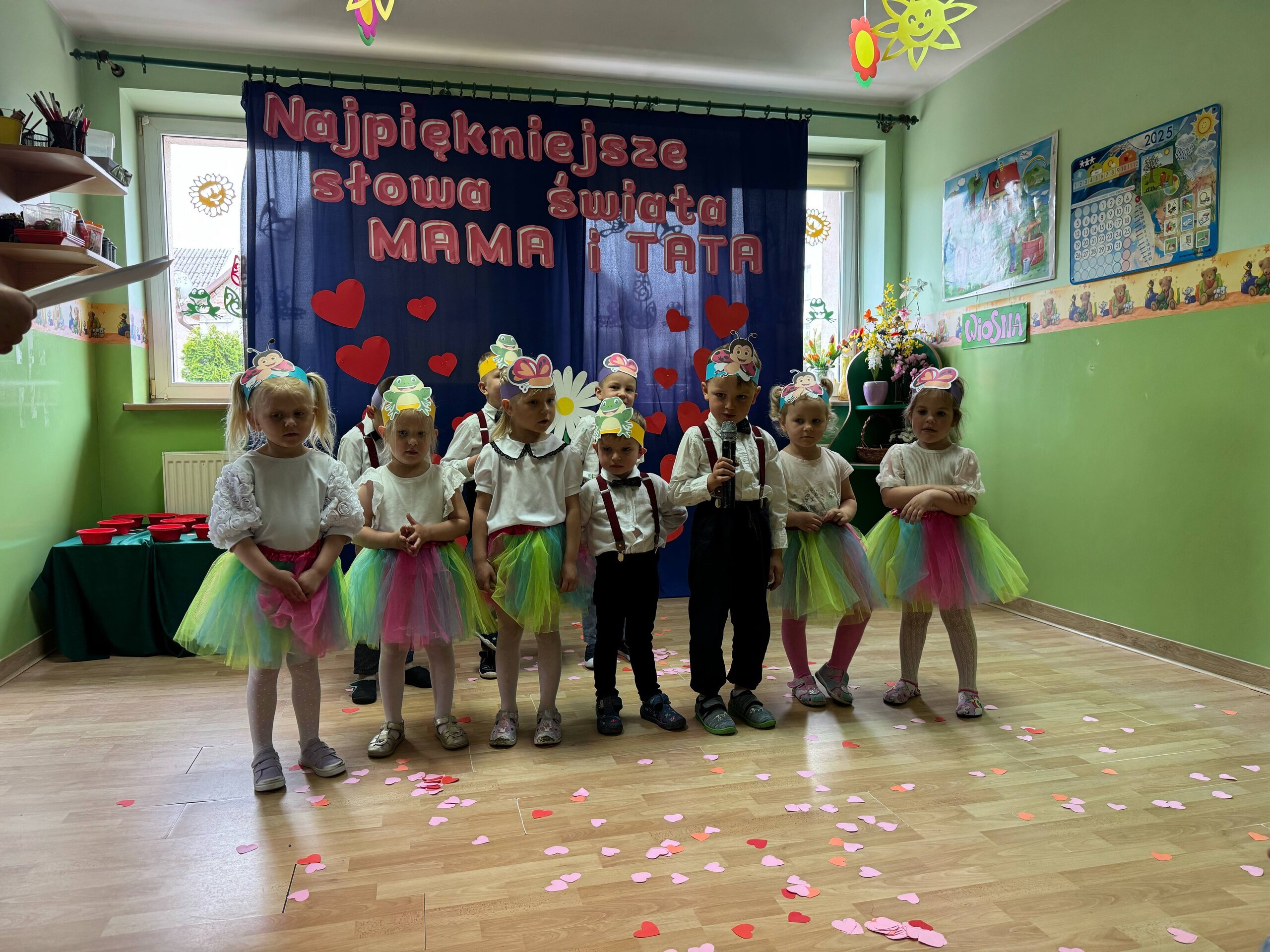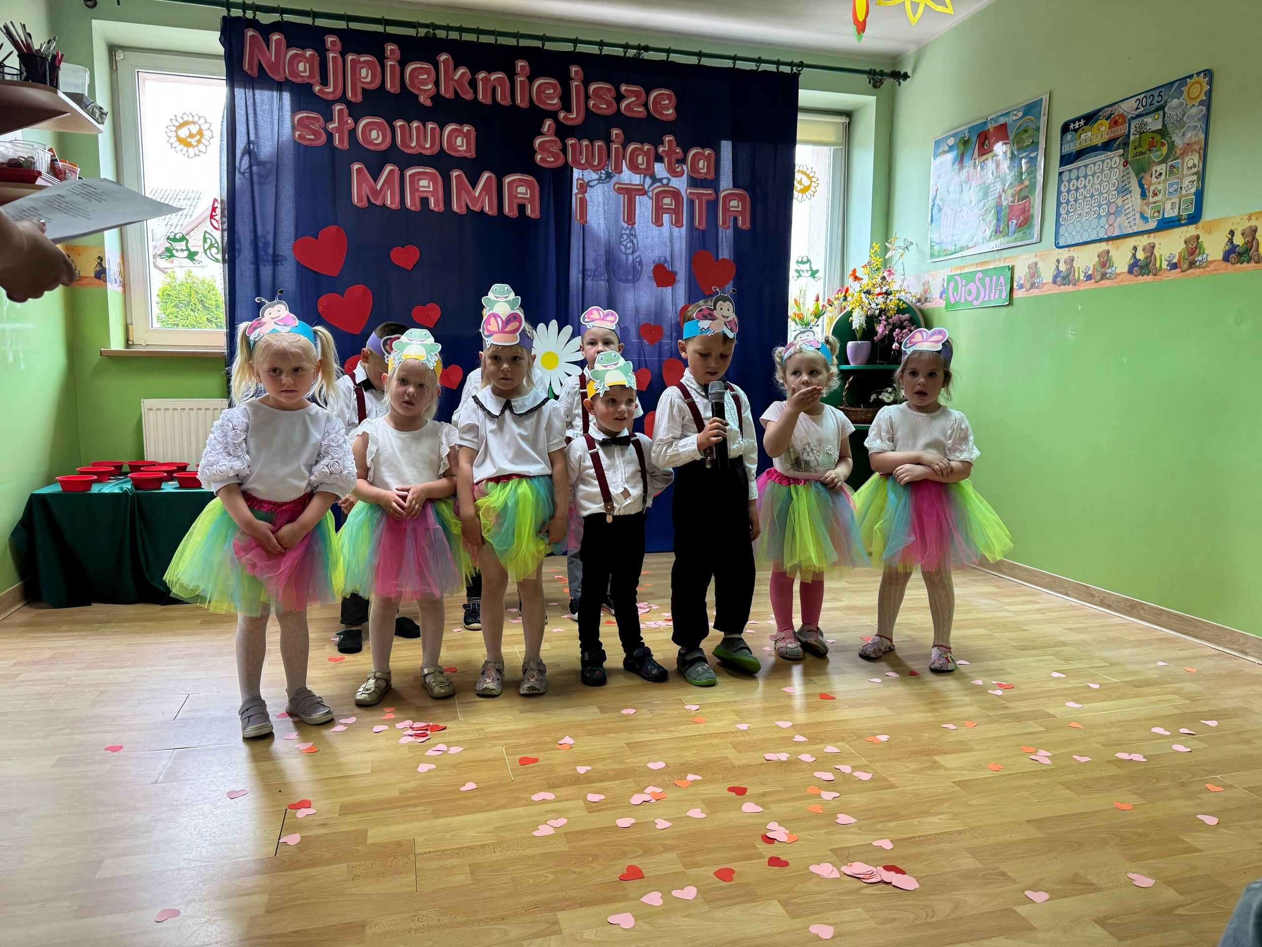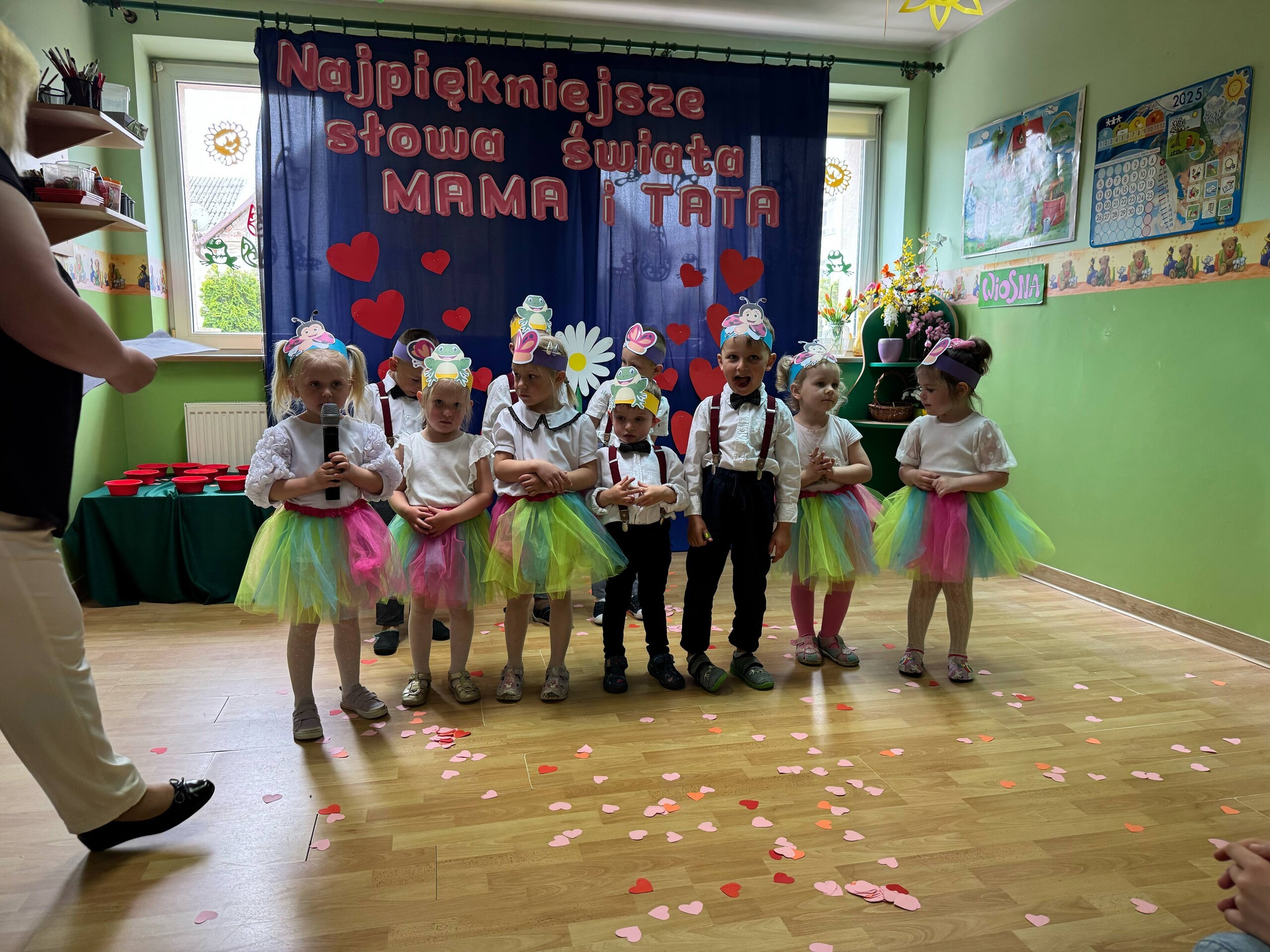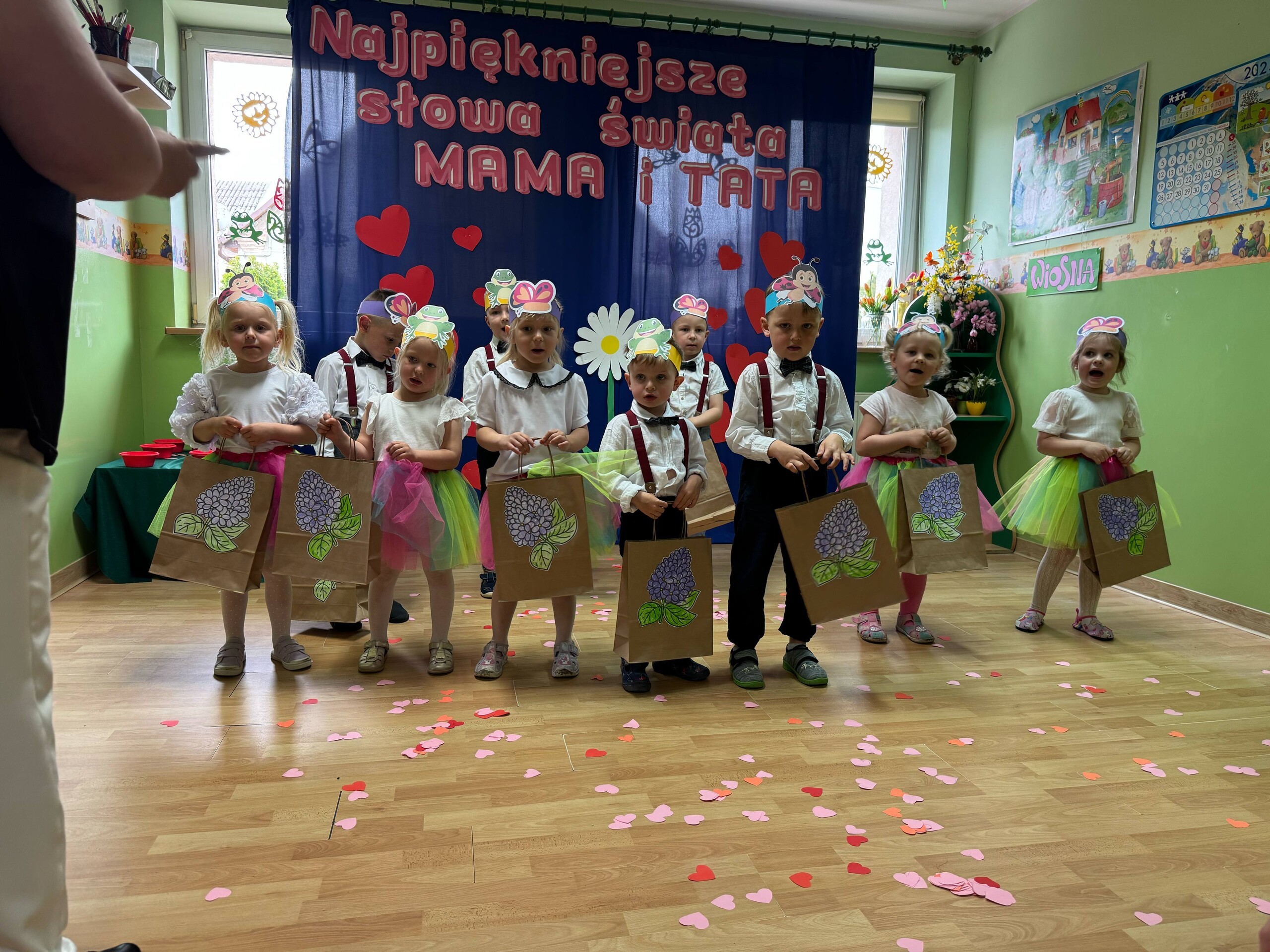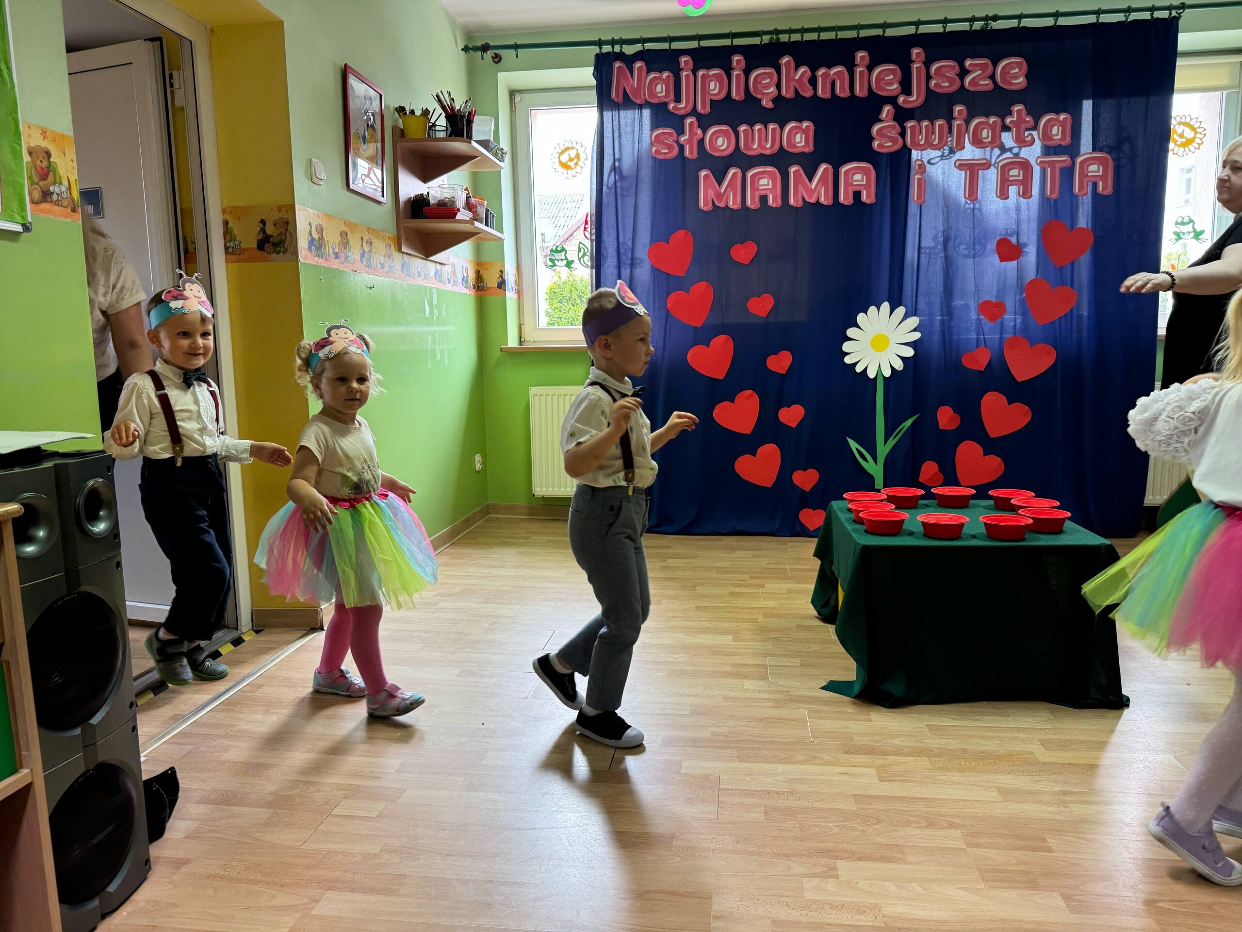 Wszystkie dzieciaki z naszego przedszkola uroczyście obchodziły święto „Mamy i Taty”. Dzieci tego wyjątkowego dnia przygotowały specjalny pokaz artystyczny, pełen niesamowitych wrażeń i wspomnień. Przedszkolaki zabrały Rodziców w niesamowitą podróż, okraszoną pięknymi wierszami, kolorowymi strojami, muzyką i tańcem, wyrażając w ten sposób swoje przywiązanie, miłość, szacunek i wdzięczność za trud wychowania.