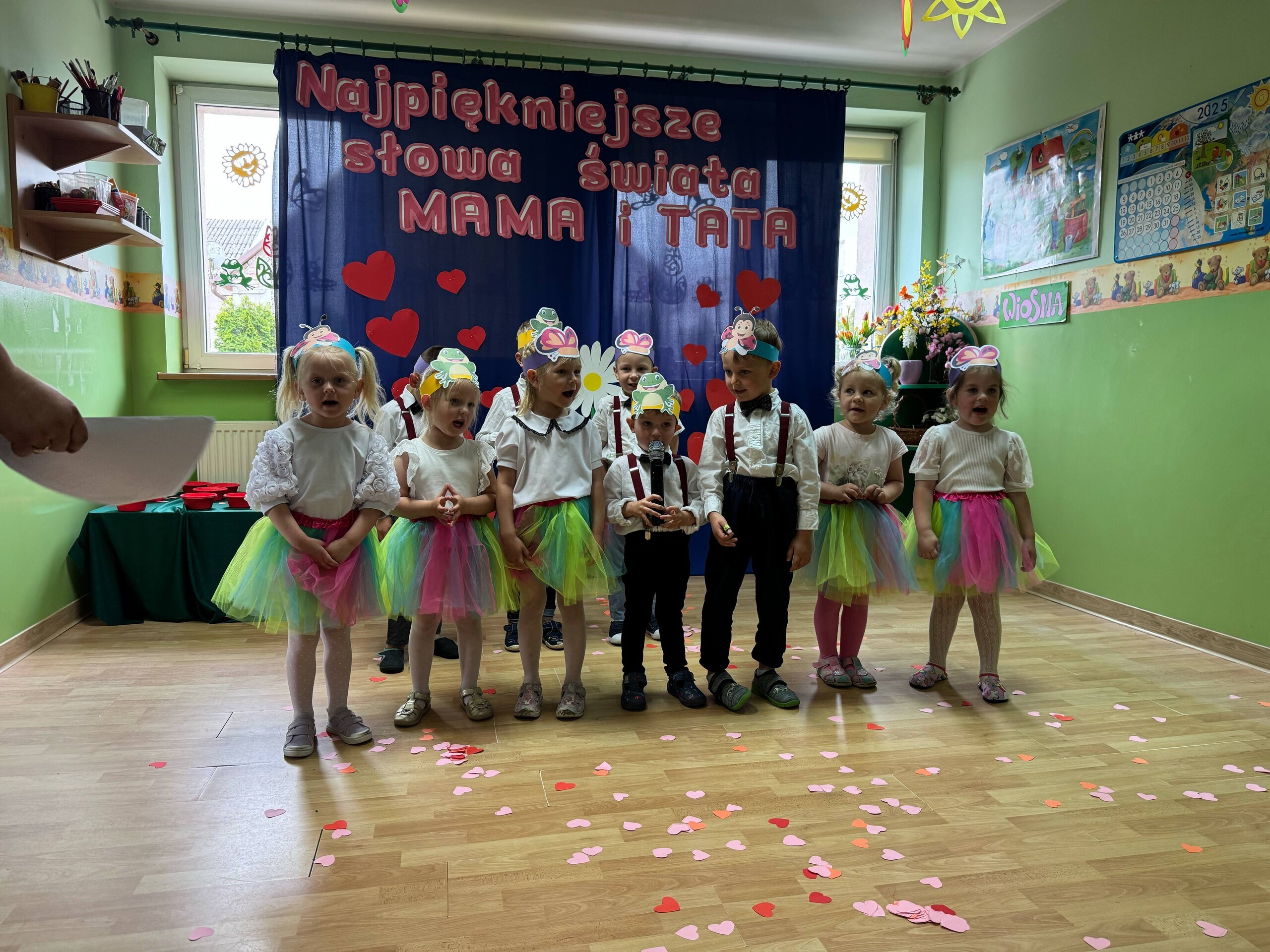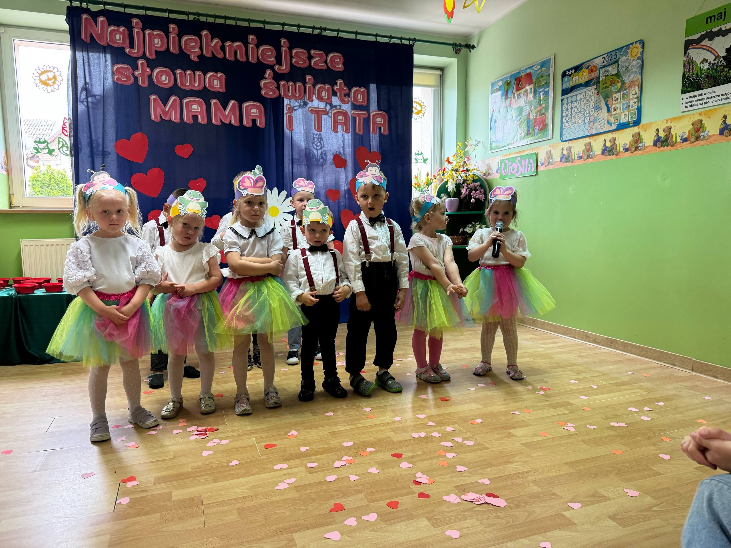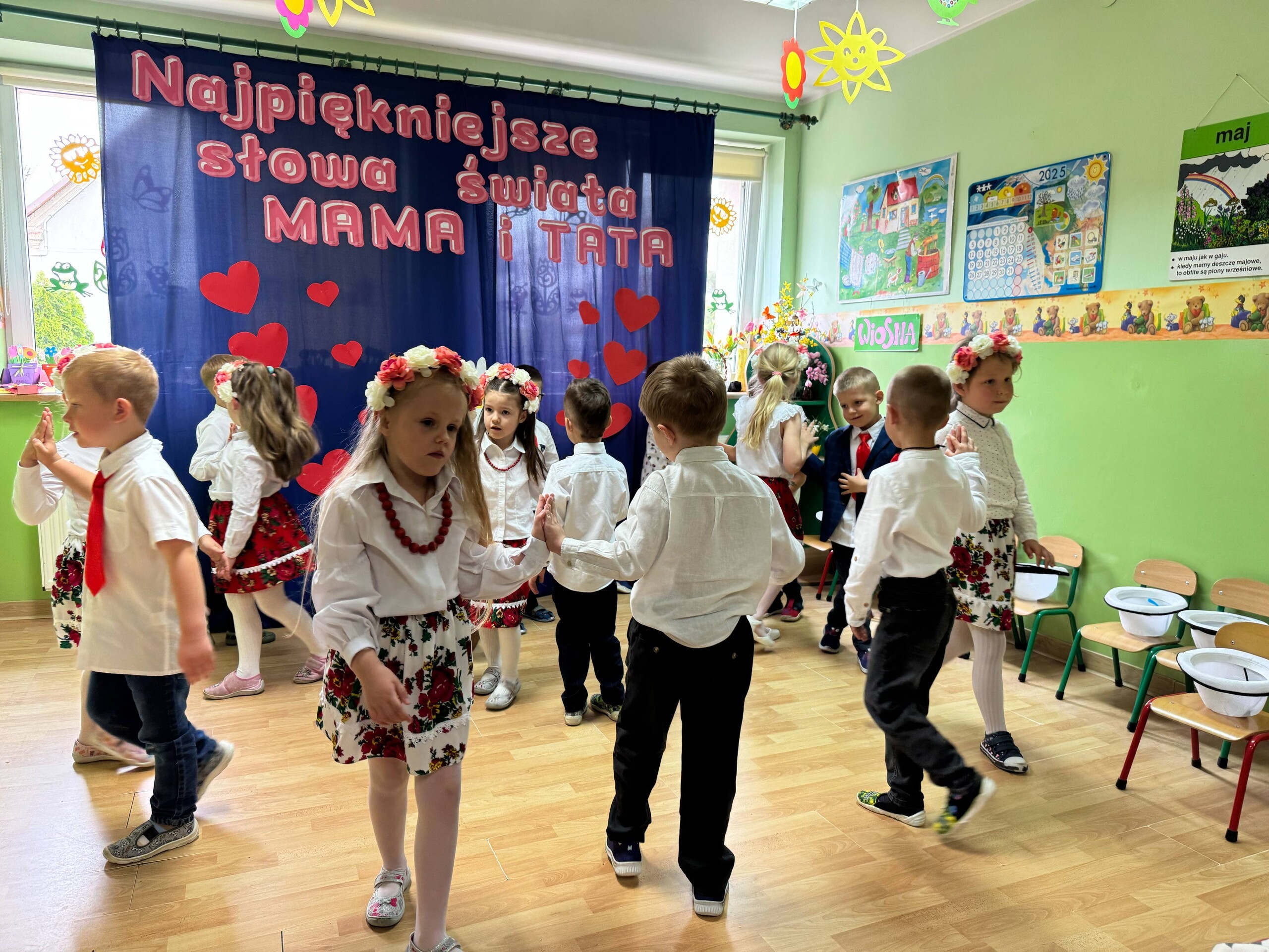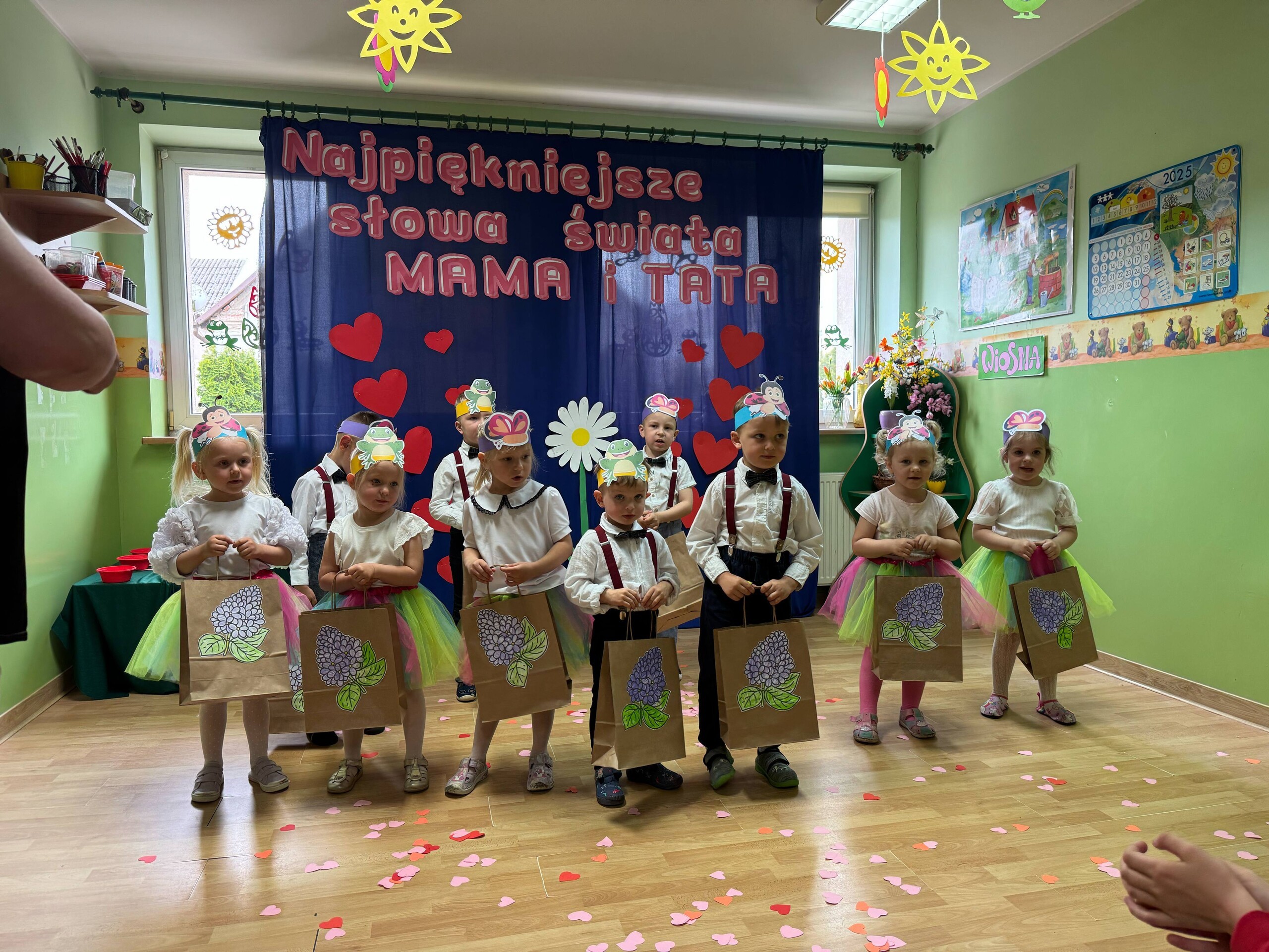 Wszystkie dzieciaki z naszego przedszkola uroczyście obchodziły święto „Mamy i Taty”. Dzieci tego wyjątkowego dnia przygotowały specjalny pokaz artystyczny, pełen niesamowitych wrażeń i wspomnień. Przedszkolaki zabrały Rodziców w niesamowitą podróż, okraszoną pięknymi wierszami, kolorowymi strojami, muzyką i tańcem, wyrażając w ten sposób swoje przywiązanie, miłość, szacunek i wdzięczność za trud wychowania.