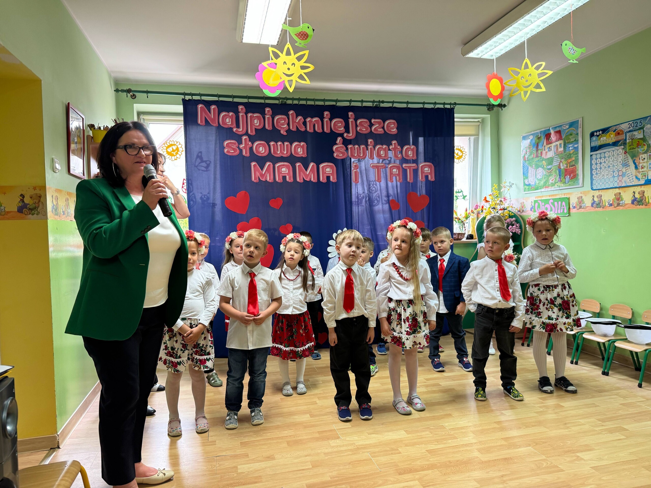 Podczas montażu słowno - muzycznego adresowanym do Rodziców na twarzach Mam i Tatusiów gościł uśmiech, a czasem wzruszenie. Po gromkich brawach były życzenia i prezenty. Przedszkolaki w podzięce podarowały rodzicom własnoręcznie wykonane upominki. Podczas ich wręczania całusom i uściskom nie było końca. Niezapomniane chwile na pamiątkę zostały uwiecznione na rodzinnych fotografiach.