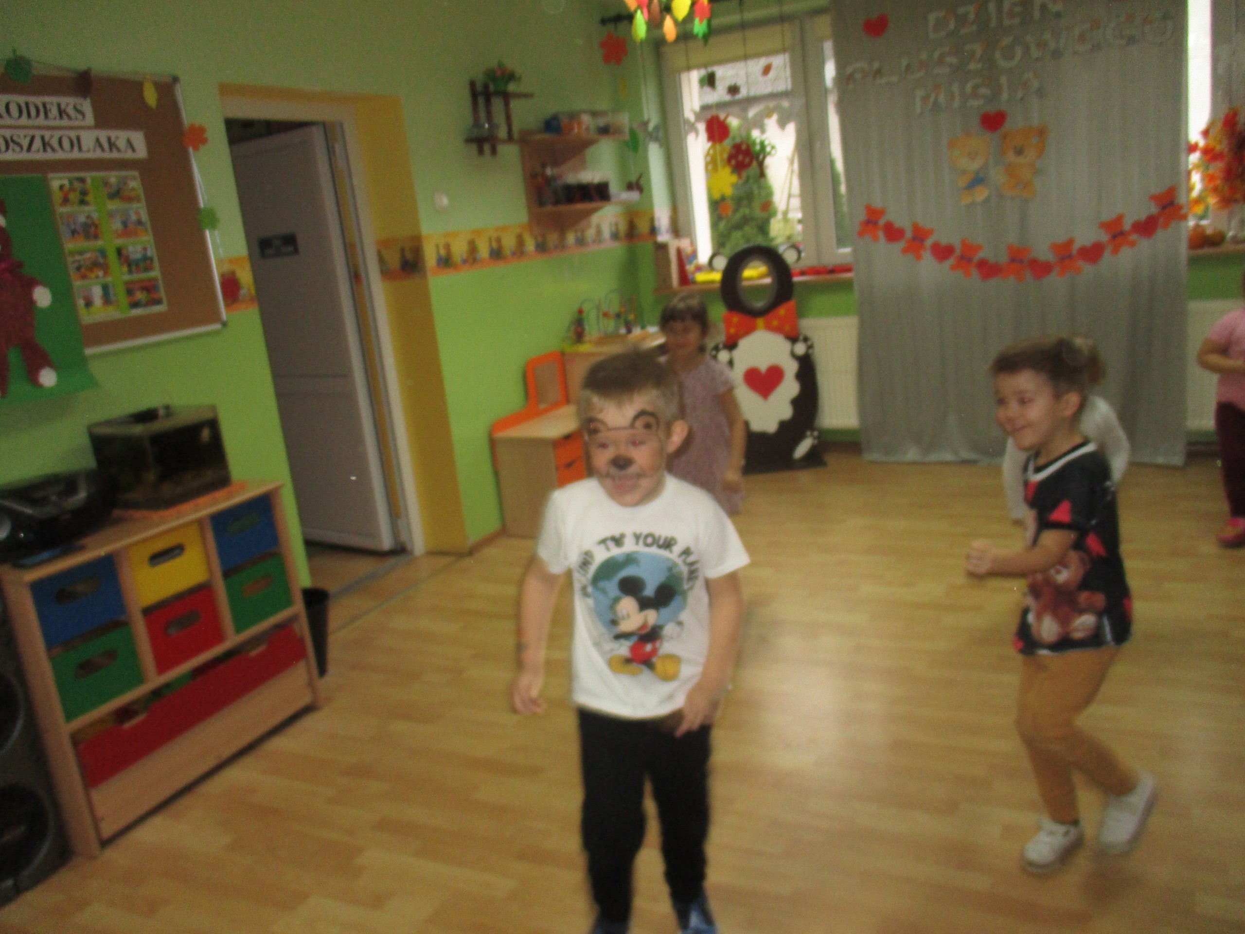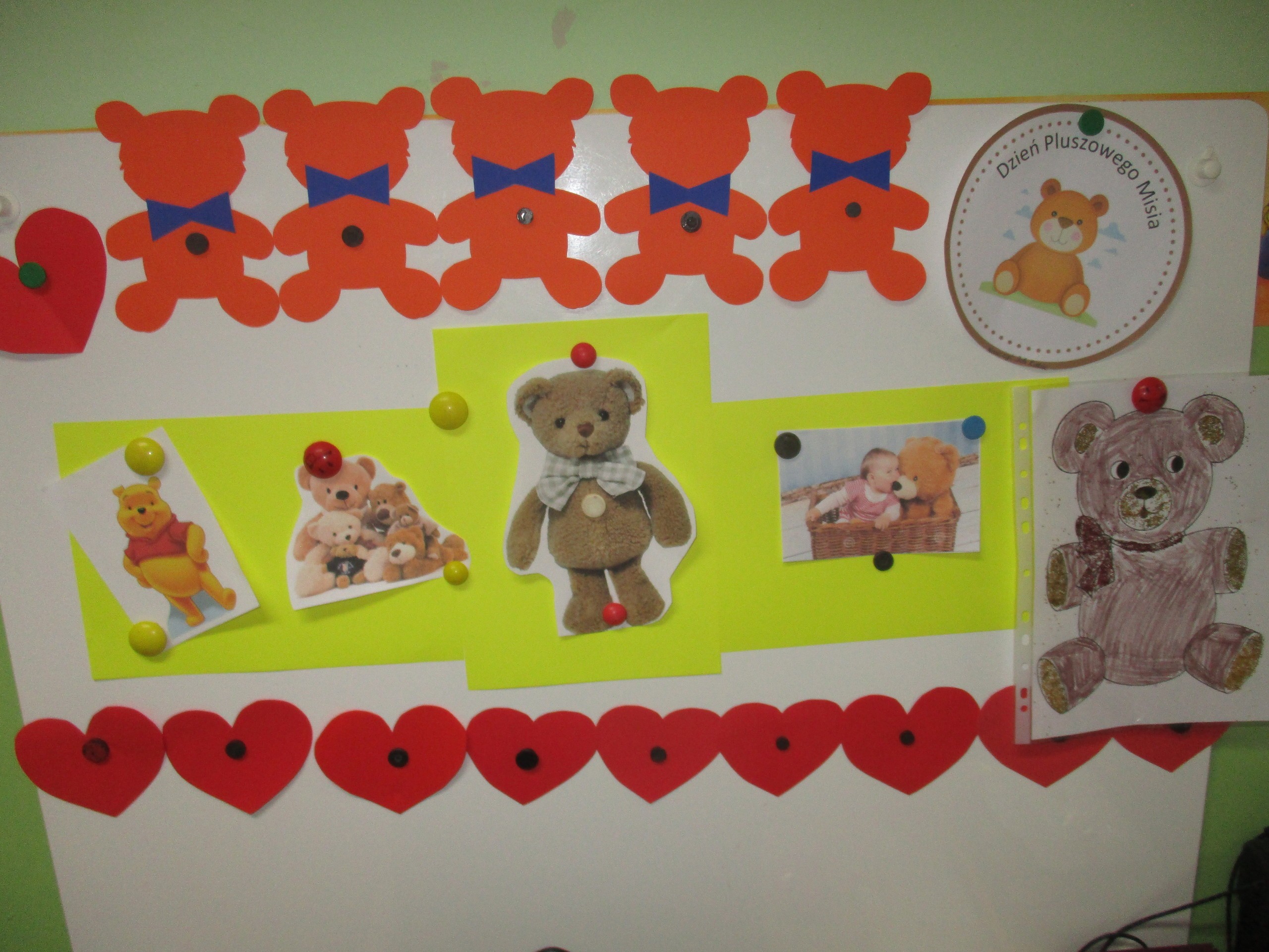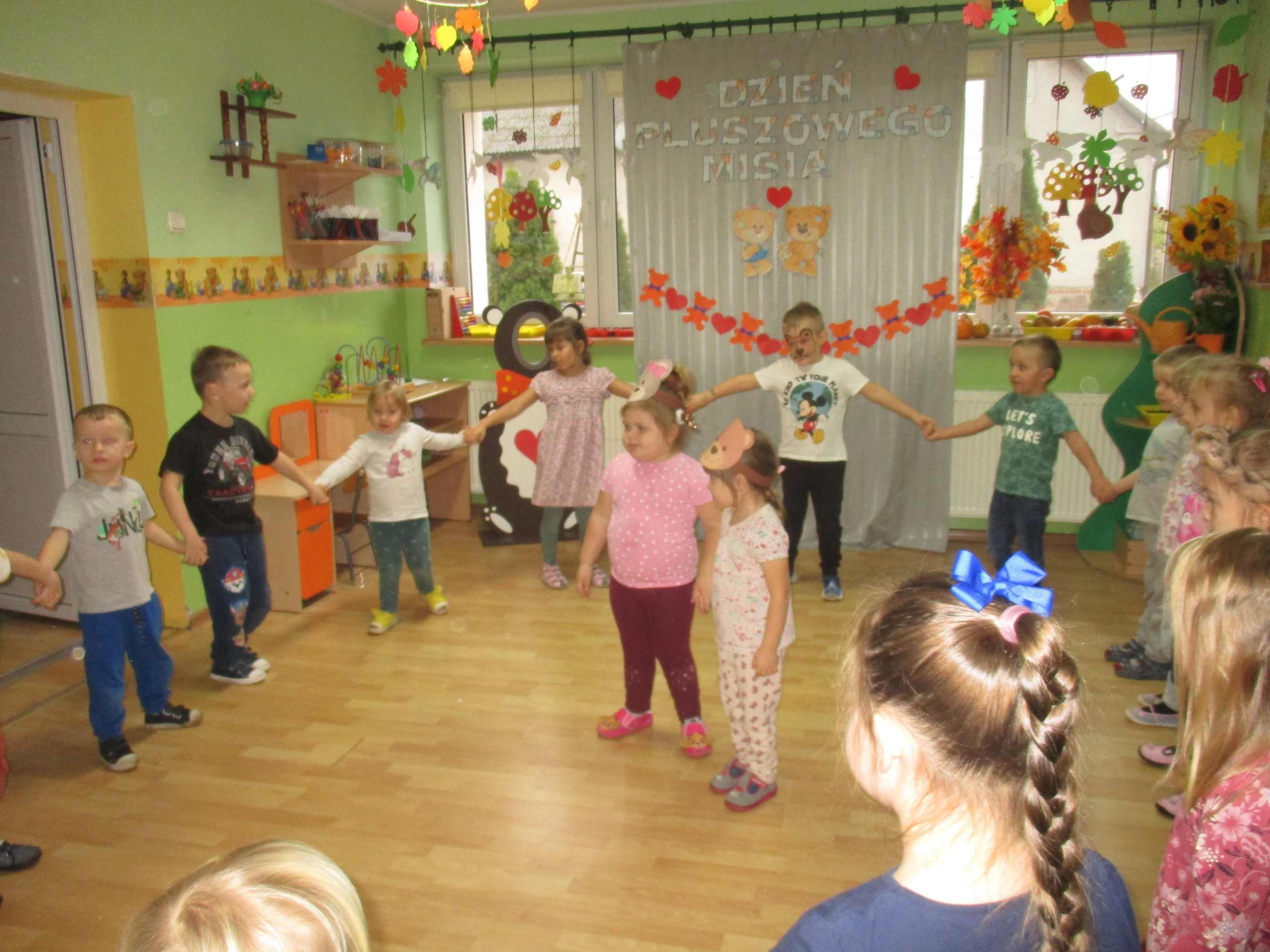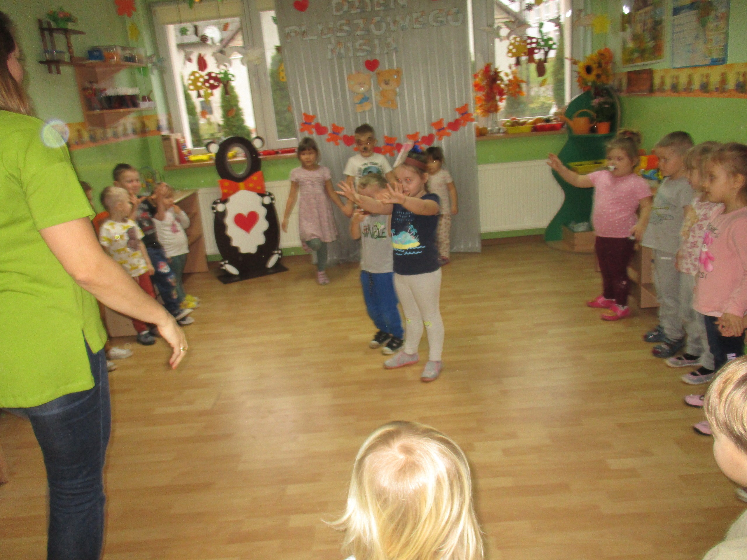 Świętowanie rozpoczęło się od różnego rodzaju tańców na tle melodii o misiach m.in. Jadą, Jadą Misie..., Misio mniam, misio mniam... Dzieci wysłuchały krótkiej historyjki obrazkowej o powstaniu Pluszowego Misia, brały też udział we wszelakich konkursach i zagadkach związanych z postacią misia, zabawy z chustą animacyjną, wykonywały prace plastyczne, miały okazję posmakowania przysmaku misia, czyli pysznego miodku.