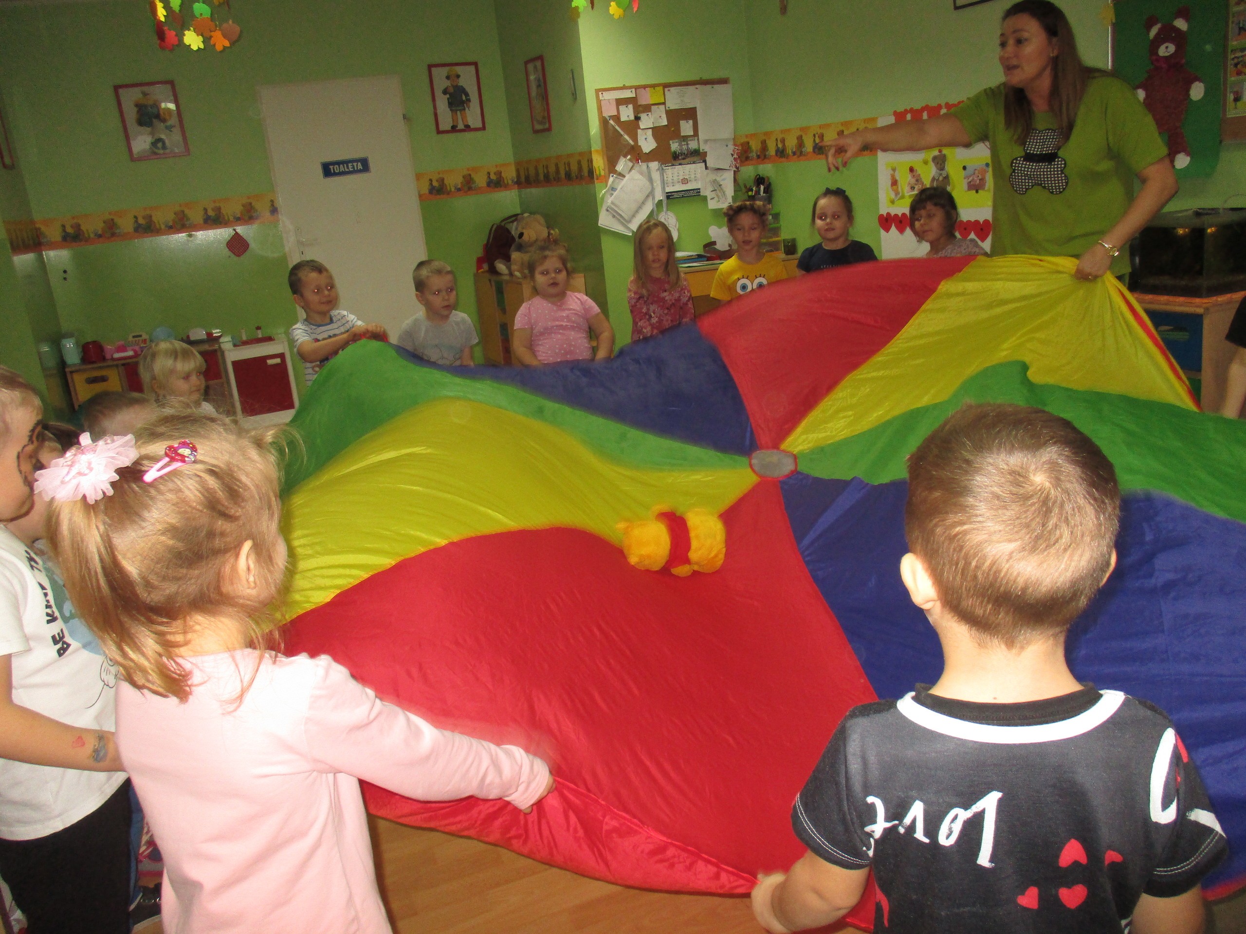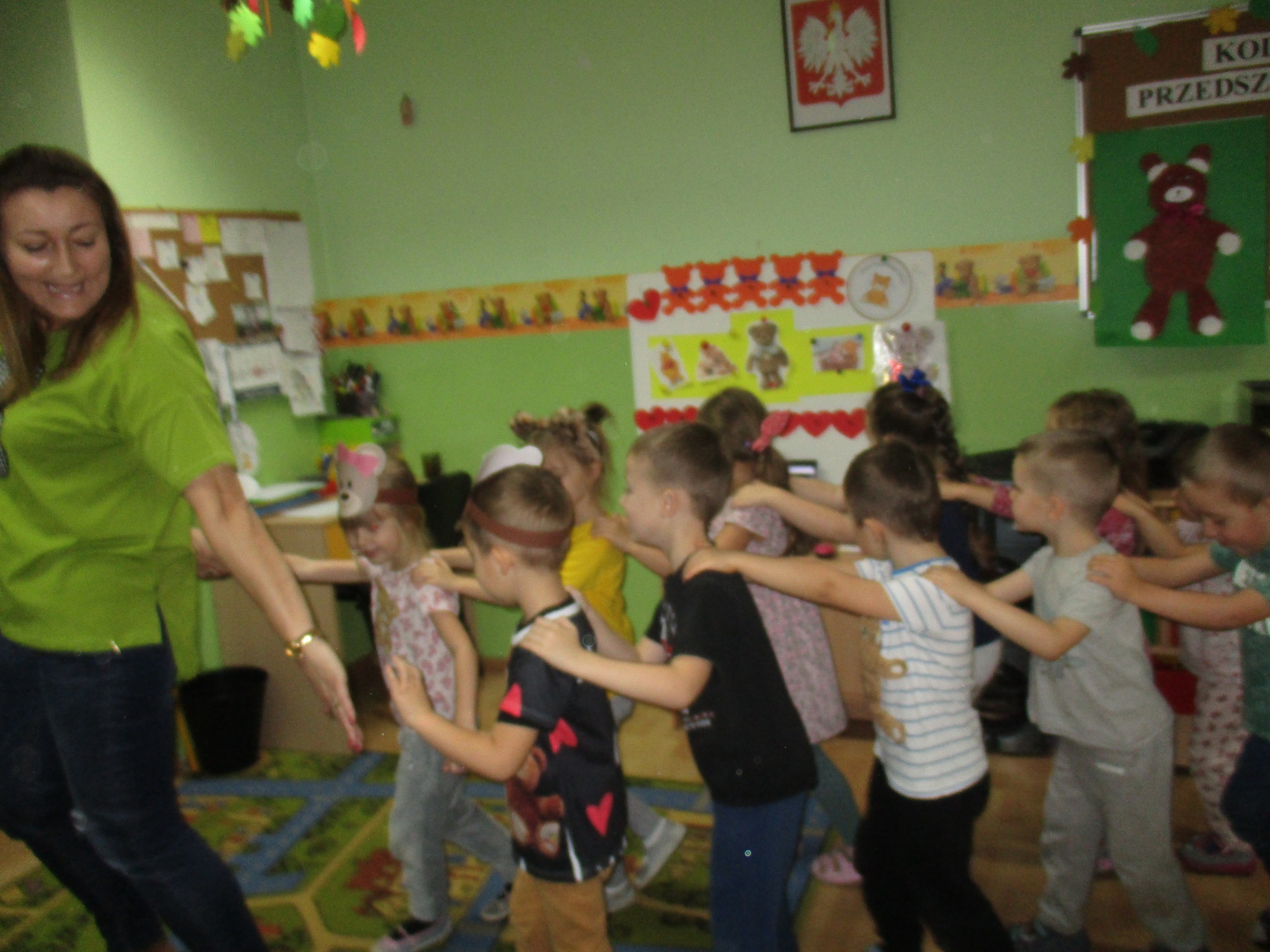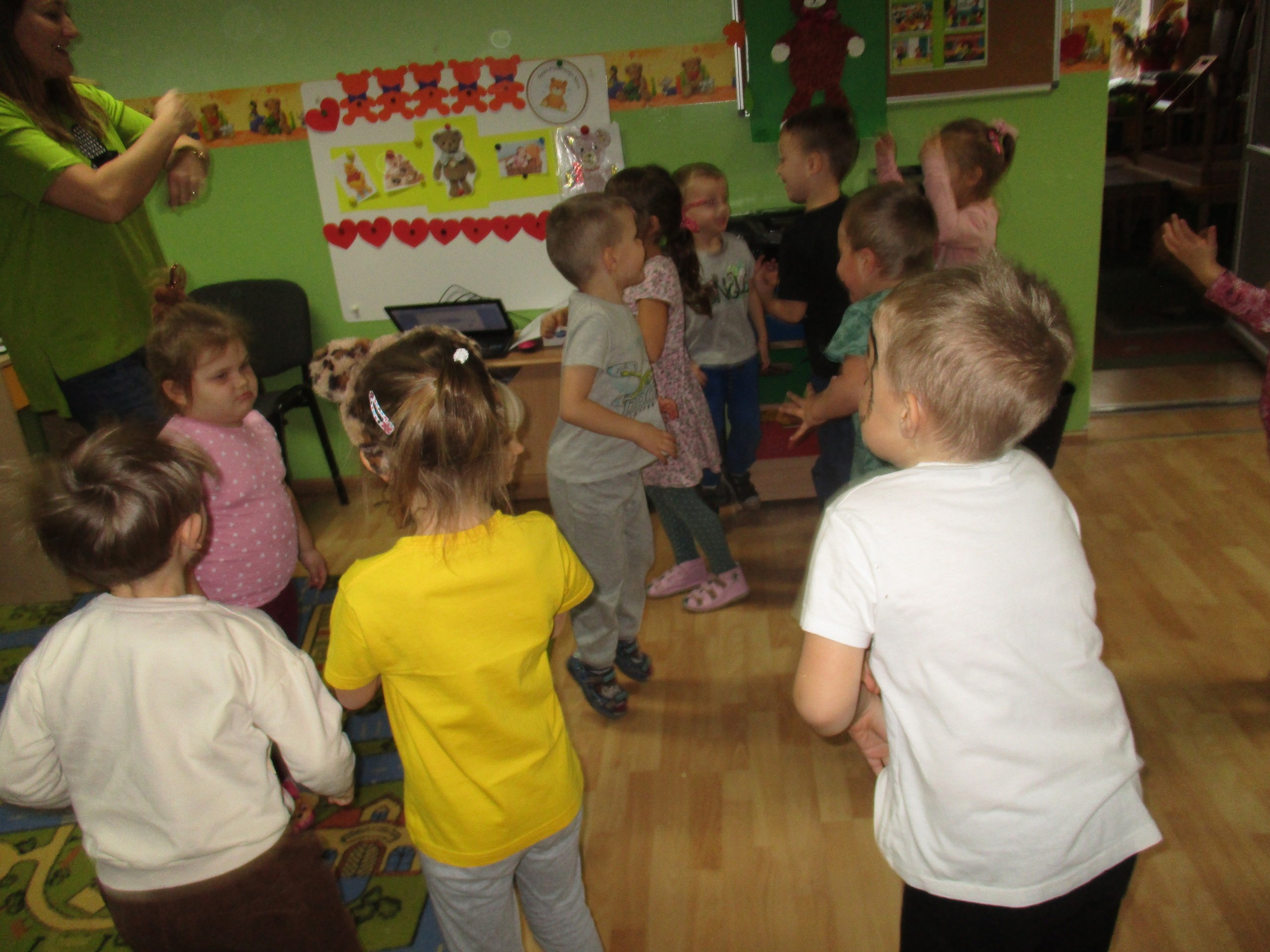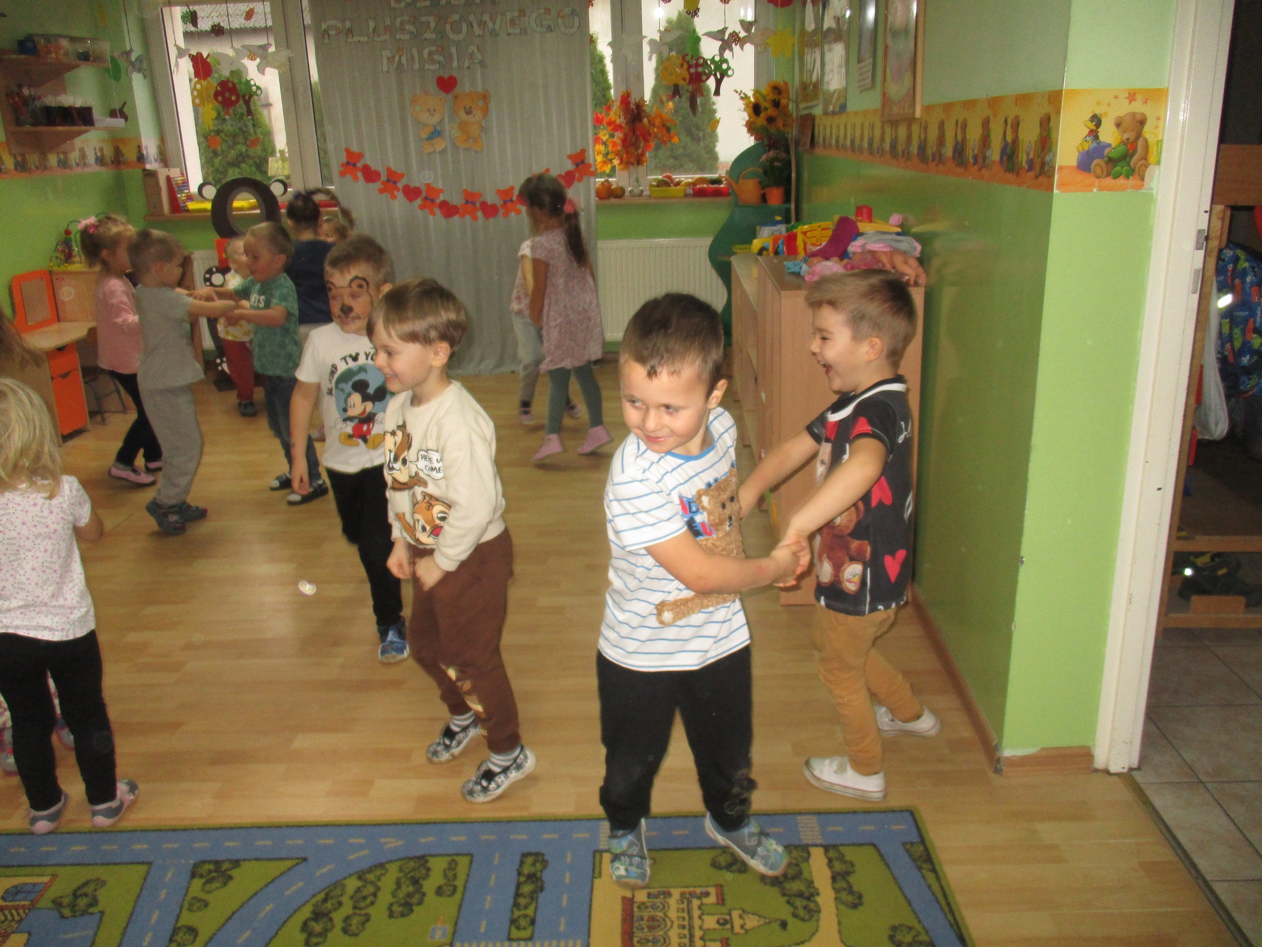 Świętowanie rozpoczęło się od różnego rodzaju tańców na tle melodii o misiach m.in. Jadą, Jadą Misie..., Misio mniam, misio mniam... Dzieci wysłuchały krótkiej historyjki obrazkowej o powstaniu Pluszowego Misia, brały też udział we wszelakich konkursach i zagadkach związanych z postacią misia, zabawy z chustą animacyjną, wykonywały prace plastyczne, miały okazję posmakowania przysmaku misia, czyli pysznego miodku.