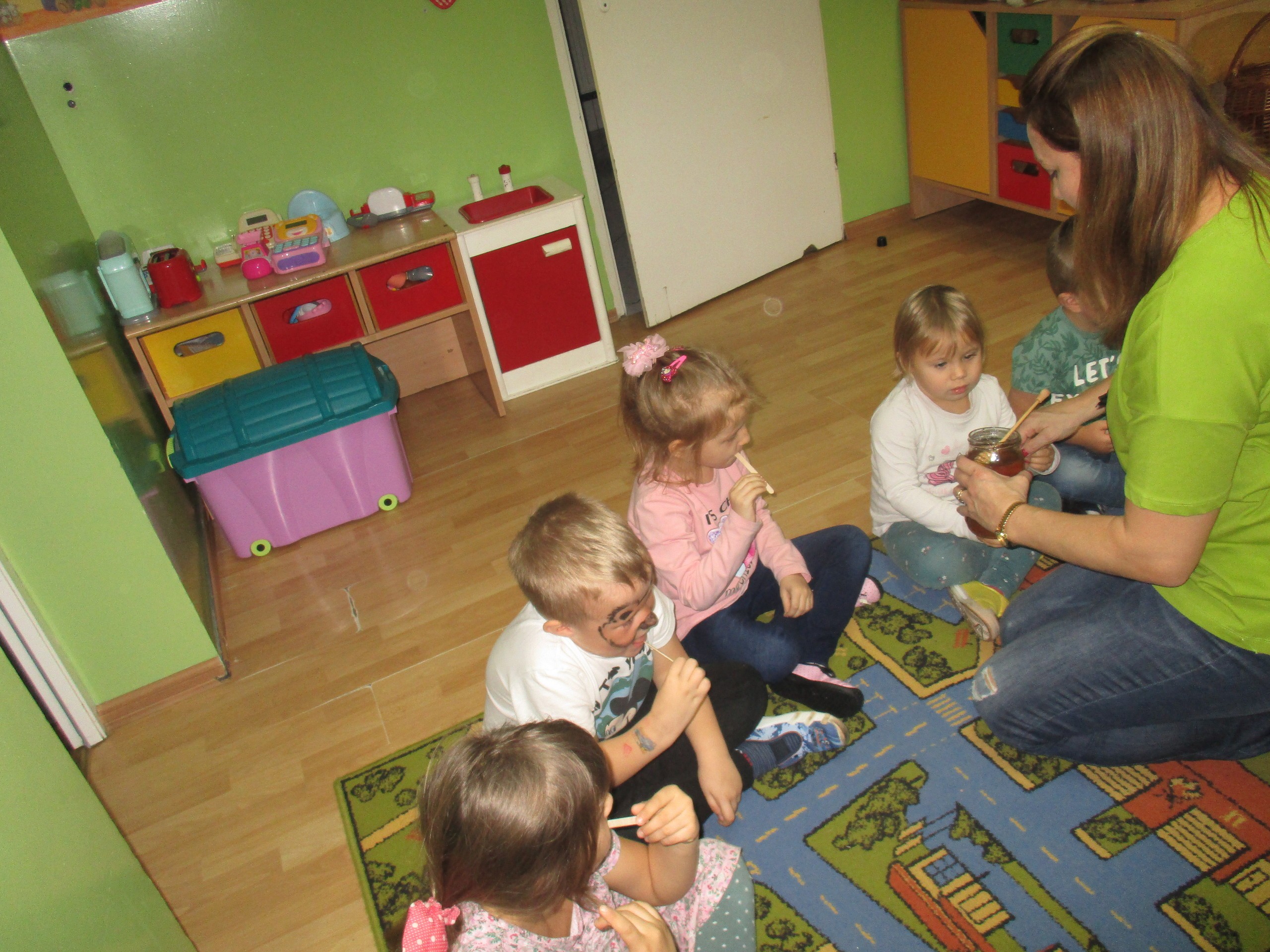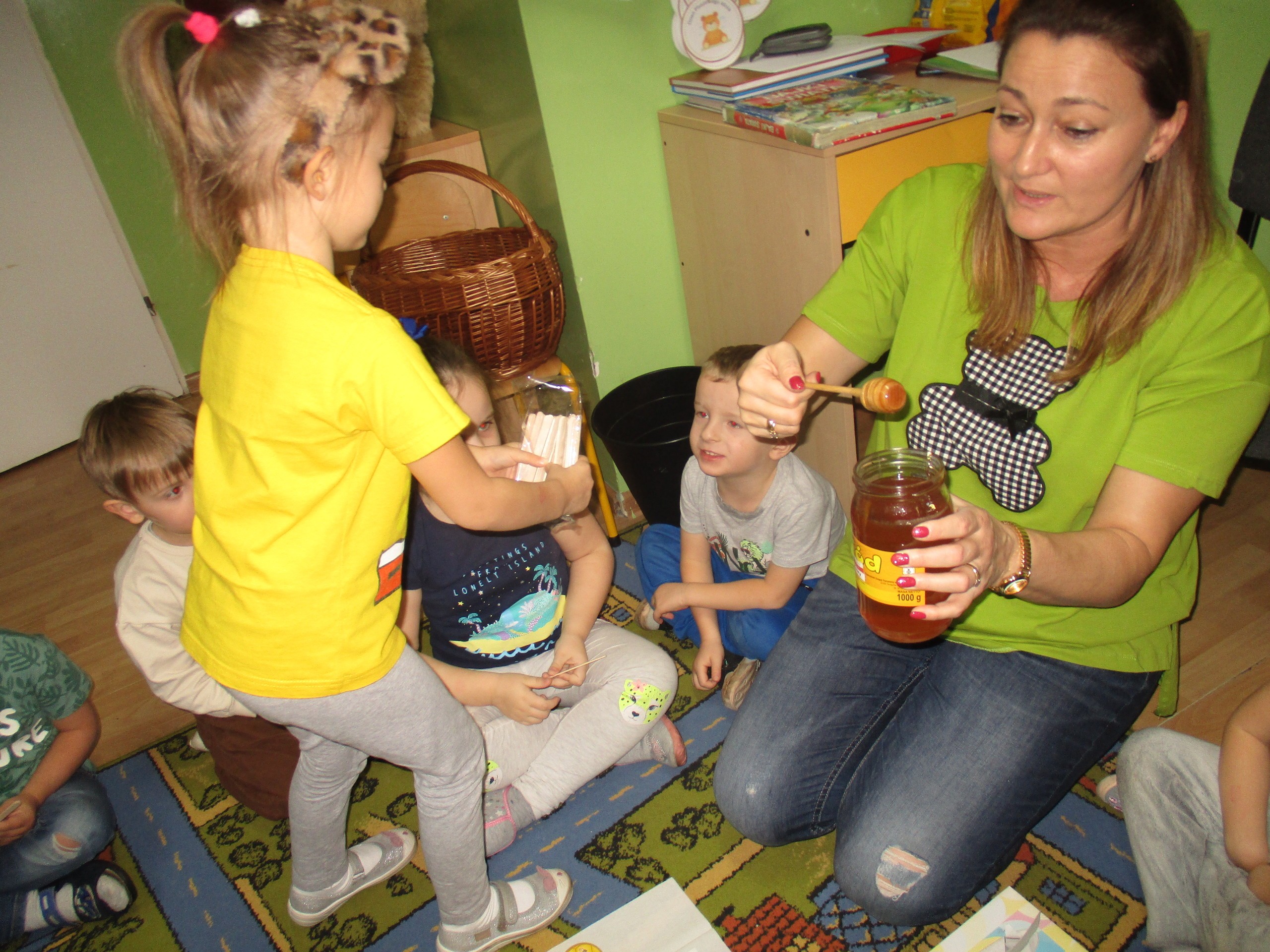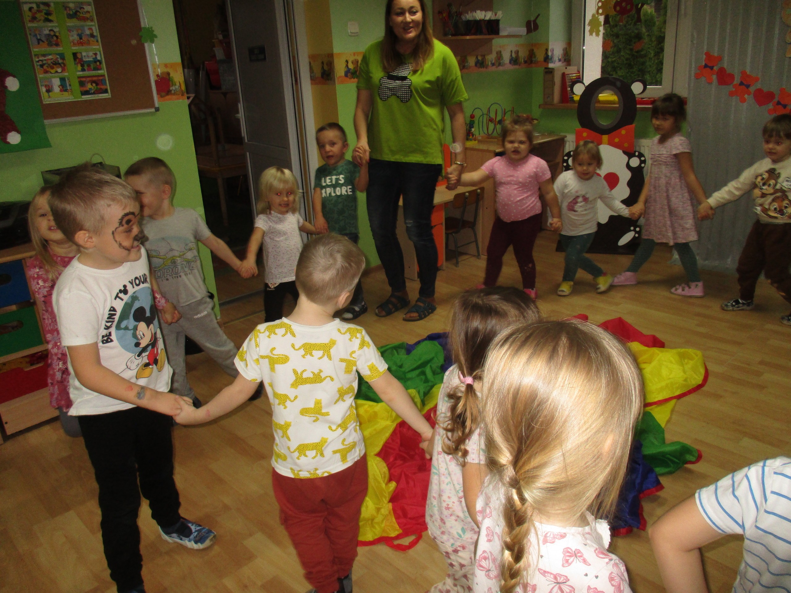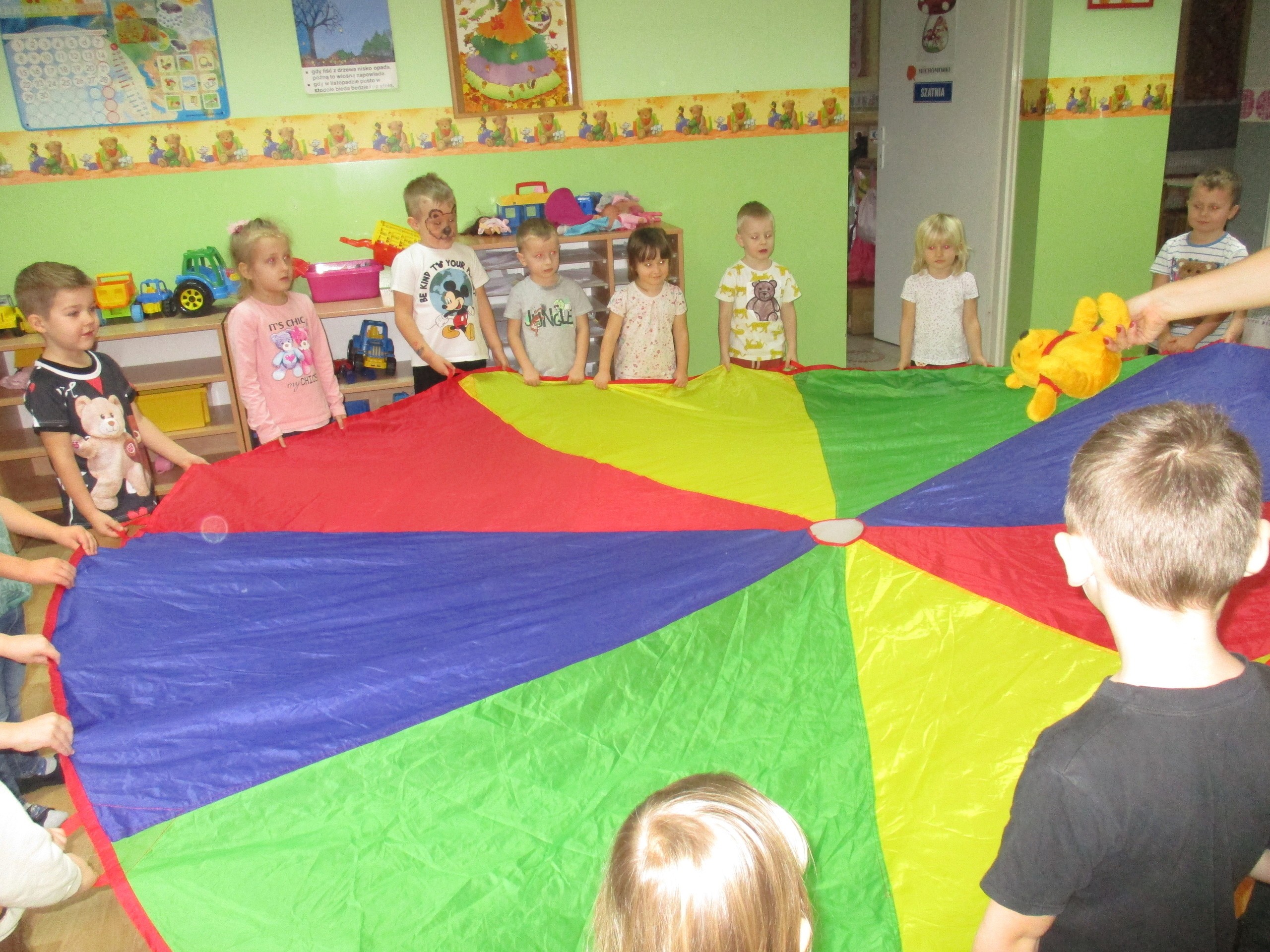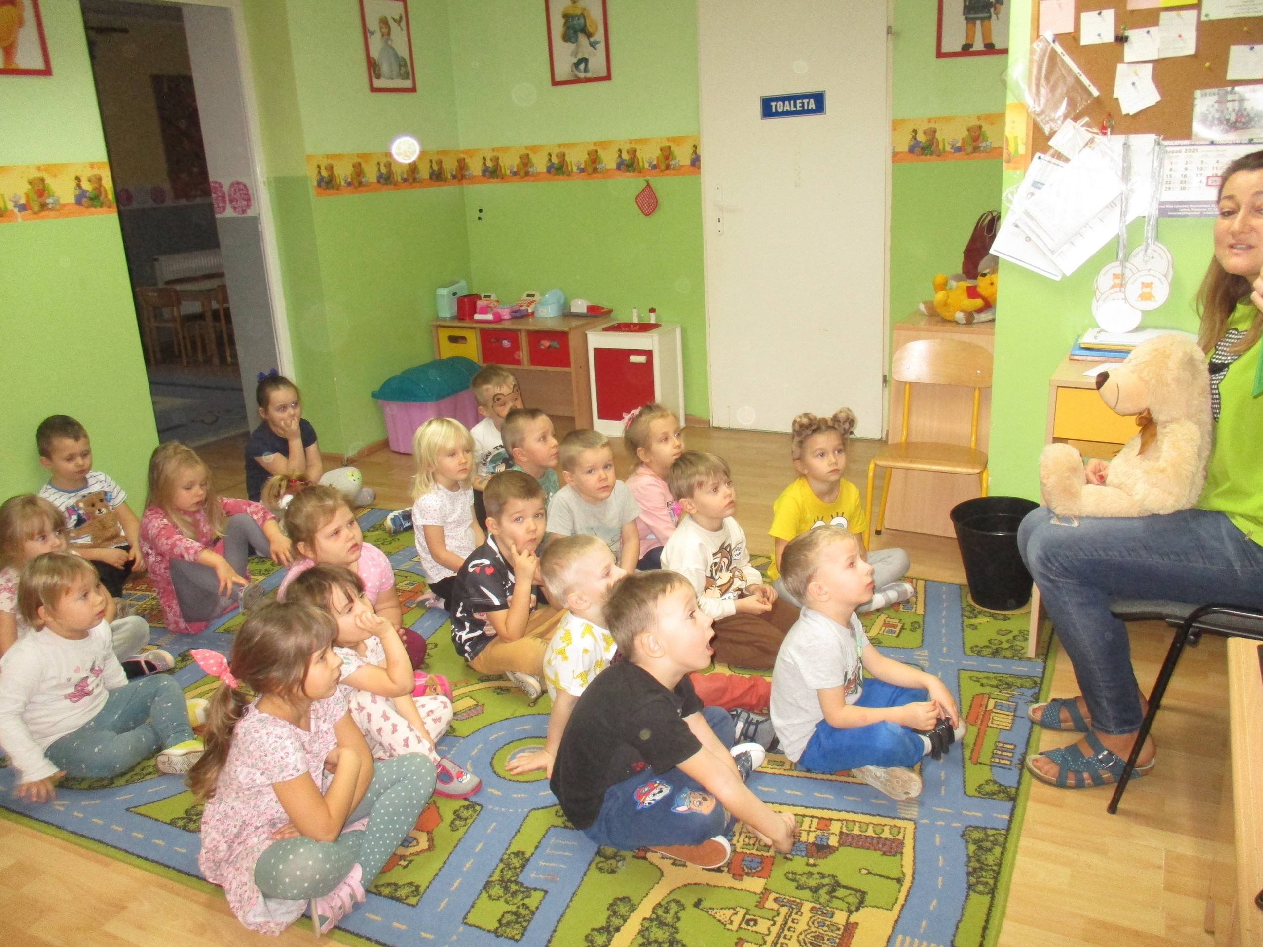 Świętowanie rozpoczęło się od różnego rodzaju tańców na tle melodii o misiach m.in. Jadą, Jadą Misie..., Misio mniam, misio mniam... Dzieci wysłuchały krótkiej historyjki obrazkowej o powstaniu Pluszowego Misia, brały też udział we wszelakich konkursach i zagadkach związanych z postacią misia, zabawy z chustą animacyjną, wykonywały prace plastyczne, miały okazję posmakowania przysmaku misia, czyli pysznego miodku.