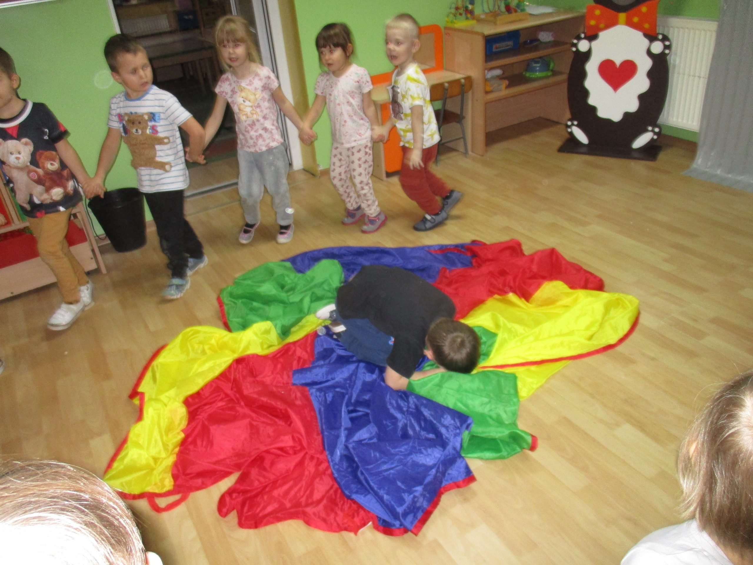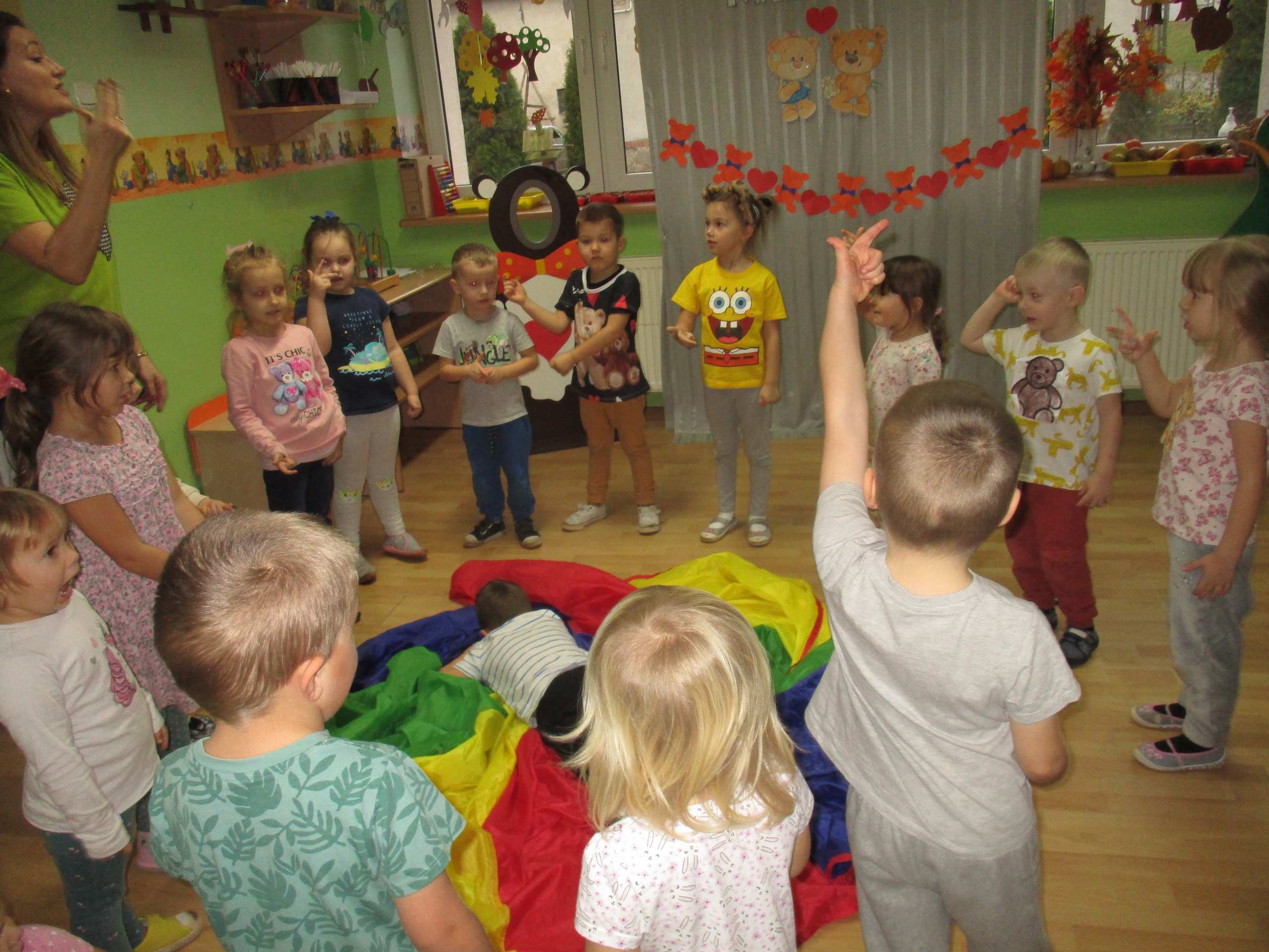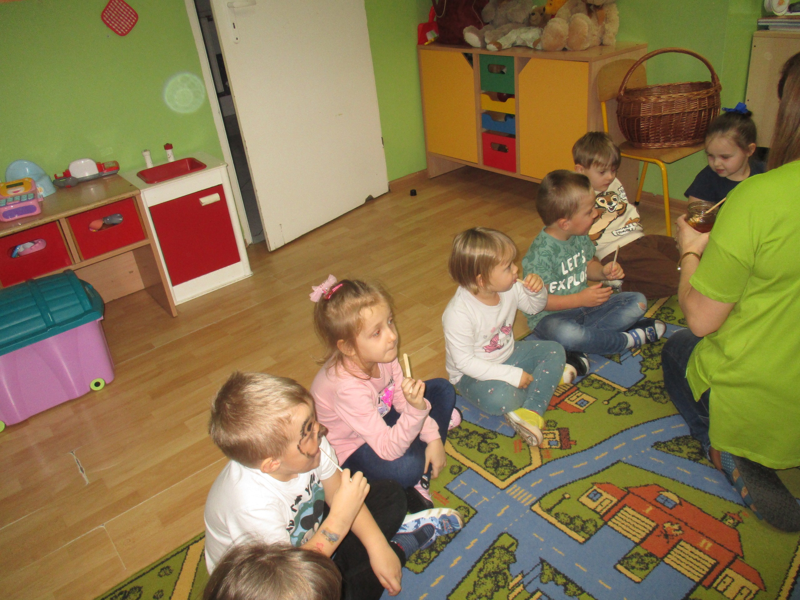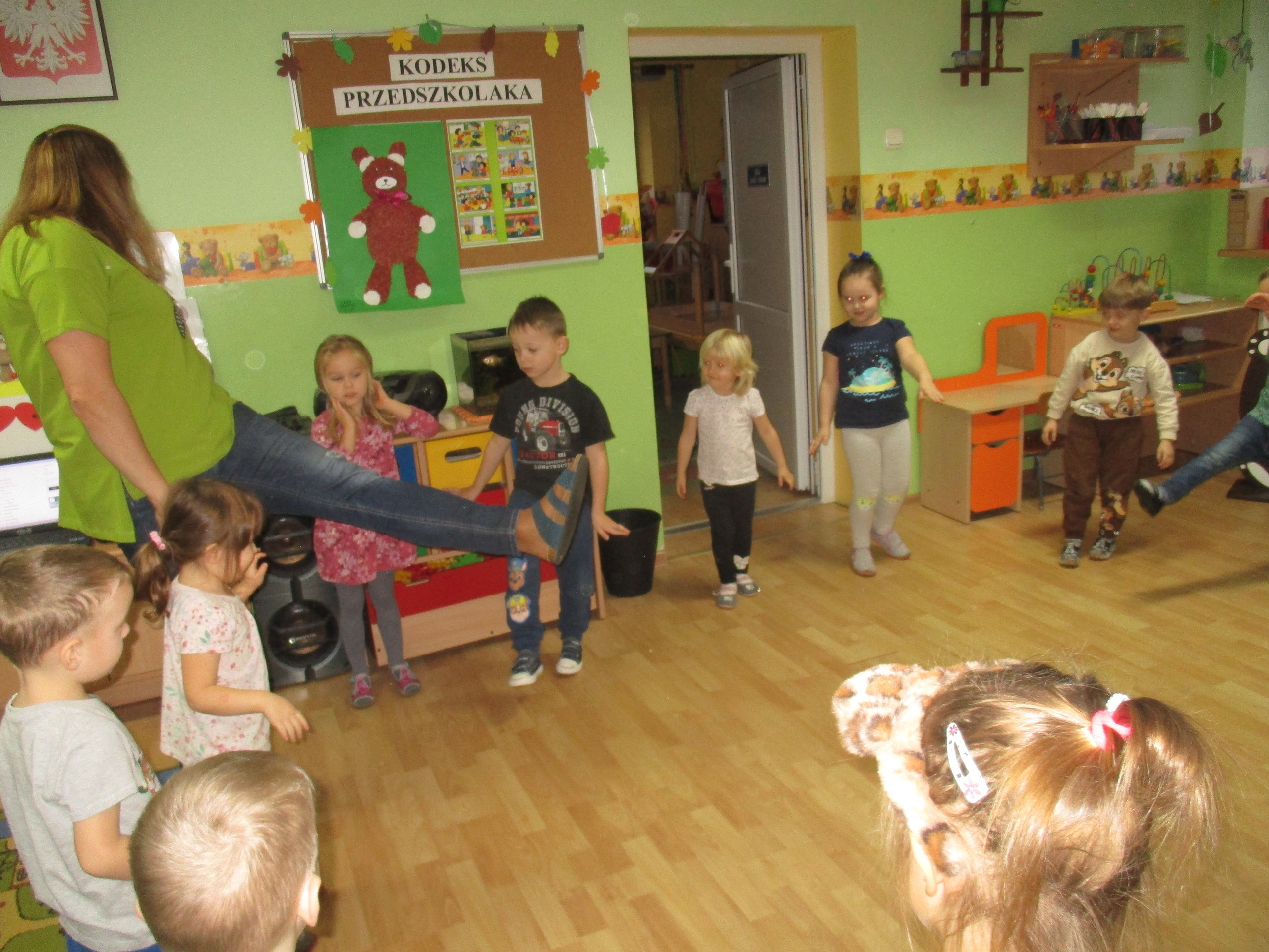 Świętowanie rozpoczęło się od różnego rodzaju tańców na tle melodii o misiach m.in. Jadą, Jadą Misie..., Misio mniam, misio mniam... Dzieci wysłuchały krótkiej historyjki obrazkowej o powstaniu Pluszowego Misia, brały też udział we wszelakich konkursach i zagadkach związanych z postacią misia, zabawy z chustą animacyjną, wykonywały prace plastyczne, miały okazję posmakowania przysmaku misia, czyli pysznego miodku.