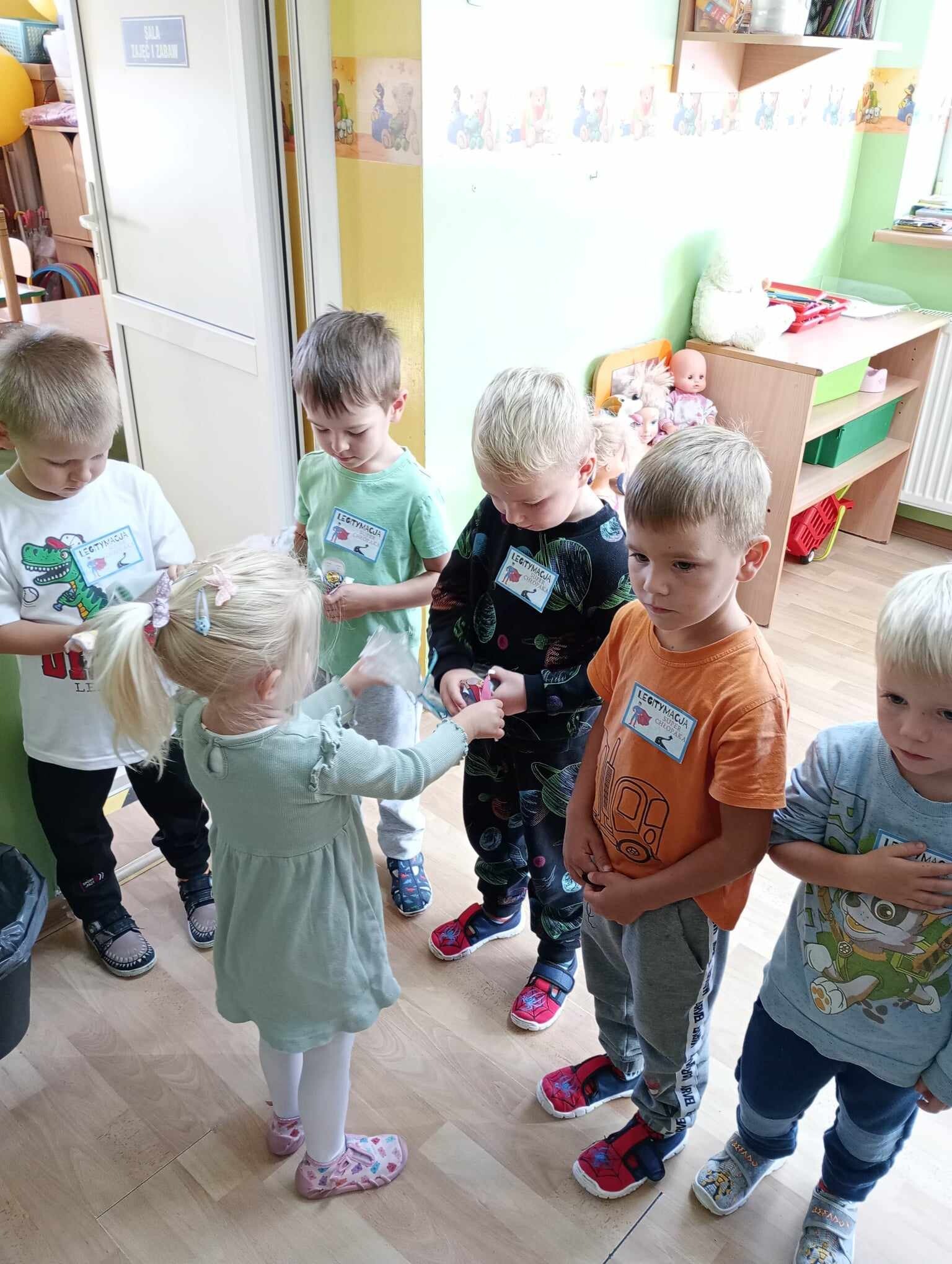 Od najmłodszych lat uczymy dzieci, aby pamiętały o ważnych uroczystościach w życiu rodziny czy życiu przedszkola. Dlatego dzisiaj świętowaliśmy Dzień Chłopaka. W tym dniu nasi chłopcy mieli okazję otrzymać legitymację "super chłopaka", ale aby ją zdobyć musieli pokonać kilka trudności. Próba odwagi - zaprosić dziewczynkę do tańca, próba wytrzymałości - wykonanie kilku ćwiczeń, próba mądrości - odpowiedzieć na kilka pytań. Oczywiście wszyscy chłopcy prawidłowo wykonali zadania, otrzymali legitymację oraz upominki.