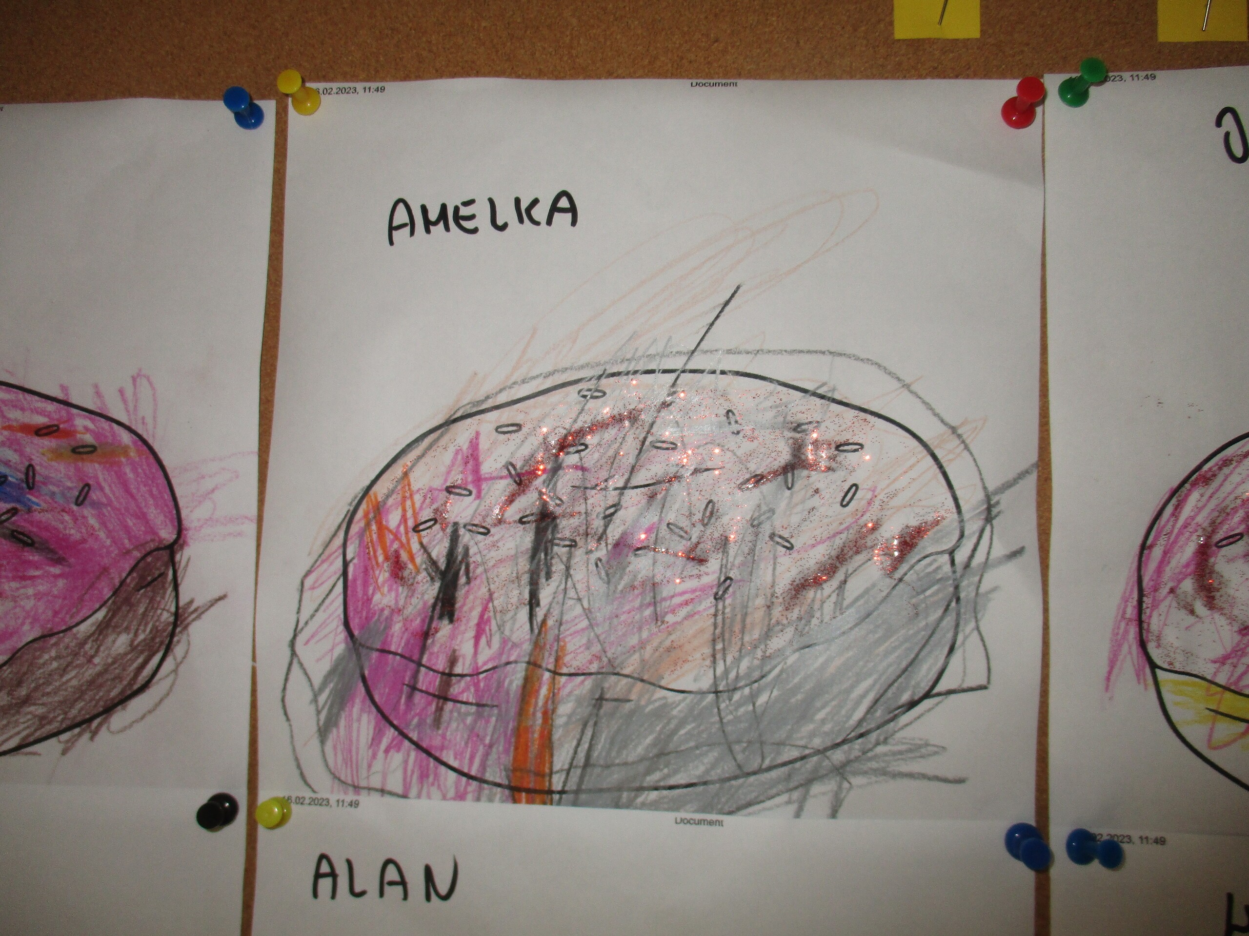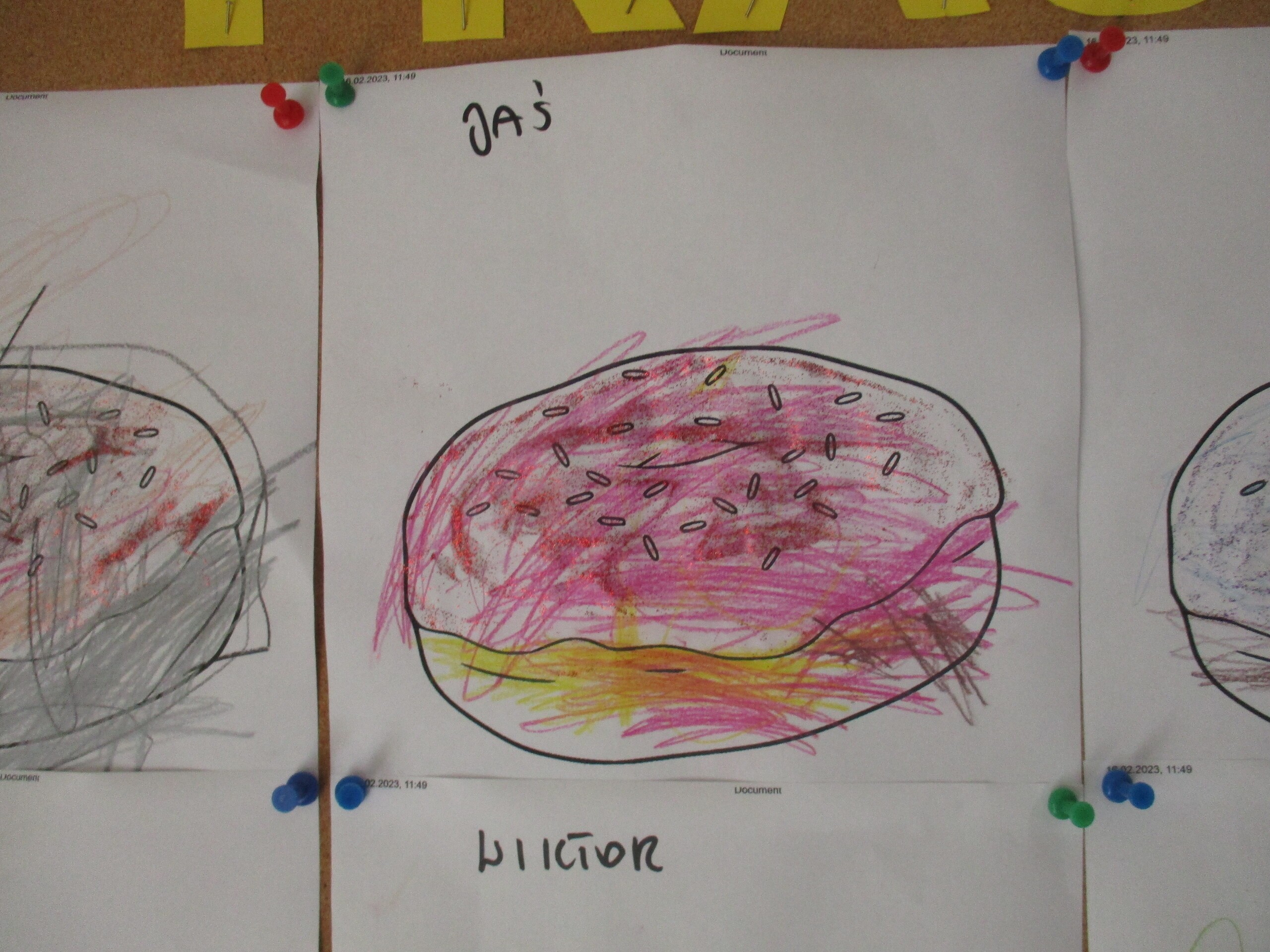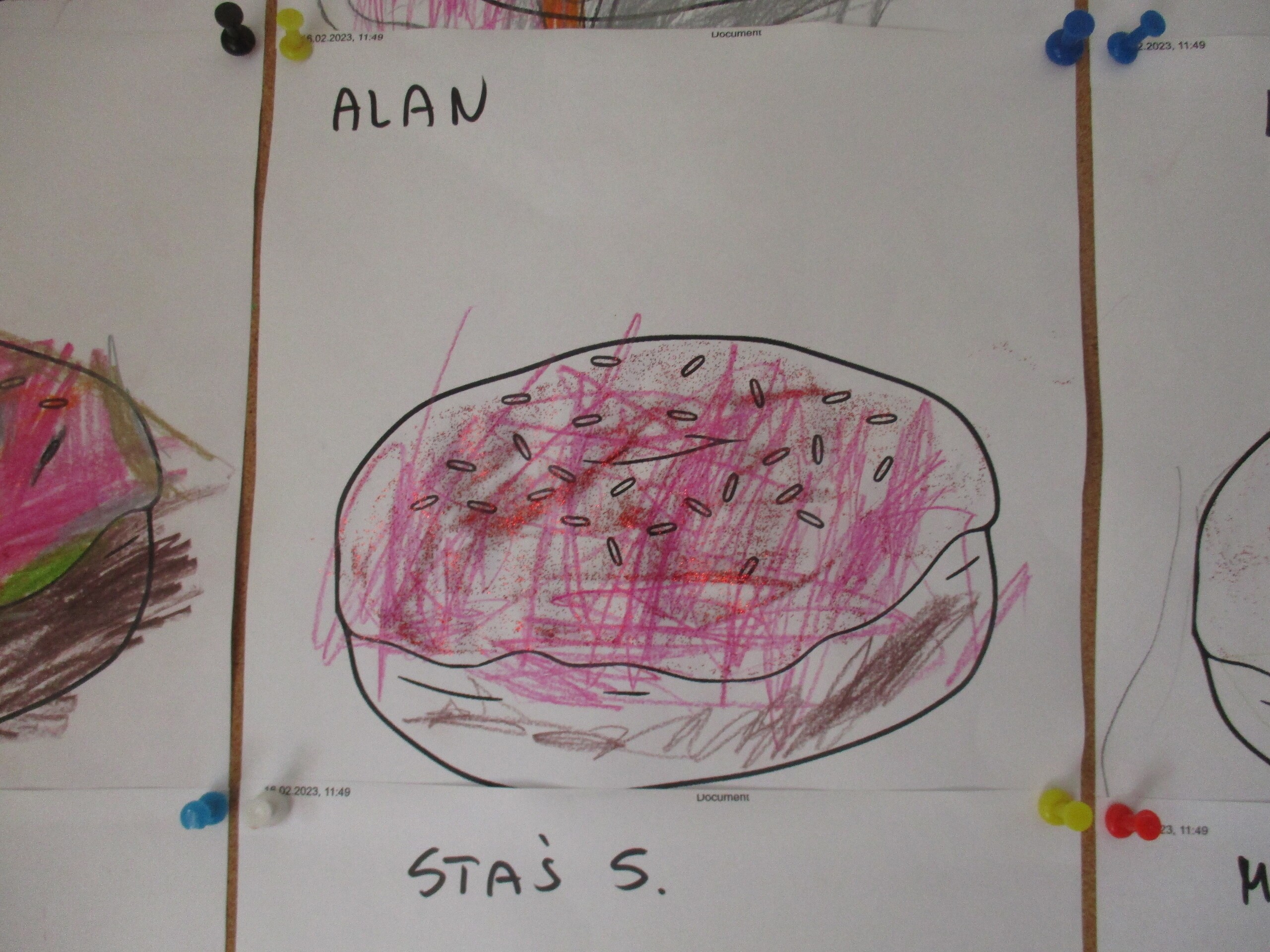 Z okazji Tłustego Czwartku Nikodem z mamą - Panią Dorotą, przyniósł dla wszystkich dzieci pączki. Nikodem powiedział, że przyniósł niespodziankę - pączka, gdyż dziś jest Dzień Pączka. Wszystkie dzieci z przyjemnością zjadły pączki przyniesione przez swojego kolegę.