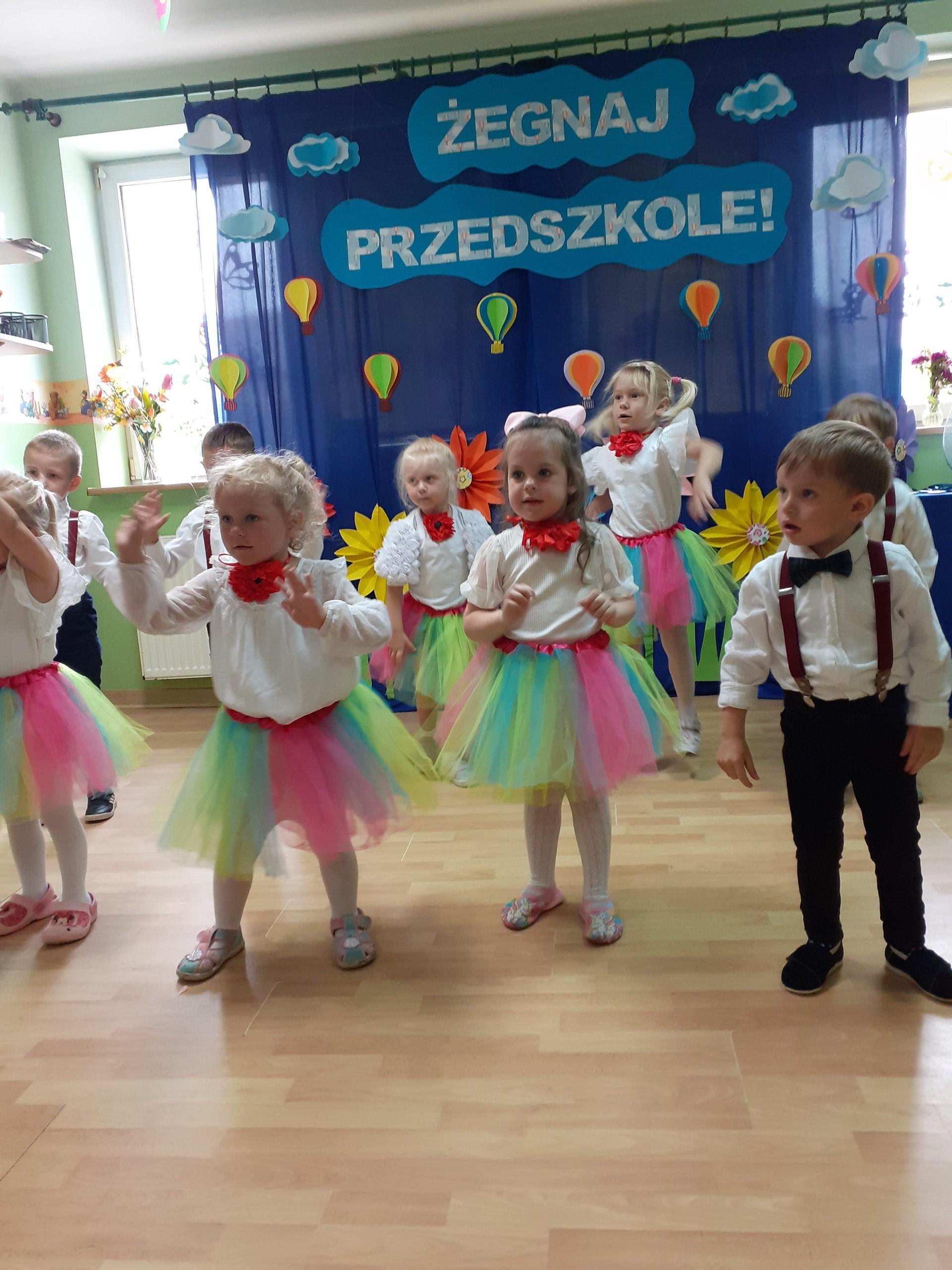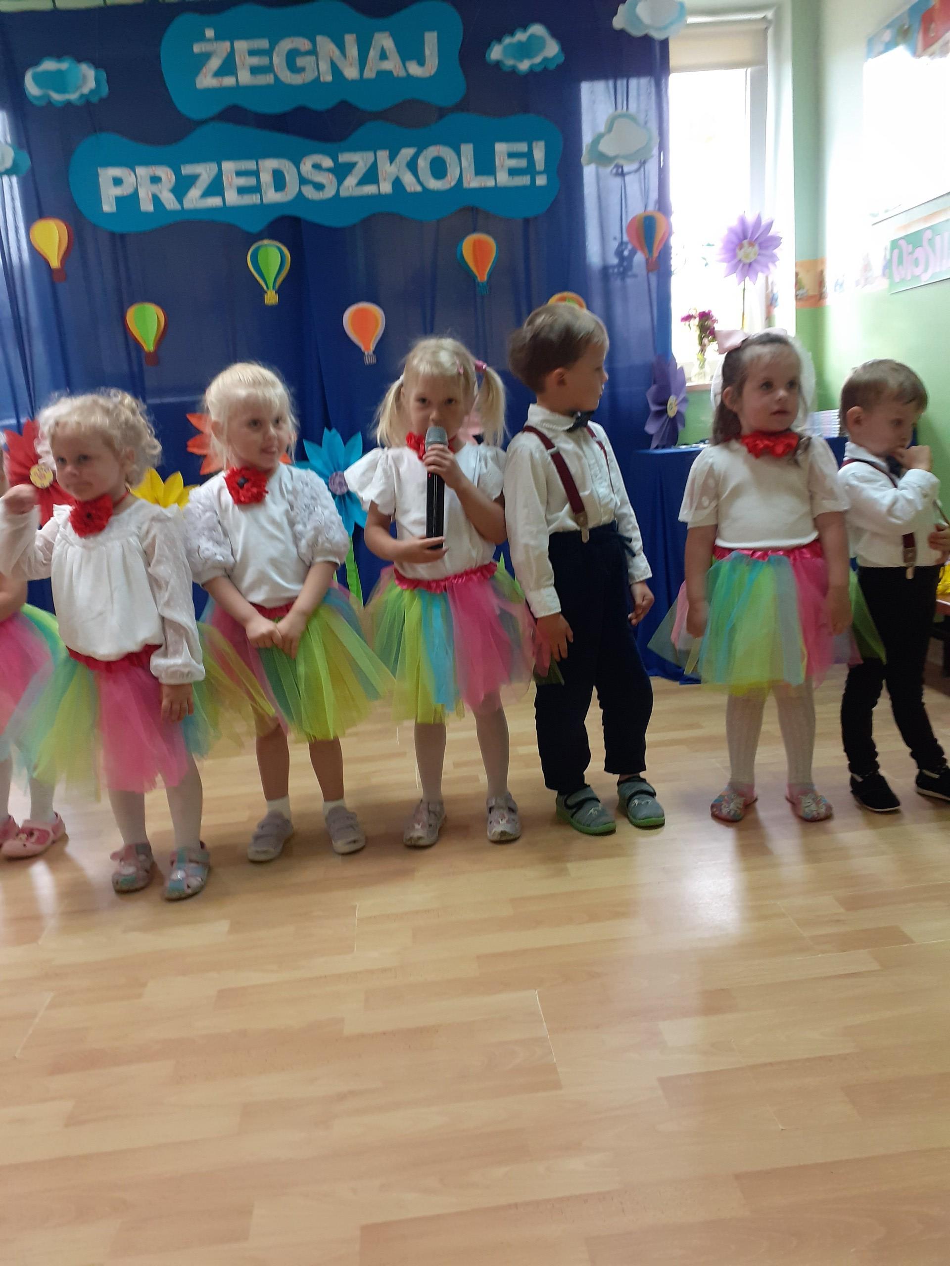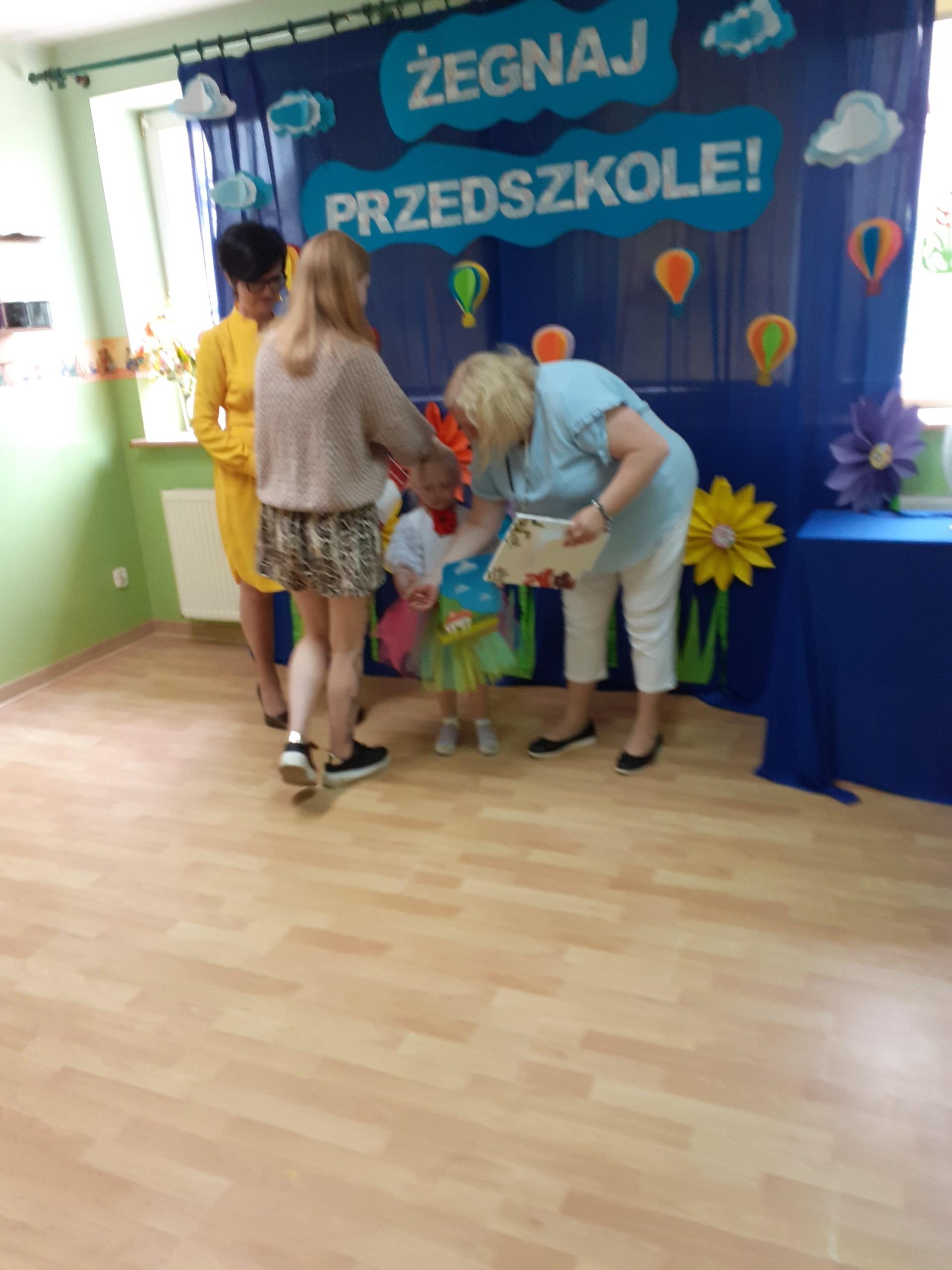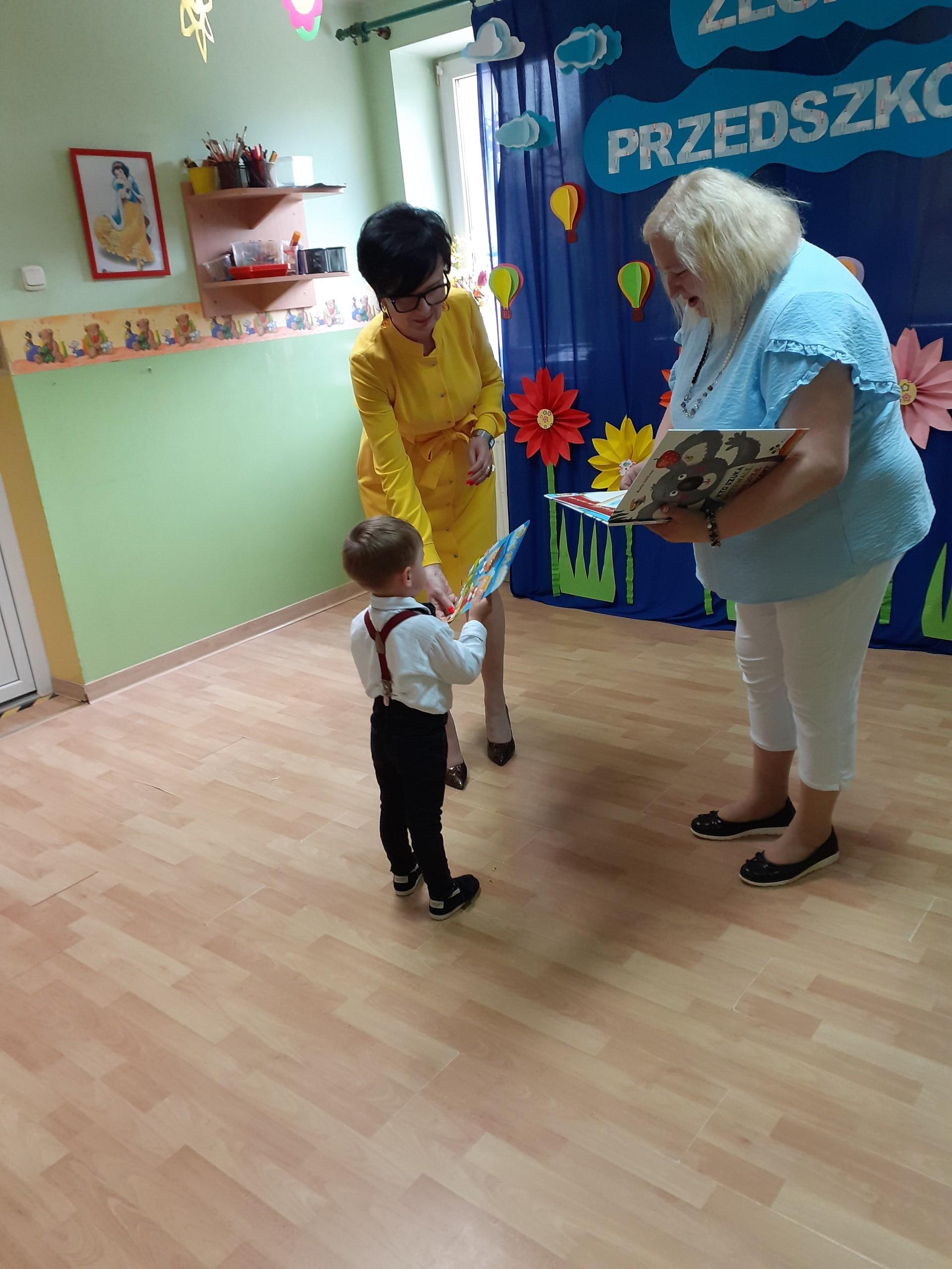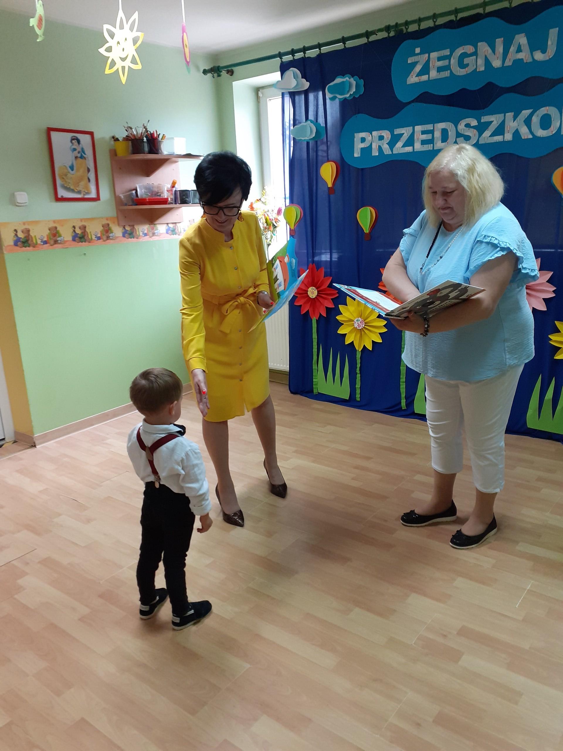 Dzisiaj w naszym Przedszkolu odbyła się uroczystość z okazji zakończenia roku szkolnego. Pierwsze rok szkolny pożegnały dzieci z młodszej grupy. Pożegnały wierszykami, tańcem i piosenką. Pani Dyrektor wraz z wychowawcą wręczyła dyplomy pamiątkowe oraz książki i medale okolicznościowe, a także podziekowania dla rodziców za zaangażowanie w życie przedszkola. Pani Dyrektor otrzymała od maluchów pamiątkę w postaci kwiatka.
