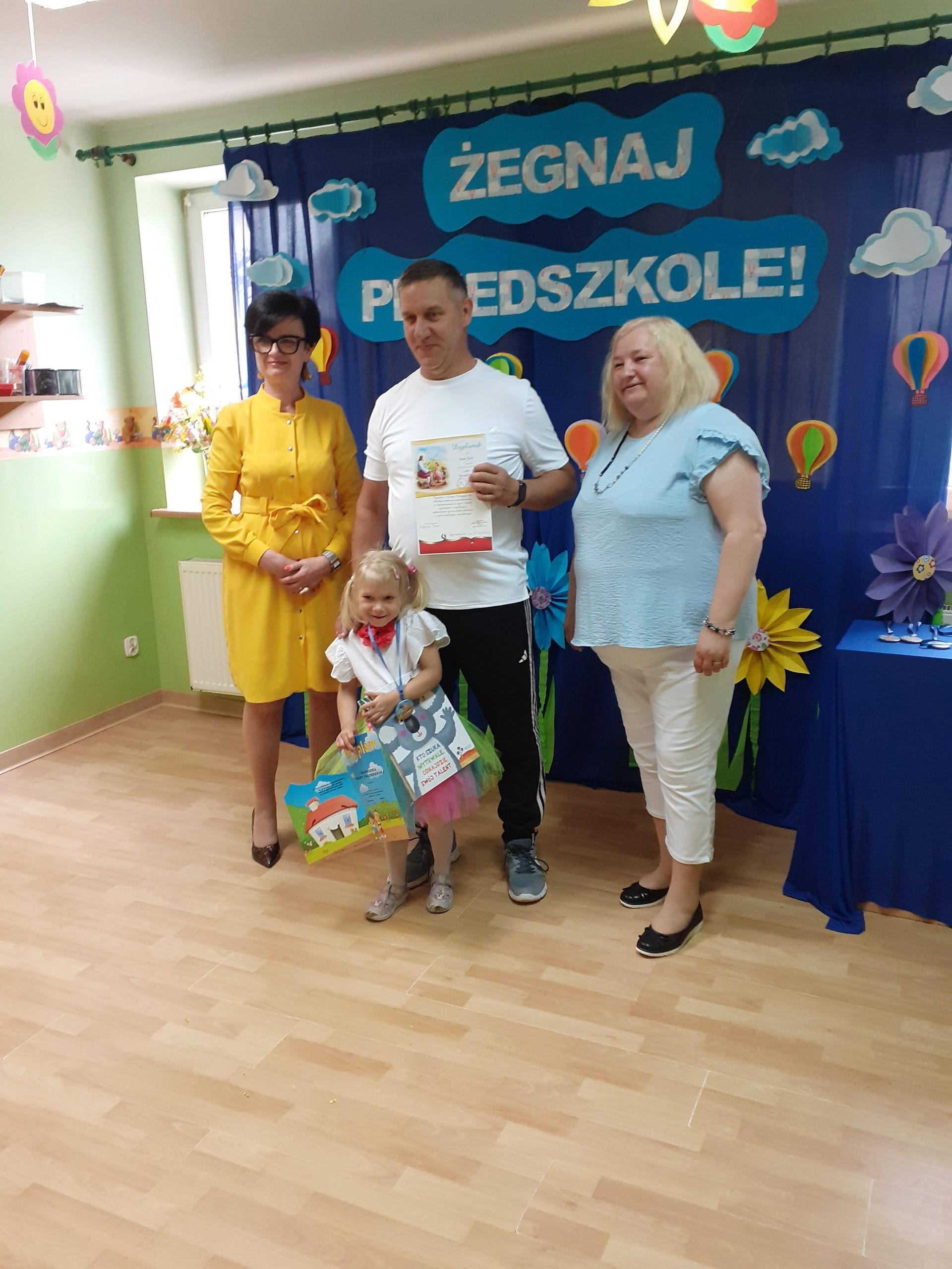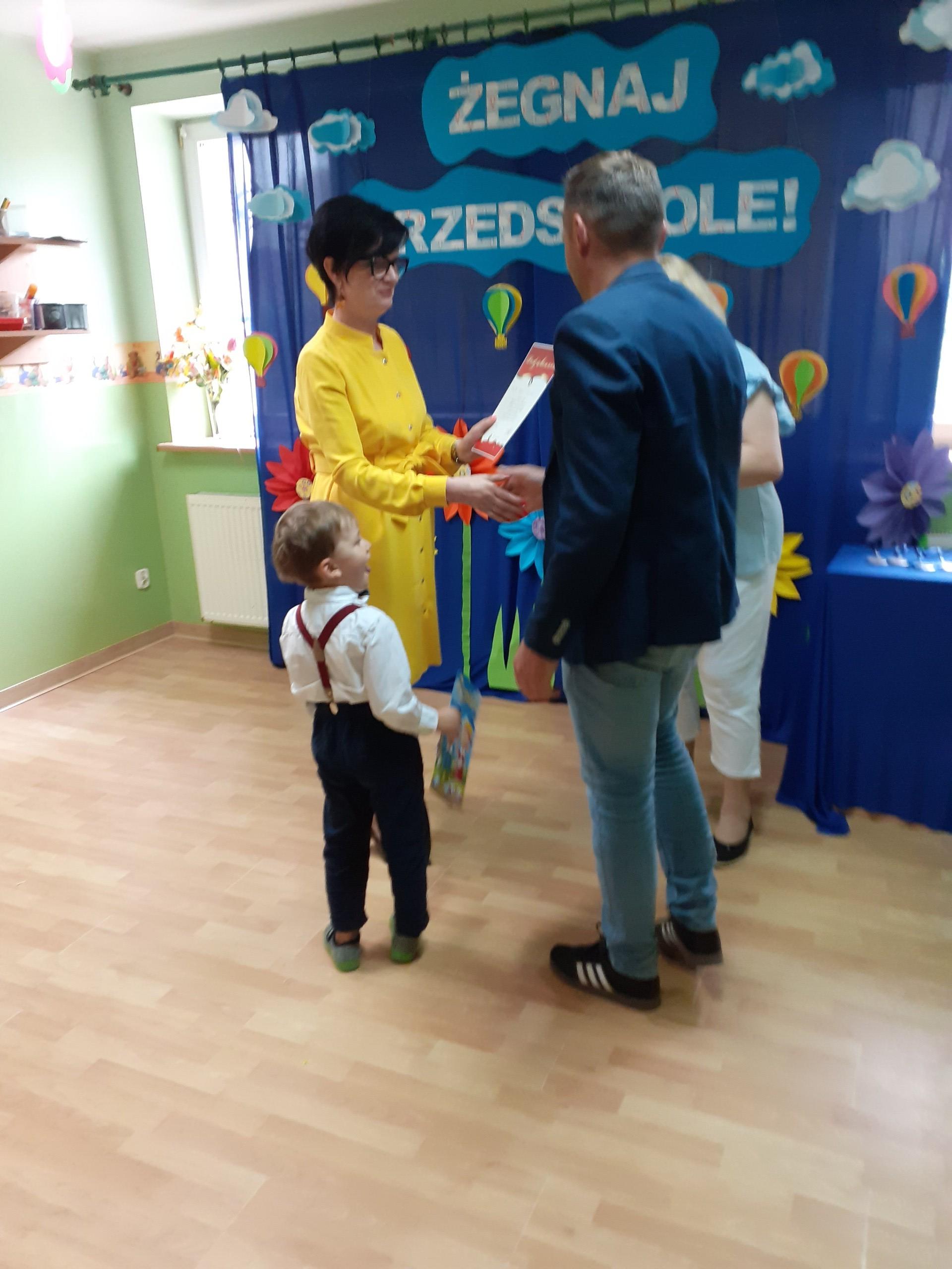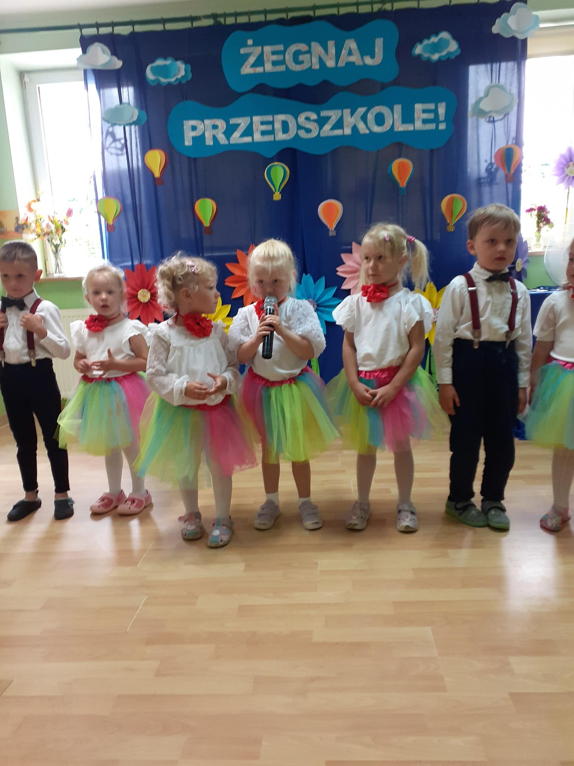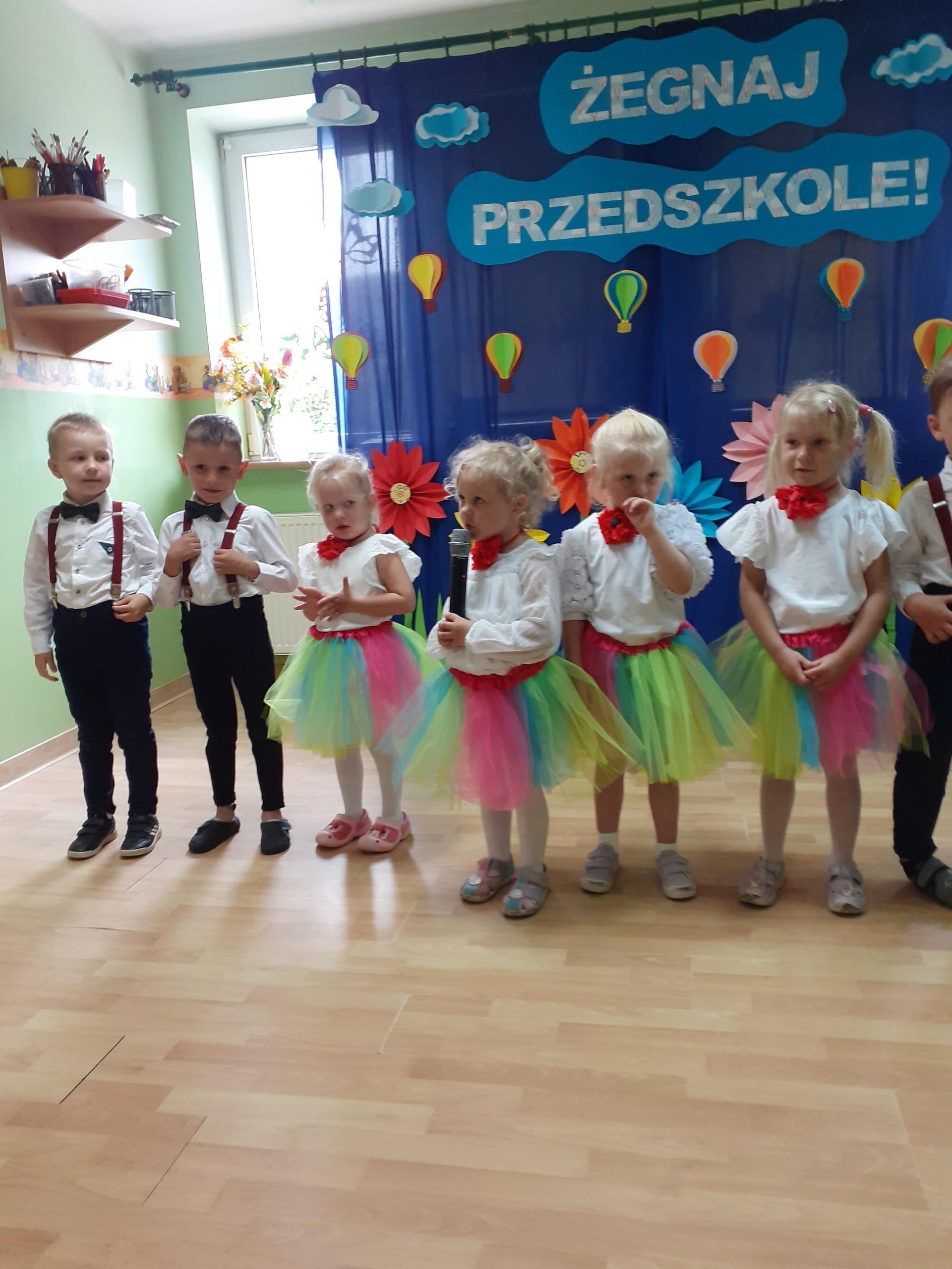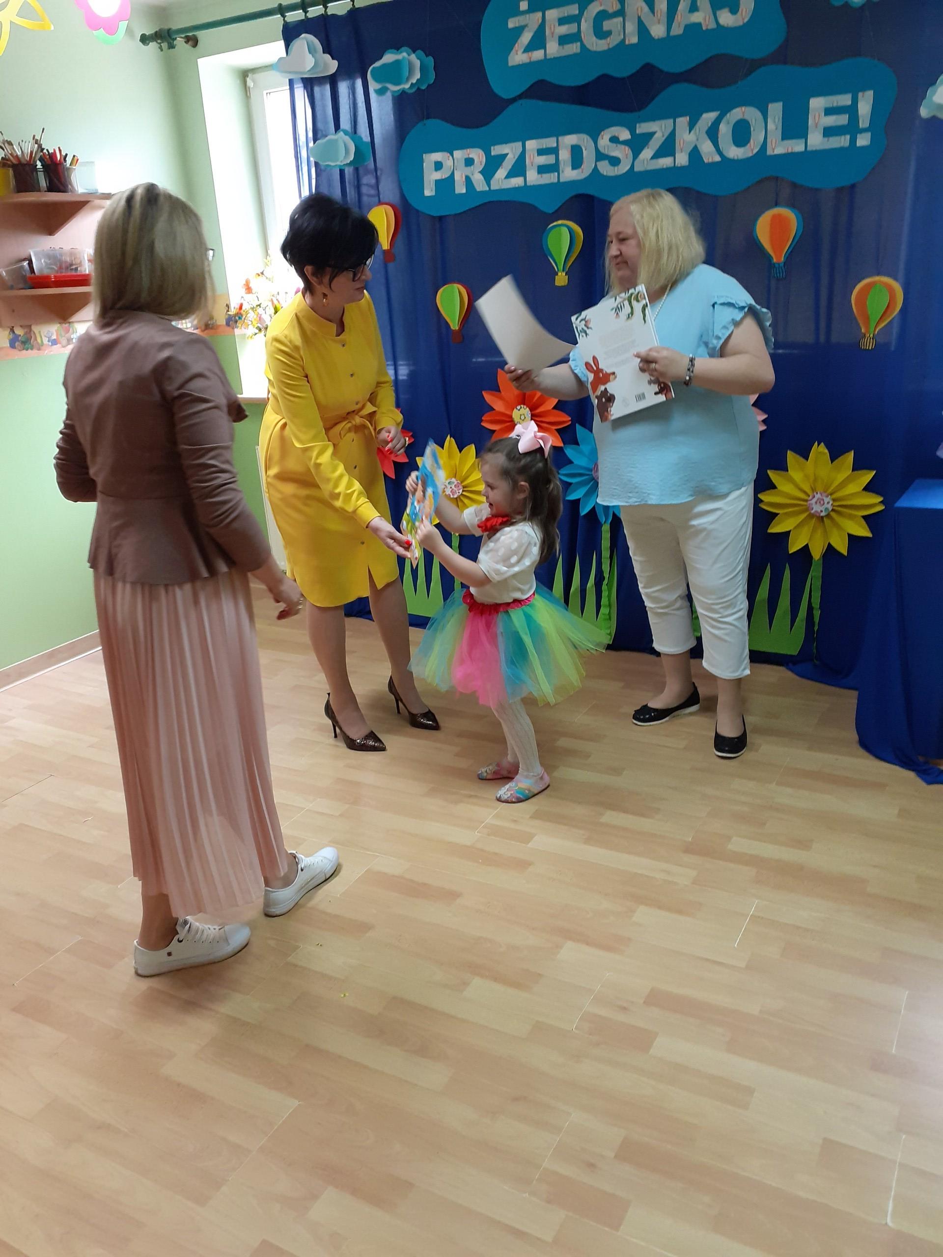 Dzisiaj w naszym Przedszkolu odbyła się uroczystość z okazji zakończenia roku szkolnego. Pierwsze rok szkolny pożegnały dzieci z młodszej grupy. Pożegnały wierszykami, tańcem i piosenką. Pani Dyrektor wraz z wychowawcą wręczyła dyplomy pamiątkowe oraz książki i medale okolicznościowe, a także podziekowania dla rodziców za zaangażowanie w życie przedszkola. Pani Dyrektor otrzymała od maluchów pamiątkę w postaci kwiatka.