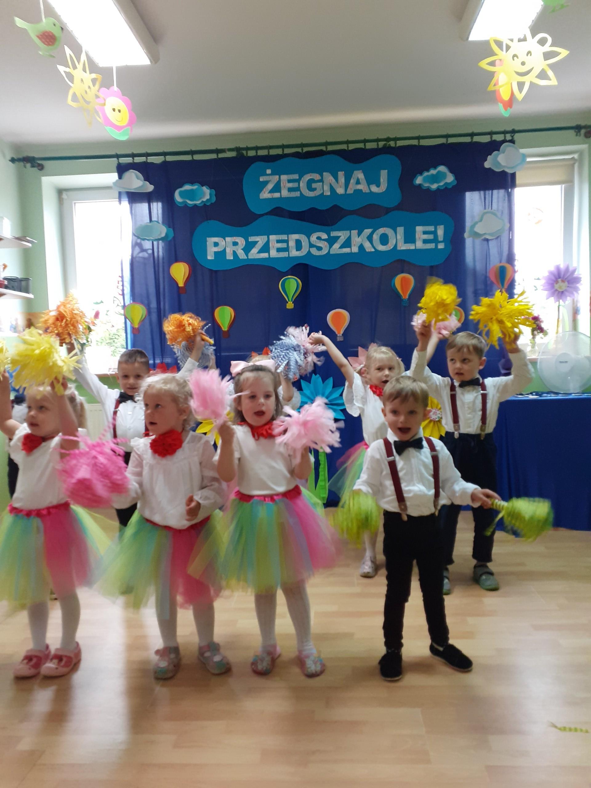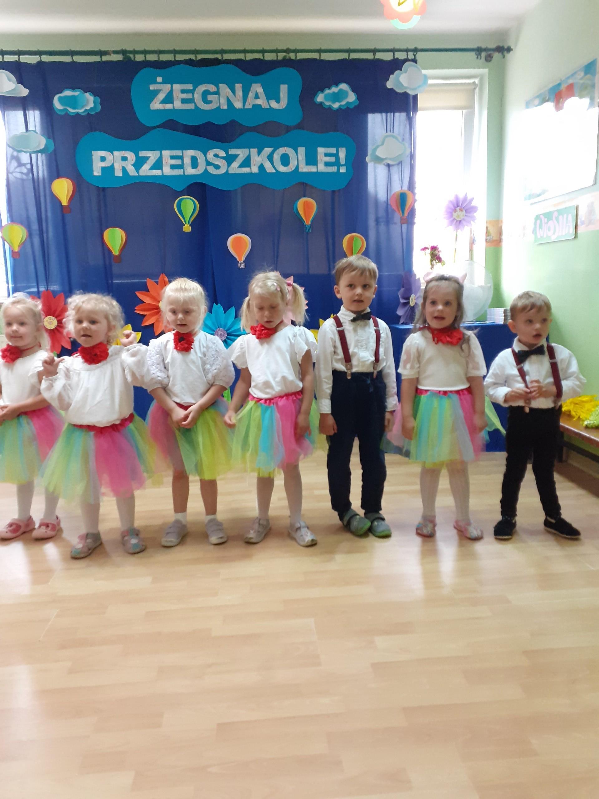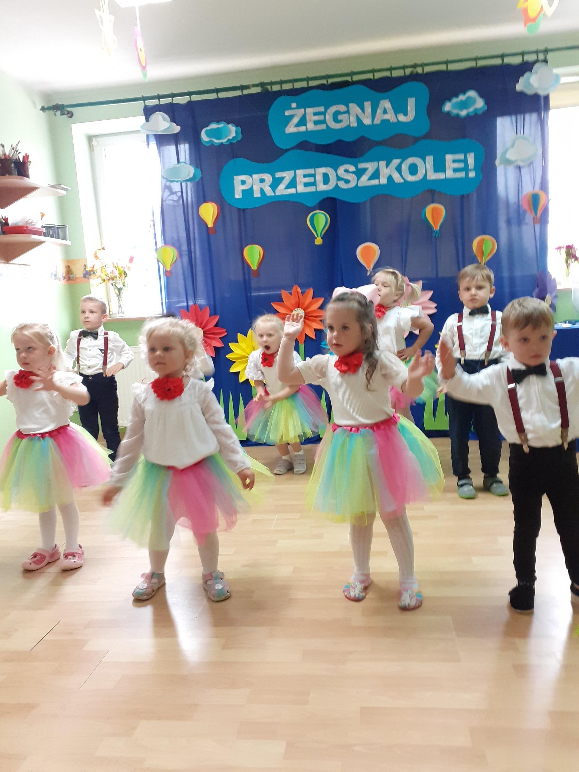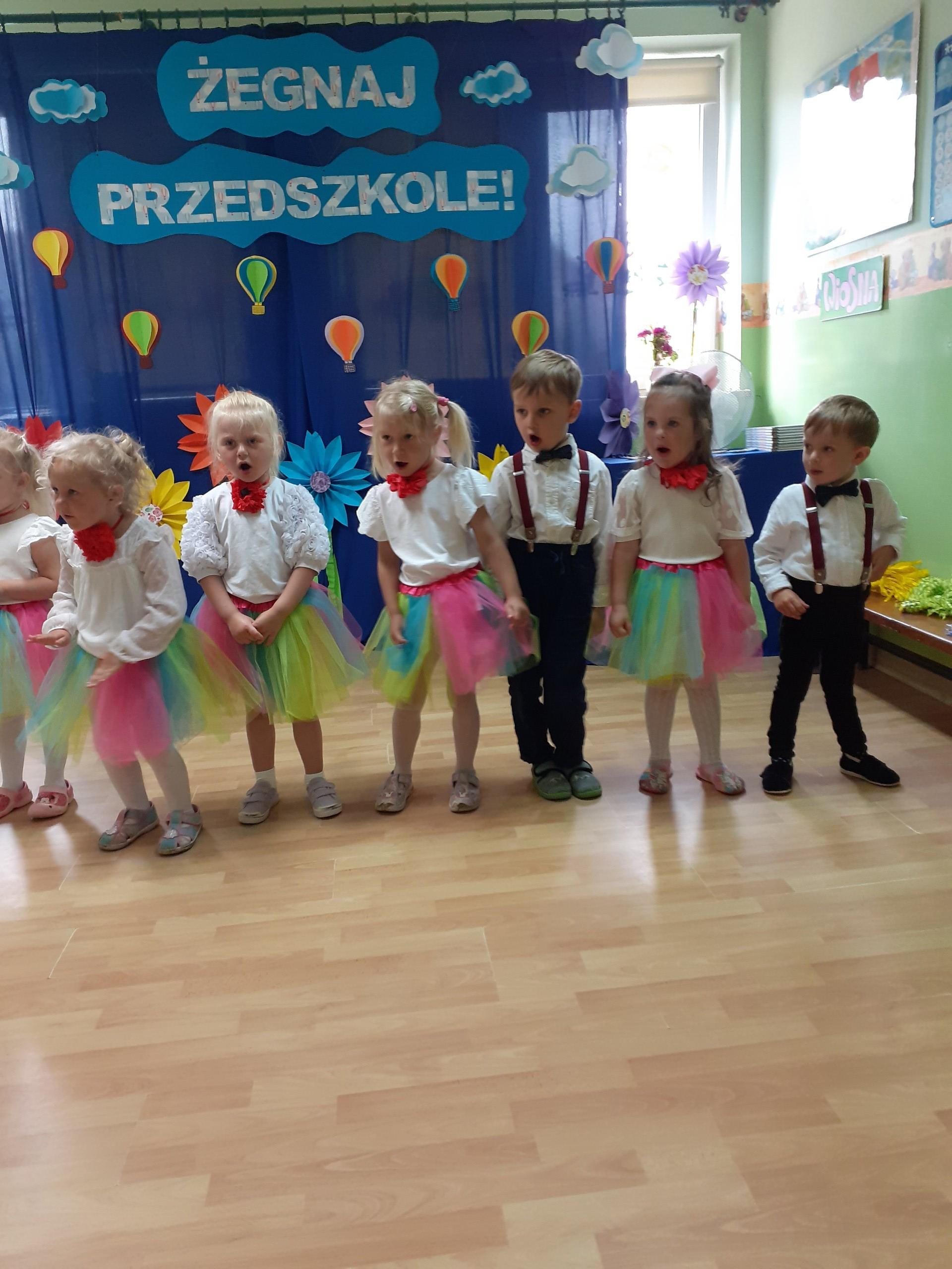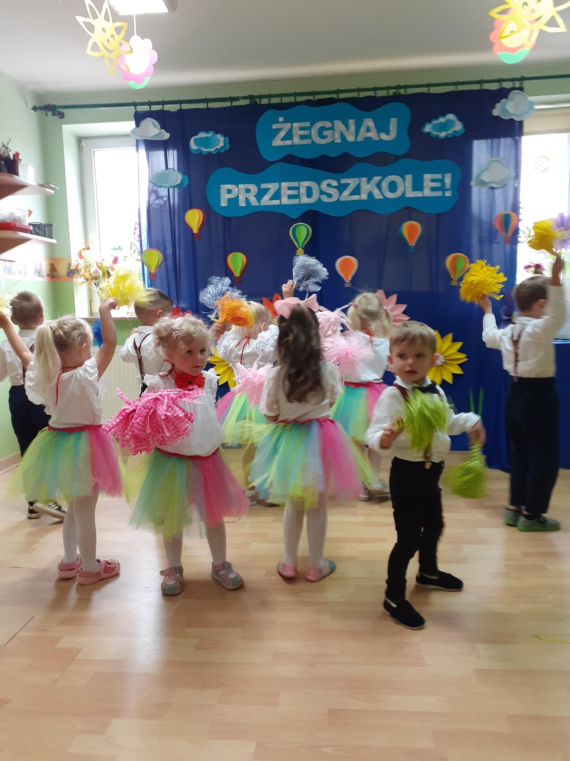 Dzisiaj w naszym Przedszkolu odbyła się uroczystość z okazji zakończenia roku szkolnego. Pierwsze rok szkolny pożegnały dzieci z młodszej grupy. Pożegnały wierszykami, tańcem i piosenką. Pani Dyrektor wraz z wychowawcą wręczyła dyplomy pamiątkowe oraz książki i medale okolicznościowe, a także podziekowania dla rodziców za zaangażowanie w życie przedszkola. Pani Dyrektor otrzymała od maluchów pamiątkę w postaci kwiatka.
