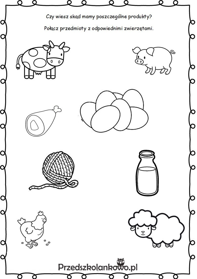 4. Skąd mamy poszczególne produkty. Zadanie na karcie pracy. Obrazek do wydruku poniżej.