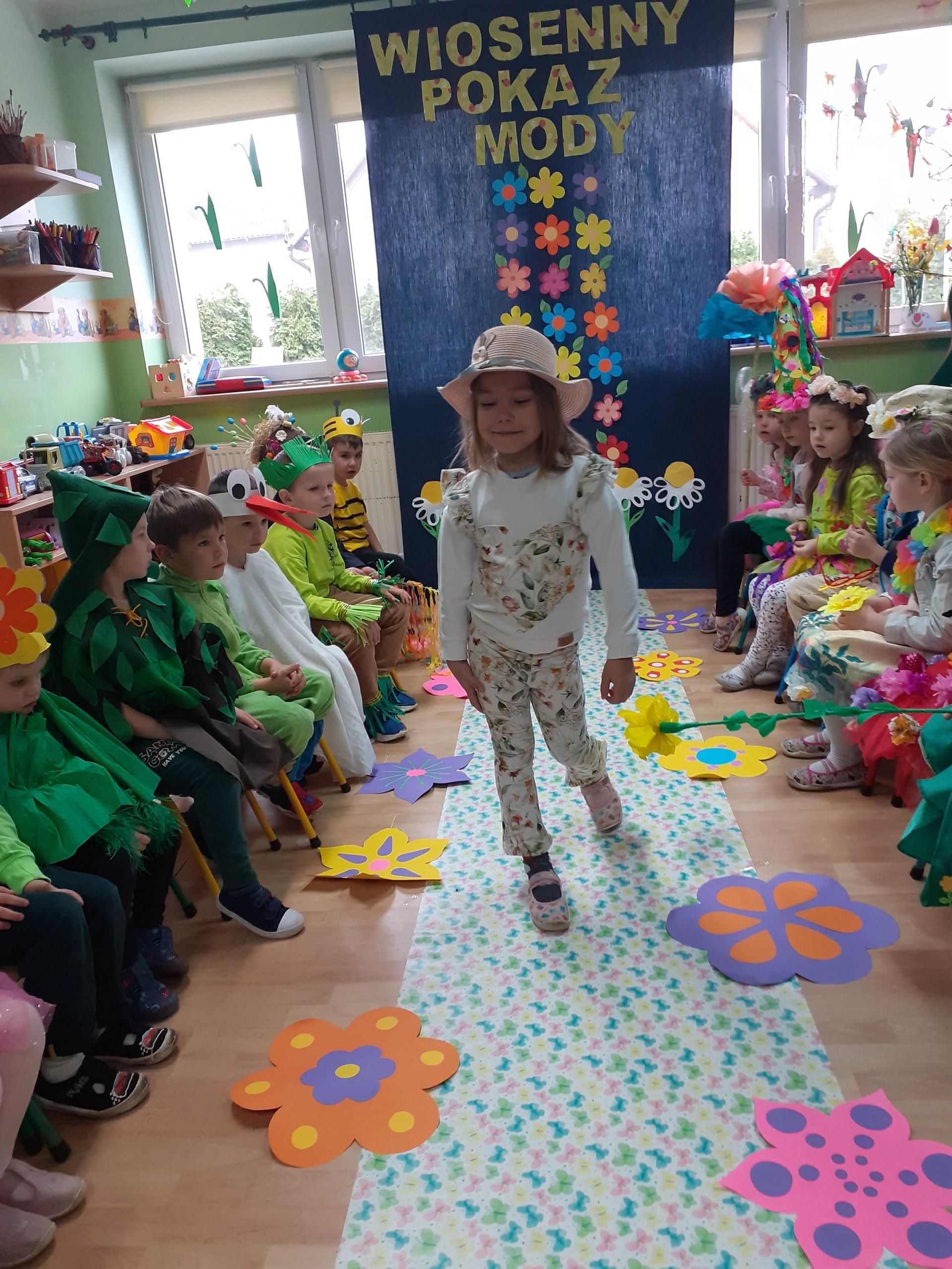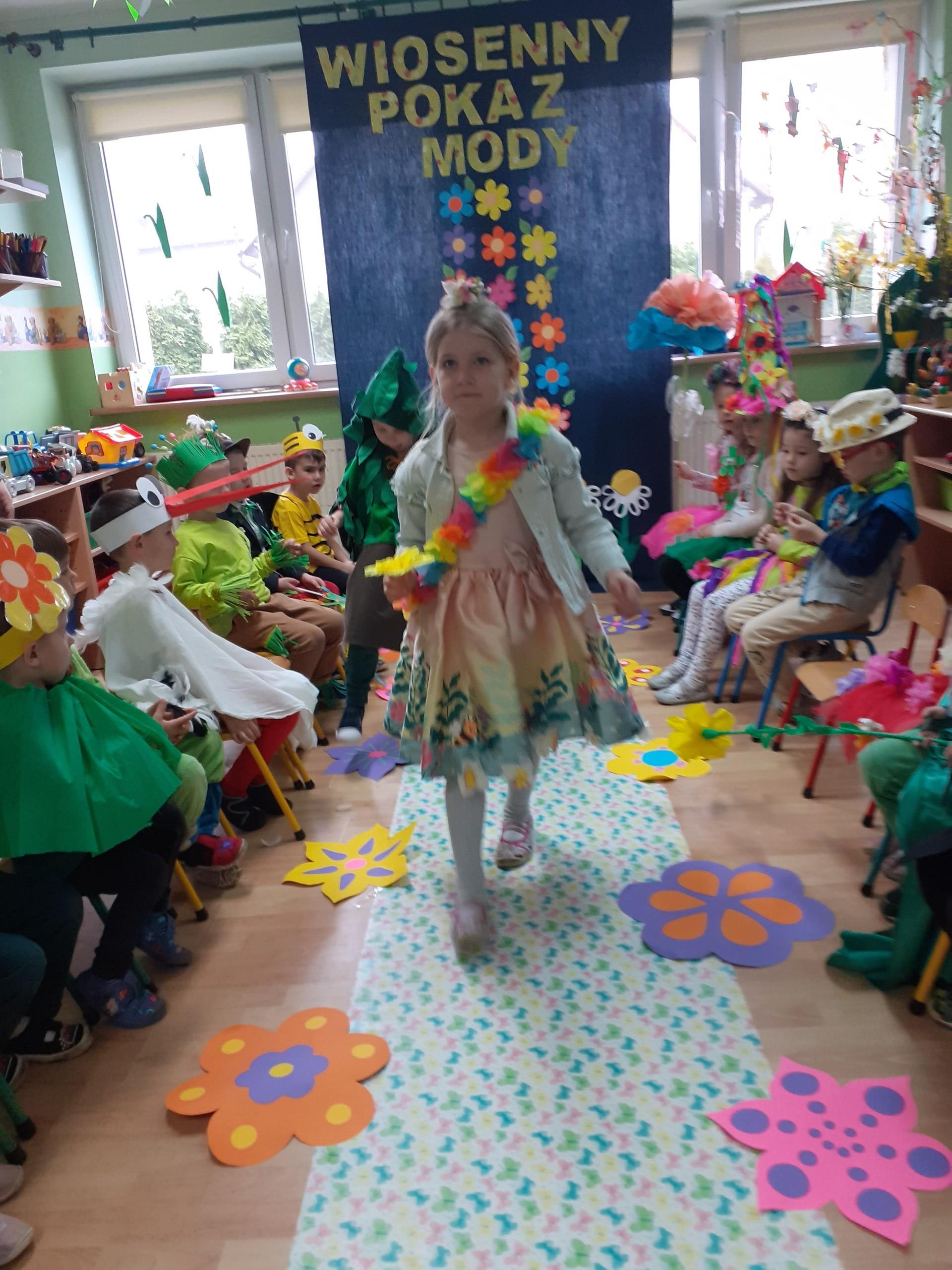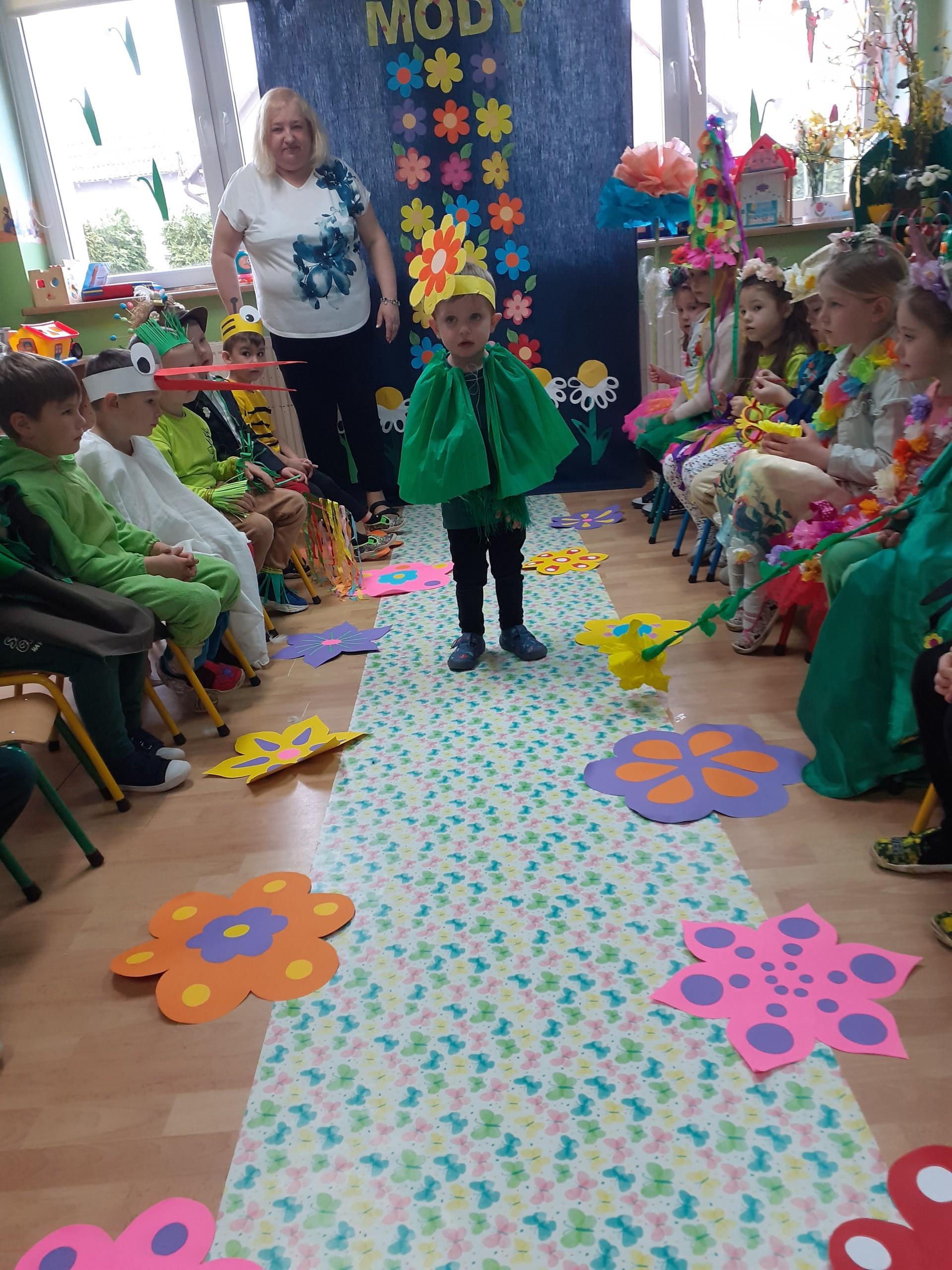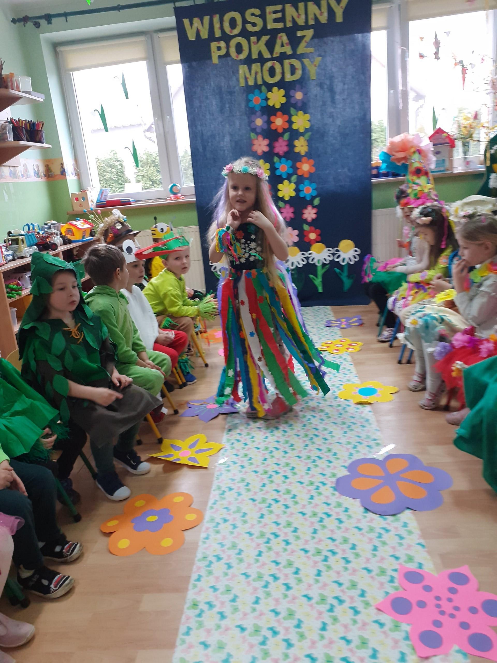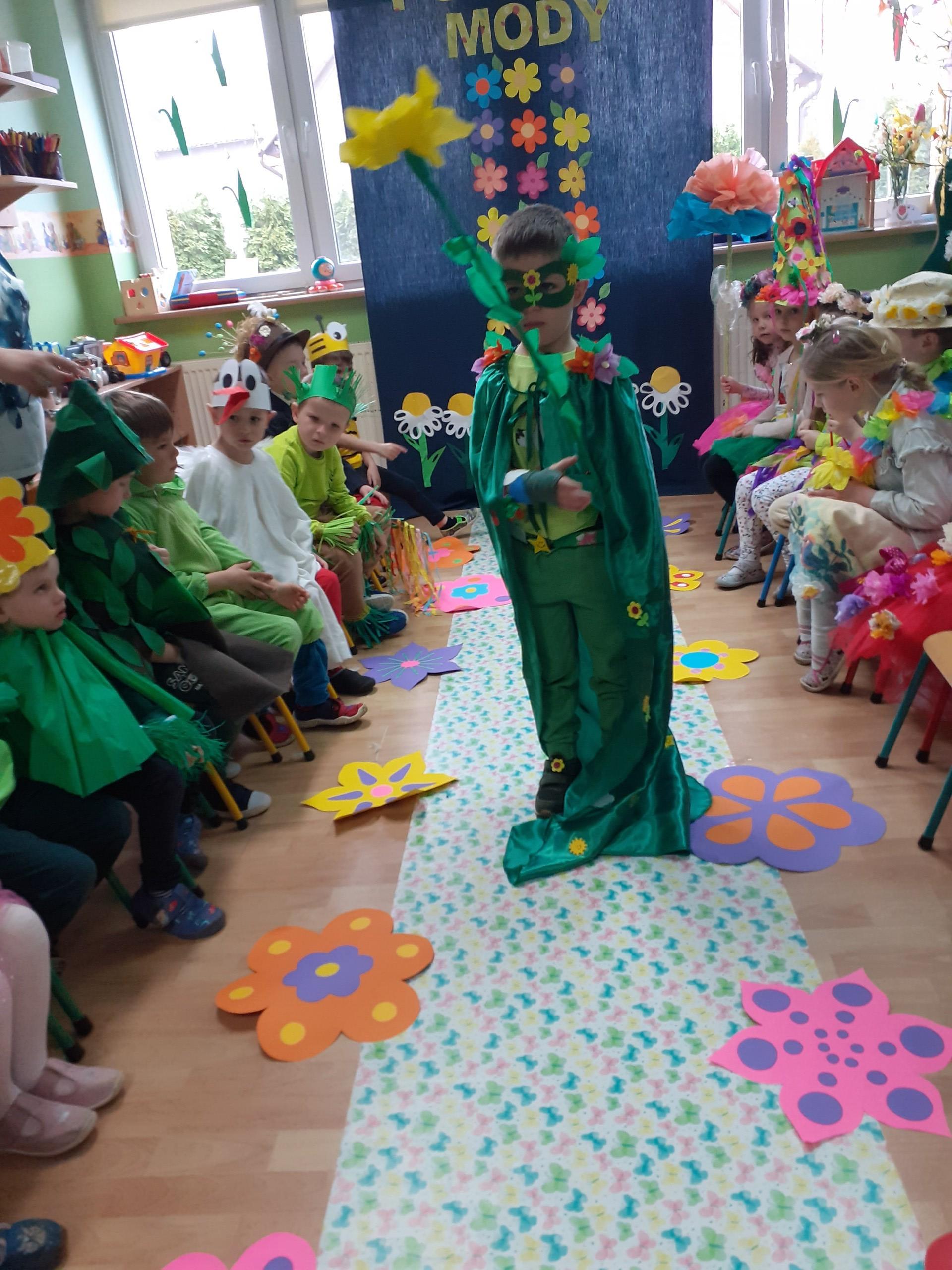 W tym dniu w przedszkolu zagościła prawdziwa Wiosna. Wszystkie przedszkolaki przybyły do przedszkola w wyjątkowych strojach, aby zaprezentować się na specjalnym wybiegu. Nie zawiodła pomysłowość Dzieci i Rodziców. Kreacje przygotowano według własnych pomysłów, wykonano je z wszelkich dostępnych materiałów: różnorodnych tkanin, bibuły, wstążek, kwiatów. Wszystkie były wyjątkowe, a przede wszystkim kolorowe i oryginalne.