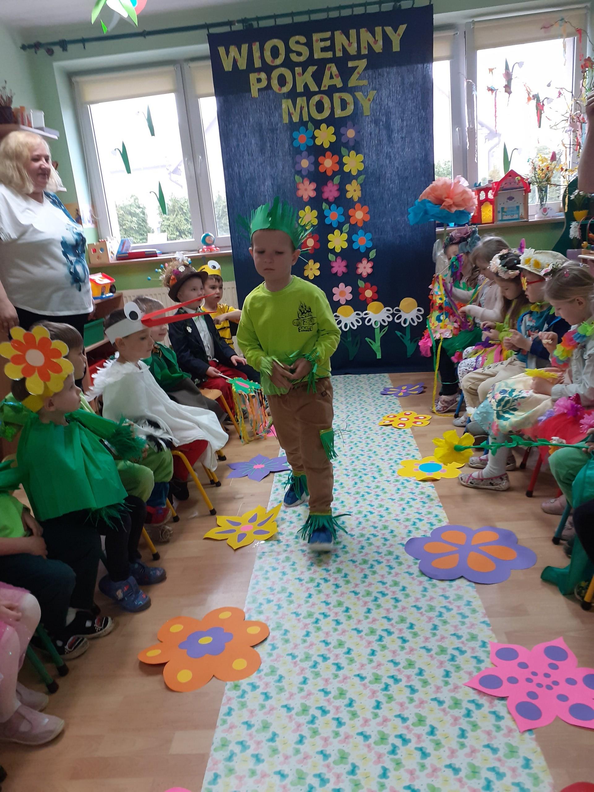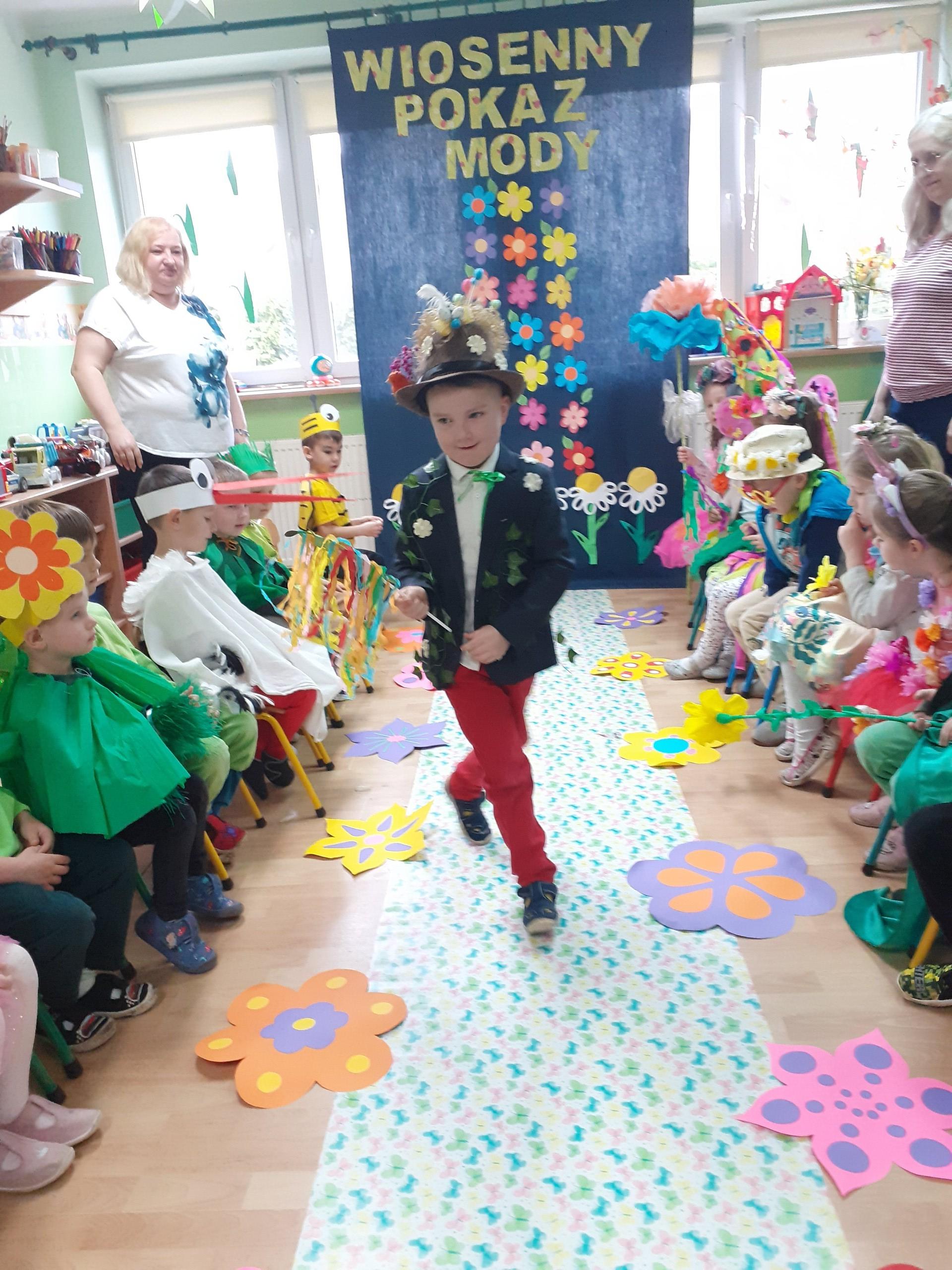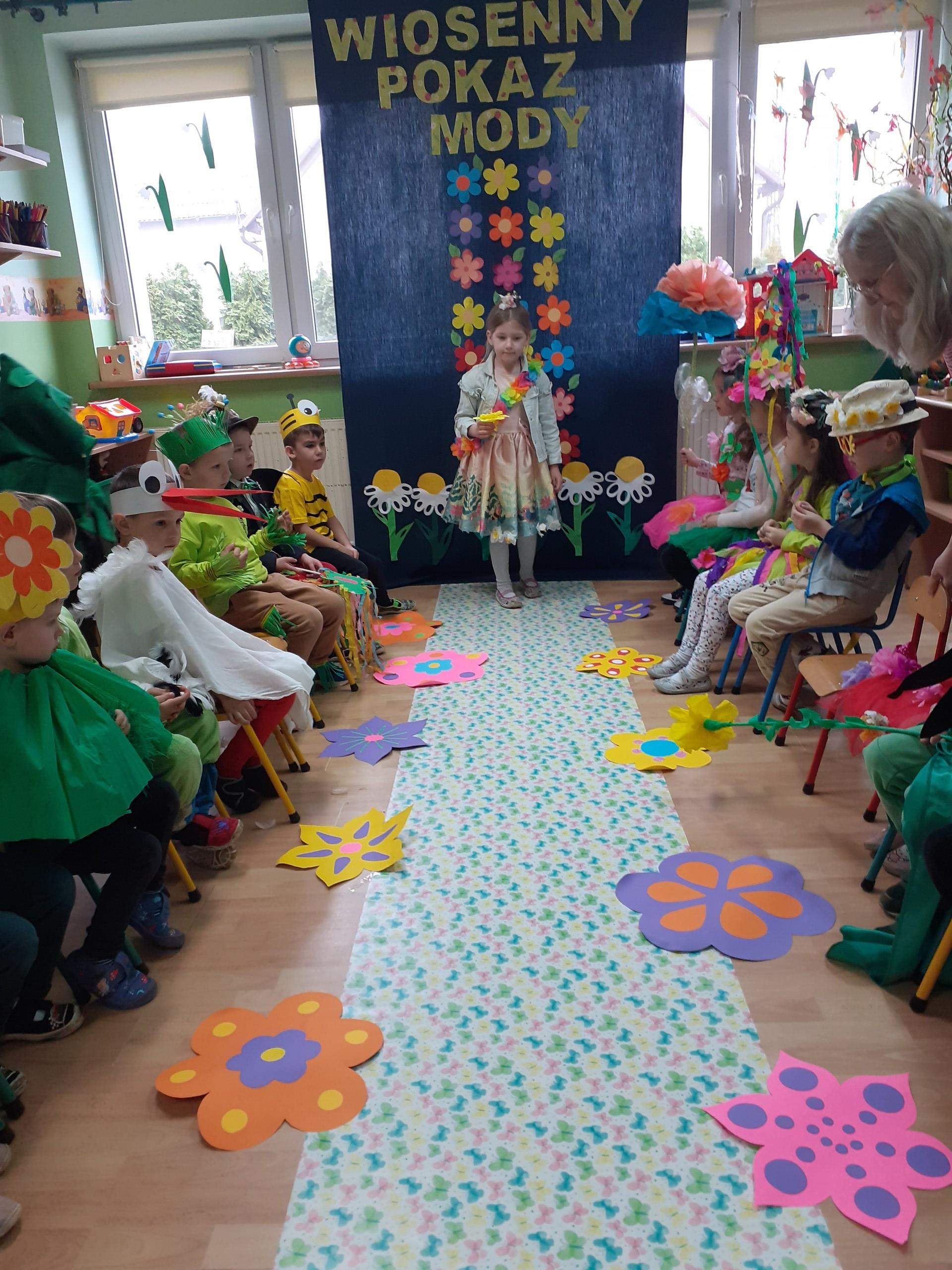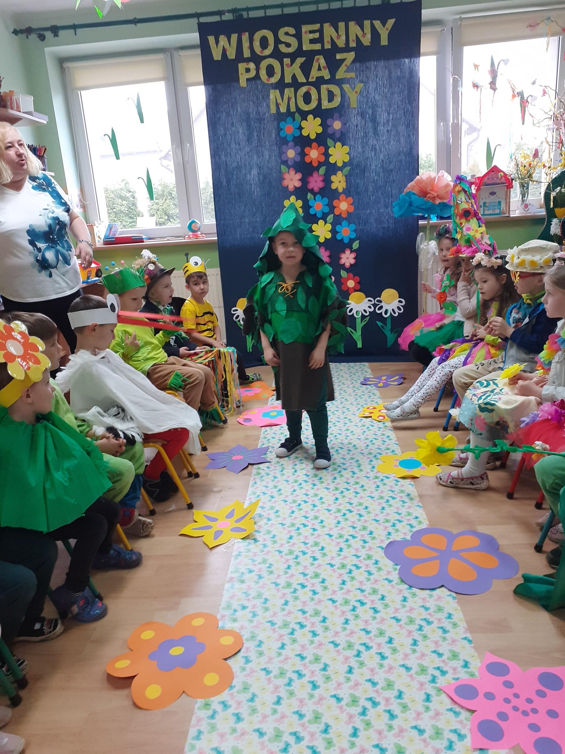 W tym dniu w przedszkolu zagościła prawdziwa Wiosna. Wszystkie przedszkolaki przybyły do przedszkola w wyjątkowych strojach, aby zaprezentować się na specjalnym wybiegu. Nie zawiodła pomysłowość Dzieci i Rodziców. Kreacje przygotowano według własnych pomysłów, wykonano je z wszelkich dostępnych materiałów: różnorodnych tkanin, bibuły, wstążek, kwiatów. Wszystkie były wyjątkowe, a przede wszystkim kolorowe i oryginalne.
