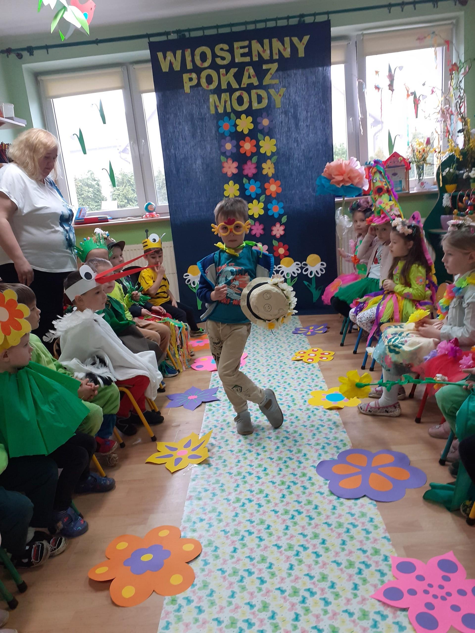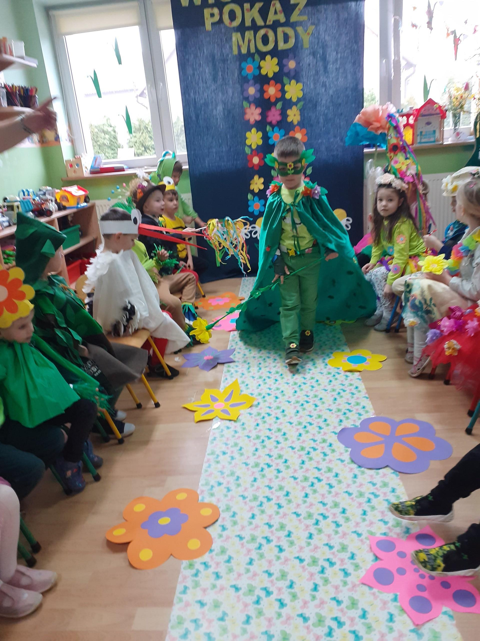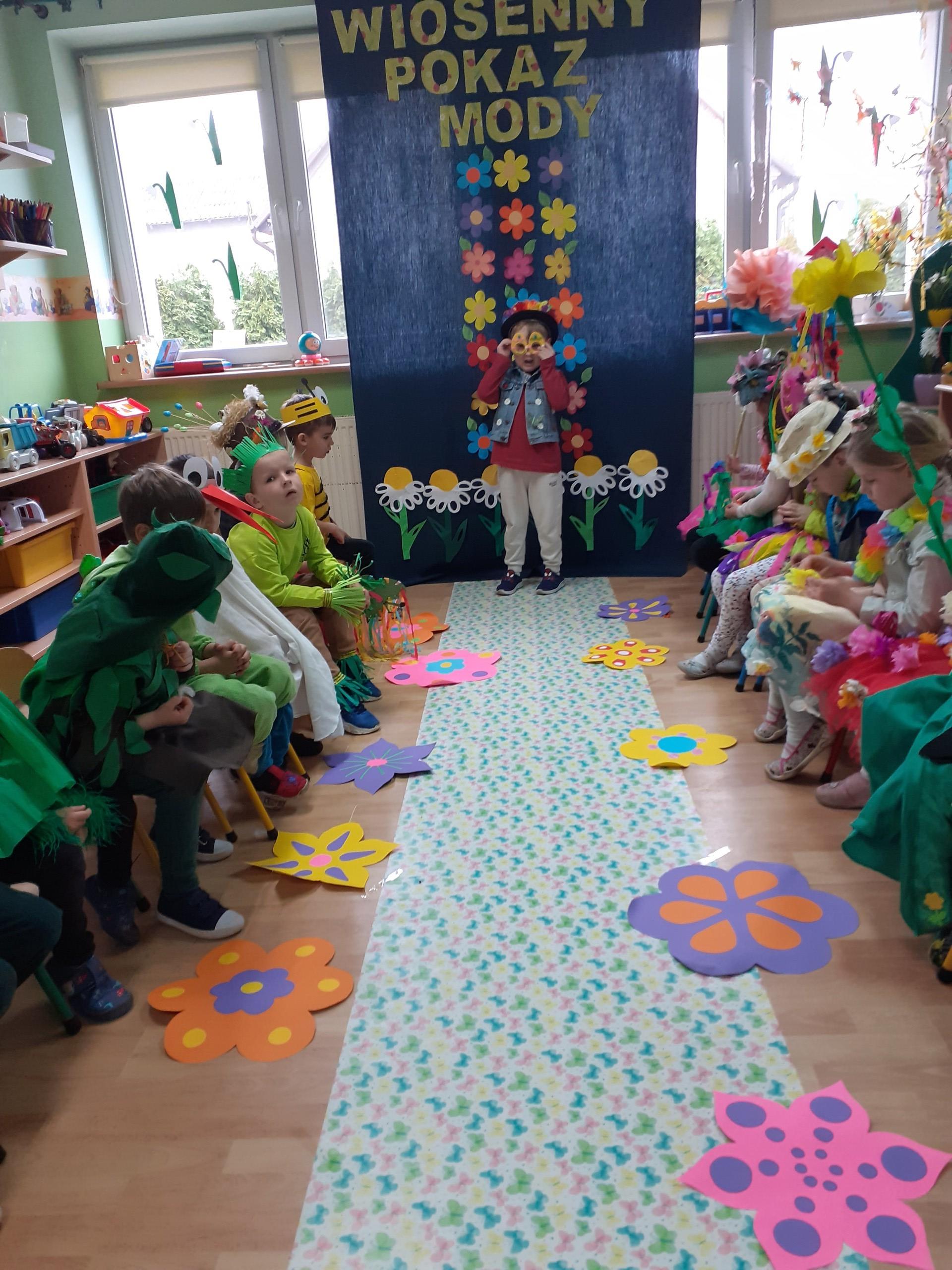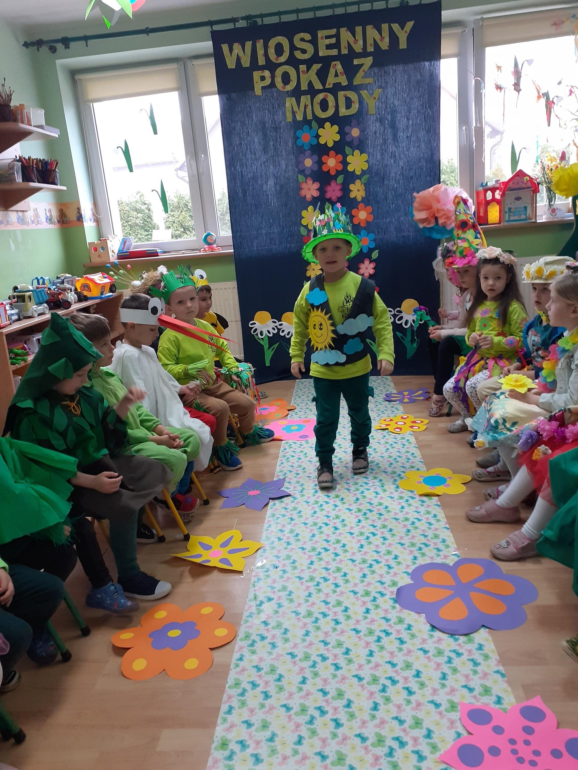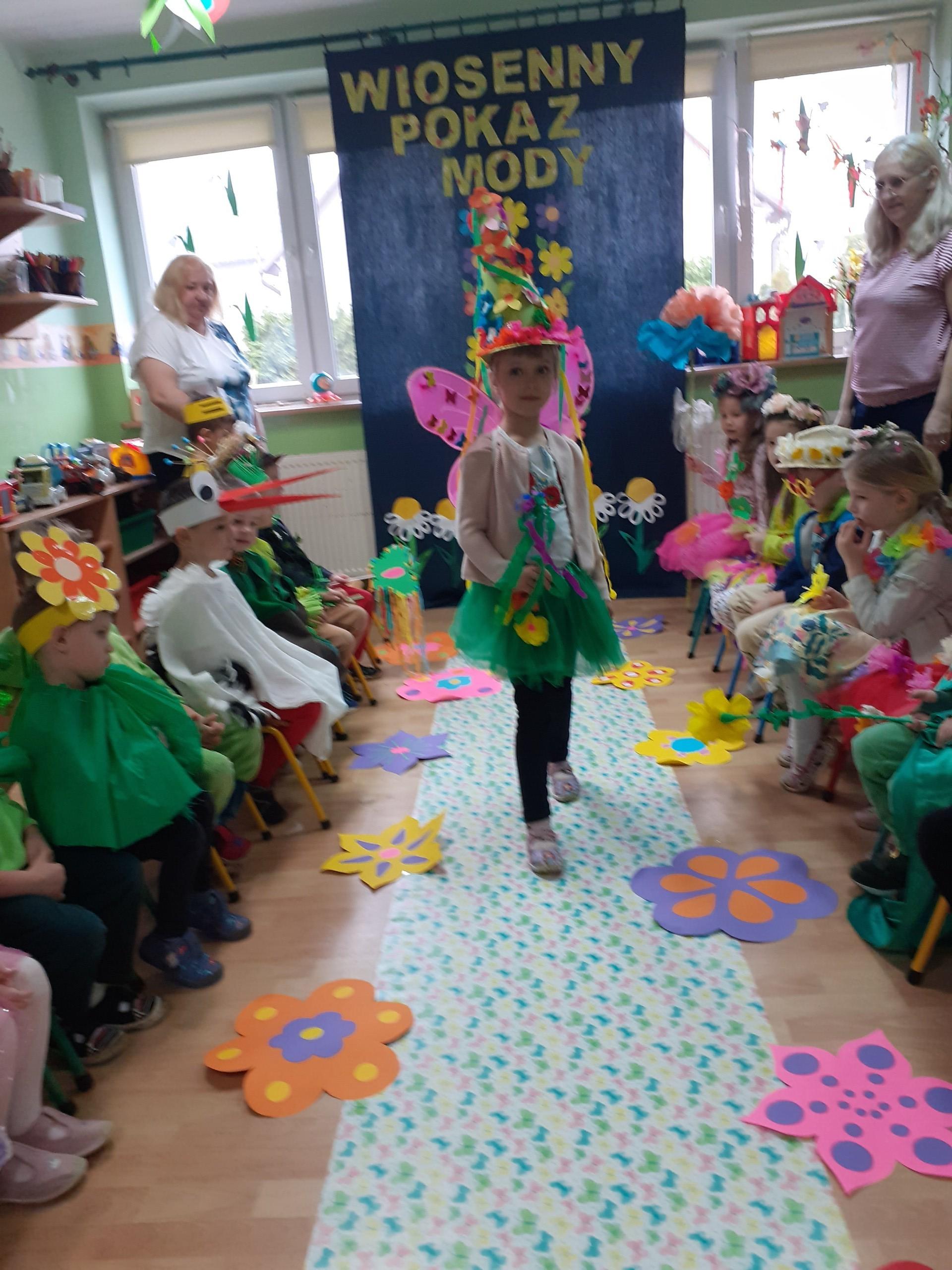 W tym dniu w przedszkolu zagościła prawdziwa Wiosna. Wszystkie przedszkolaki przybyły do przedszkola w wyjątkowych strojach, aby zaprezentować się na specjalnym wybiegu. Nie zawiodła pomysłowość Dzieci i Rodziców. Kreacje przygotowano według własnych pomysłów, wykonano je z wszelkich dostępnych materiałów: różnorodnych tkanin, bibuły, wstążek, kwiatów. Wszystkie były wyjątkowe, a przede wszystkim kolorowe i oryginalne.