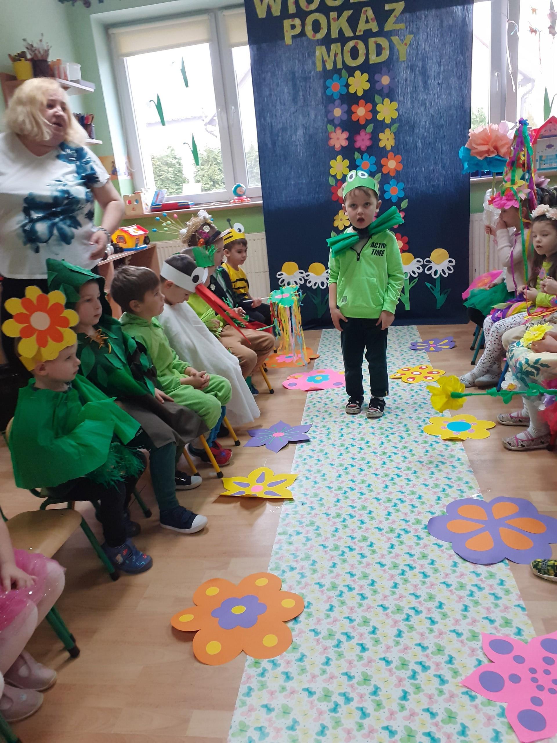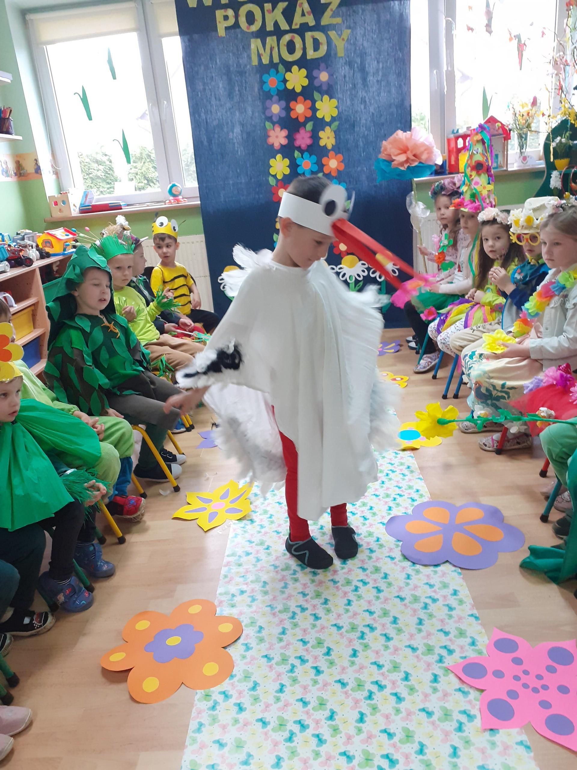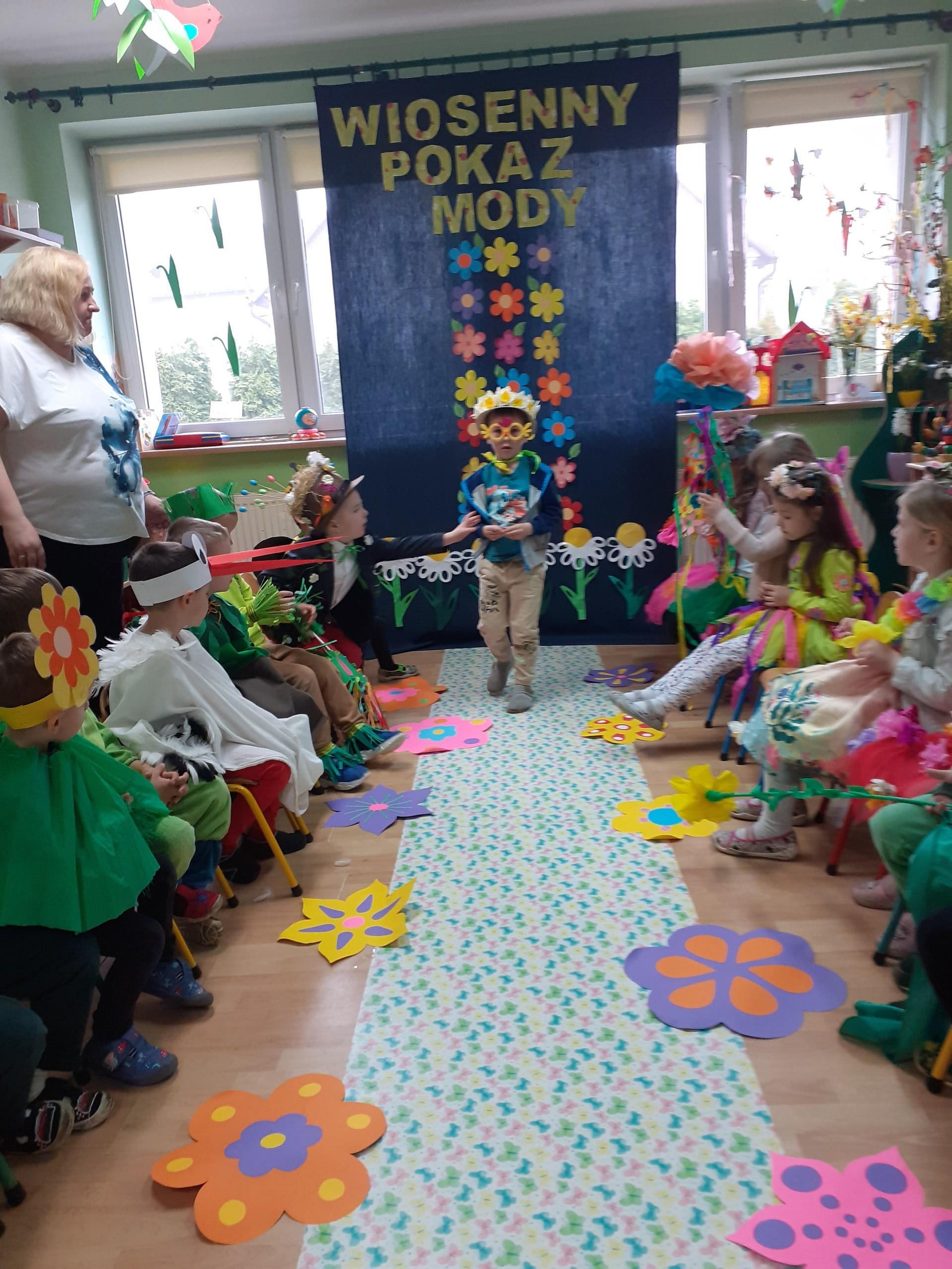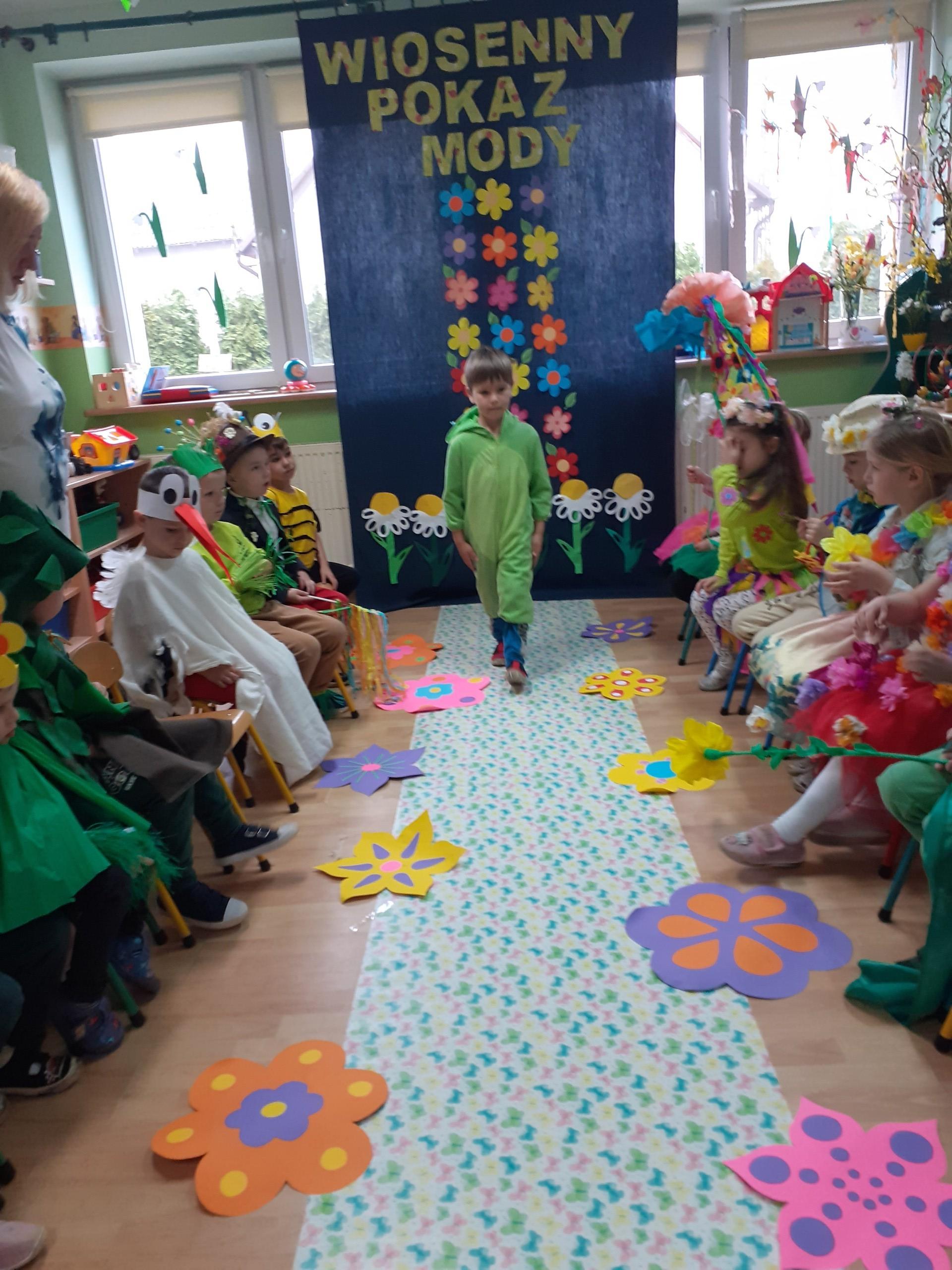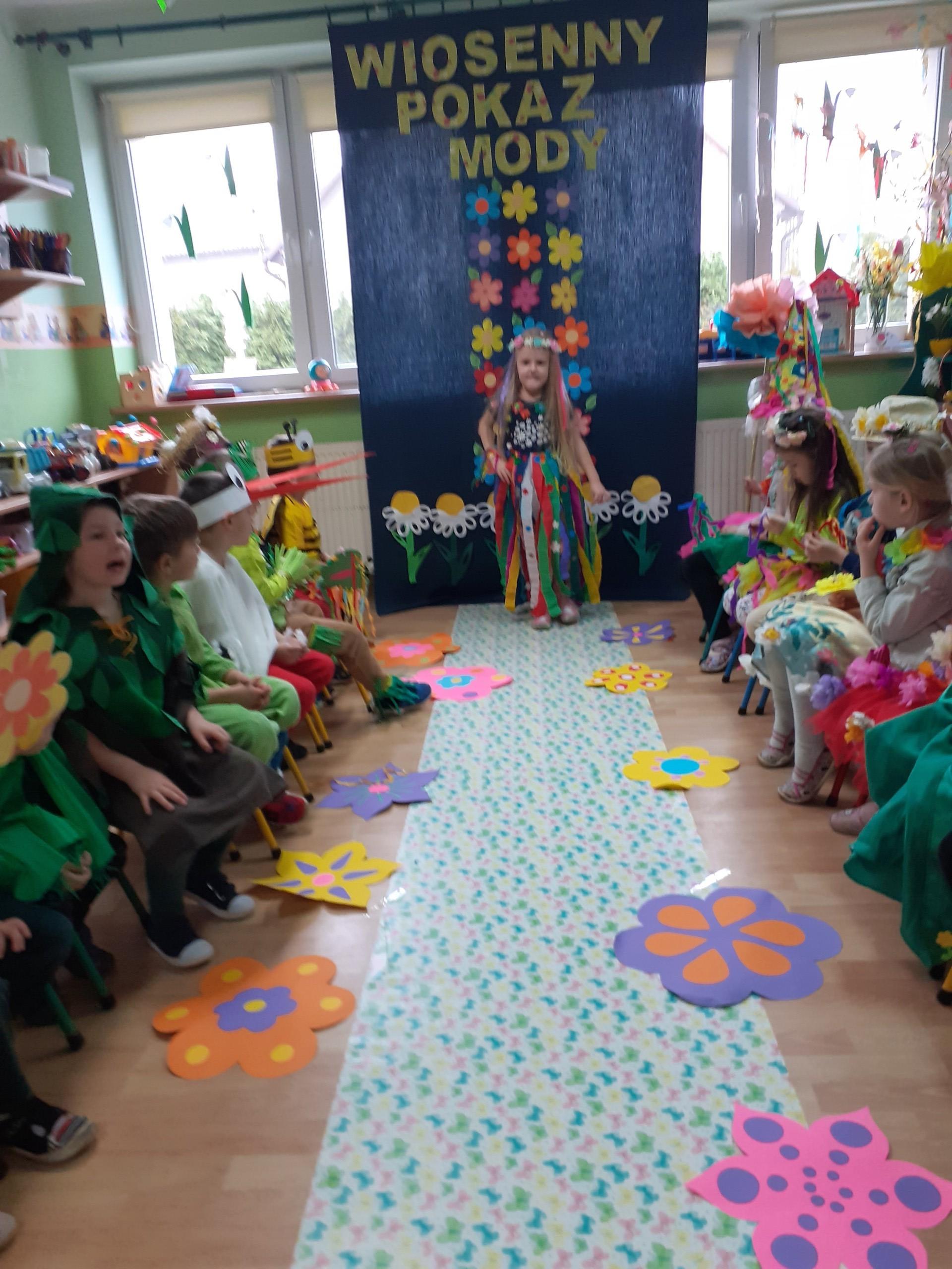 W tym dniu w przedszkolu zagościła prawdziwa Wiosna. Wszystkie przedszkolaki przybyły do przedszkola w wyjątkowych strojach, aby zaprezentować się na specjalnym wybiegu. Nie zawiodła pomysłowość Dzieci i Rodziców. Kreacje przygotowano według własnych pomysłów, wykonano je z wszelkich dostępnych materiałów: różnorodnych tkanin, bibuły, wstążek, kwiatów. Wszystkie były wyjątkowe, a przede wszystkim kolorowe i oryginalne.
