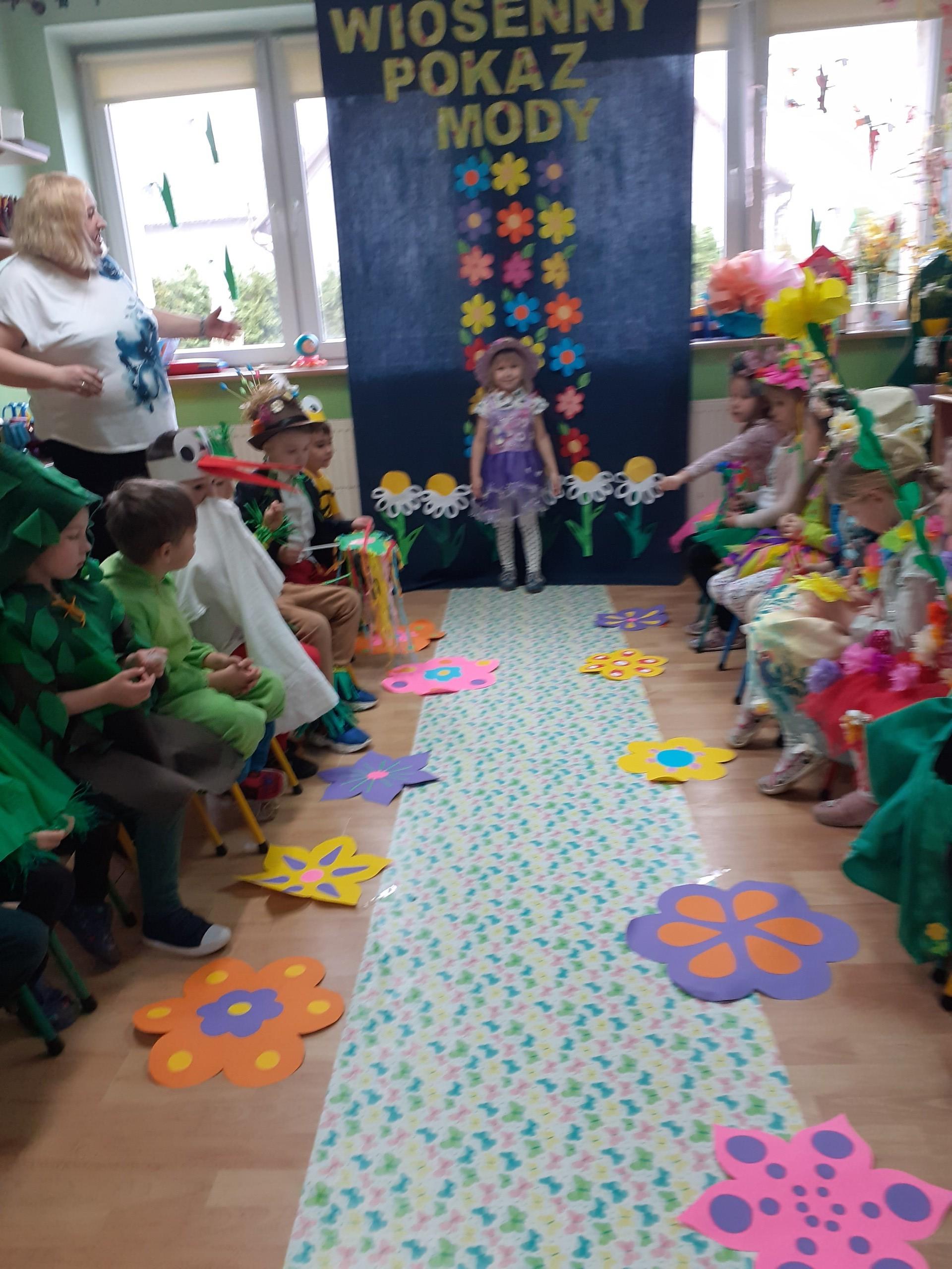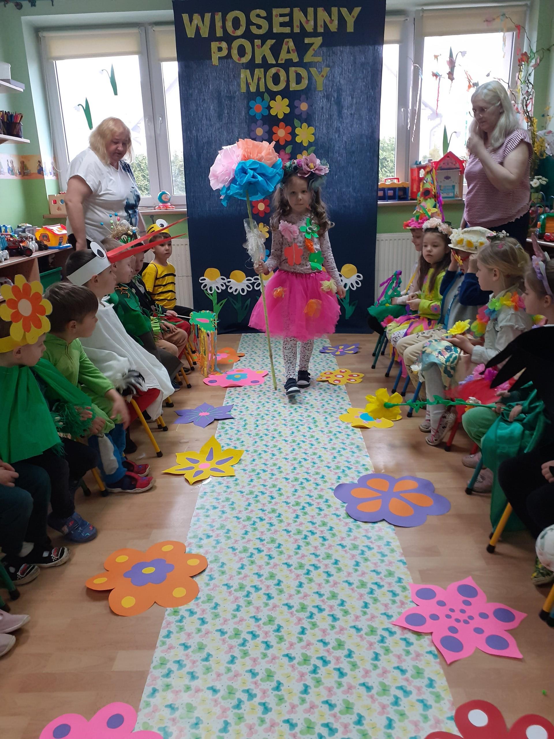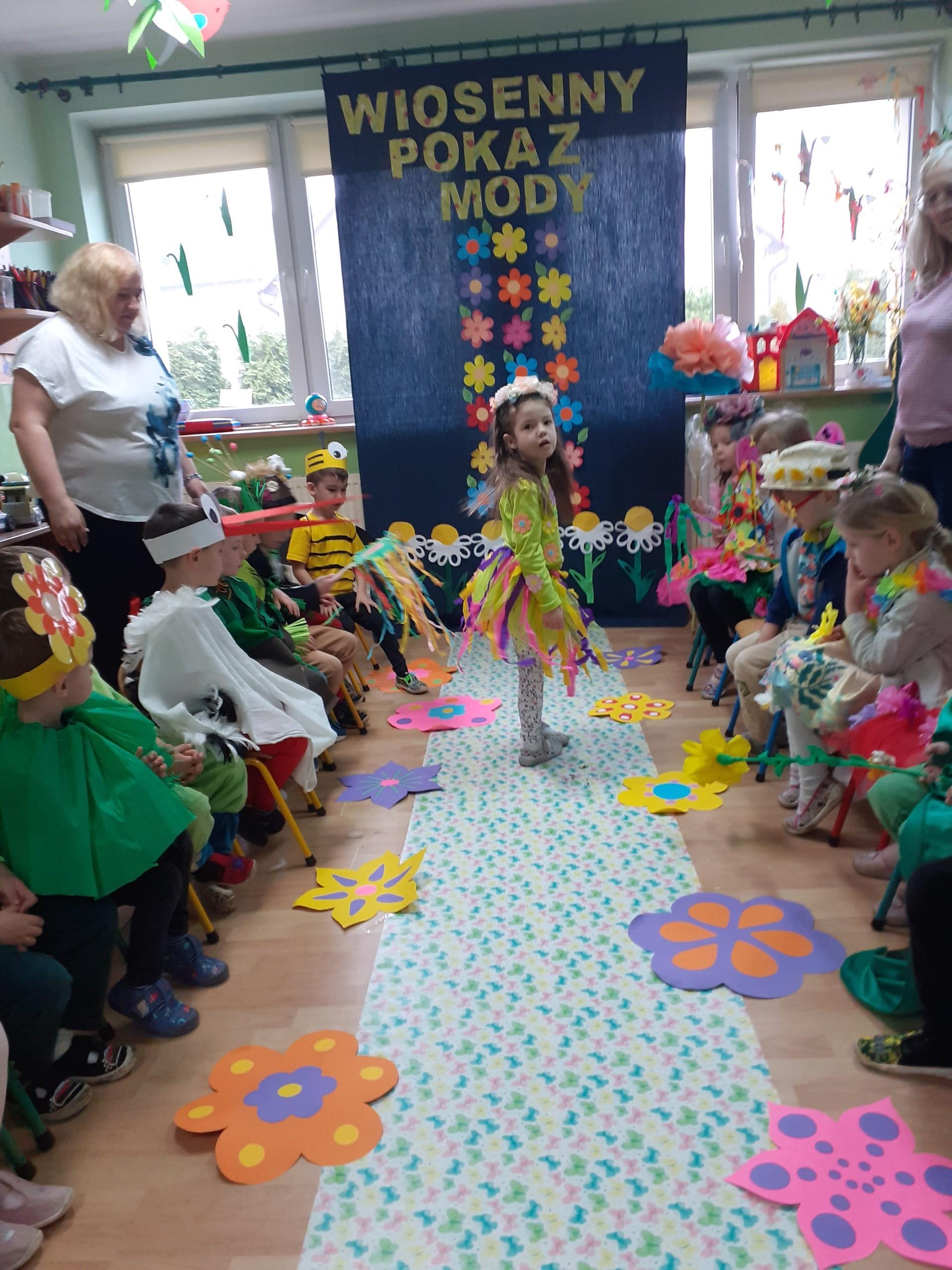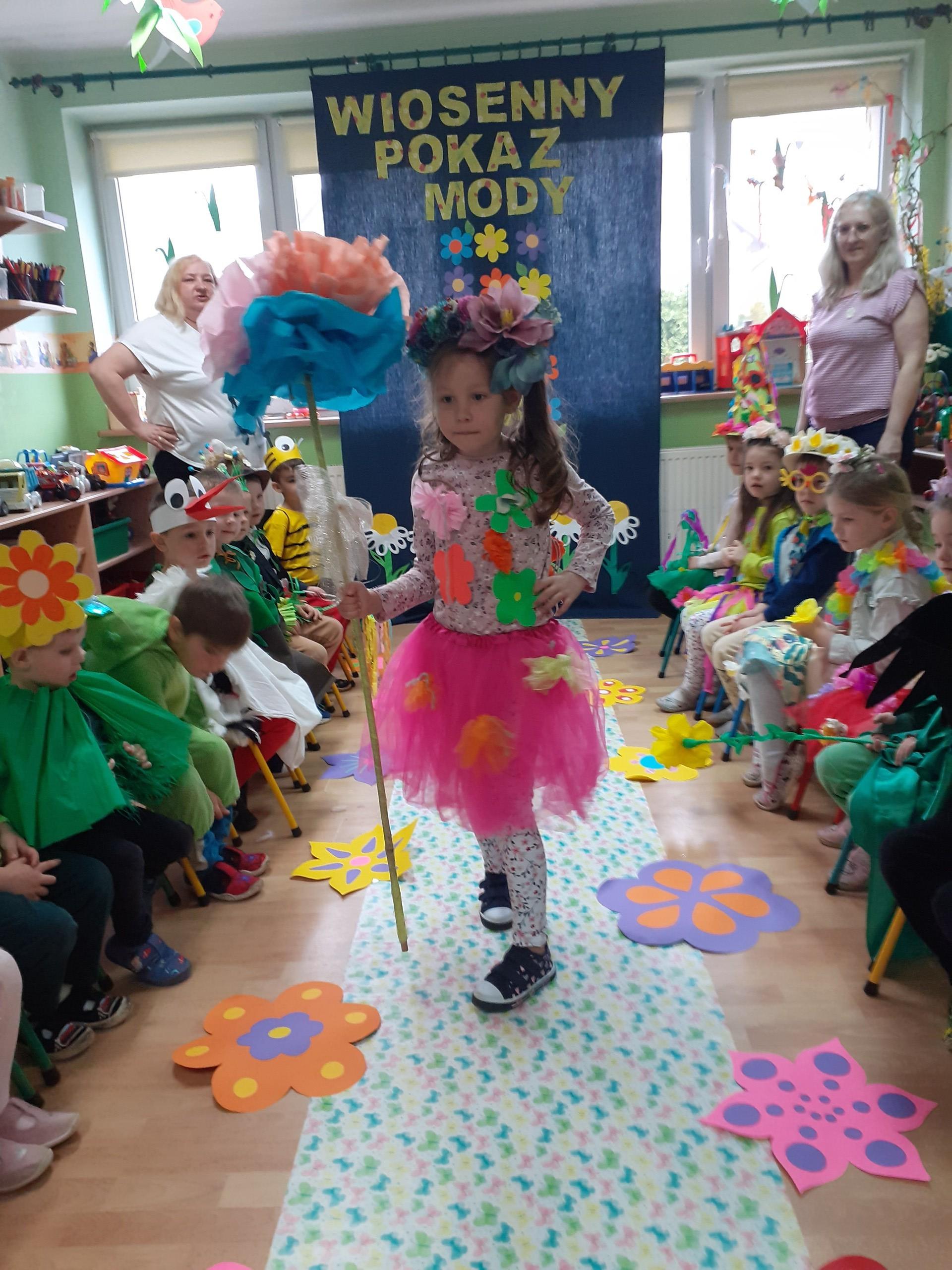 W tym dniu w przedszkolu zagościła prawdziwa Wiosna. Wszystkie przedszkolaki przybyły do przedszkola w wyjątkowych strojach, aby zaprezentować się na specjalnym wybiegu. Nie zawiodła pomysłowość Dzieci i Rodziców. Kreacje przygotowano według własnych pomysłów, wykonano je z wszelkich dostępnych materiałów: różnorodnych tkanin, bibuły, wstążek, kwiatów. Wszystkie były wyjątkowe, a przede wszystkim kolorowe i oryginalne.