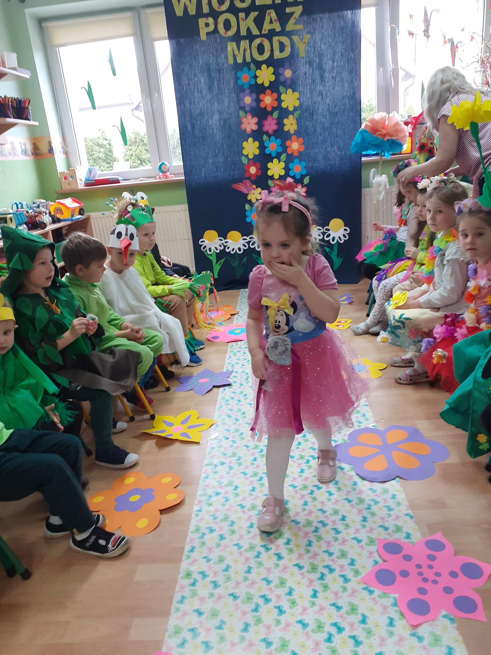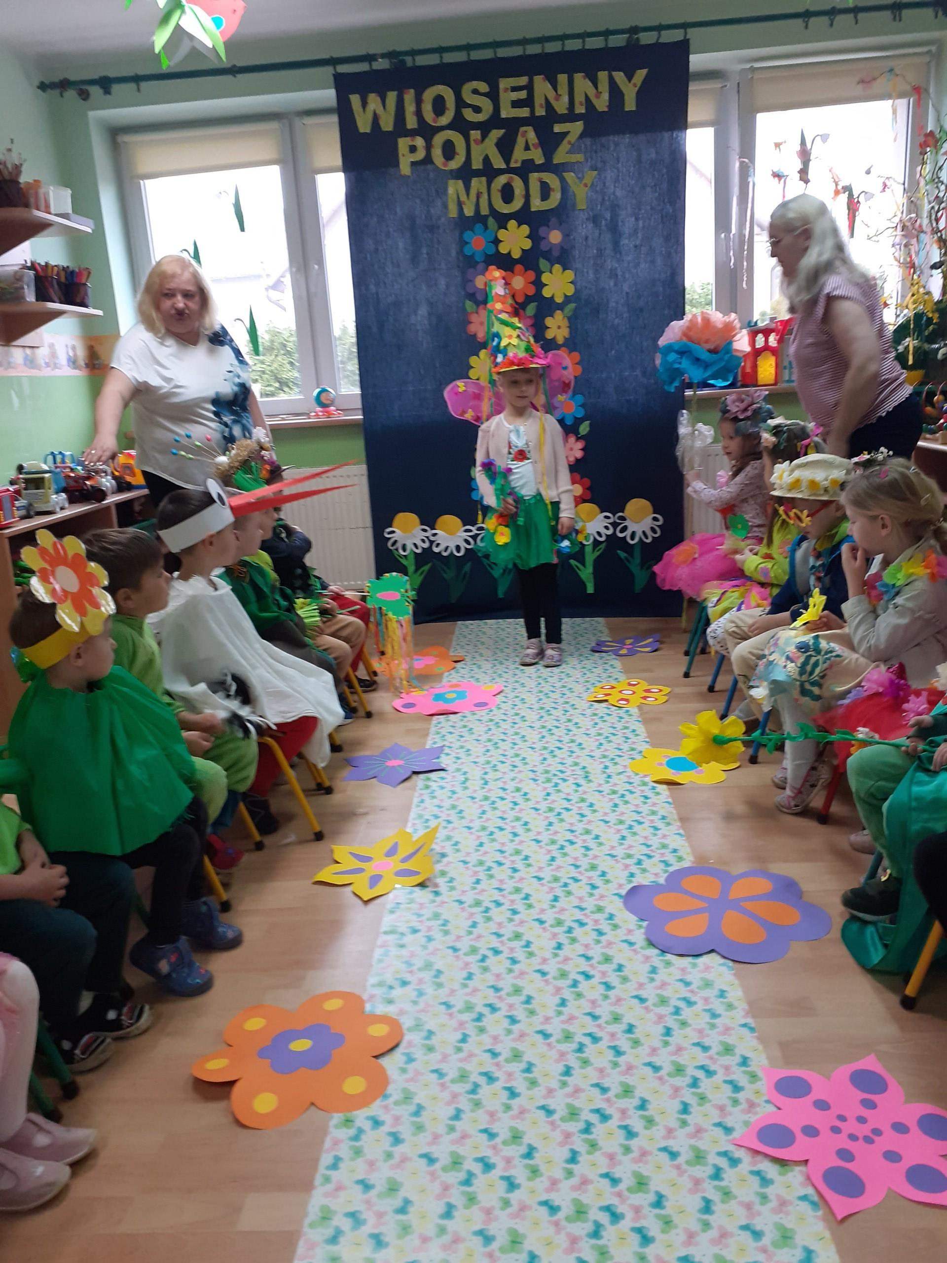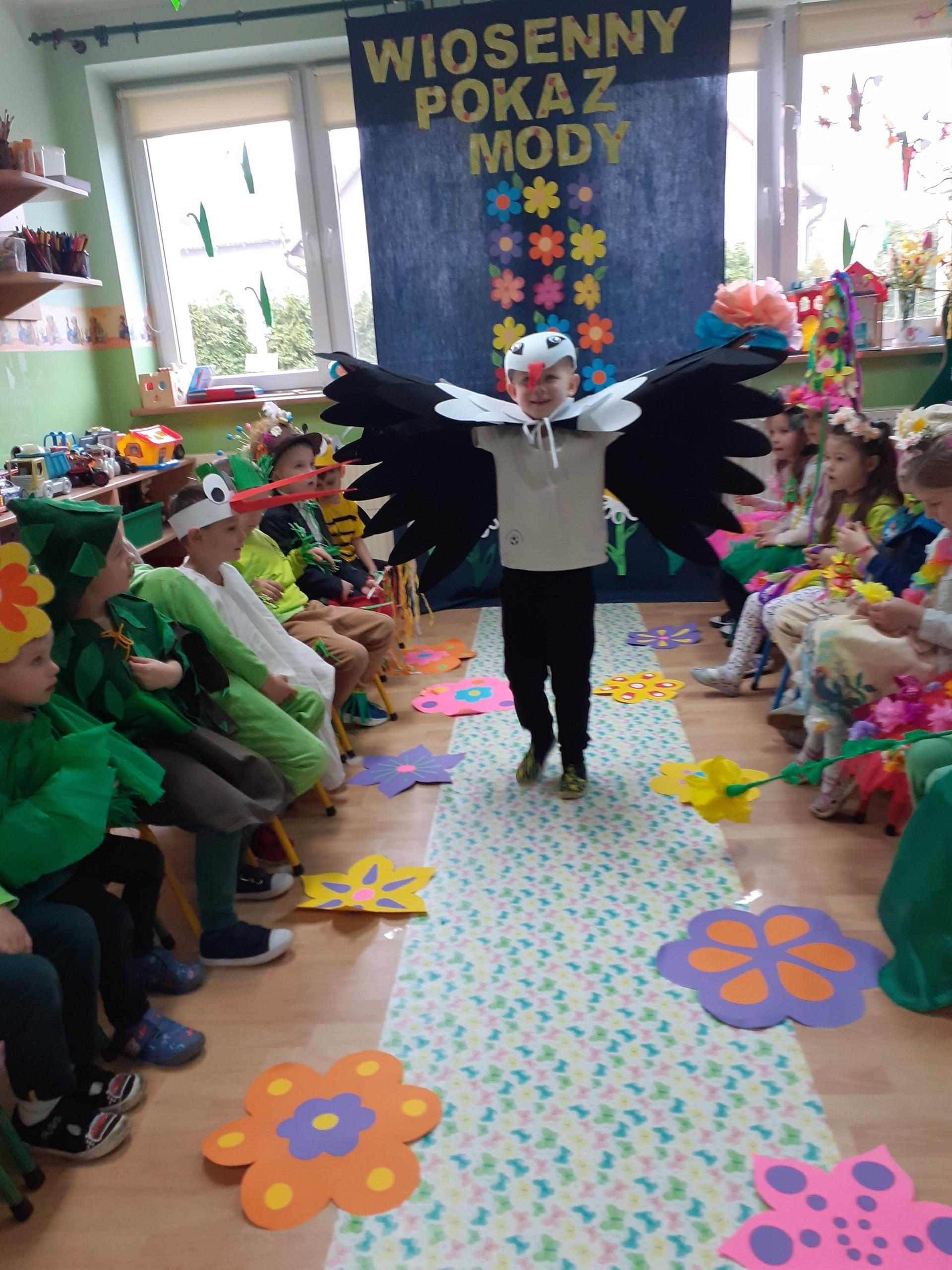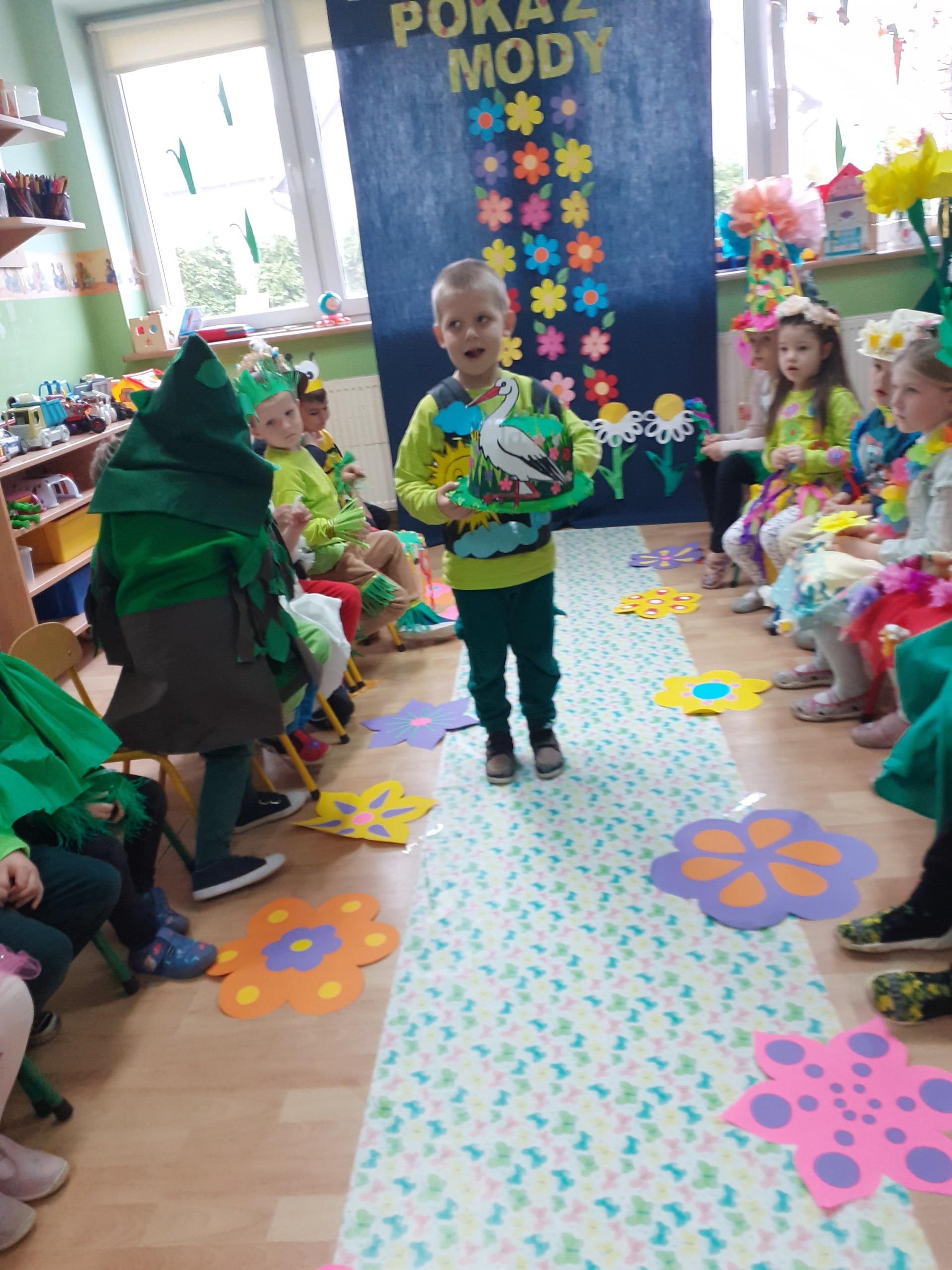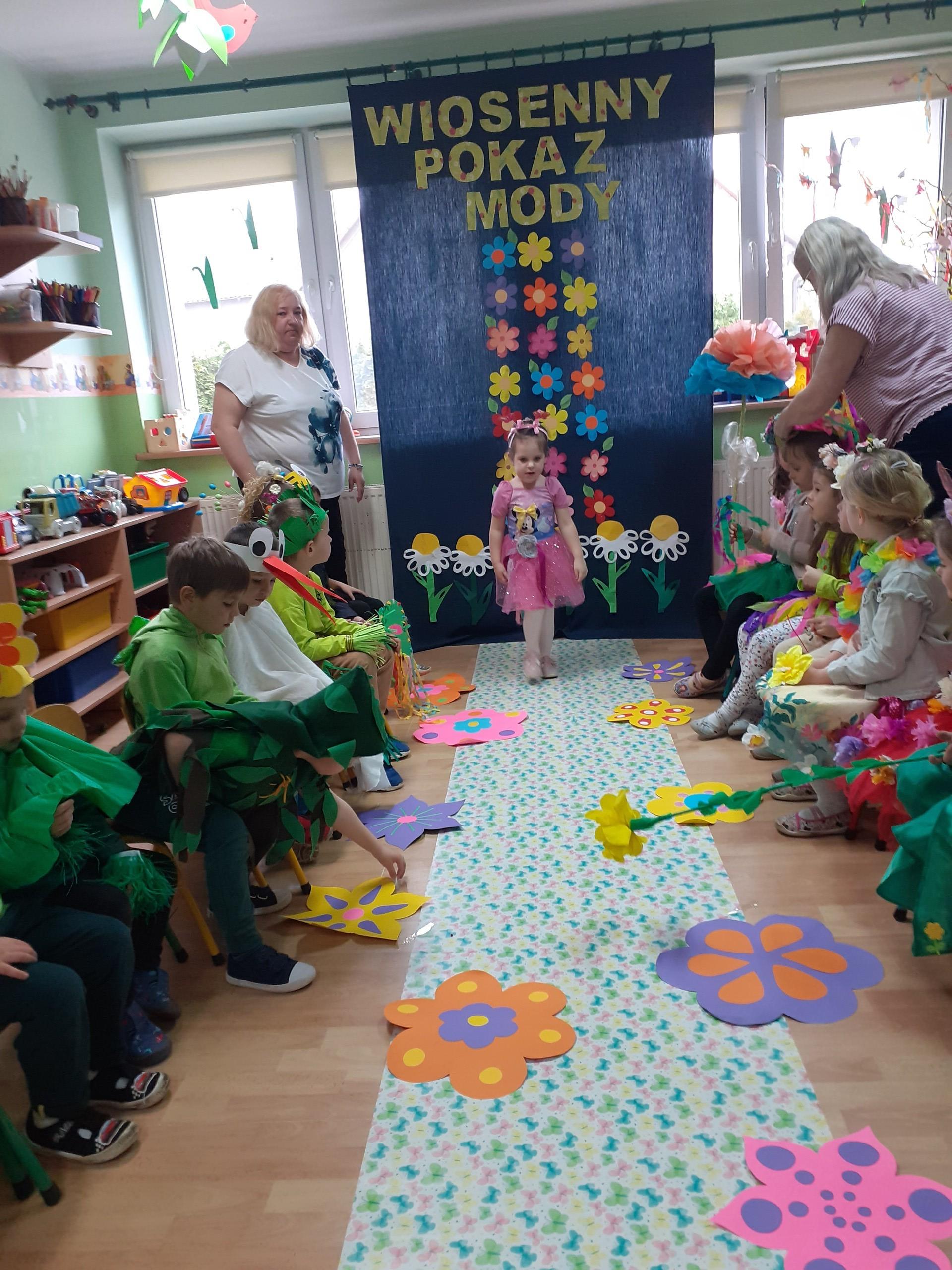 W tym dniu w przedszkolu zagościła prawdziwa Wiosna. Wszystkie przedszkolaki przybyły do przedszkola w wyjątkowych strojach, aby zaprezentować się na specjalnym wybiegu. Nie zawiodła pomysłowość Dzieci i Rodziców. Kreacje przygotowano według własnych pomysłów, wykonano je z wszelkich dostępnych materiałów: różnorodnych tkanin, bibuły, wstążek, kwiatów. Wszystkie były wyjątkowe, a przede wszystkim kolorowe i oryginalne.
