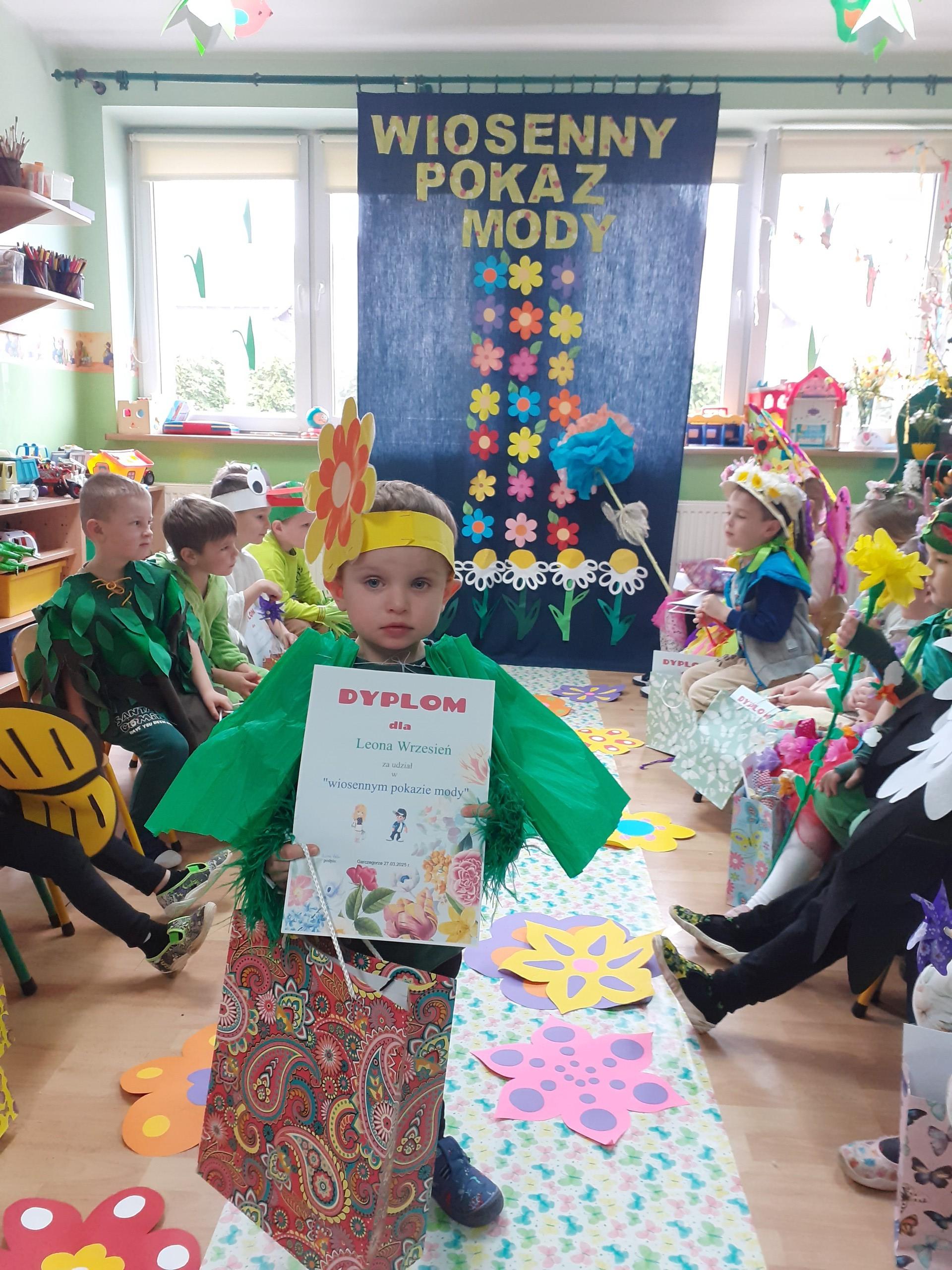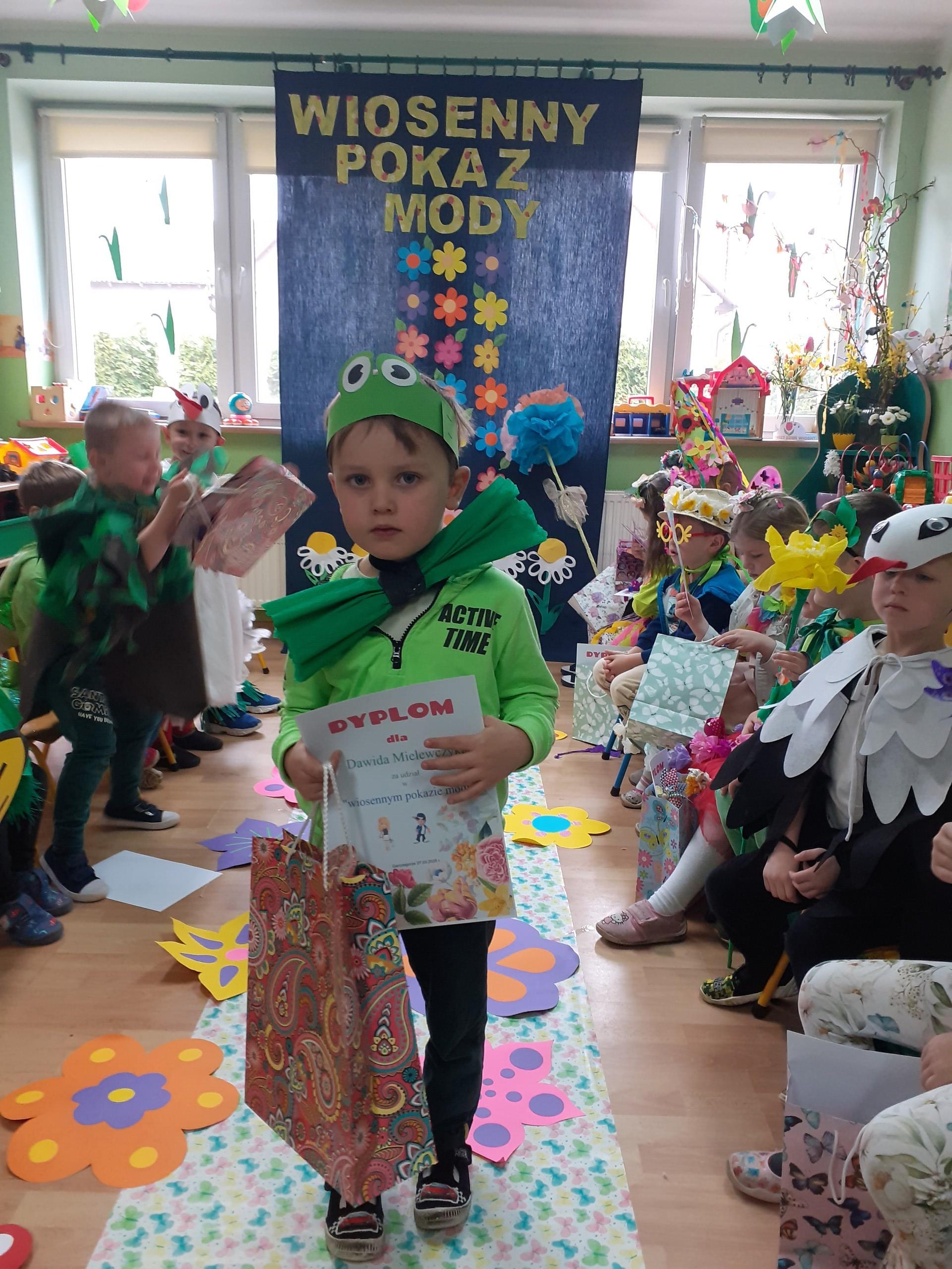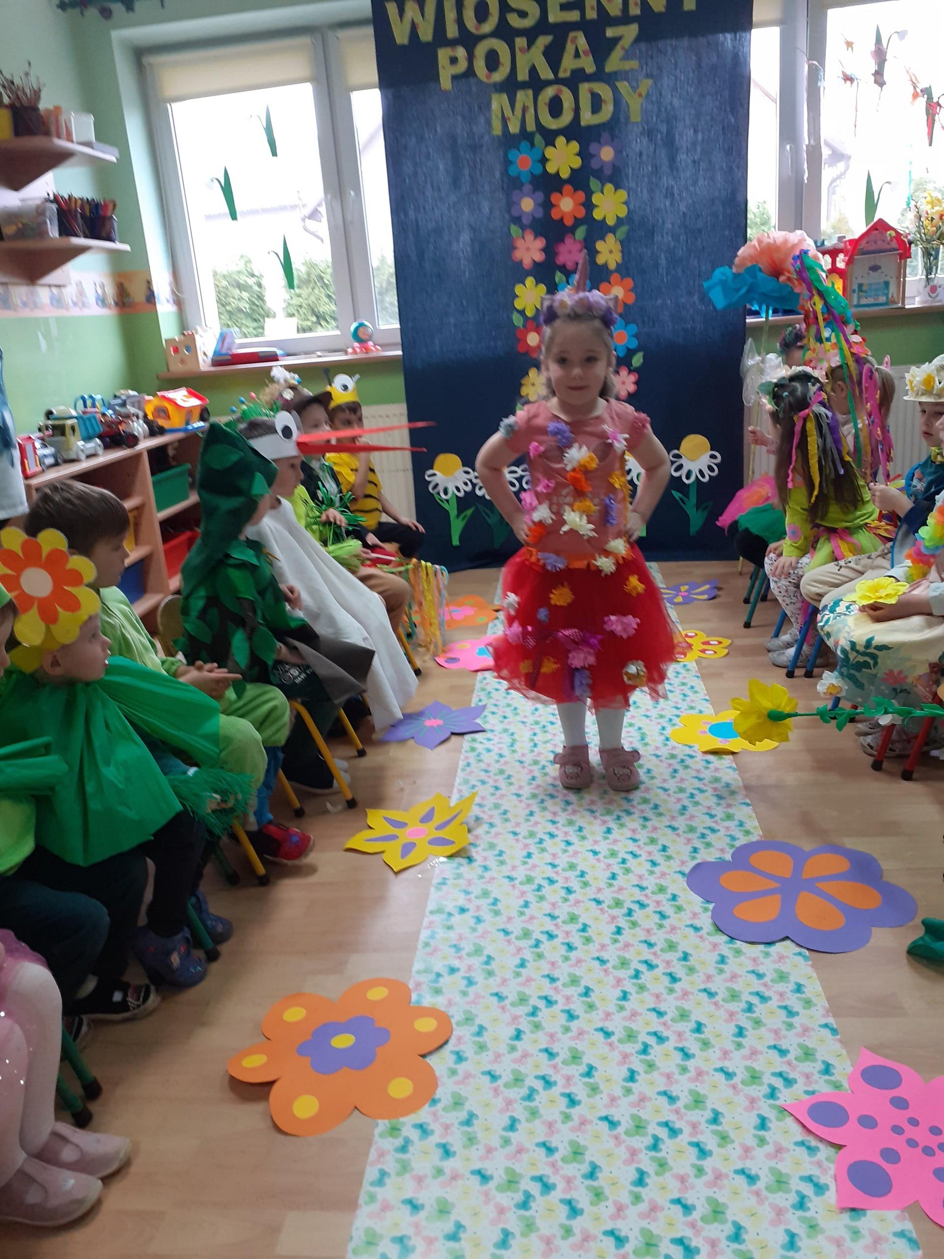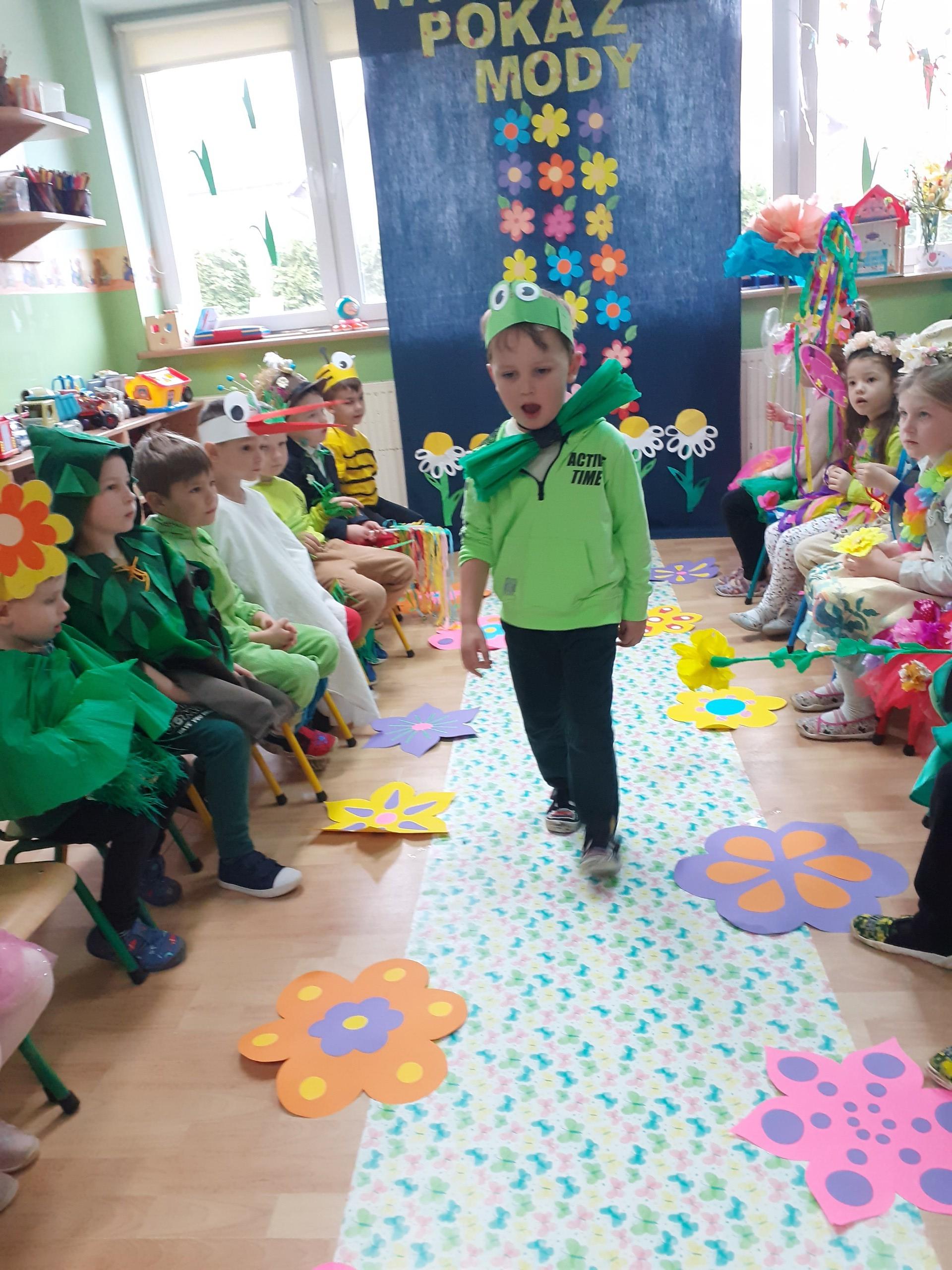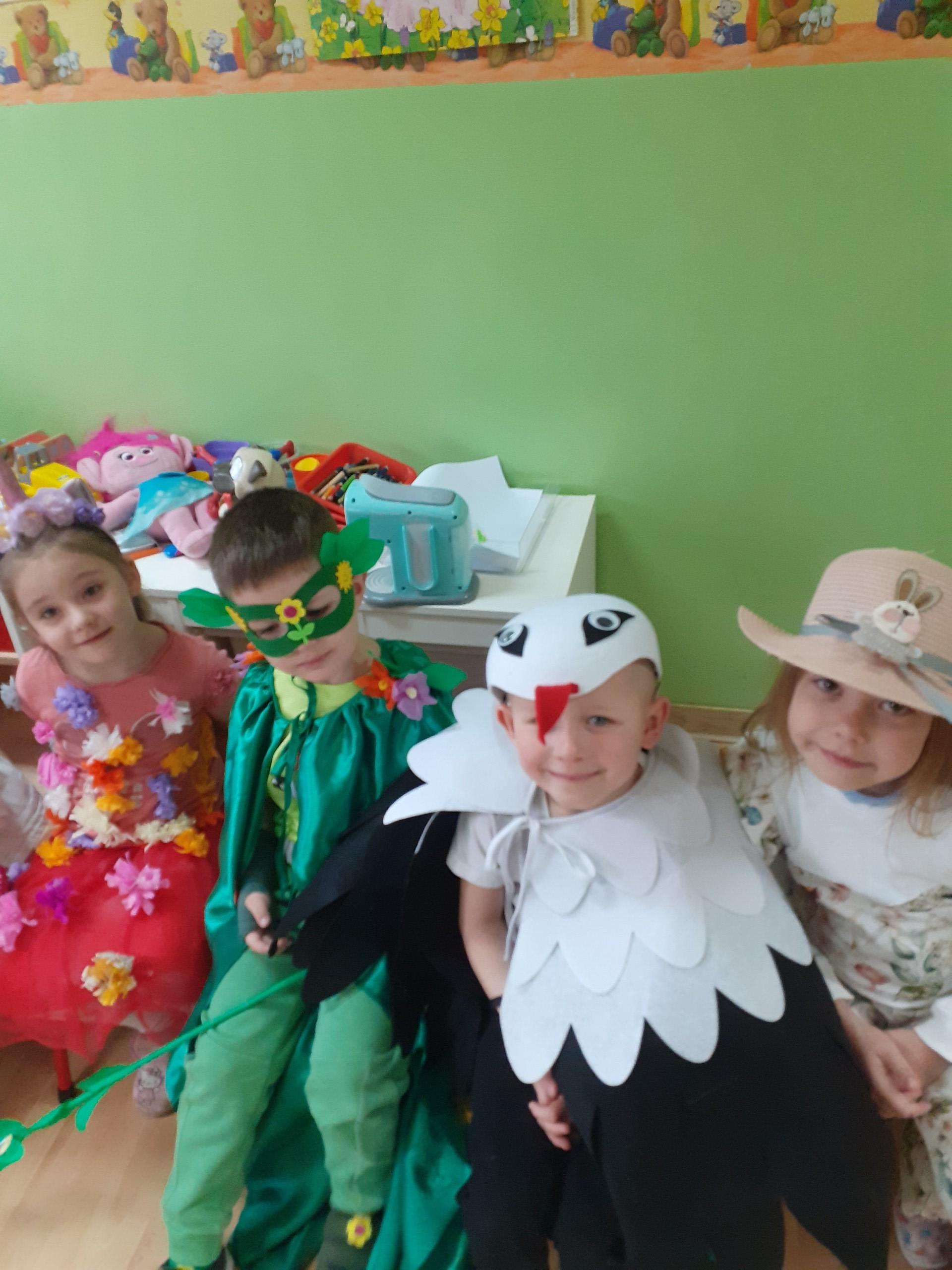 W tym dniu w przedszkolu zagościła prawdziwa Wiosna. Wszystkie przedszkolaki przybyły do przedszkola w wyjątkowych strojach, aby zaprezentować się na specjalnym wybiegu. Nie zawiodła pomysłowość Dzieci i Rodziców. Kreacje przygotowano według własnych pomysłów, wykonano je z wszelkich dostępnych materiałów: różnorodnych tkanin, bibuły, wstążek, kwiatów. Wszystkie były wyjątkowe, a przede wszystkim kolorowe i oryginalne.