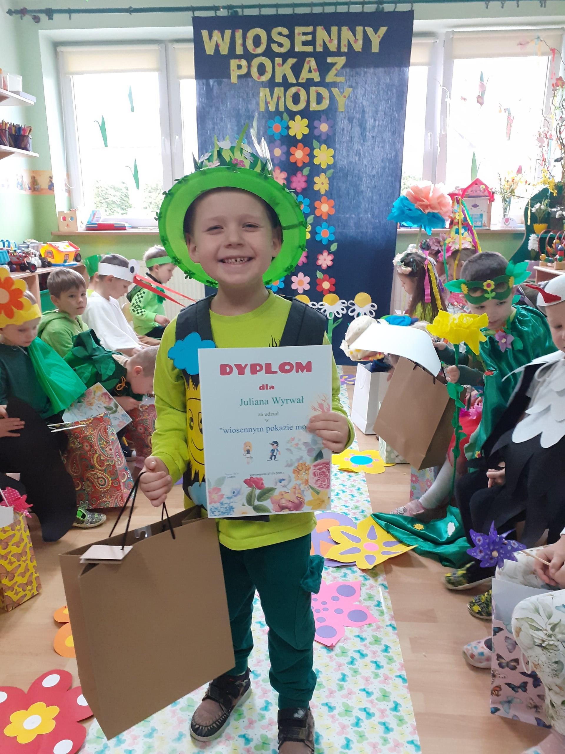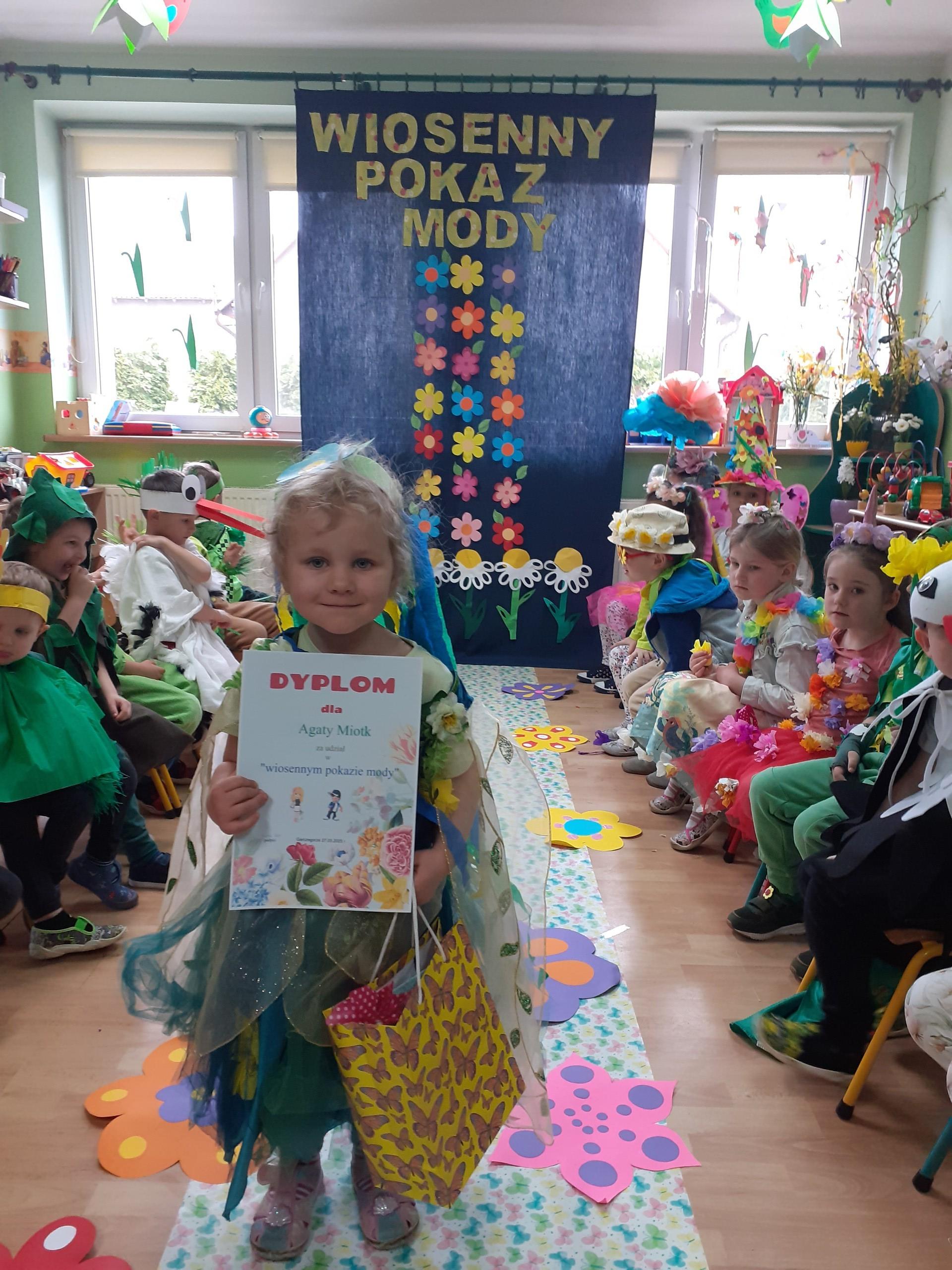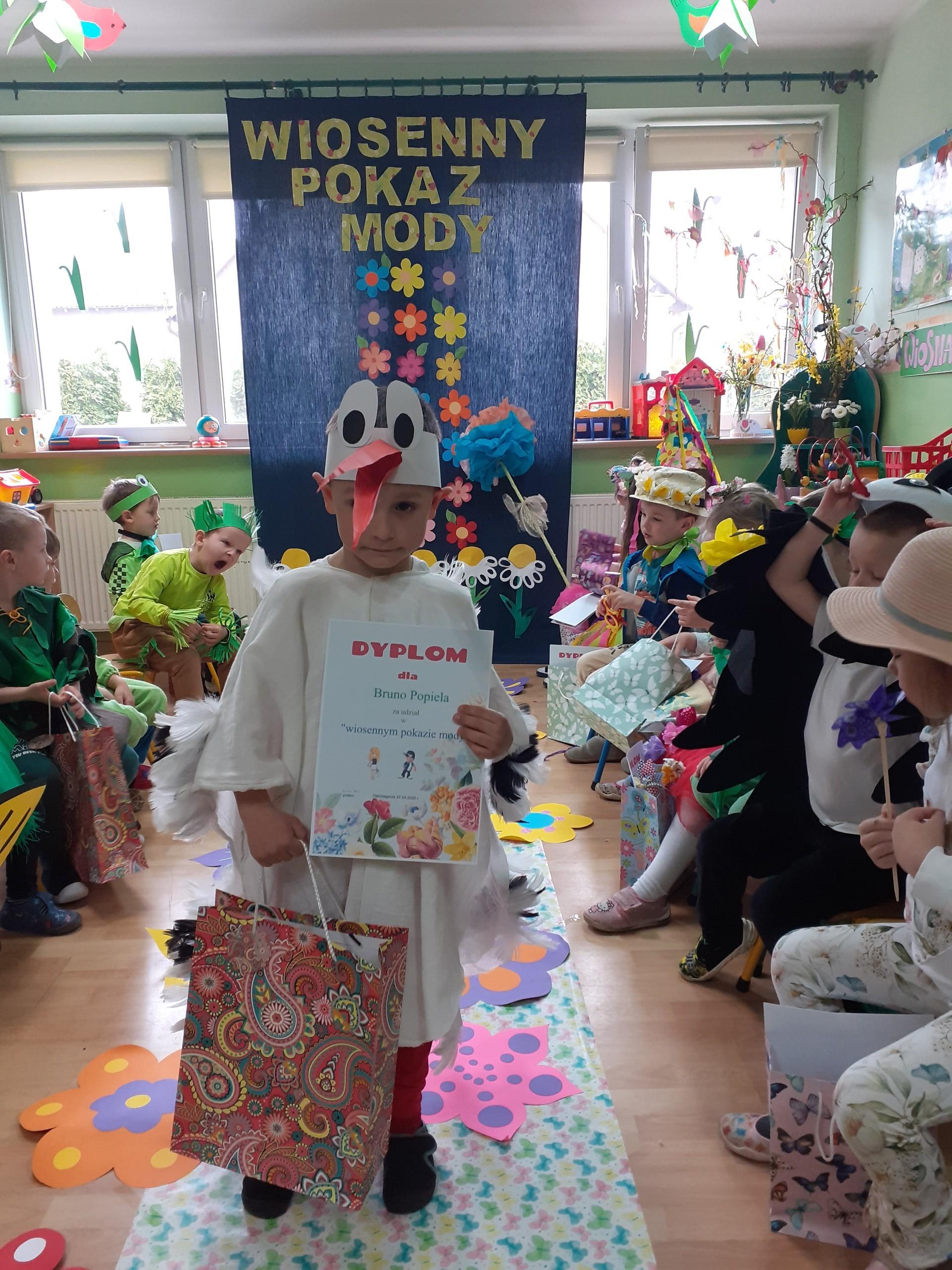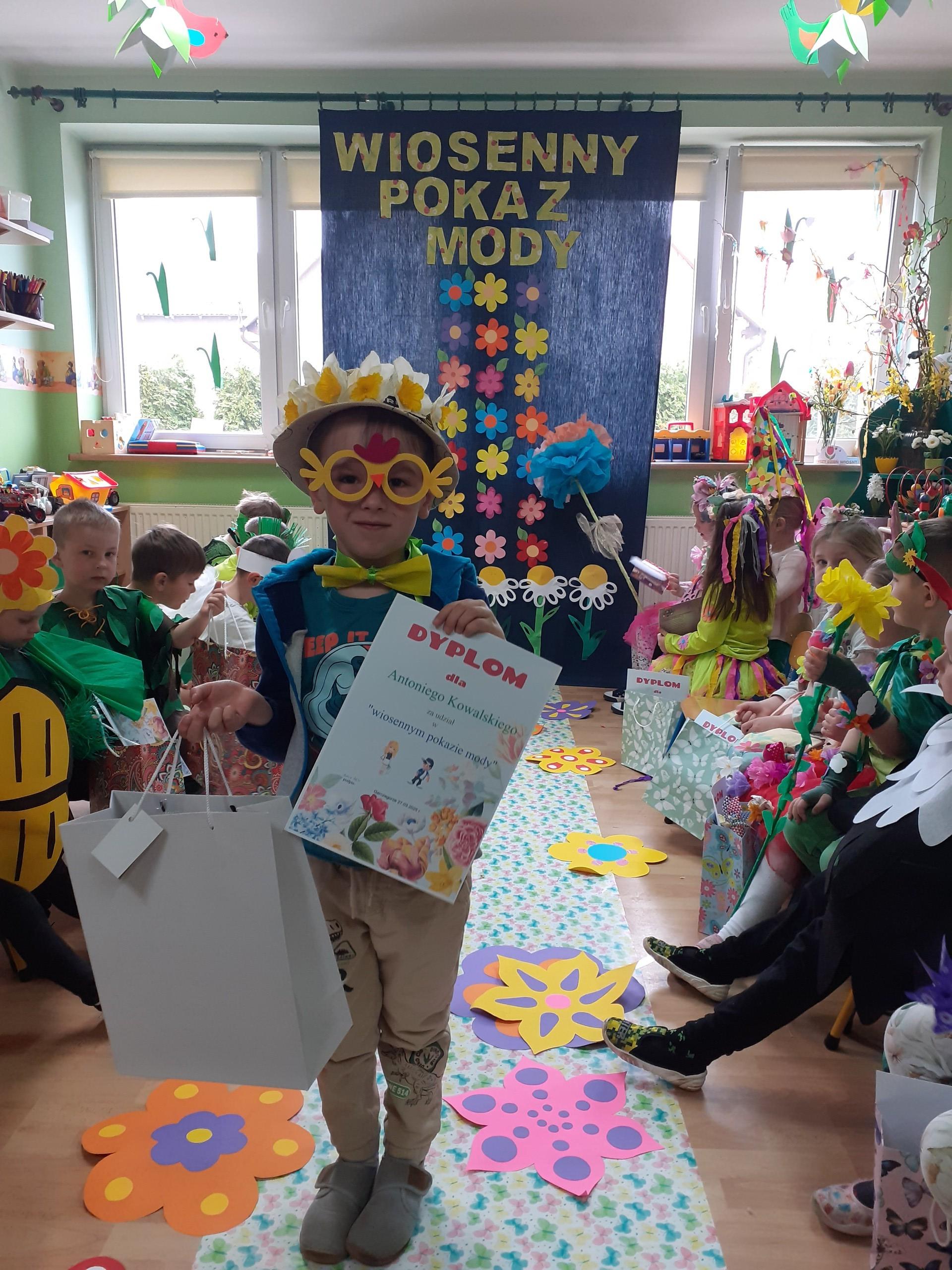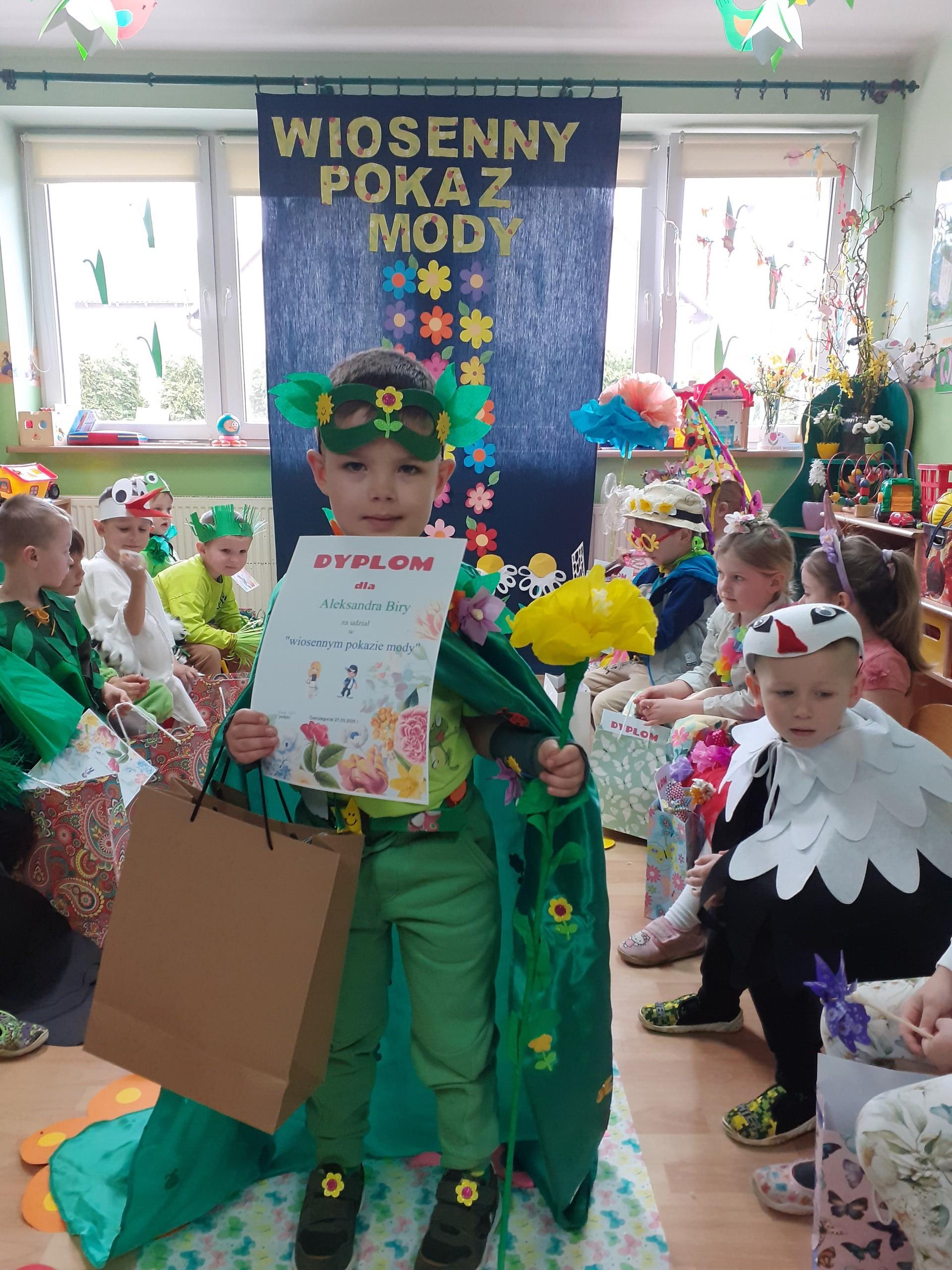 W tym dniu w przedszkolu zagościła prawdziwa Wiosna. Wszystkie przedszkolaki przybyły do przedszkola w wyjątkowych strojach, aby zaprezentować się na specjalnym wybiegu. Nie zawiodła pomysłowość Dzieci i Rodziców. Kreacje przygotowano według własnych pomysłów, wykonano je z wszelkich dostępnych materiałów: różnorodnych tkanin, bibuły, wstążek, kwiatów. Wszystkie były wyjątkowe, a przede wszystkim kolorowe i oryginalne.