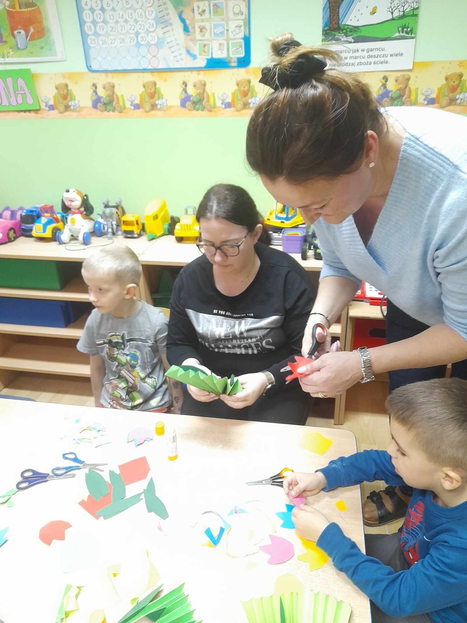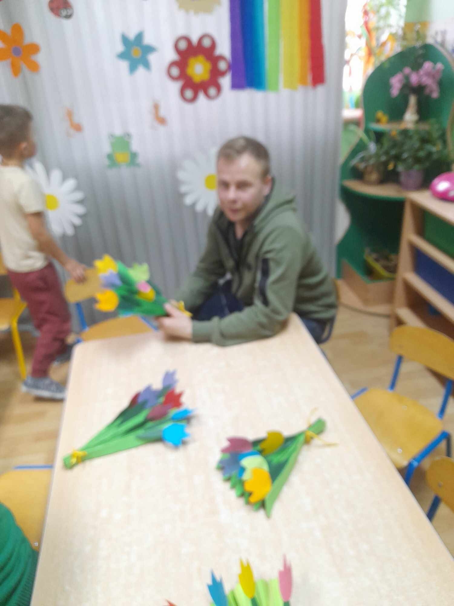 Dnia 22 marca w grupie Starszaków odbyły się Zajęcia Otwarte dla Rodziców. Rodzice uczestnicząc w nich mogli poznać charakter pracy wychowawczo - dydaktycznej z dziećmi. Zajęcia miały na celu umożliwić Rodzicom poznanie sposób pracy nauczyciela z dziećmi, relacji pomiędzy nauczycielem a dziećmi oraz dokonanie obserwacji dziecka na tle grupy. Temat dzisiejszych zajęć "Wiosenne kolory. Rodzice, poza obserwacją, włączyli się także do wspólnych zabaw oraz wykonali pracę plastyczną. Bardzo serdecznie dziękujemy Rodzicom i pani Dyrektor za przybycie, zaangażowanie i wspólnie spędzony czas.