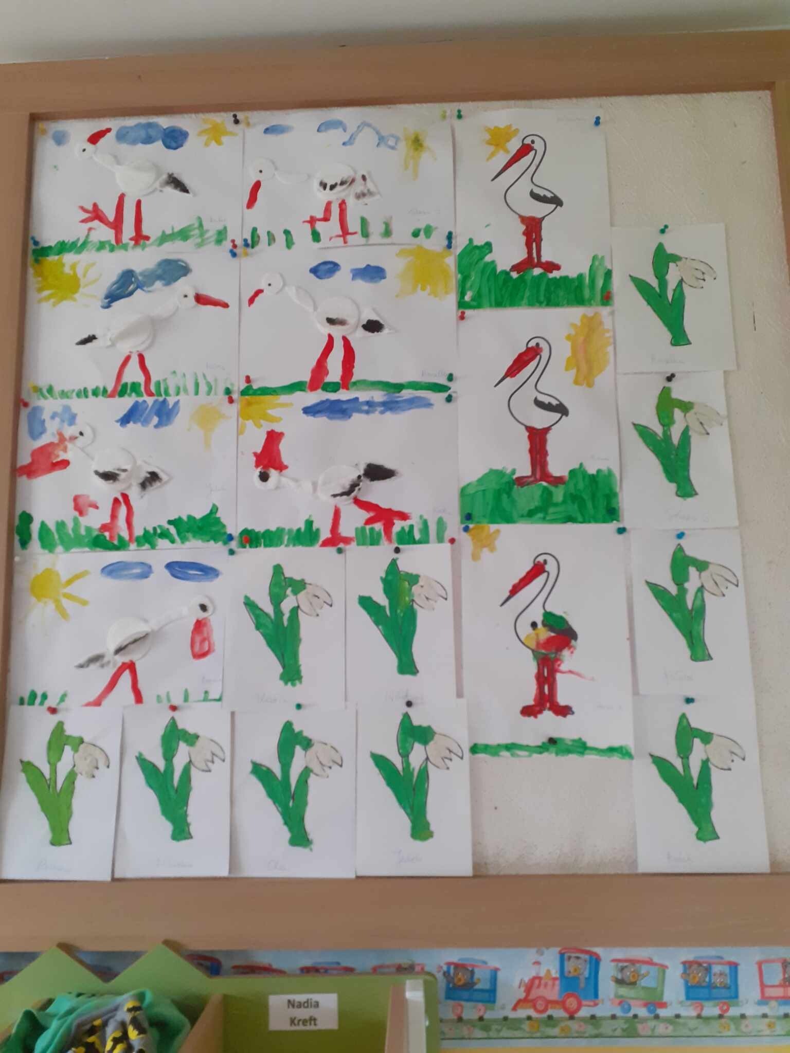 Grupa młodsza w tym tygodniu wykonała prace o tematyce wiosennej.