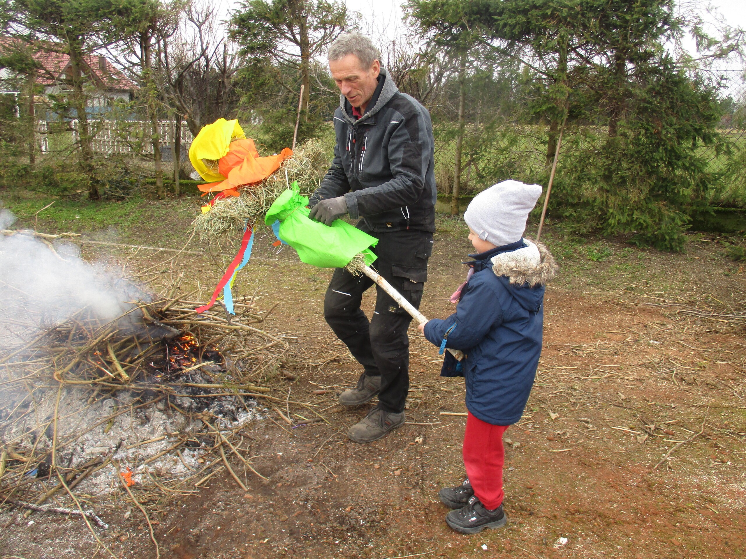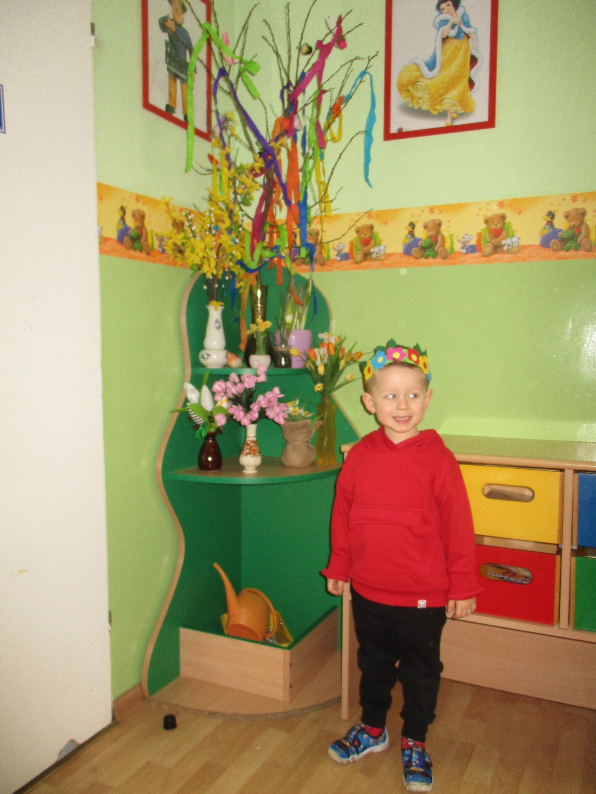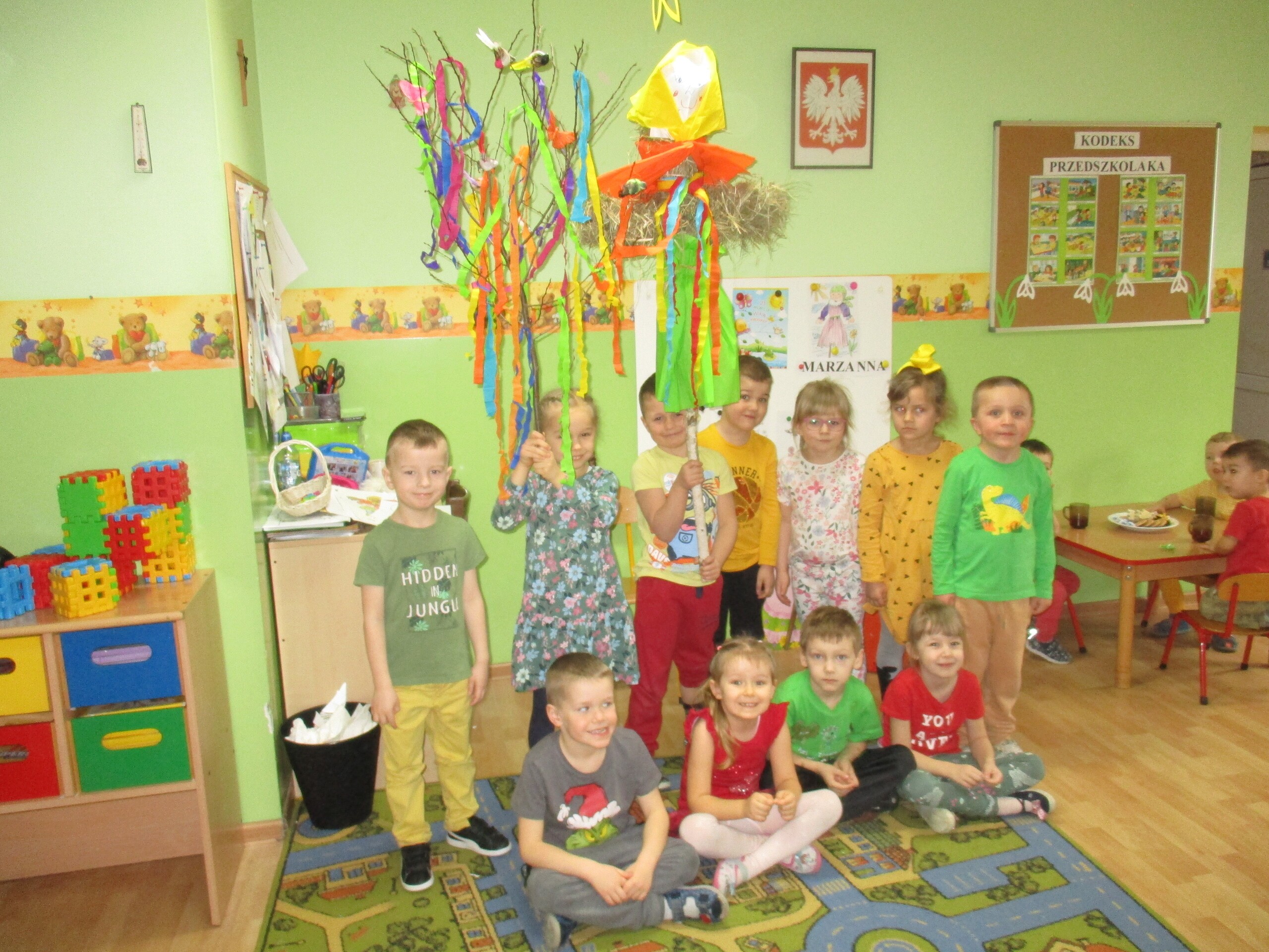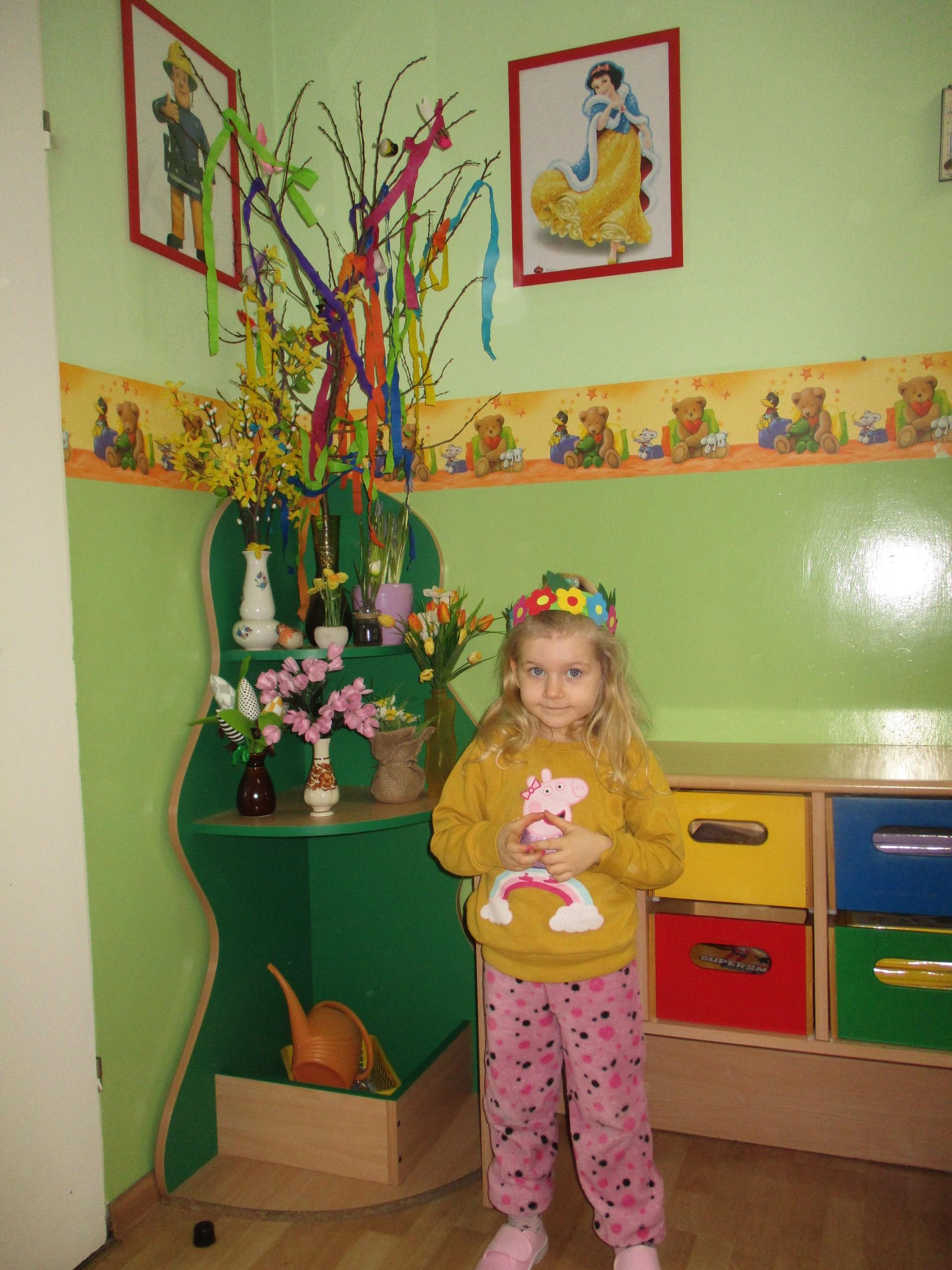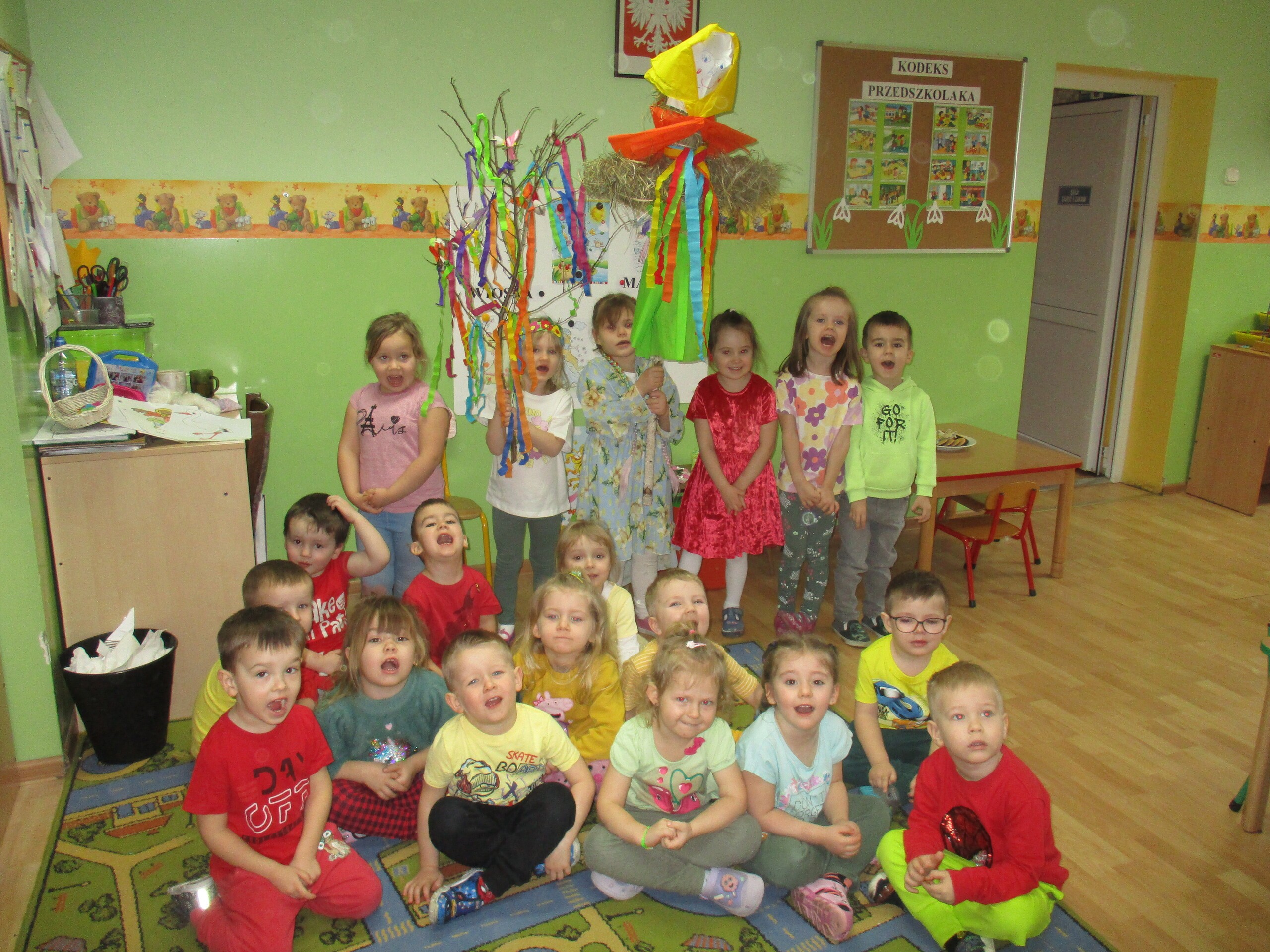 Dzisiaj wszystkie przedszkolaki żegnały Zimę i witały Wiosnę. Dzieci przyszły do przedszkola w ubranich w kolorach wiosennych. Młodsza grupa tańczyła przy piosence "Wiosna w błękitnej sukience", rozmawiała o tradycji związanej z paleniem Marzanny oraz strojeniem gaika, pokolorowała obrazek przedstawiający Panią Wiosnę. Starsza grupa wykonała Marzannę. Wszystkie dzieci ruszyły razem z Marzanną i Gaikiem na boisko szkolne. Tak Kajetan w imieniu wszystkich dzieci w ognisku spalił zimową pannę. Następnie dzieci z instrumentami poszły na spacer szukać Wiosny. Jaśmina szła na czele wiosennego pochodu i niosła Gaik - oznakę Wiosny.