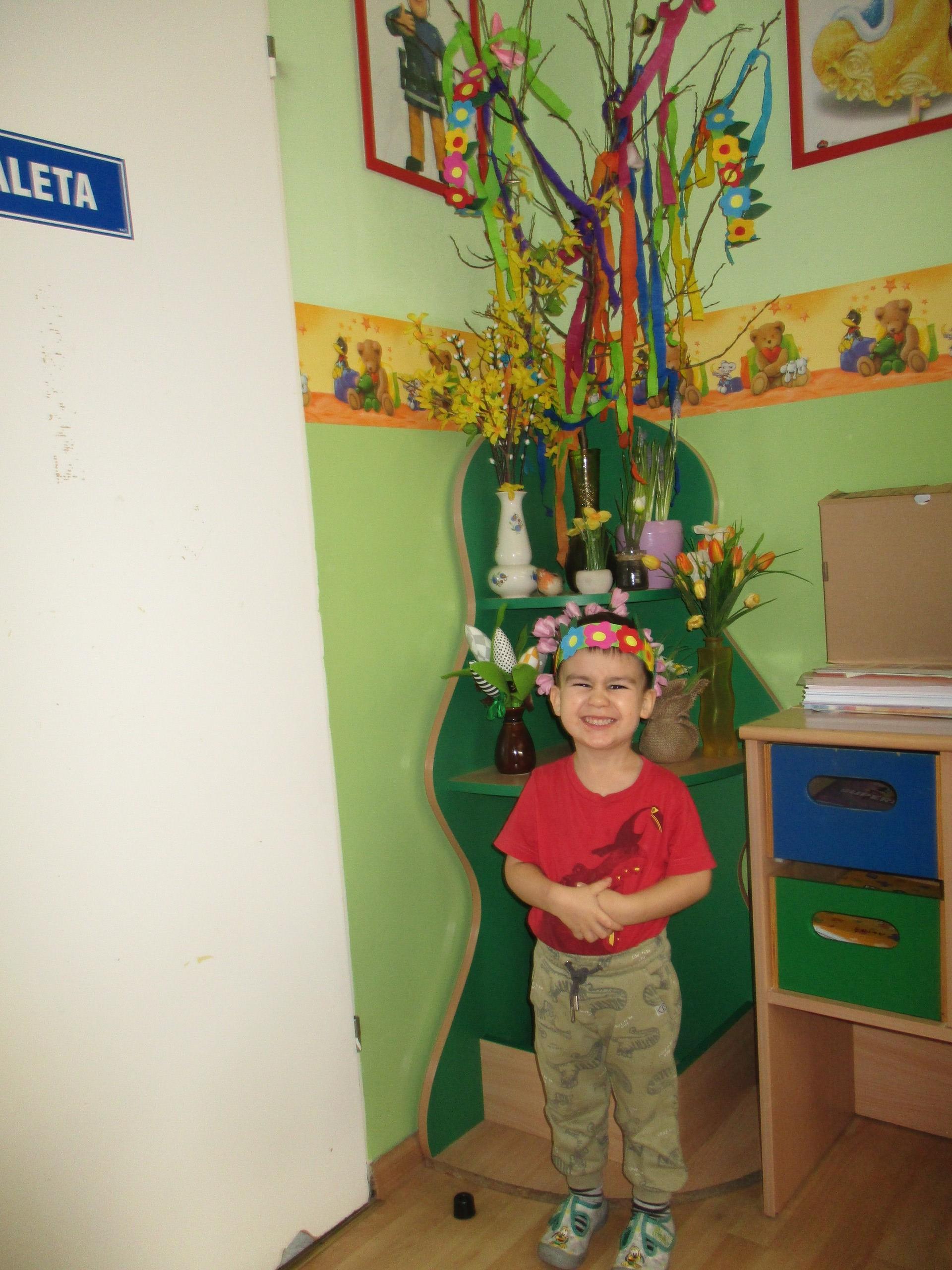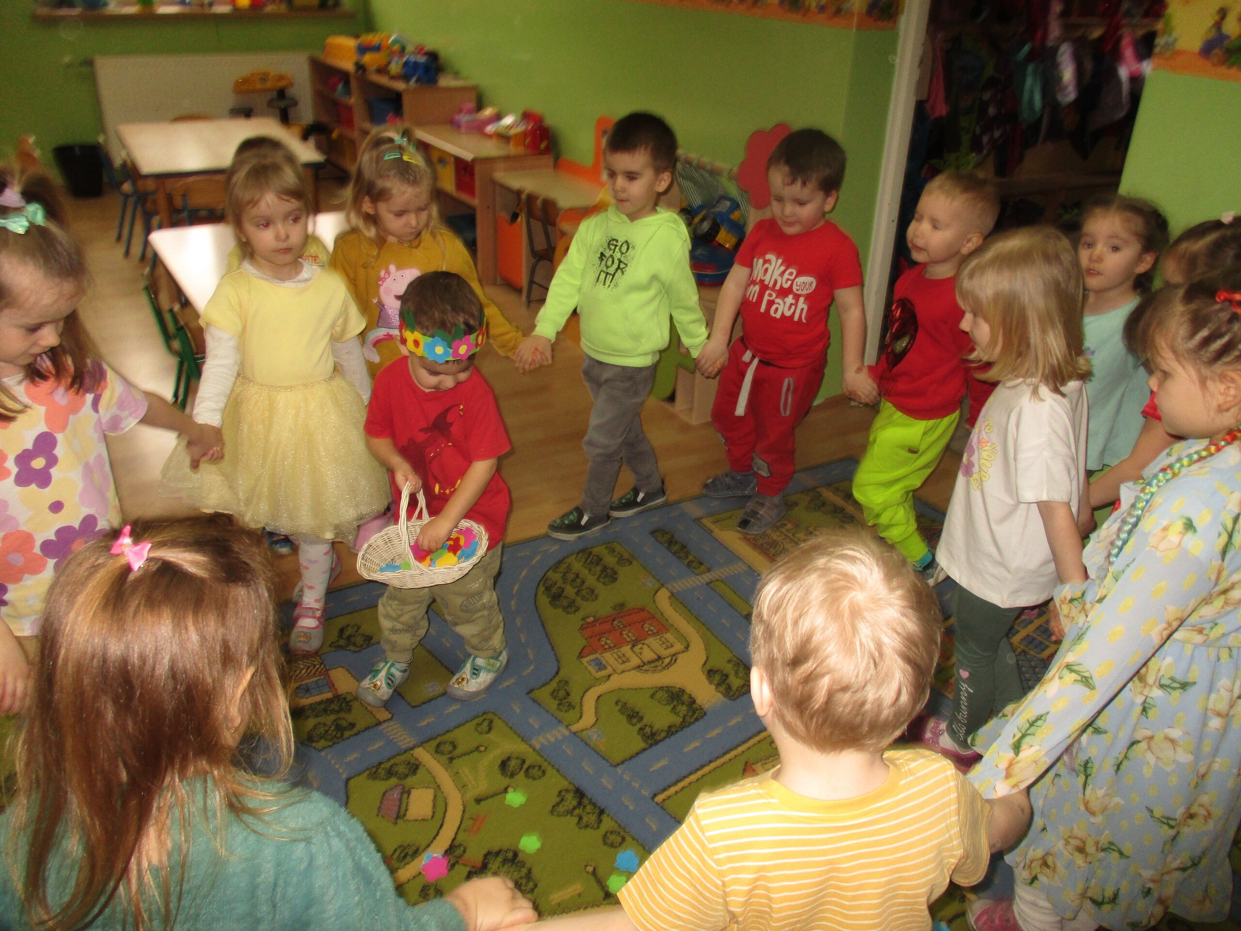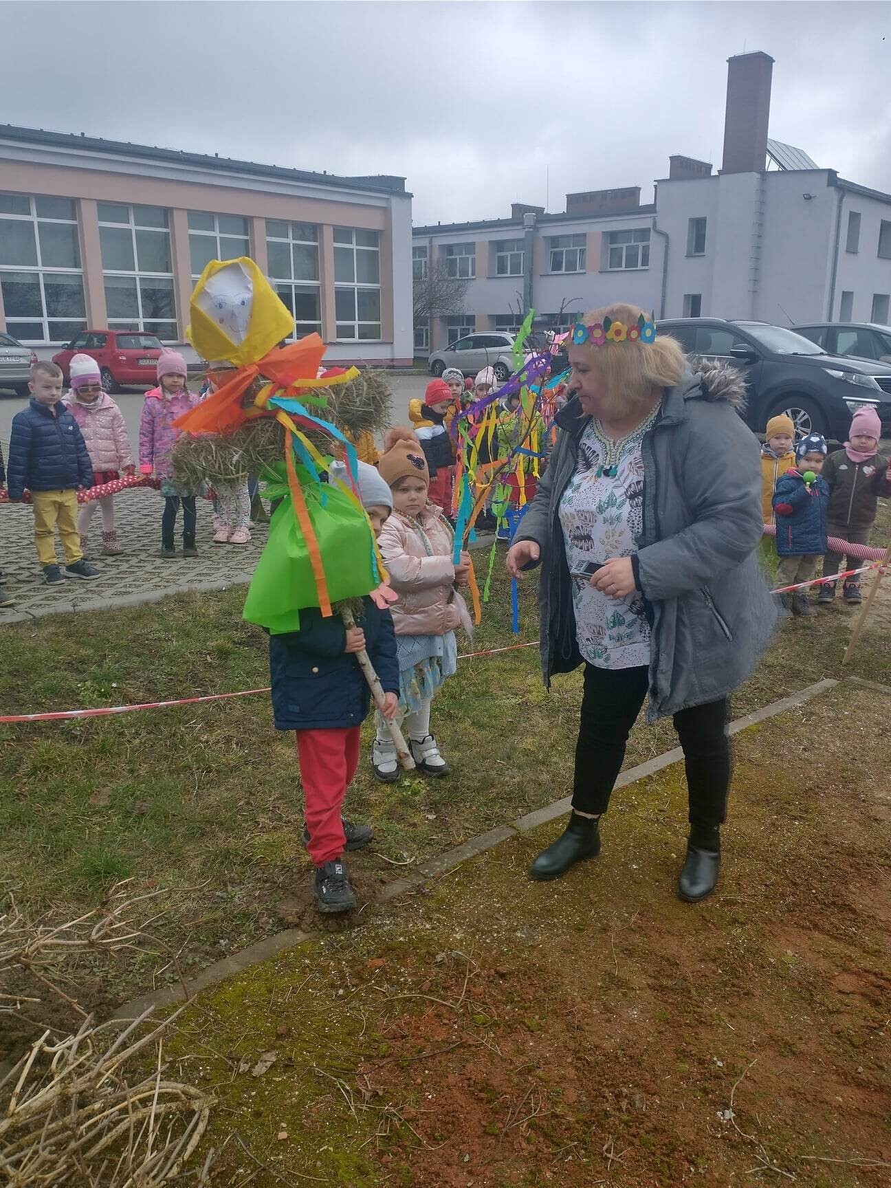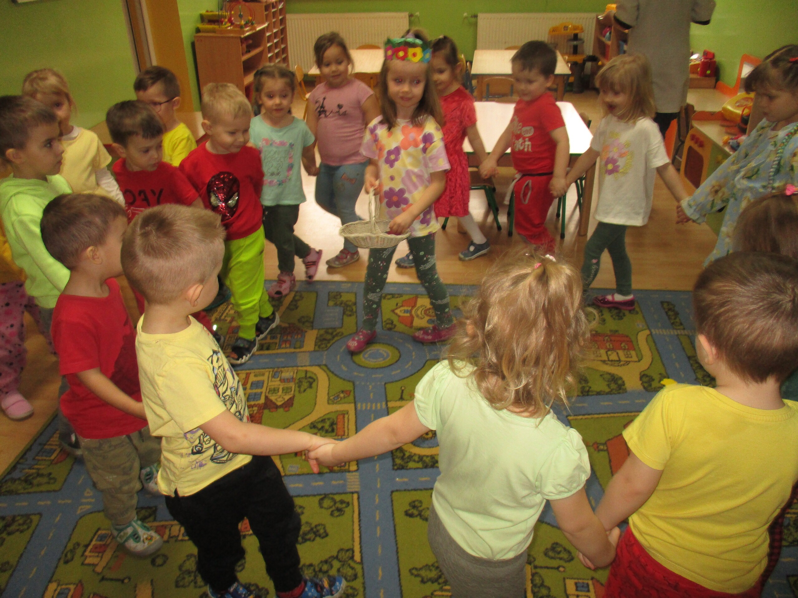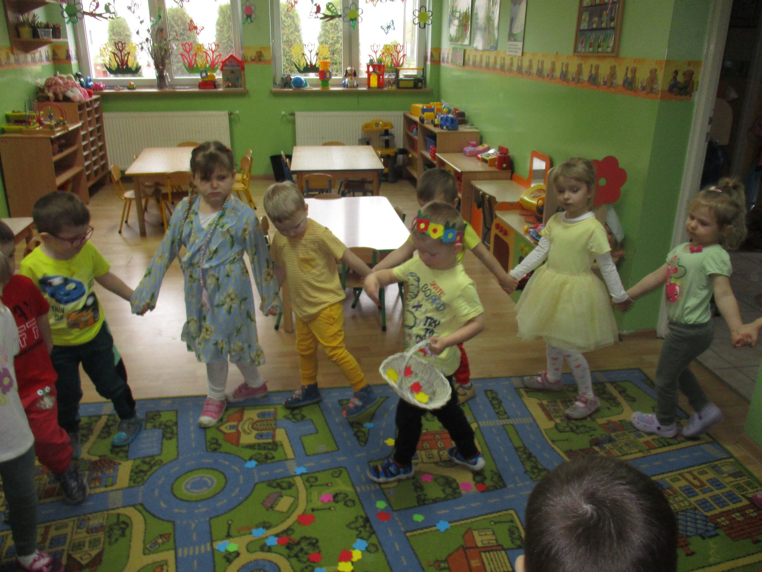 Dzisiaj wszystkie przedszkolaki żegnały Zimę i witały Wiosnę. Dzieci przyszły do przedszkola w ubranich w kolorach wiosennych. Młodsza grupa tańczyła przy piosence "Wiosna w błękitnej sukience", rozmawiała o tradycji związanej z paleniem Marzanny oraz strojeniem gaika, pokolorowała obrazek przedstawiający Panią Wiosnę. Starsza grupa wykonała Marzannę. Wszystkie dzieci ruszyły razem z Marzanną i Gaikiem na boisko szkolne. Tak Kajetan w imieniu wszystkich dzieci w ognisku spalił zimową pannę. Następnie dzieci z instrumentami poszły na spacer szukać Wiosny. Jaśmina szła na czele wiosennego pochodu i niosła Gaik - oznakę Wiosny.