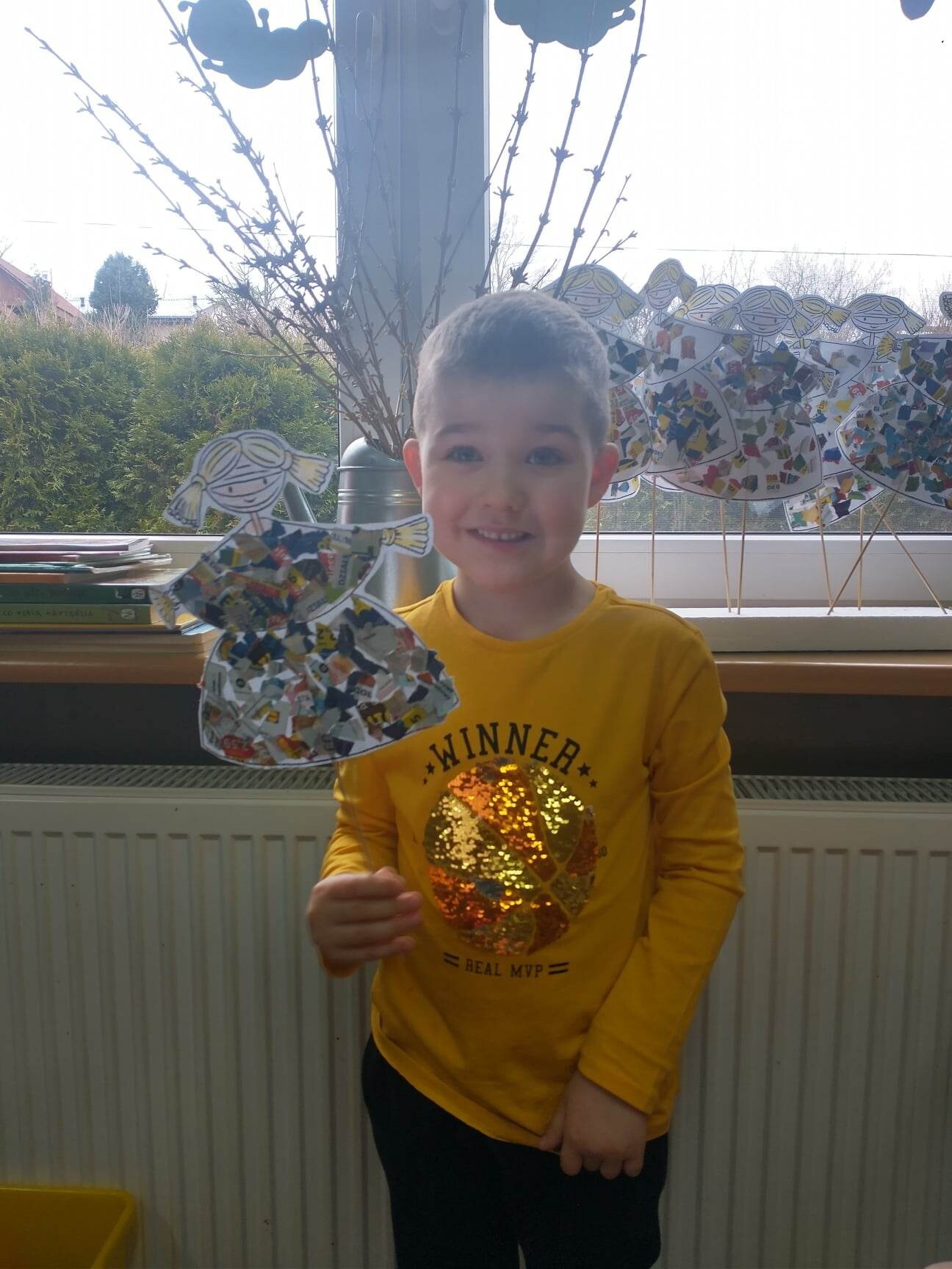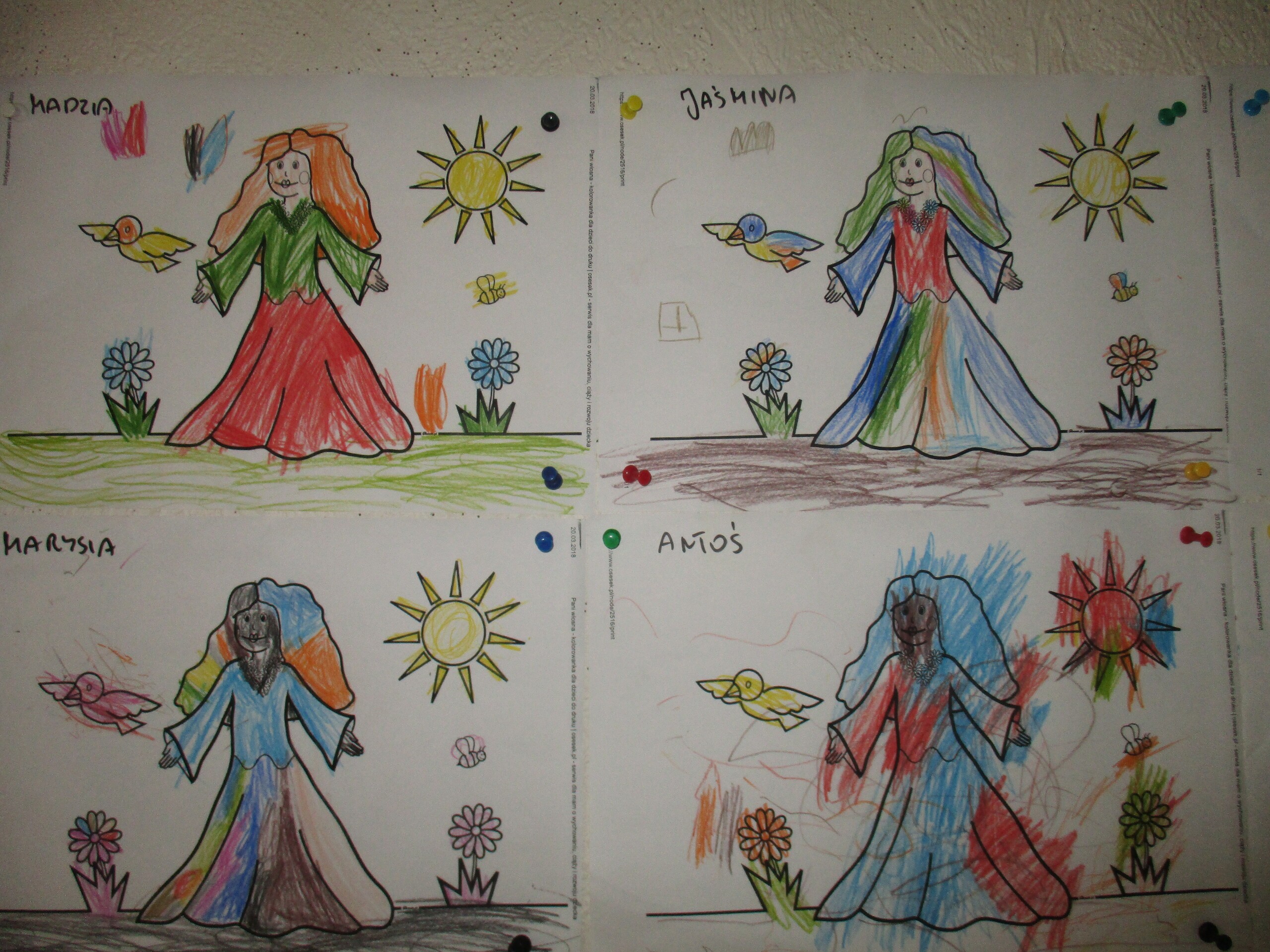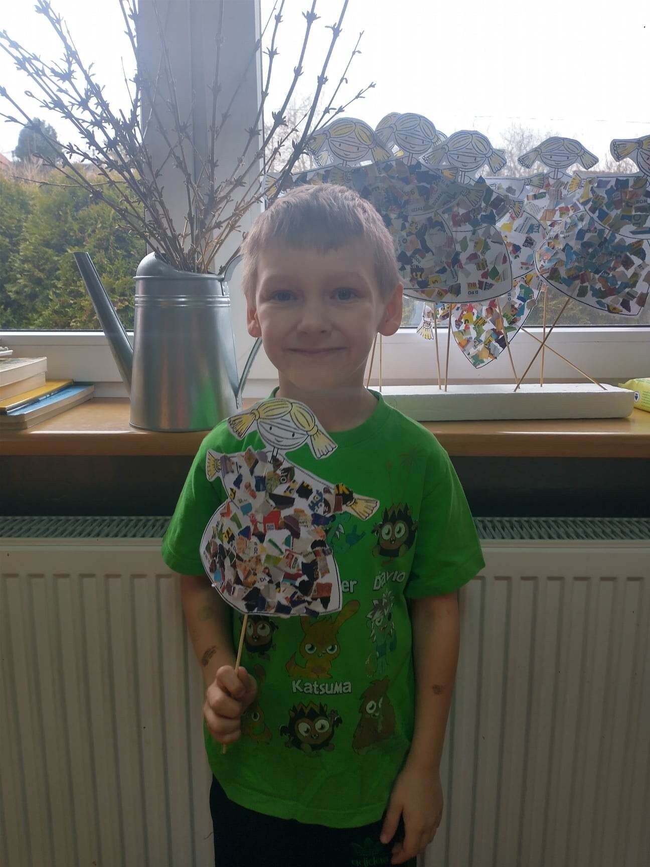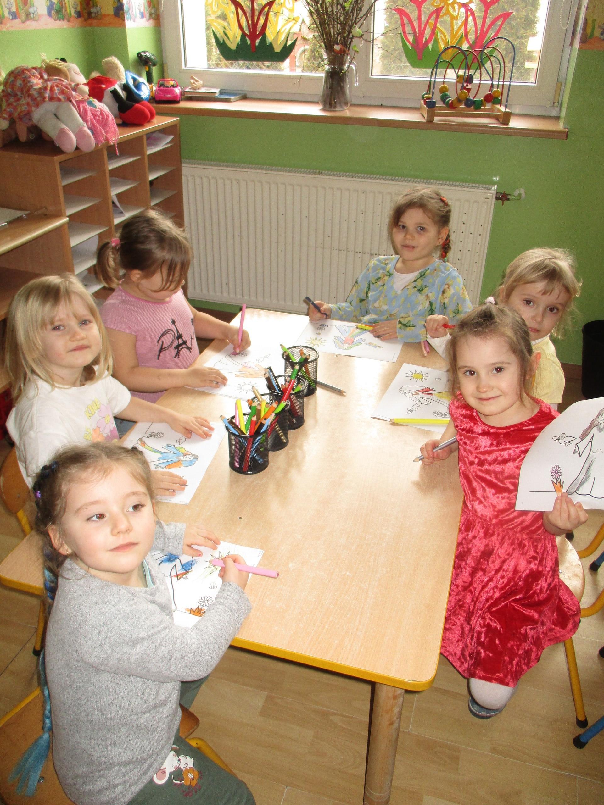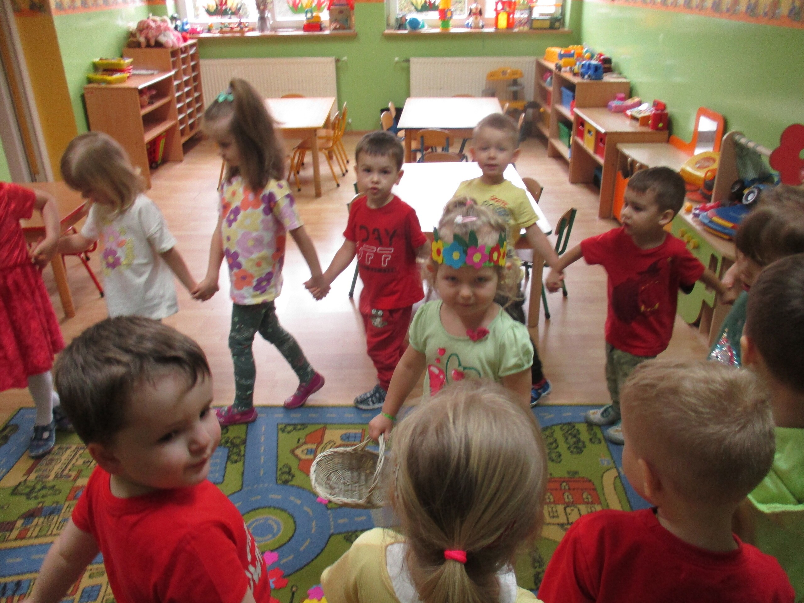 Dzisiaj wszystkie przedszkolaki żegnały Zimę i witały Wiosnę. Dzieci przyszły do przedszkola w ubranich w kolorach wiosennych. Młodsza grupa tańczyła przy piosence "Wiosna w błękitnej sukience", rozmawiała o tradycji związanej z paleniem Marzanny oraz strojeniem gaika, pokolorowała obrazek przedstawiający Panią Wiosnę. Starsza grupa wykonała Marzannę. Wszystkie dzieci ruszyły razem z Marzanną i Gaikiem na boisko szkolne. Tak Kajetan w imieniu wszystkich dzieci w ognisku spalił zimową pannę. Następnie dzieci z instrumentami poszły na spacer szukać Wiosny. Jaśmina szła na czele wiosennego pochodu i niosła Gaik - oznakę Wiosny.