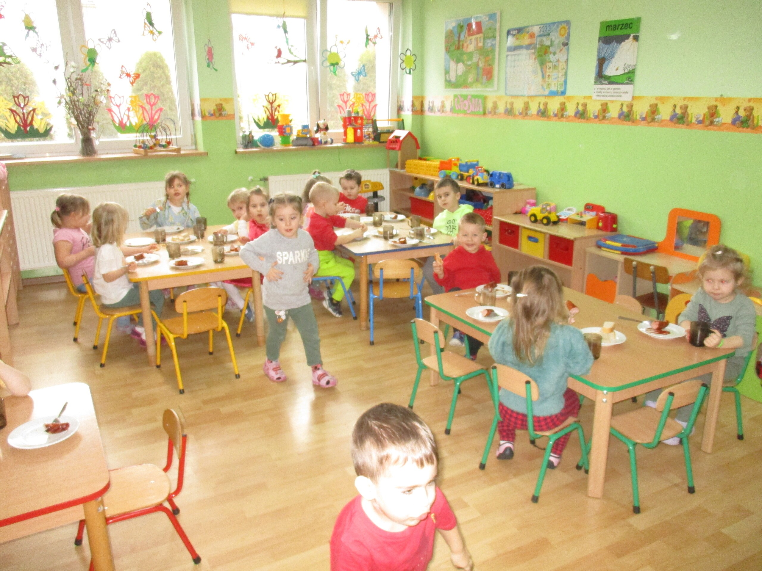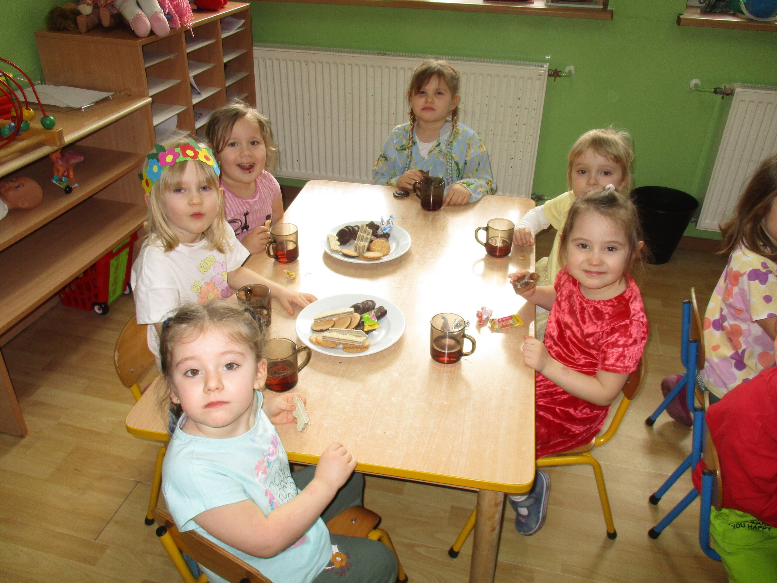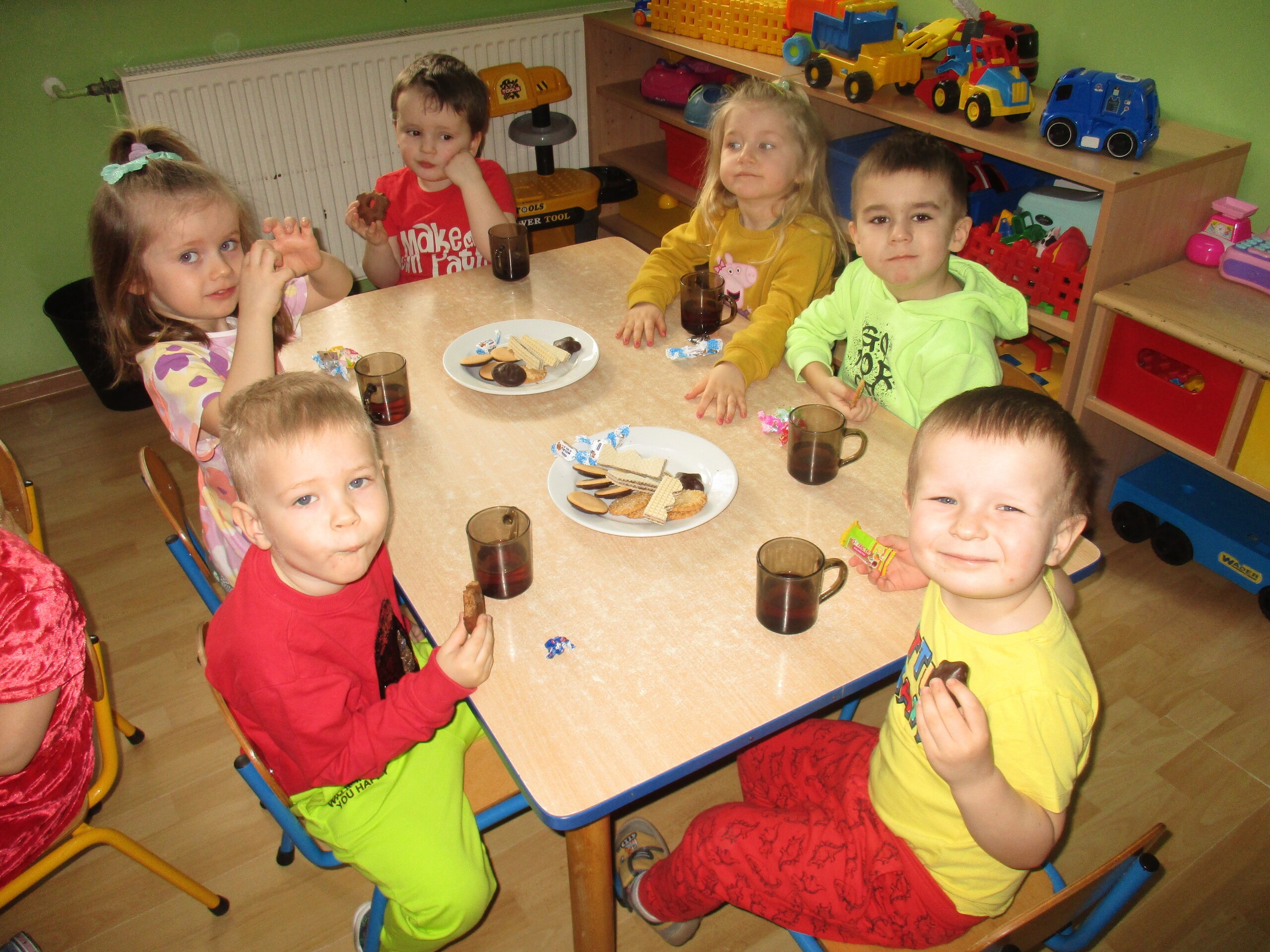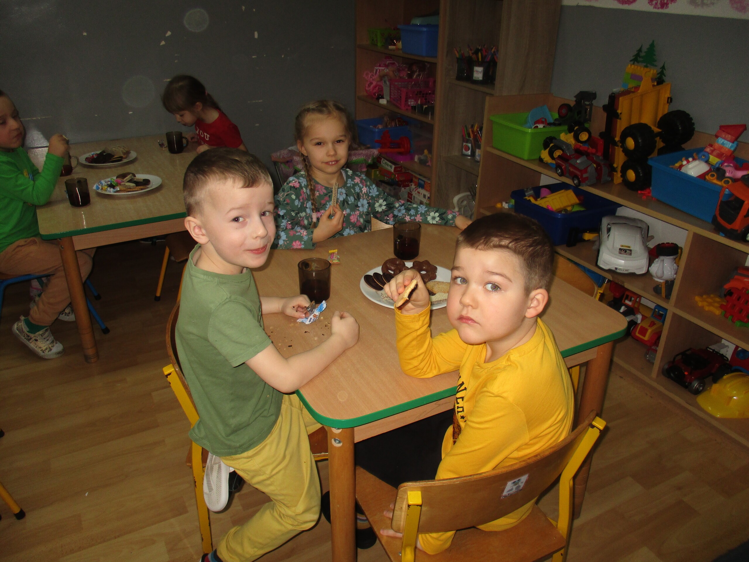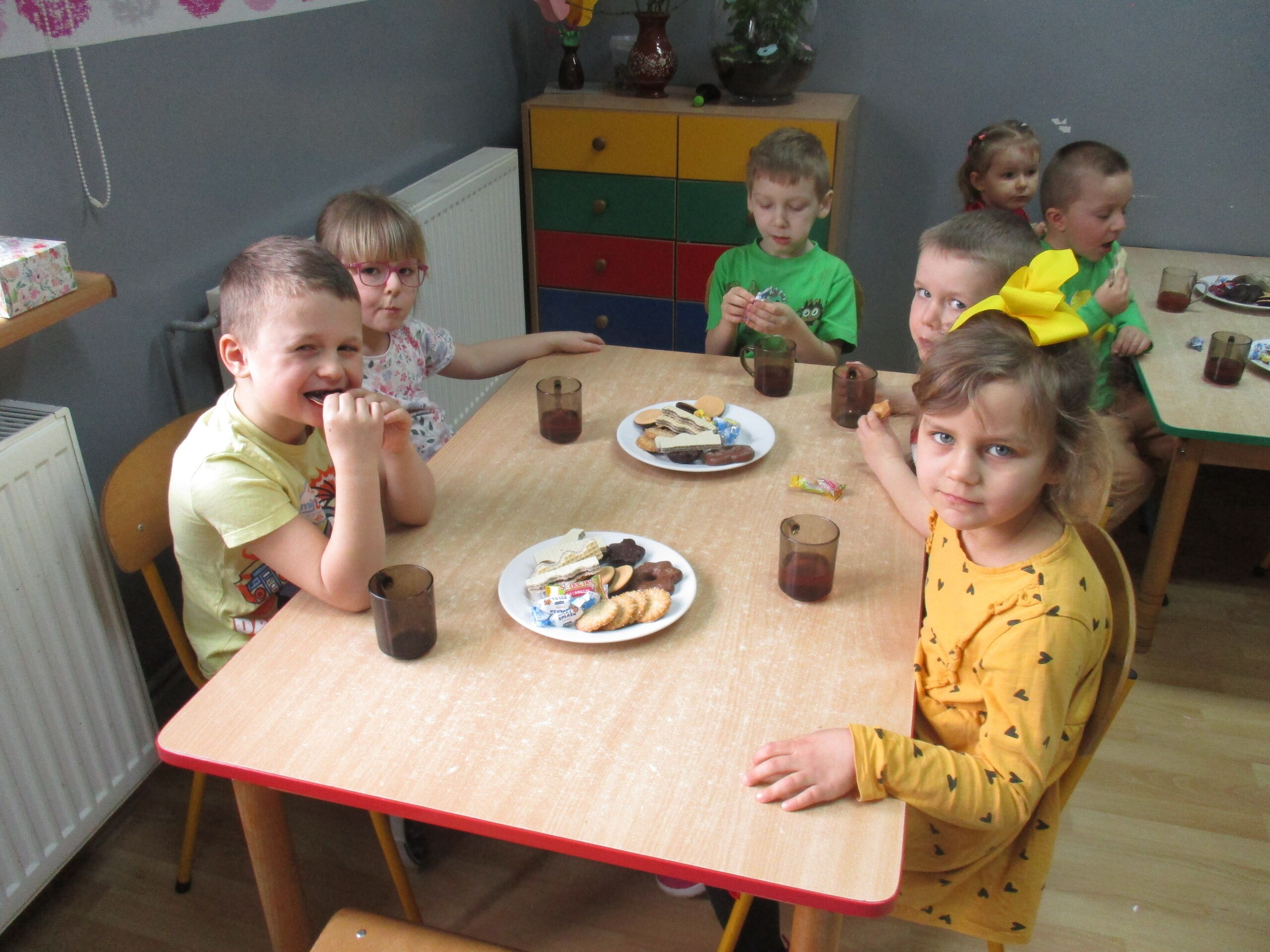 W przedszkolu czekał na wszystkich słodki poczęstunek a potem obiecane kiełbaski z grilla.