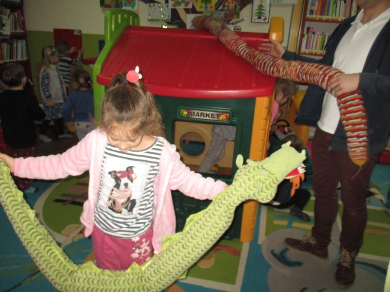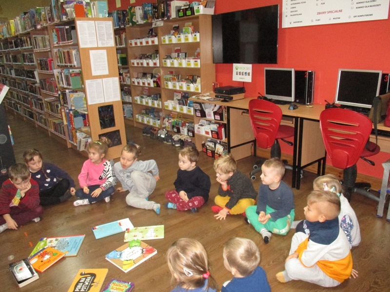 12 grudnia przedszkolaki brały udział w zajęciach zorganizowanych przez Bibliotekę Miejską w Lęborku na temat :"Zabawy z nietypowymi książkami z Wydawnictwa DWIE SIOSTRY". Podczas zajęć dzieci poznały nowe formy książek m. in. książki pop - up (książki z okienkami, z dziurkami, książki rozkładanki). Przedszkolaki dowiedziały się, że oprócz czytania i oglądania, książi można wykorzystać w różnych zabawach. Zajęcia w bibliotece były jak zawsze ciekawe i pouczające.
